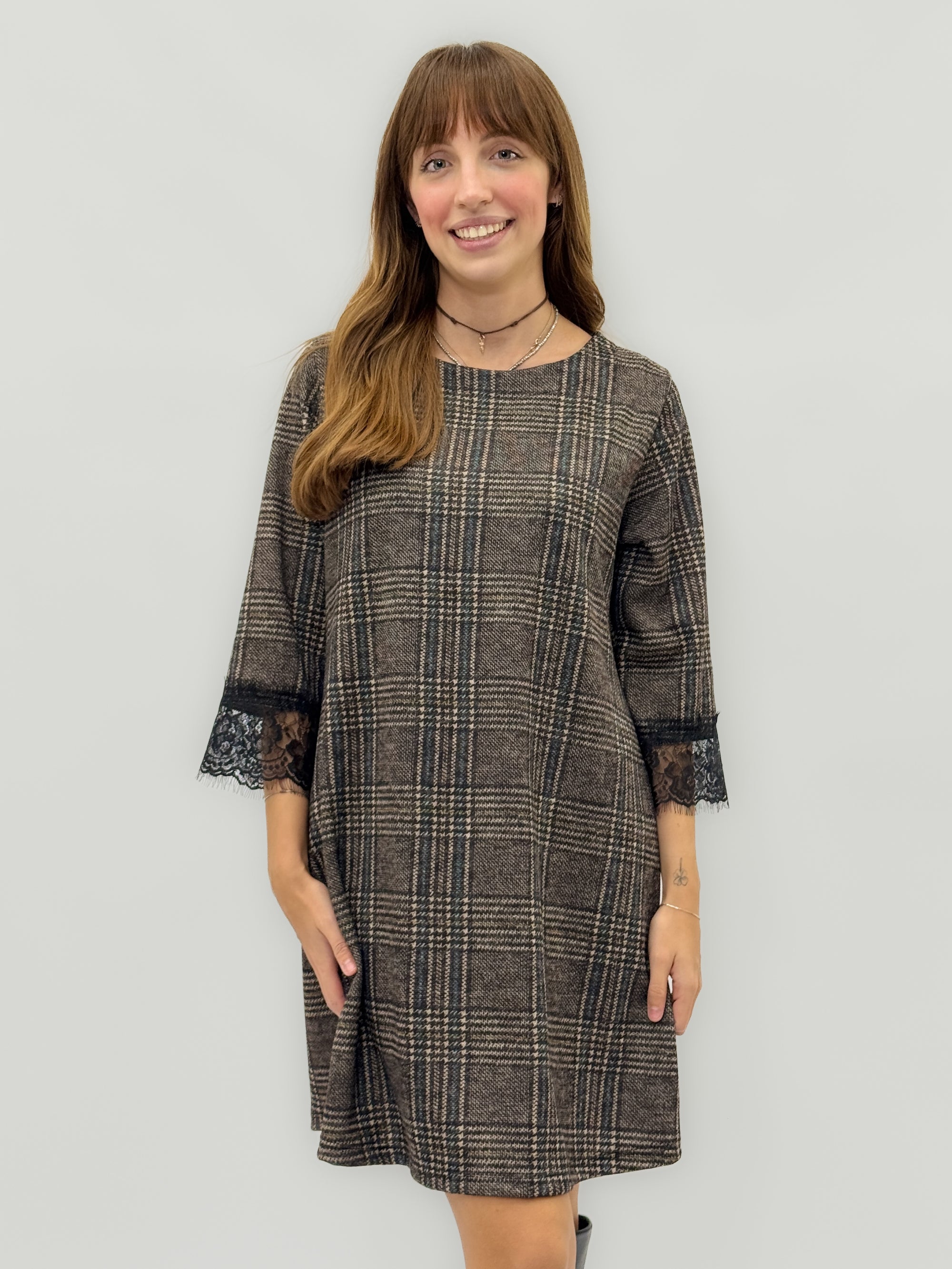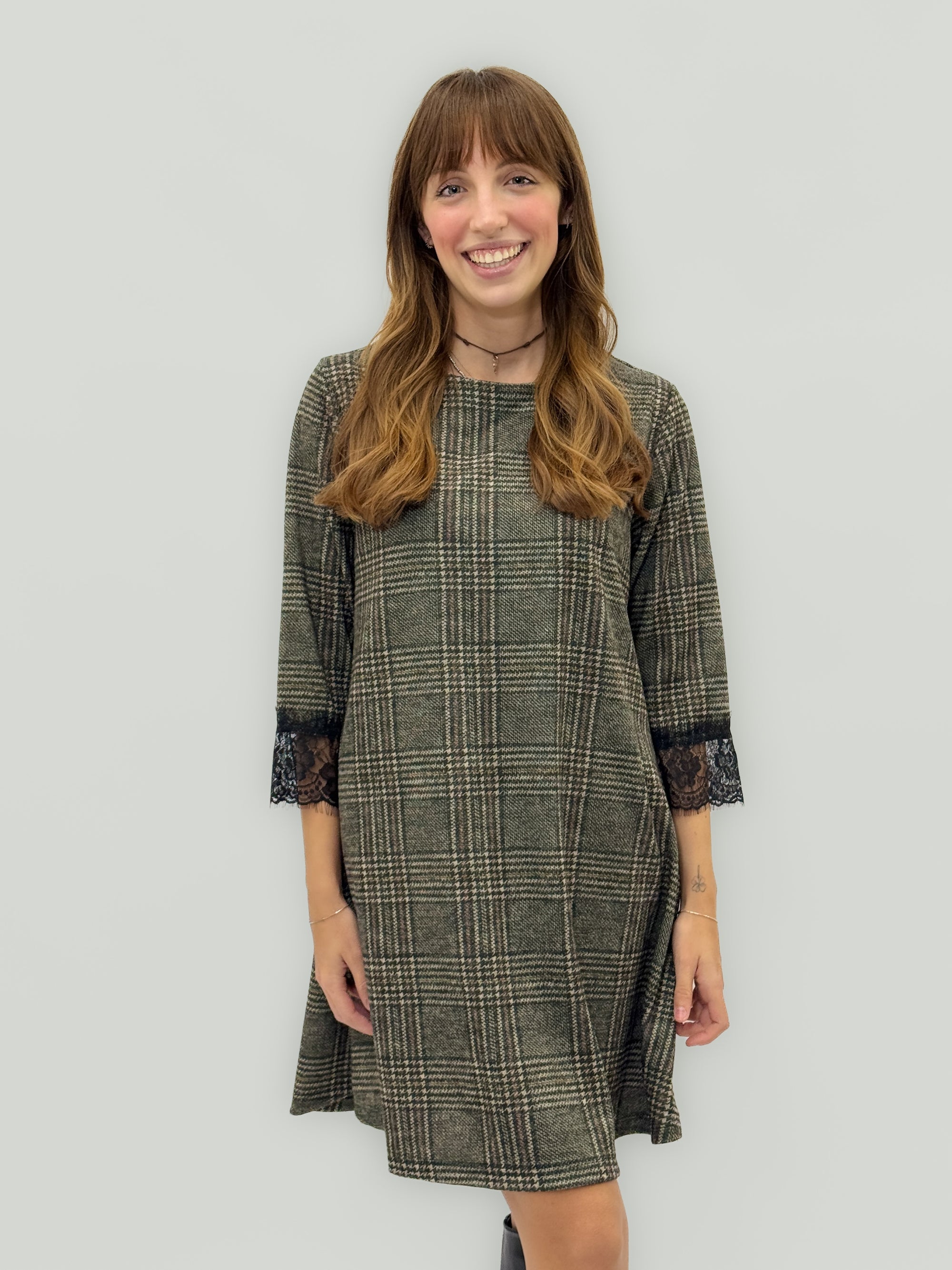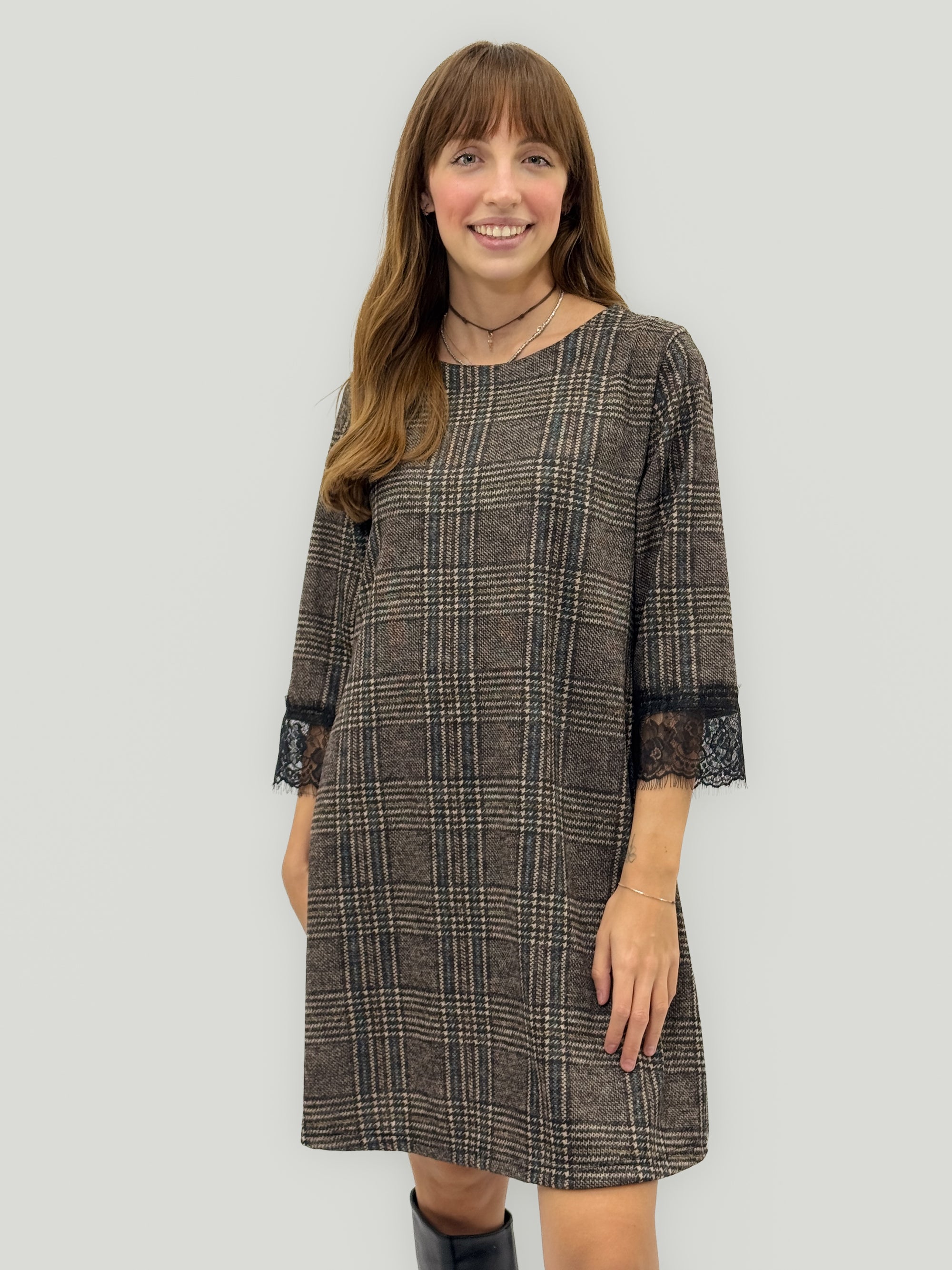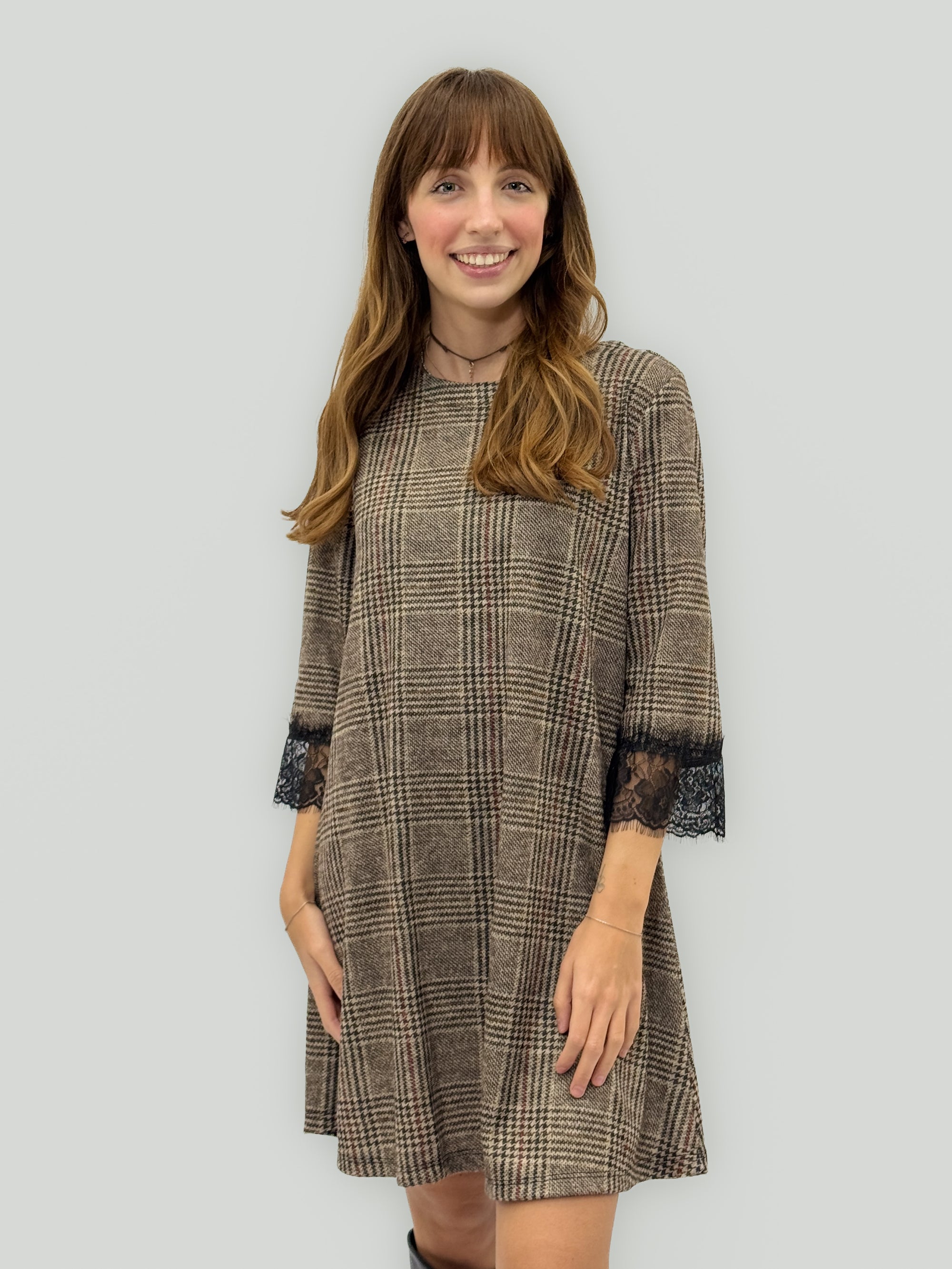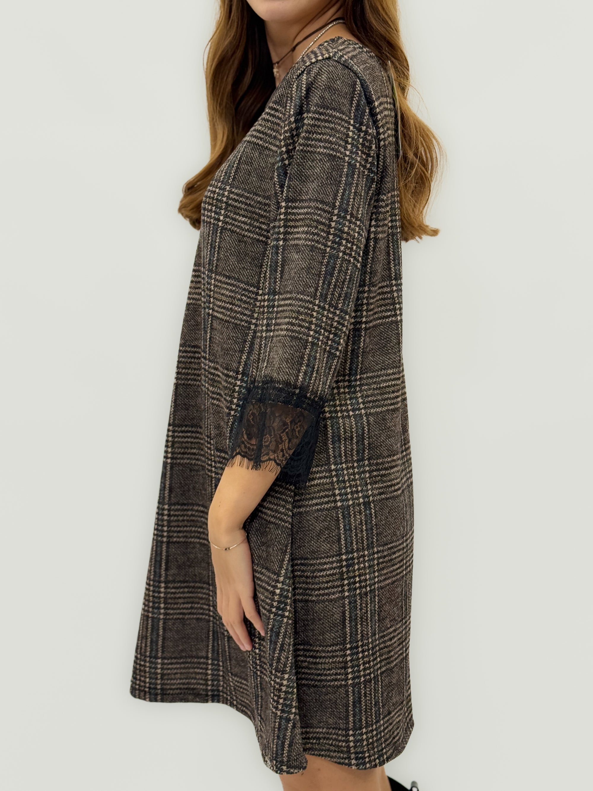 Abito Scozzese con Maniche in Pizzo – Linea Morbida
