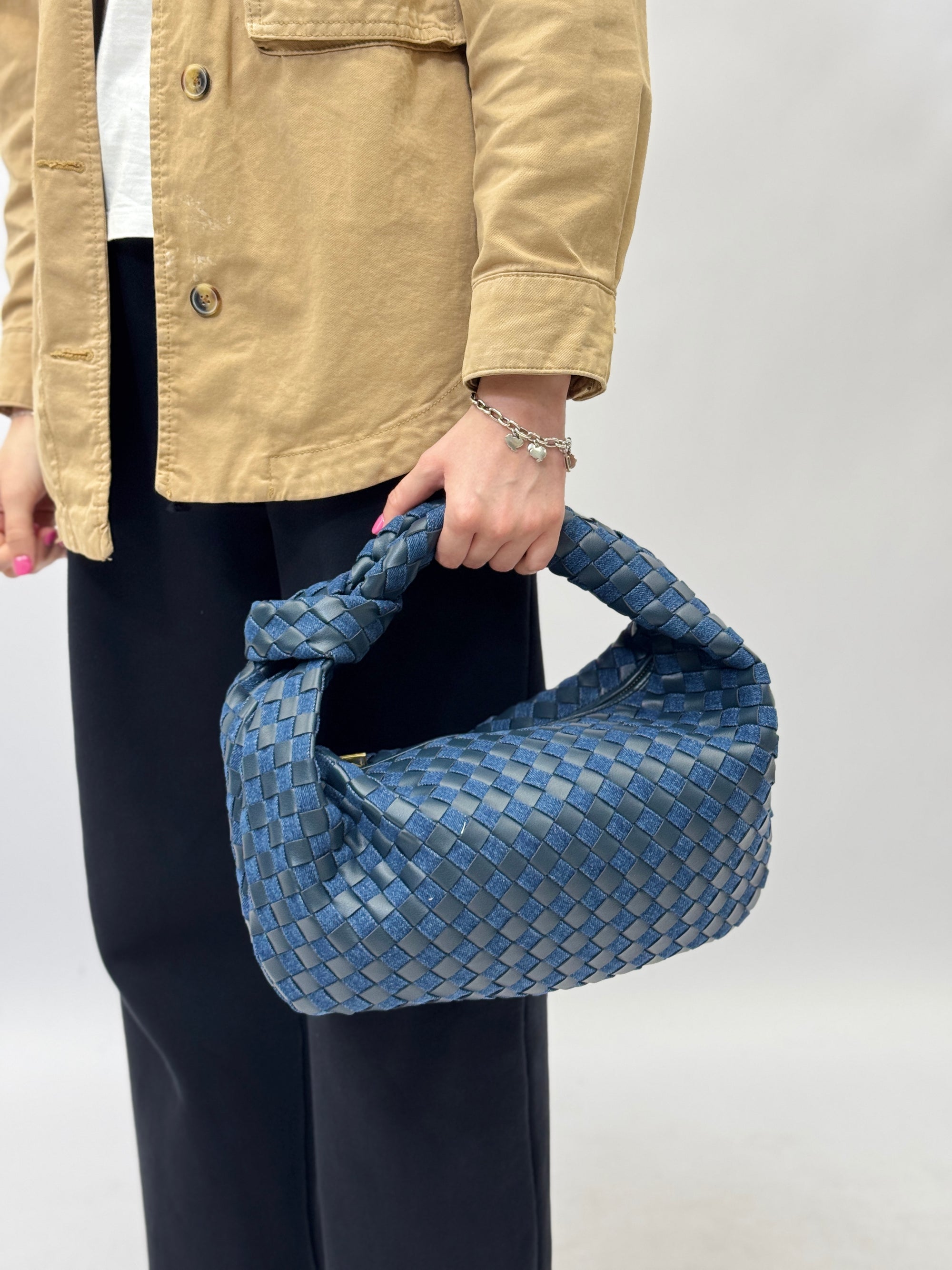 Borsa intrecciata in vera pelle Made in Italy