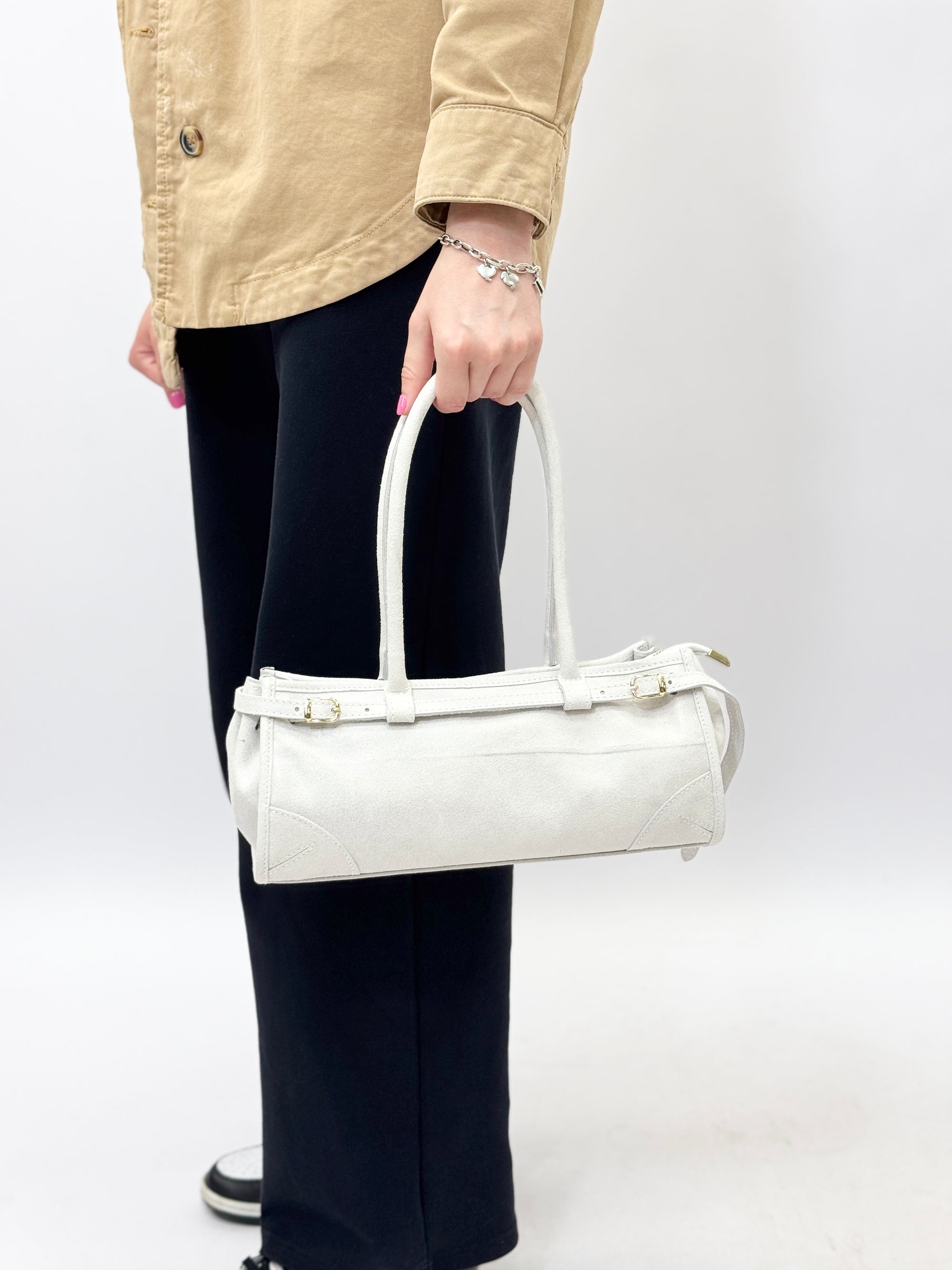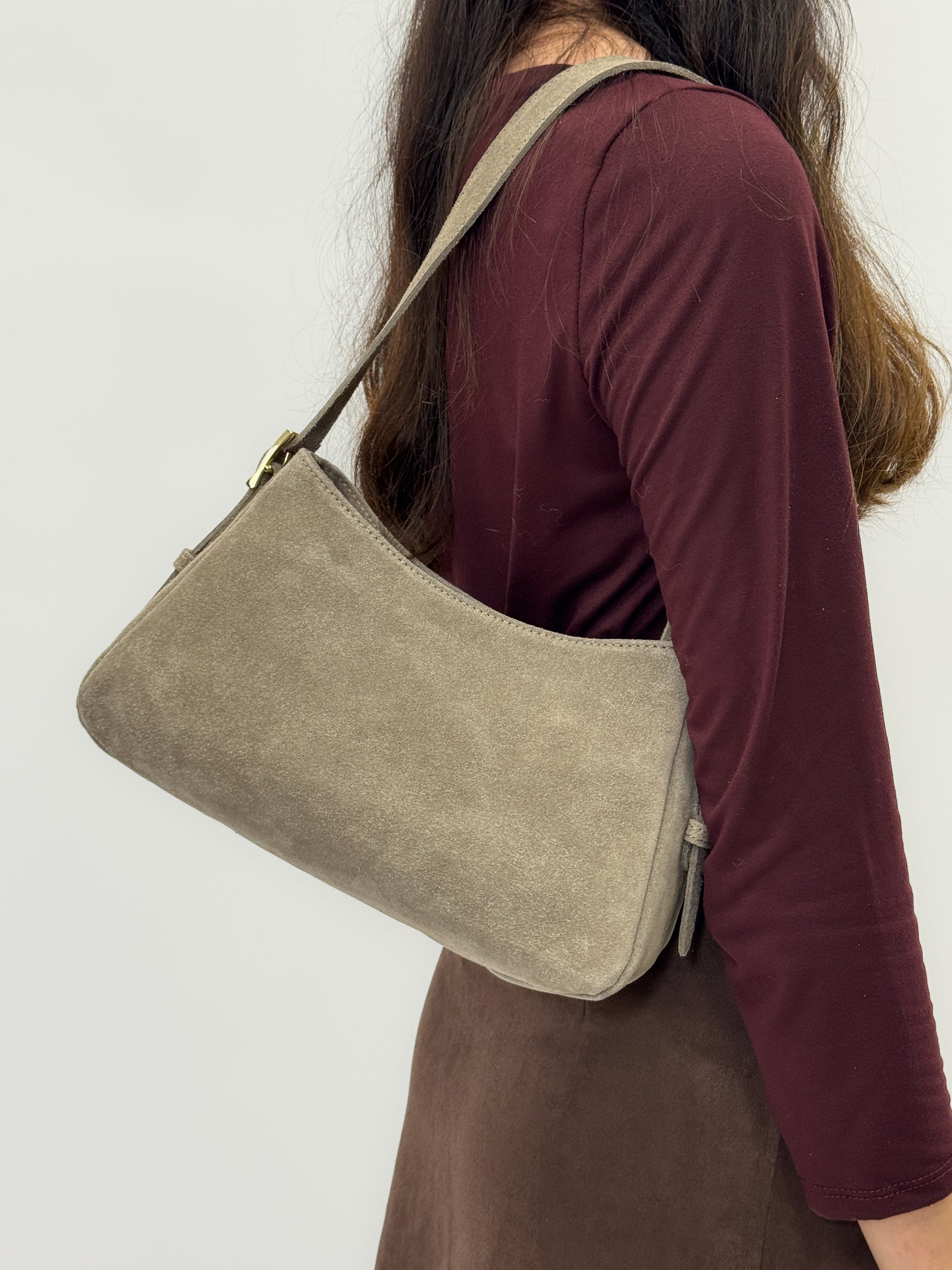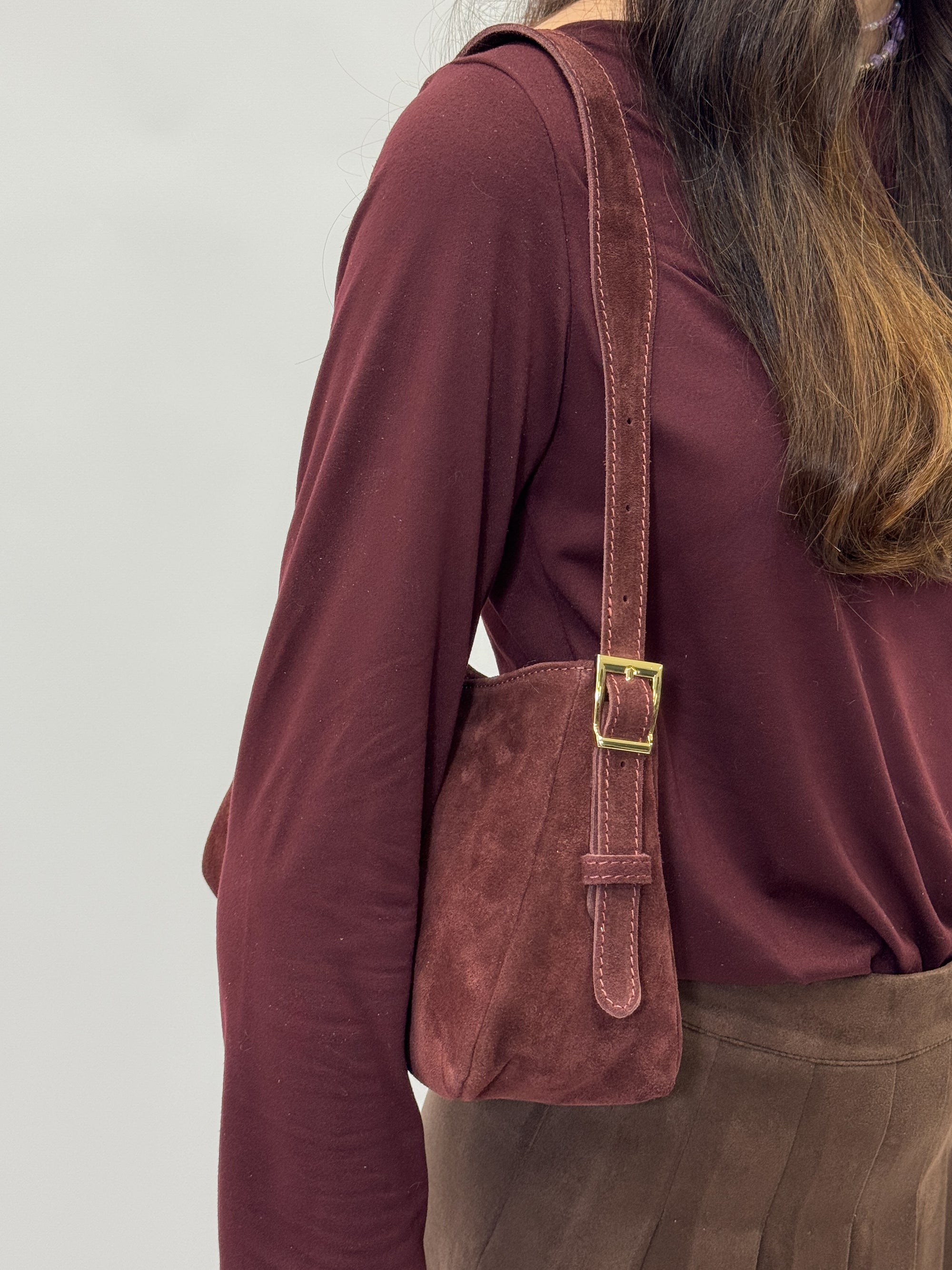 Borsa a spalla in vera pelle scamosciata Made in Italy