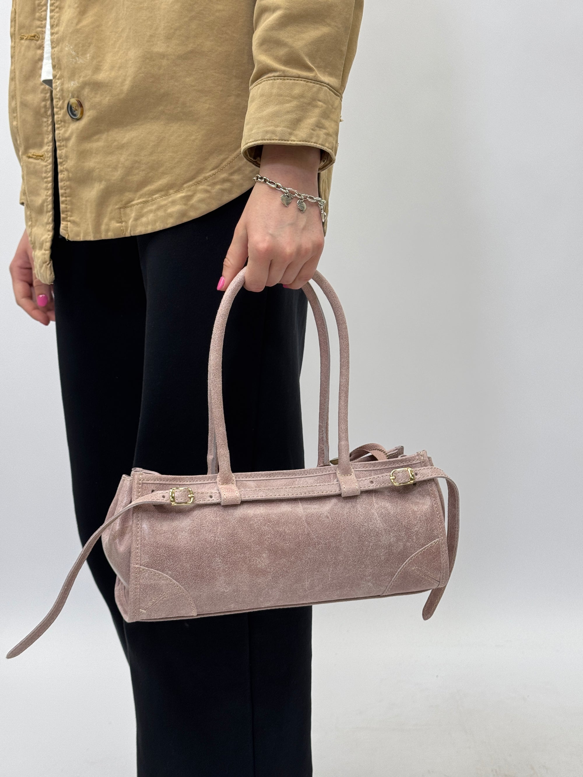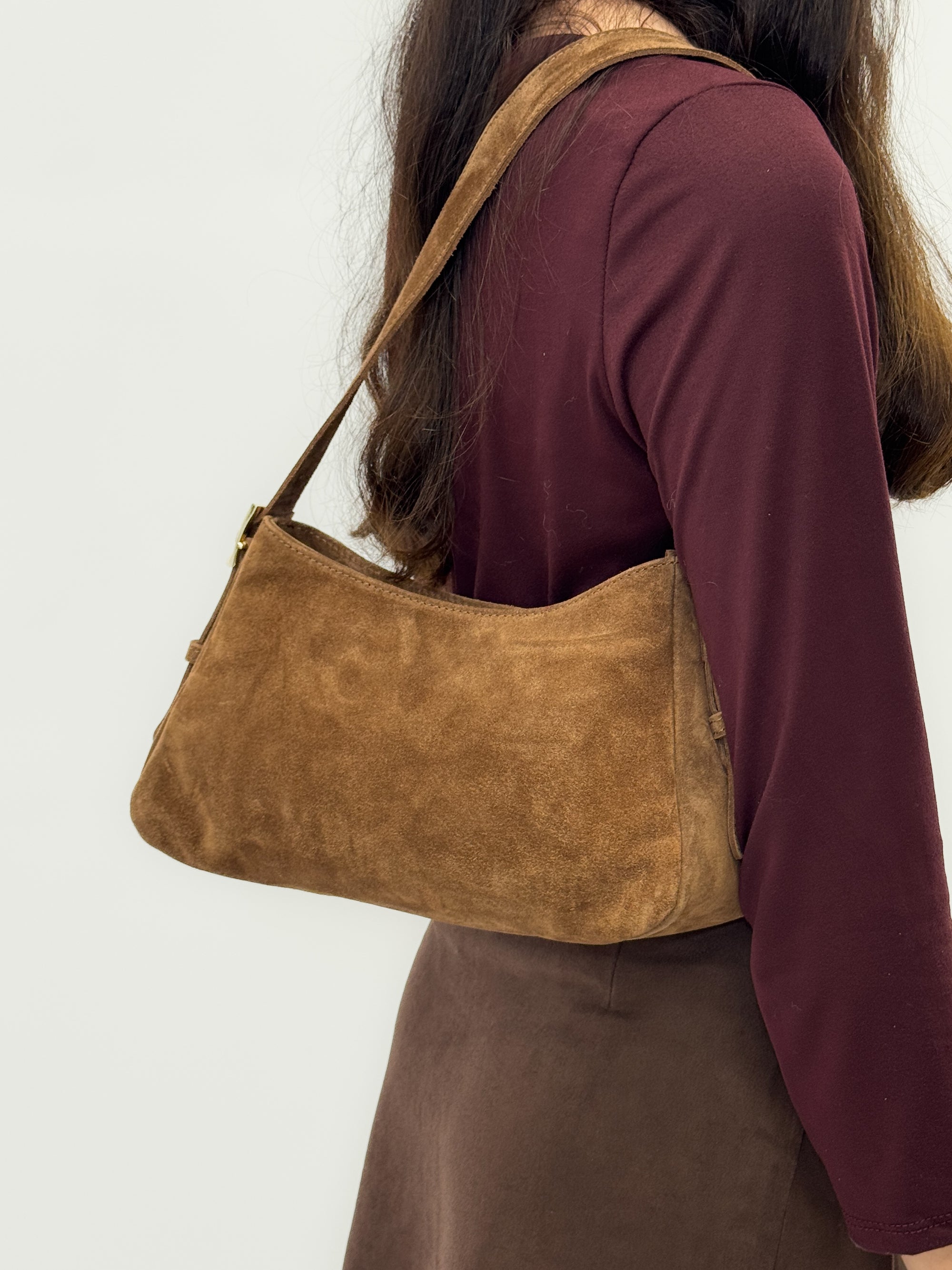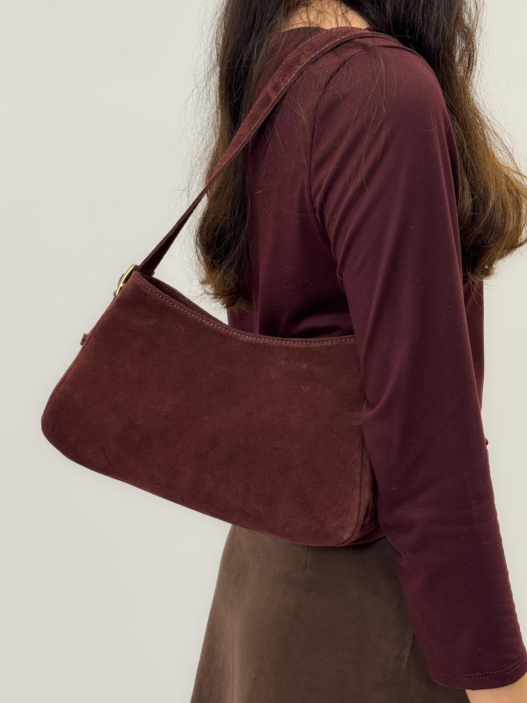Borsa a spalla in vera pelle scamosciata Made in Italy