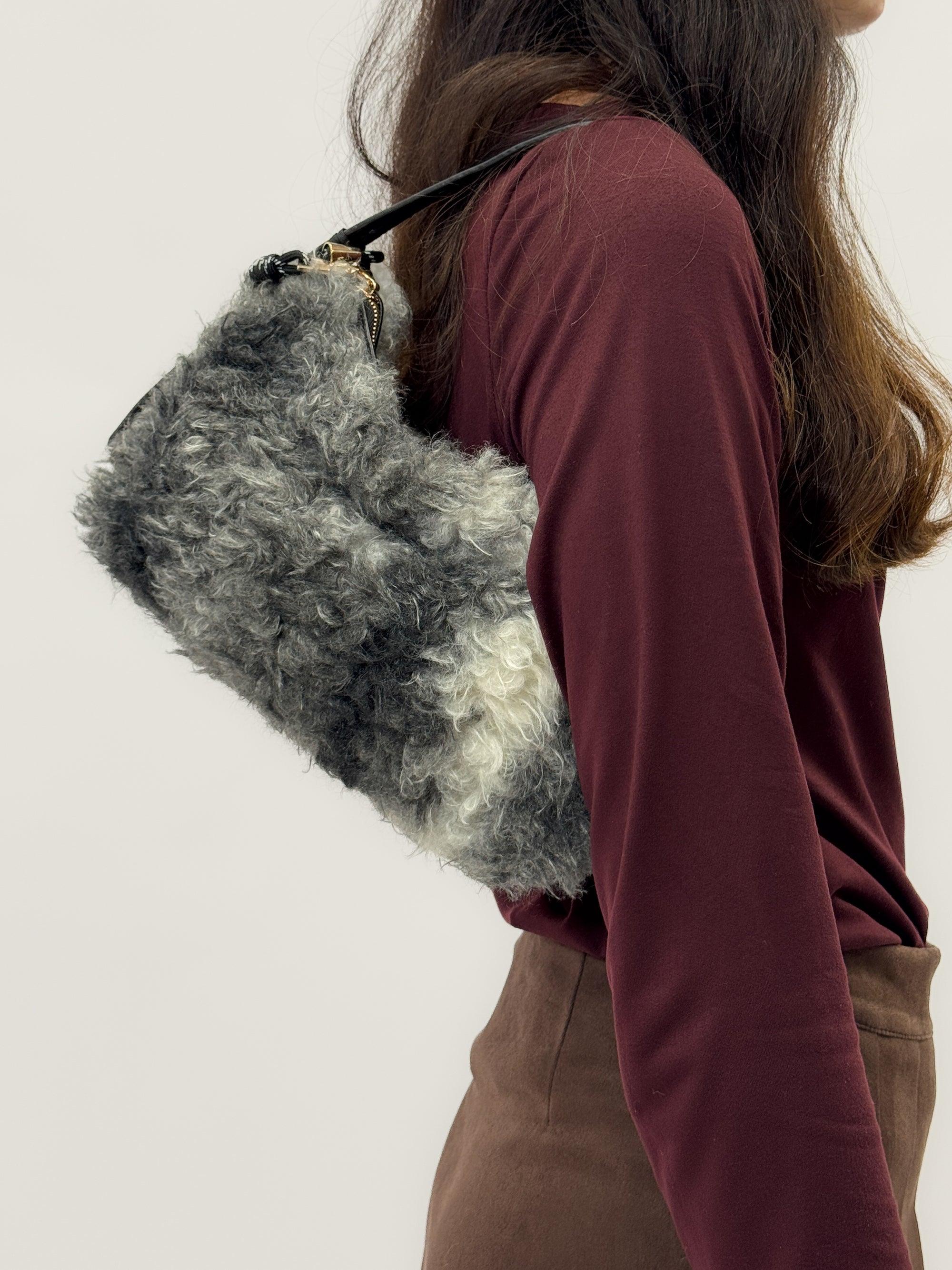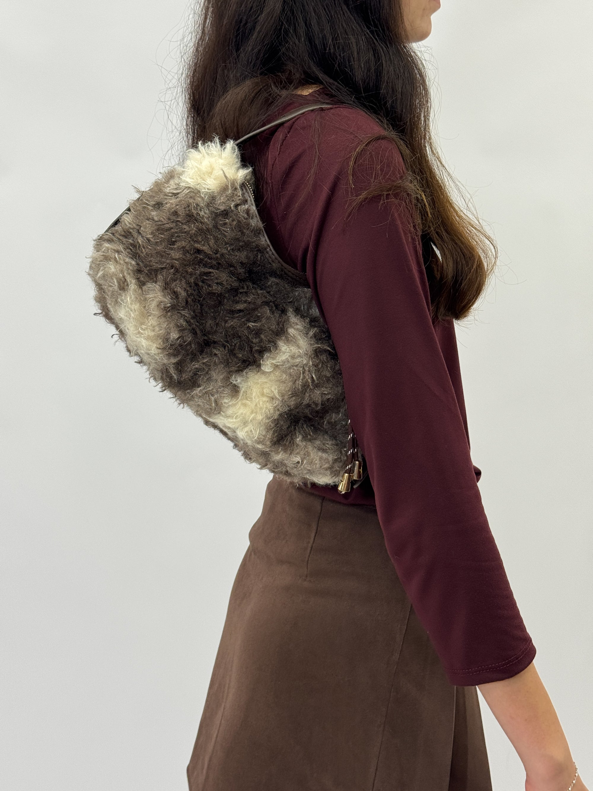 Borsa a spalla in eco pelliccia – Morbida con tracolla imbottita
