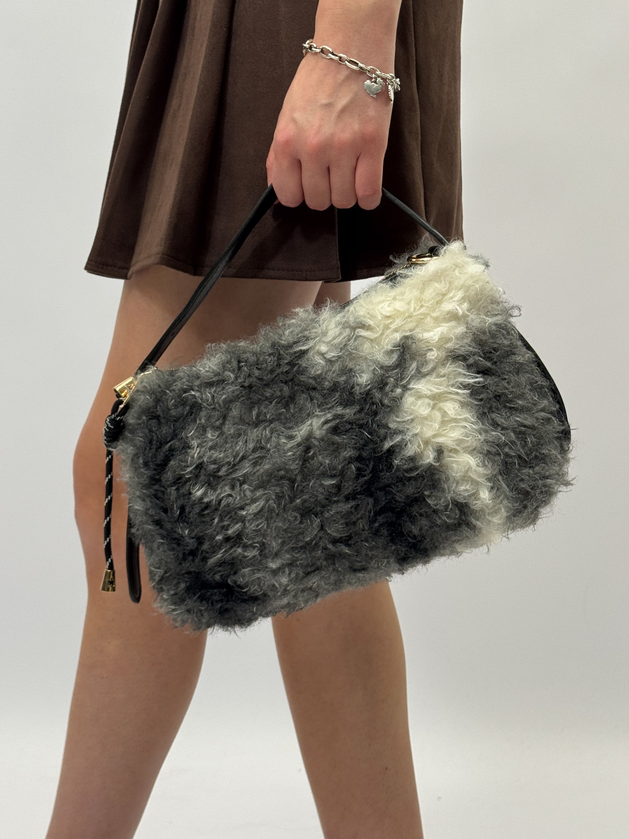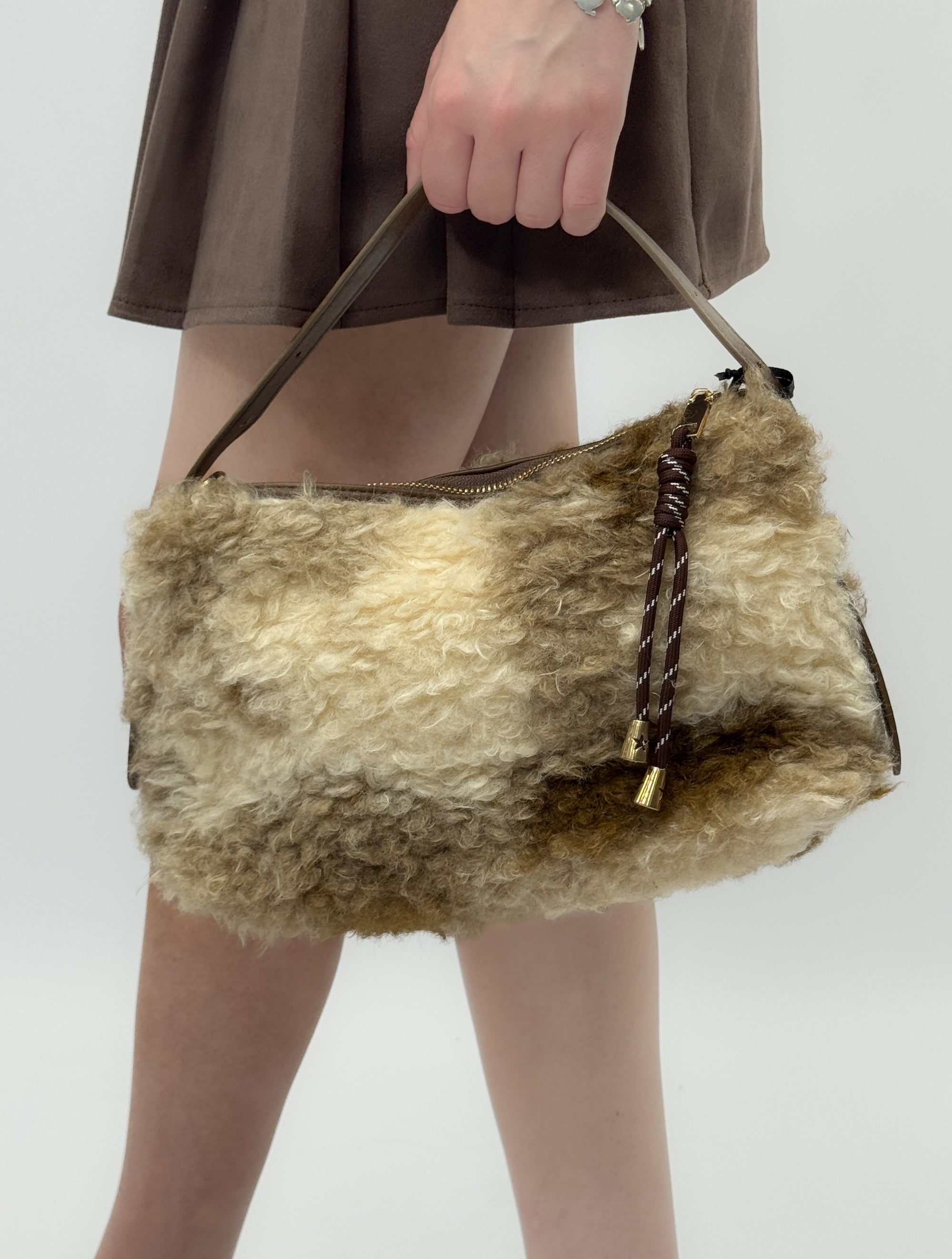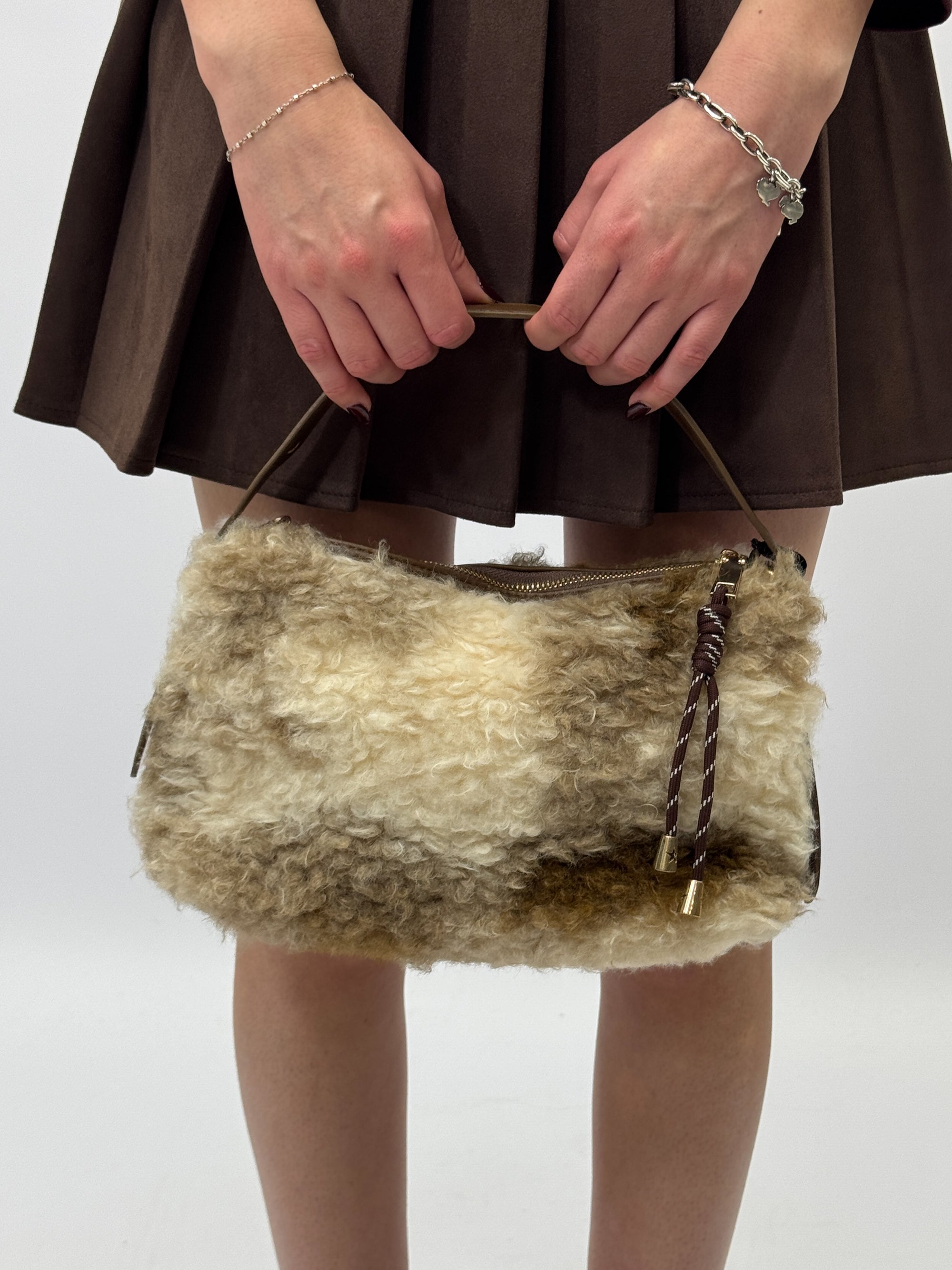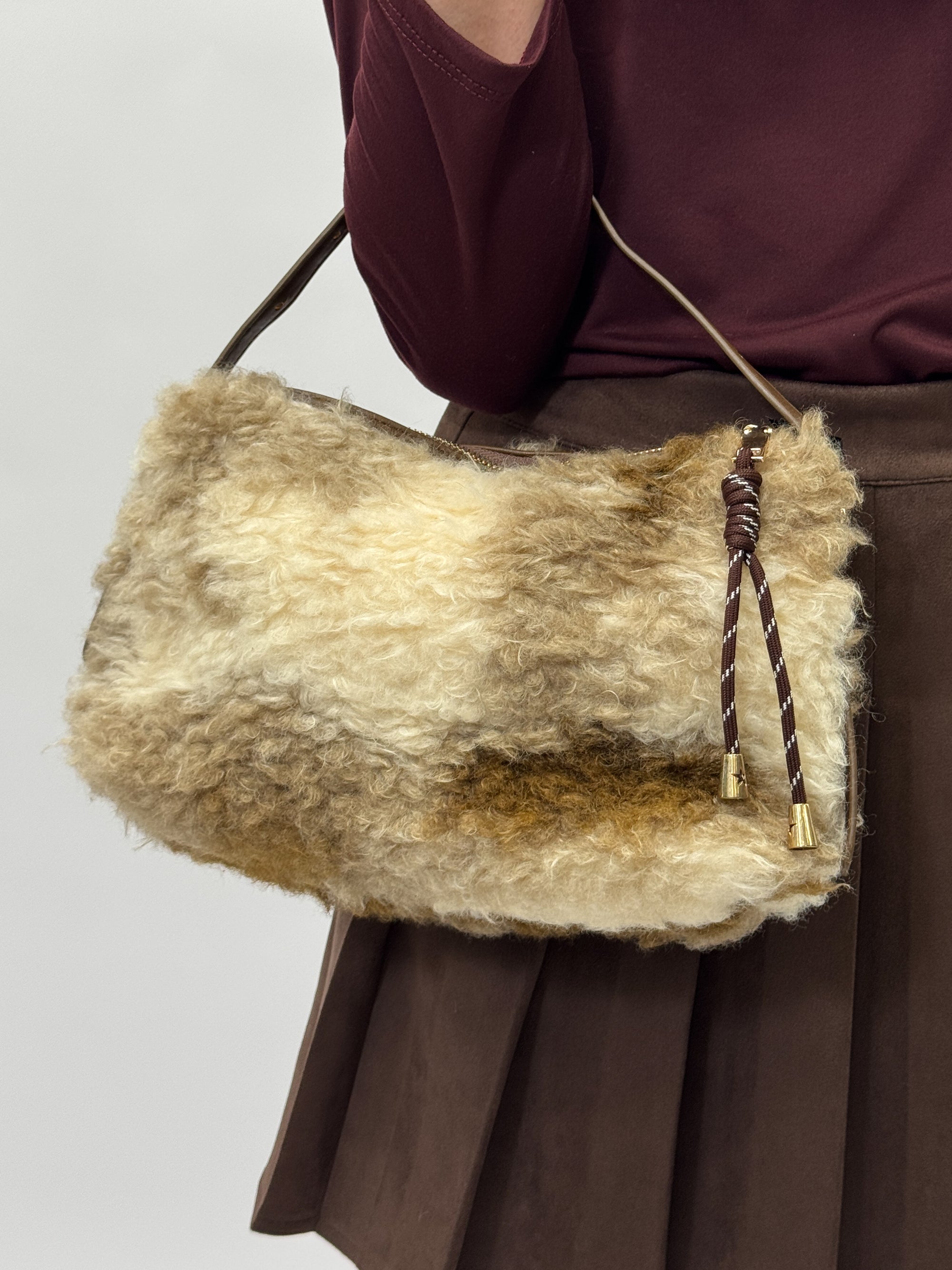 Borsa a mano in shearling effetto lana