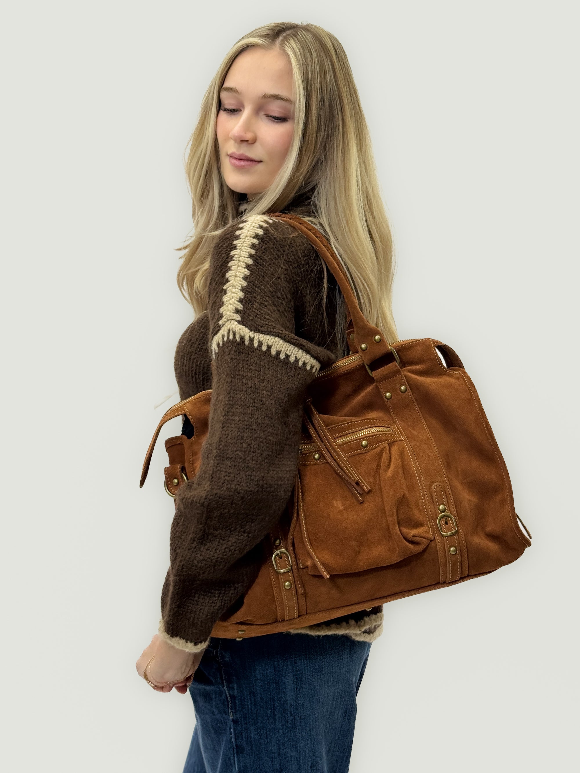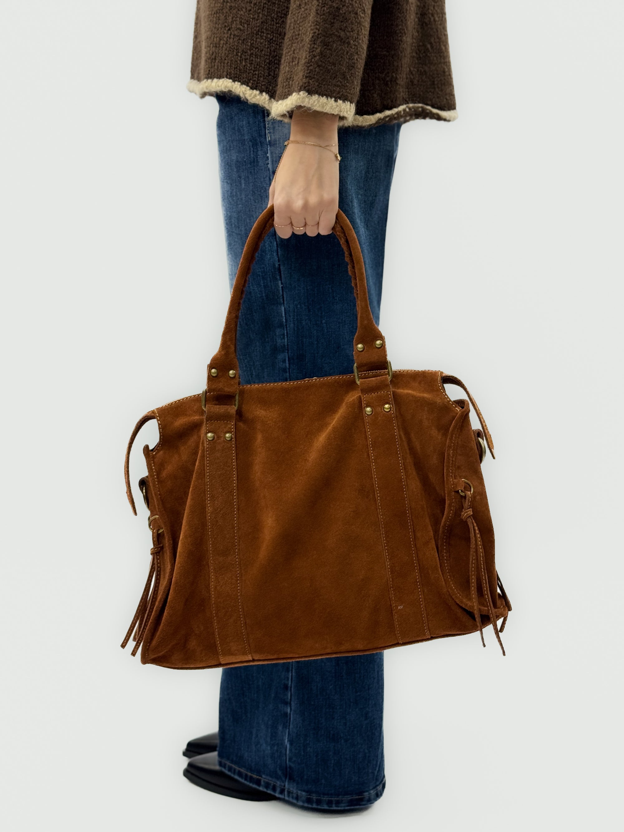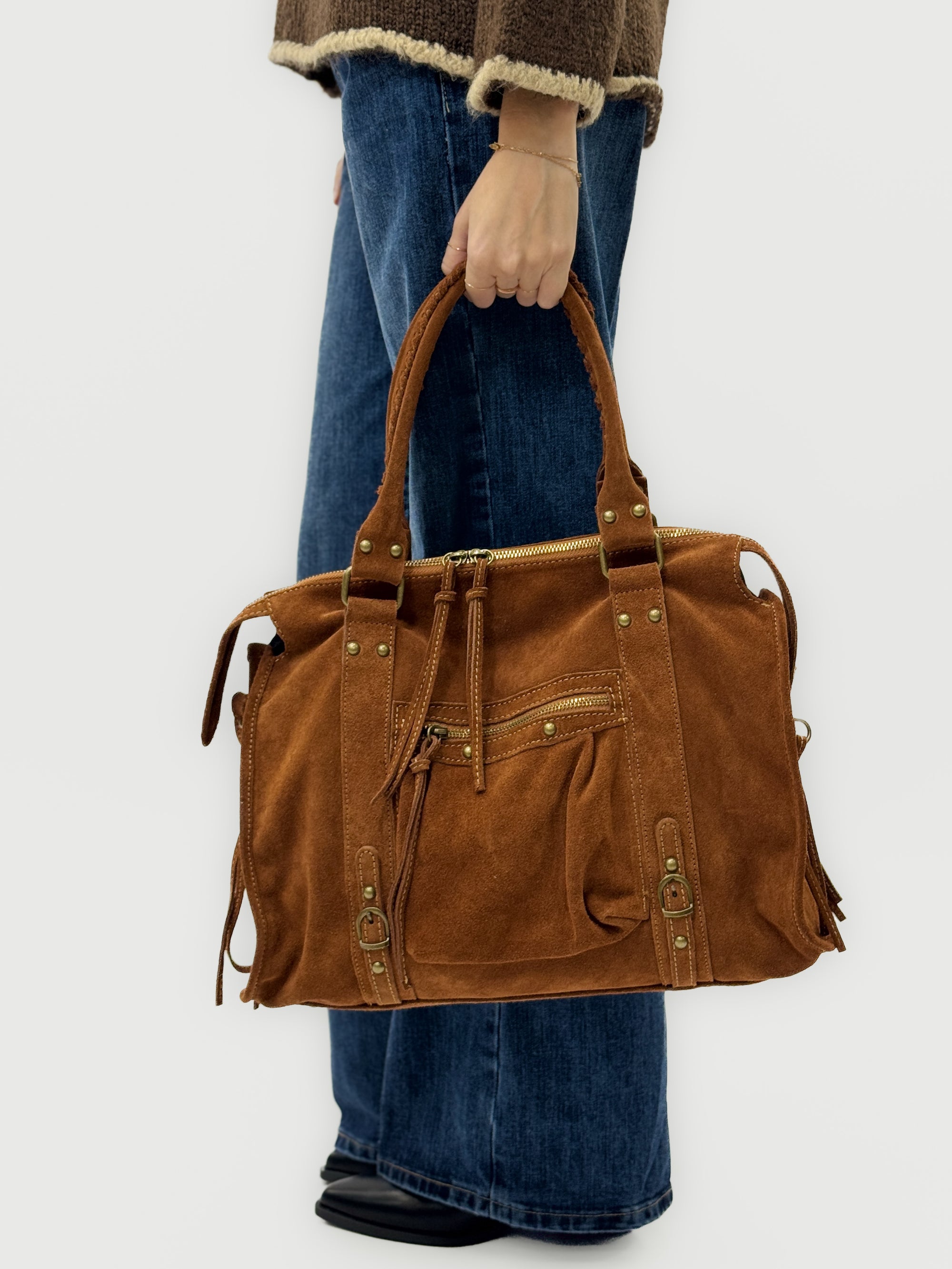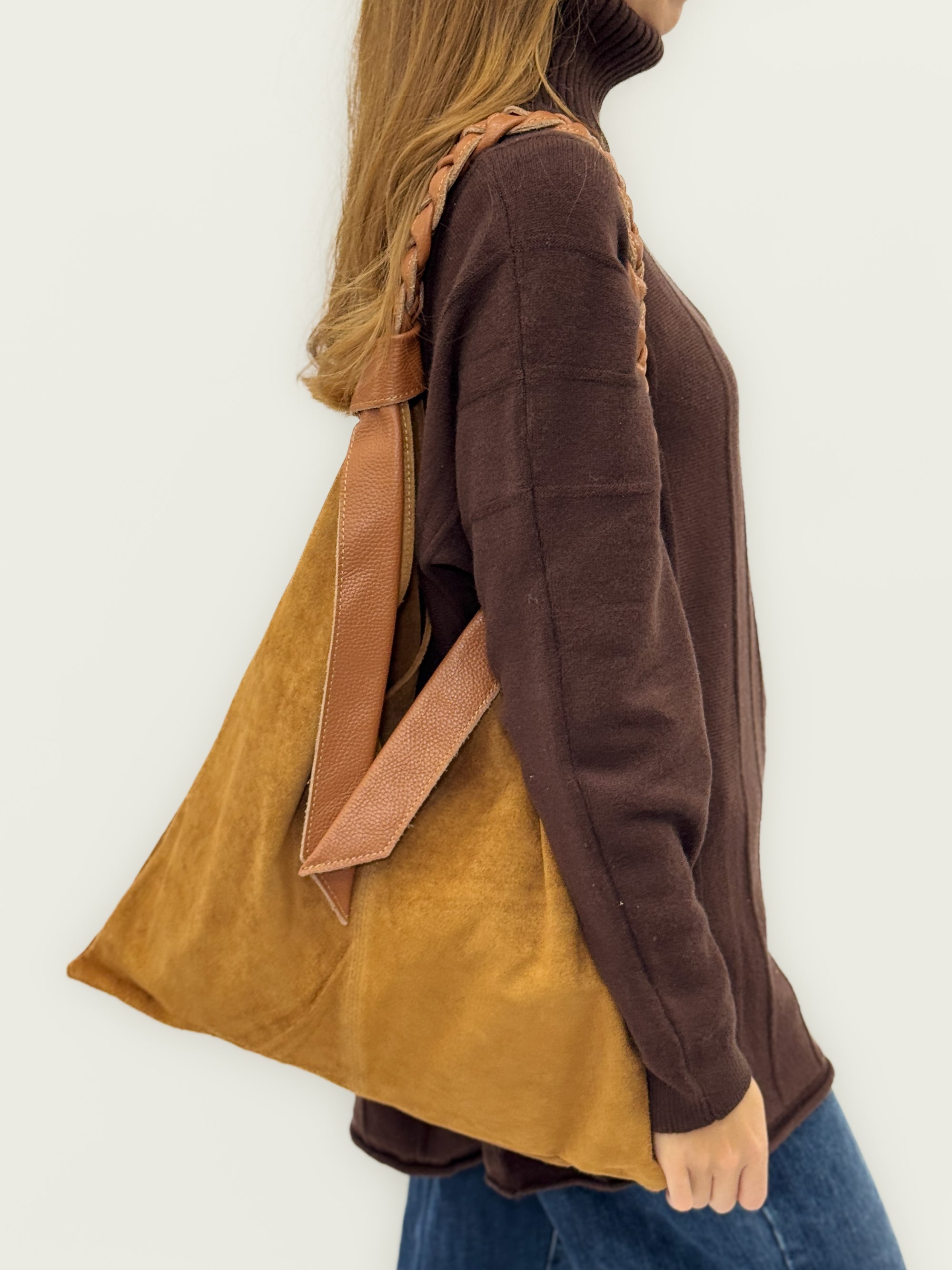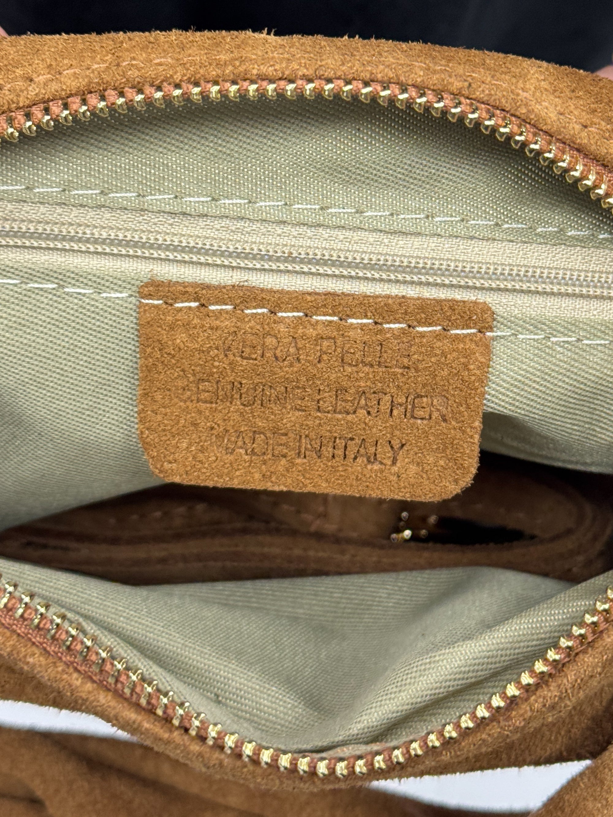 Borsa in vera pelle scamosciata color cuoio – Made in Italy