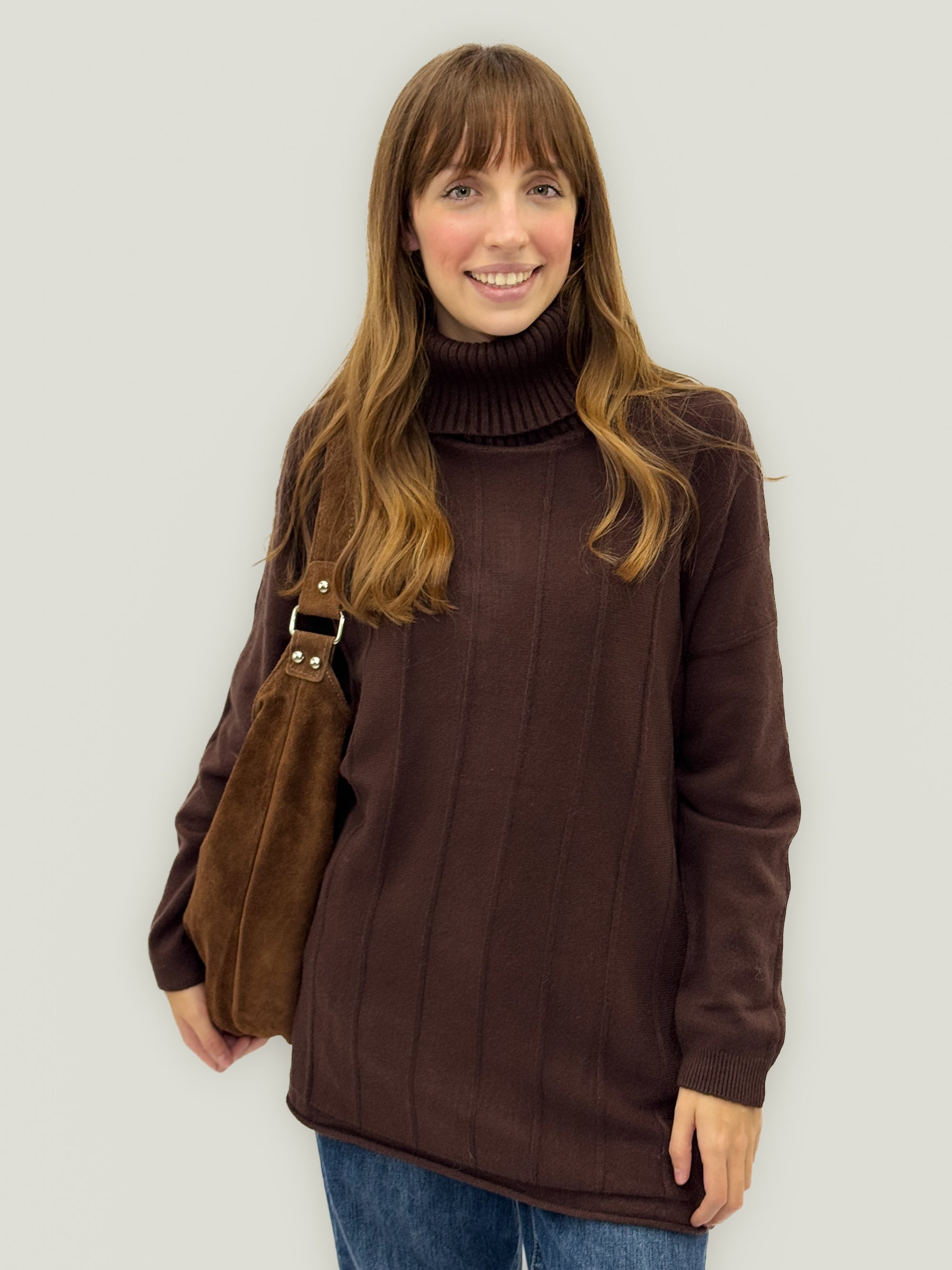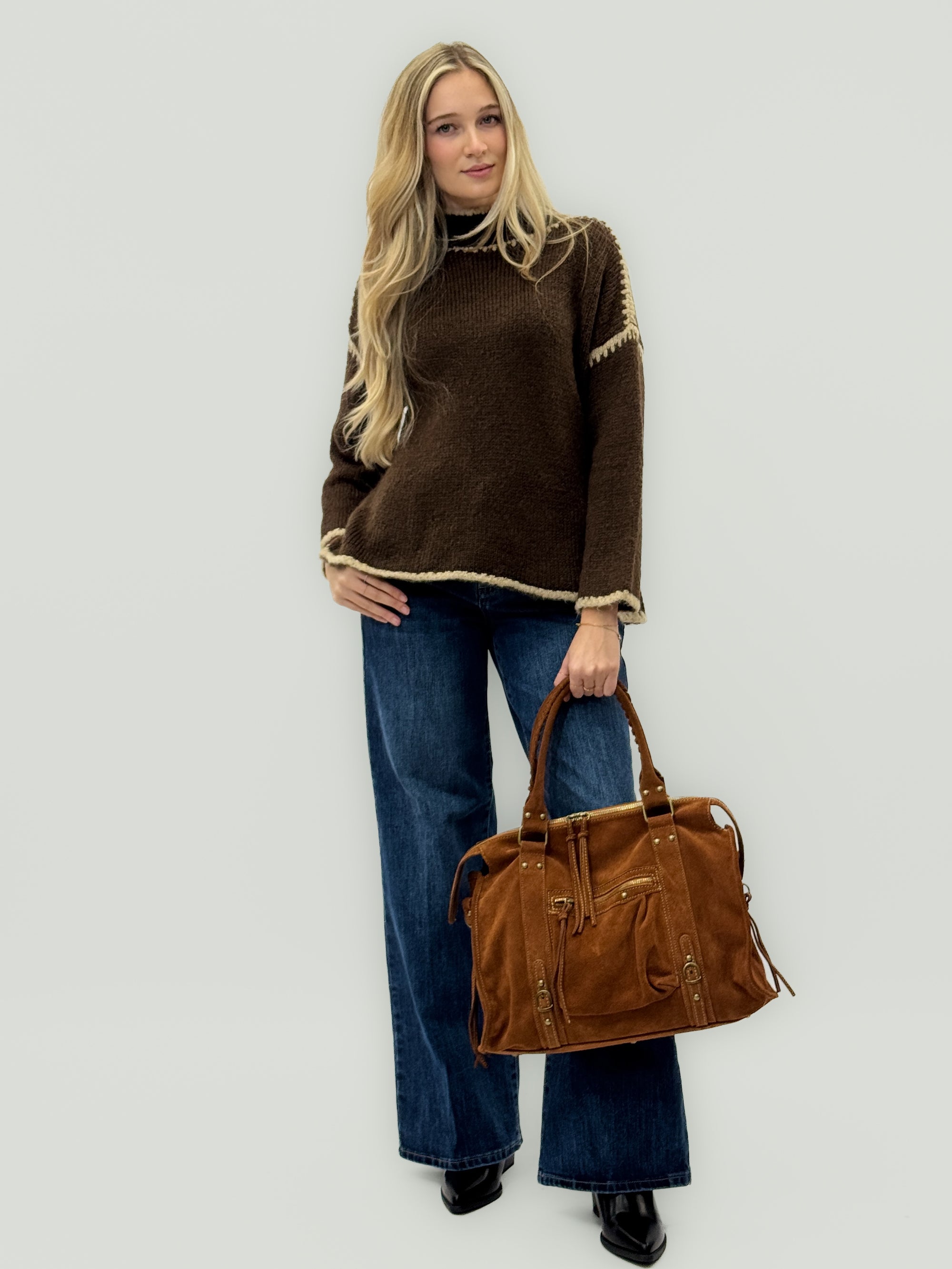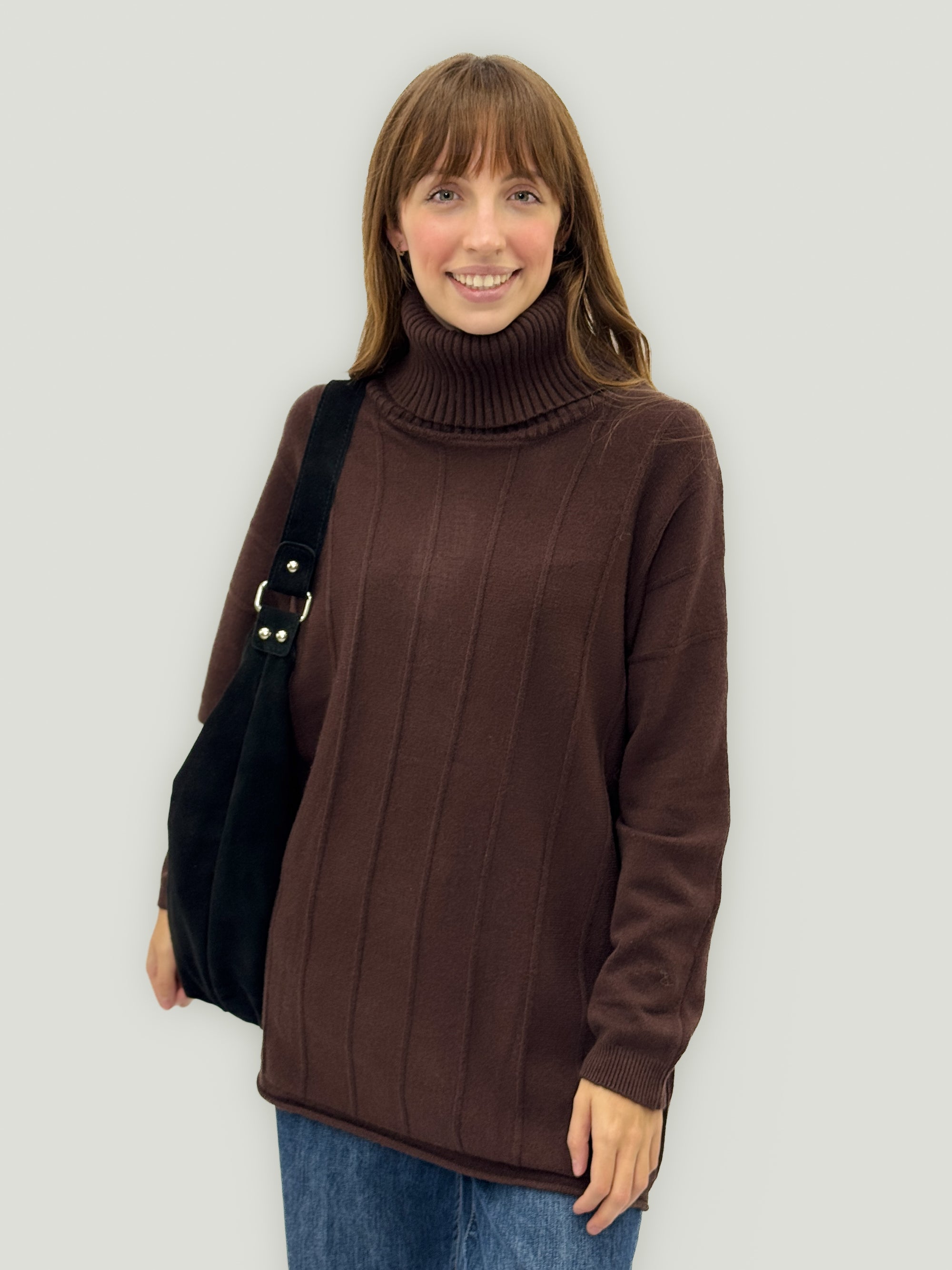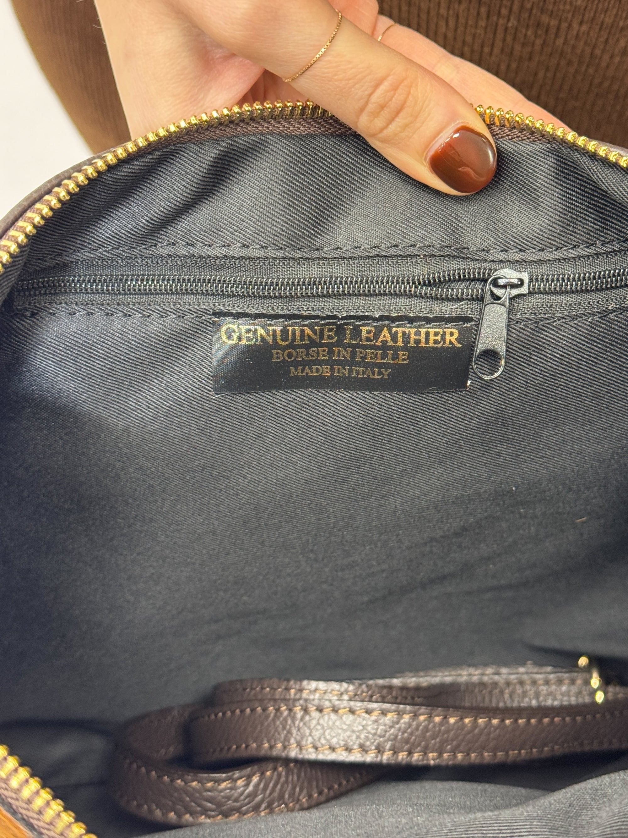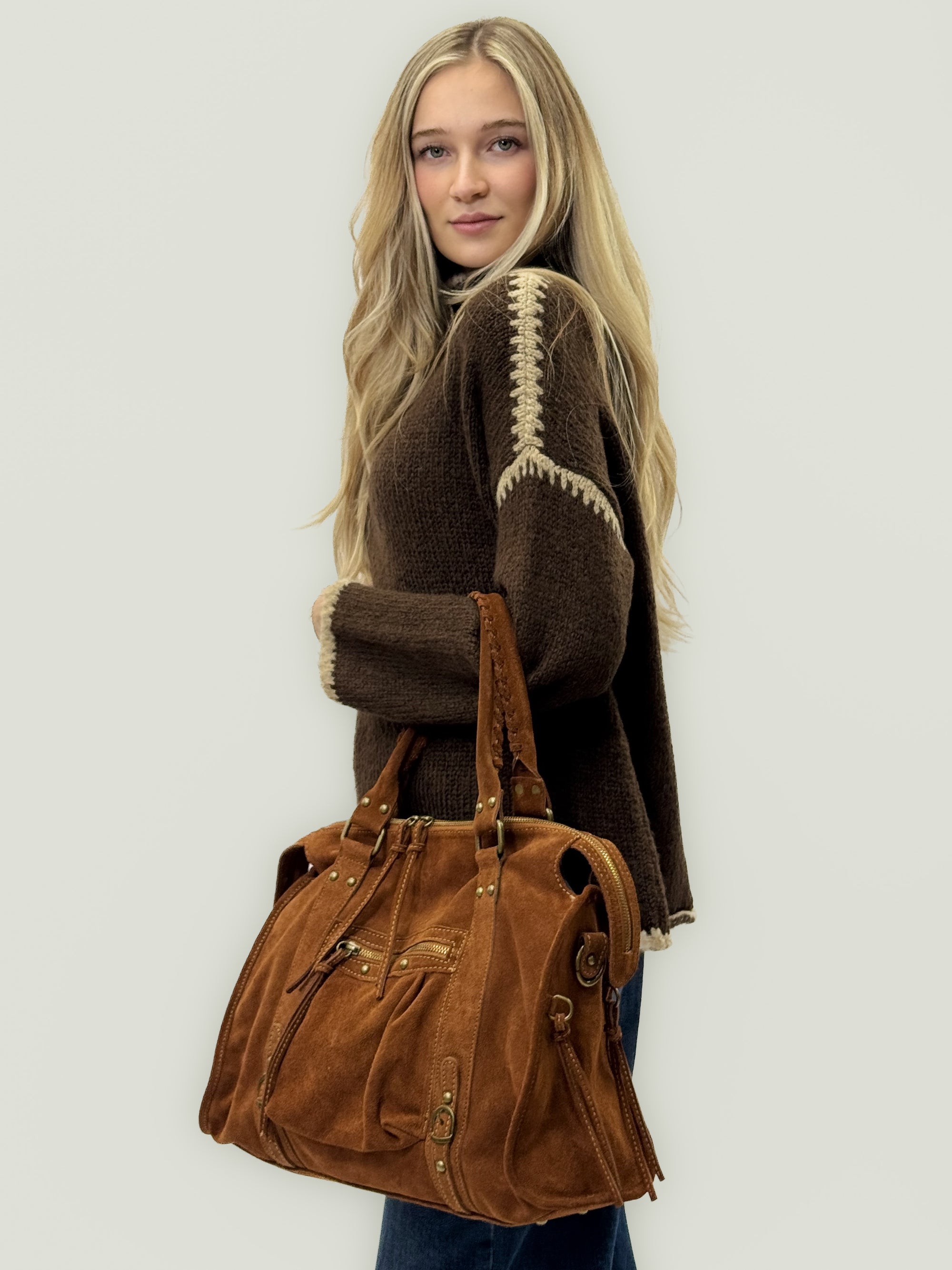 Borsa in vera pelle scamosciata color cuoio – Made in Italy