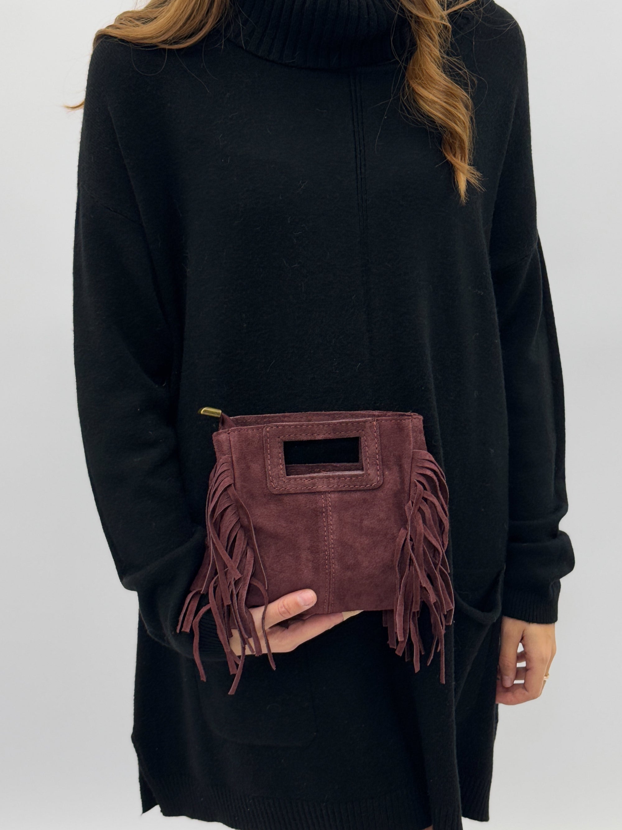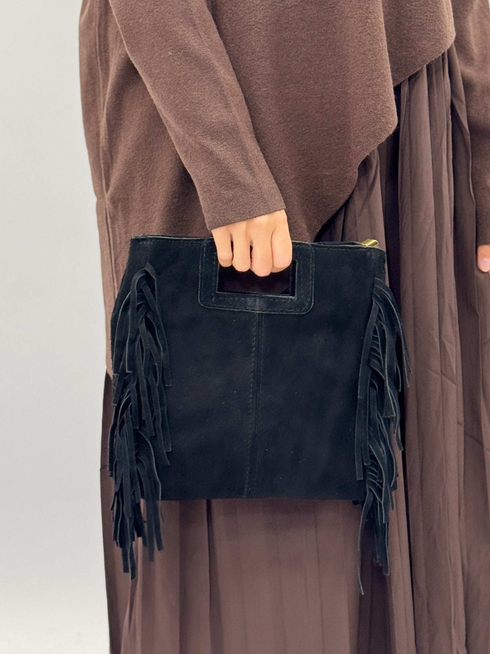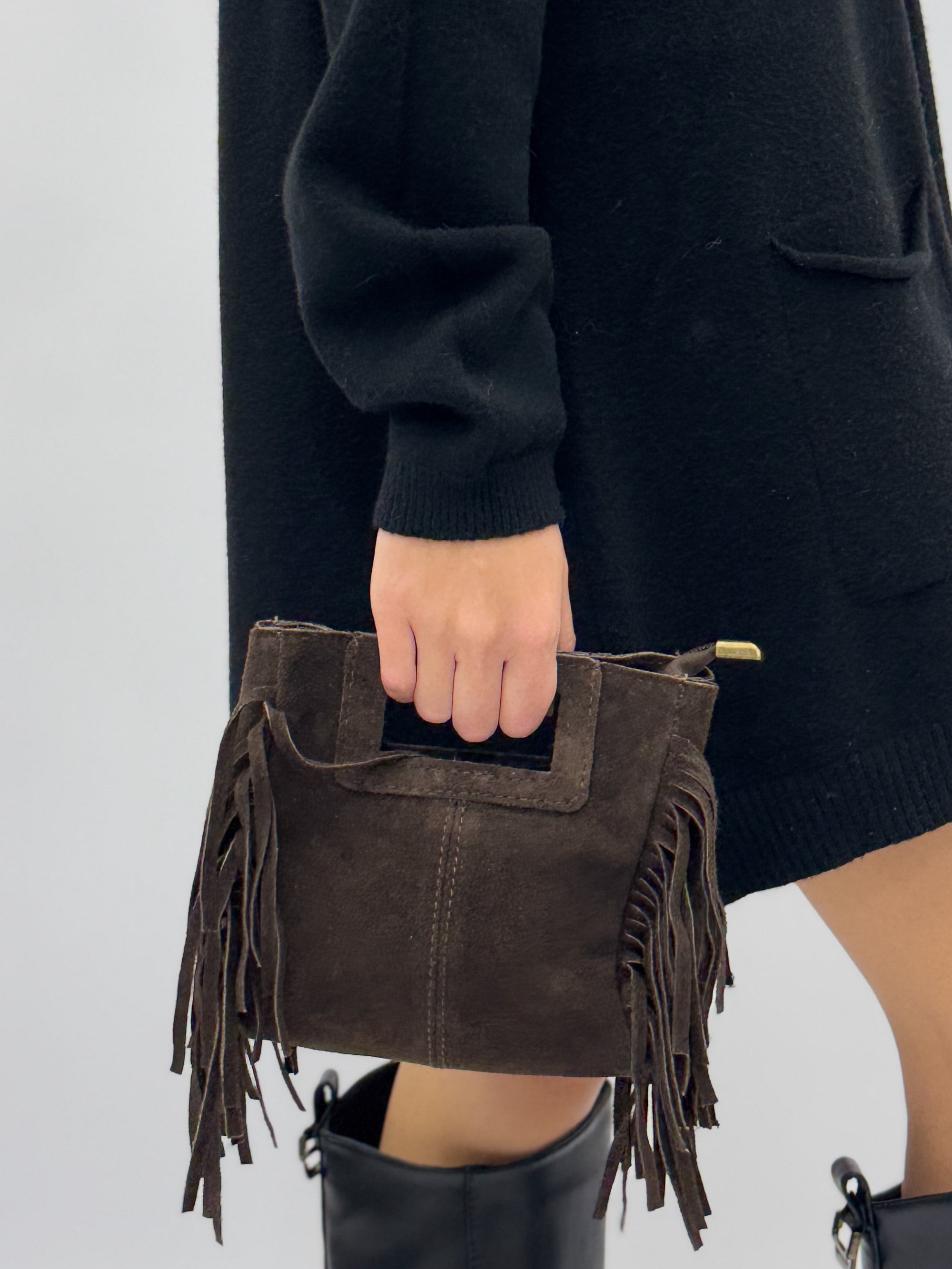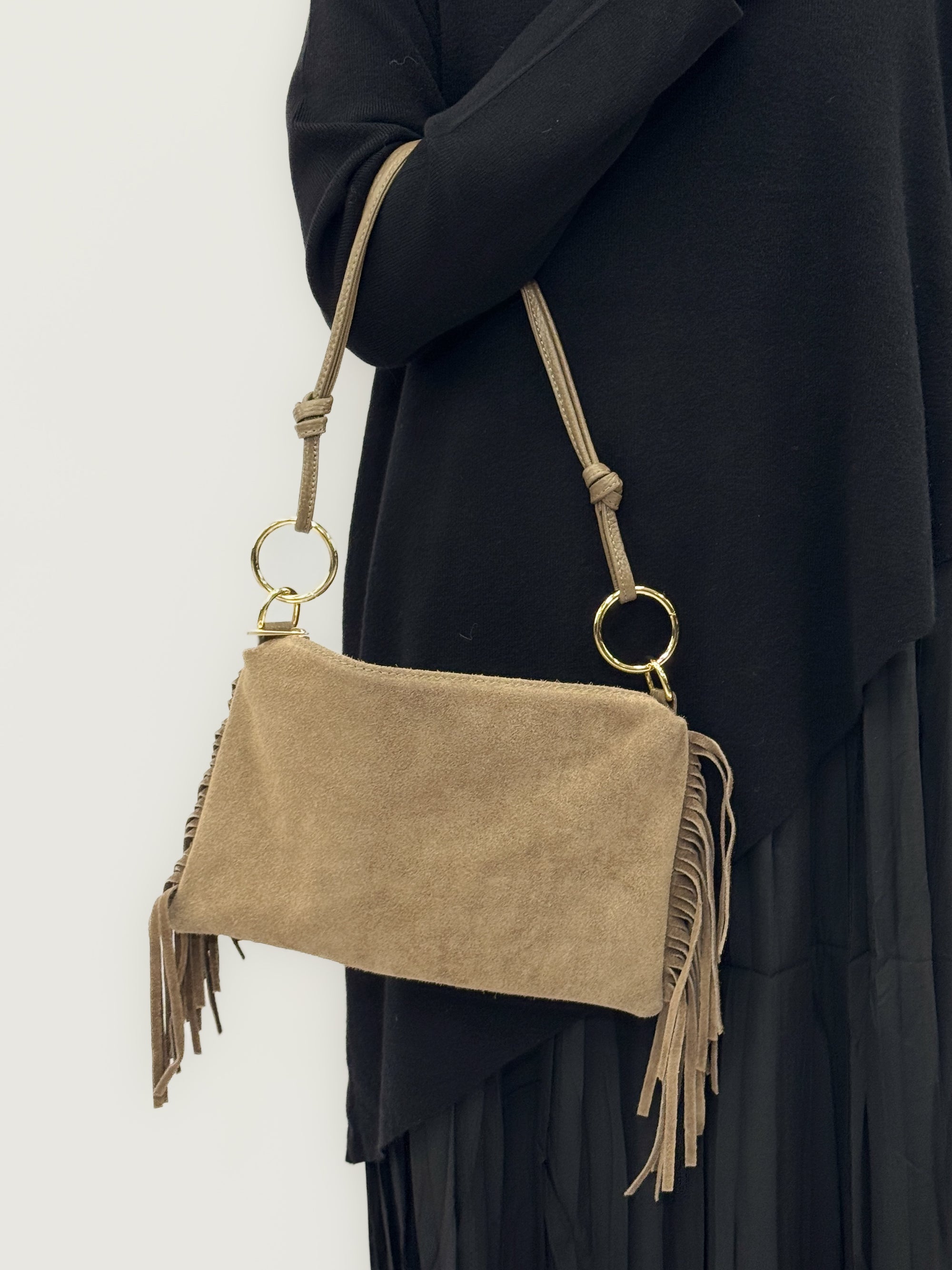 Borsa mini in vera pelle scamosciata con frange – Made in Italy