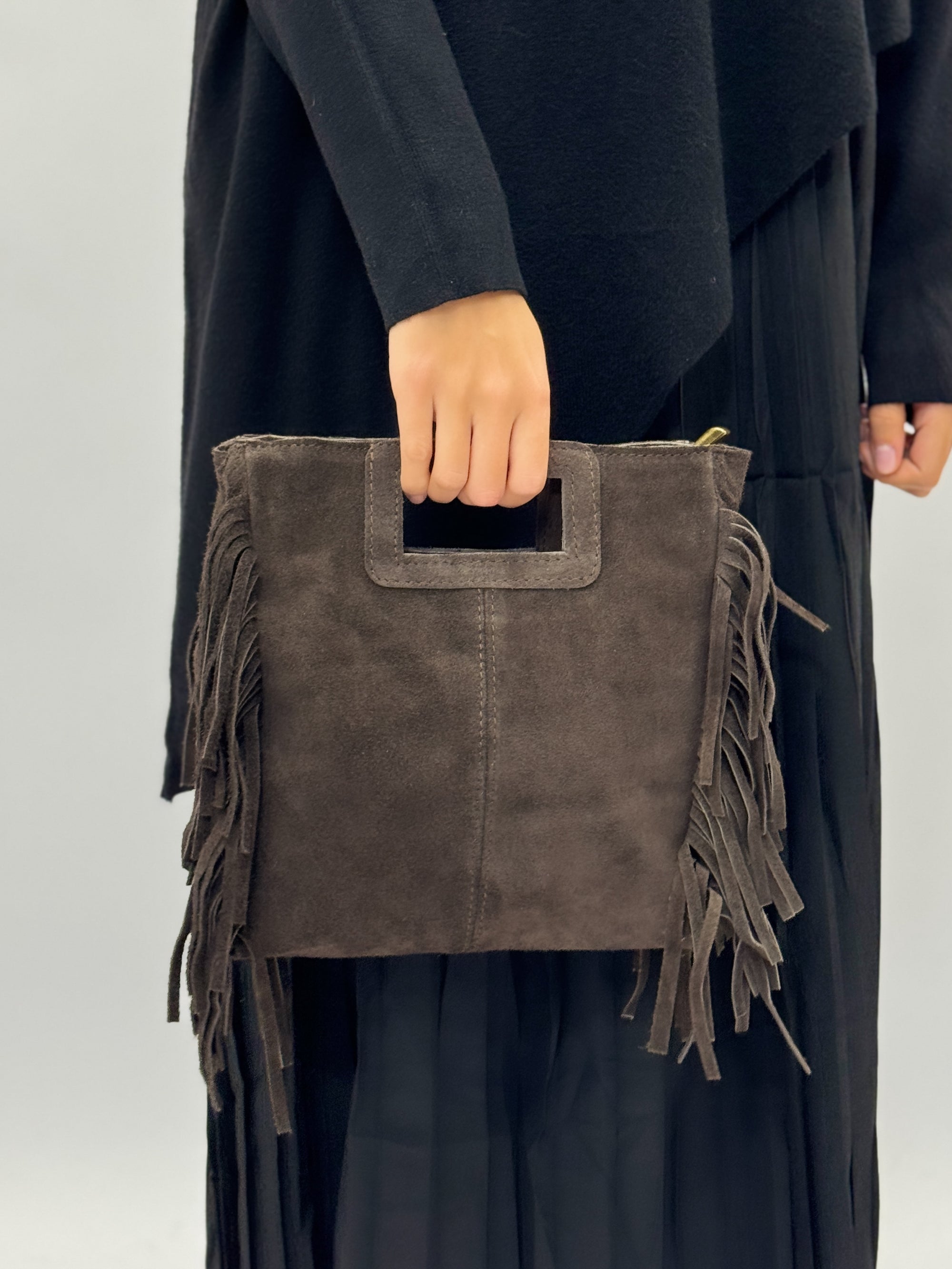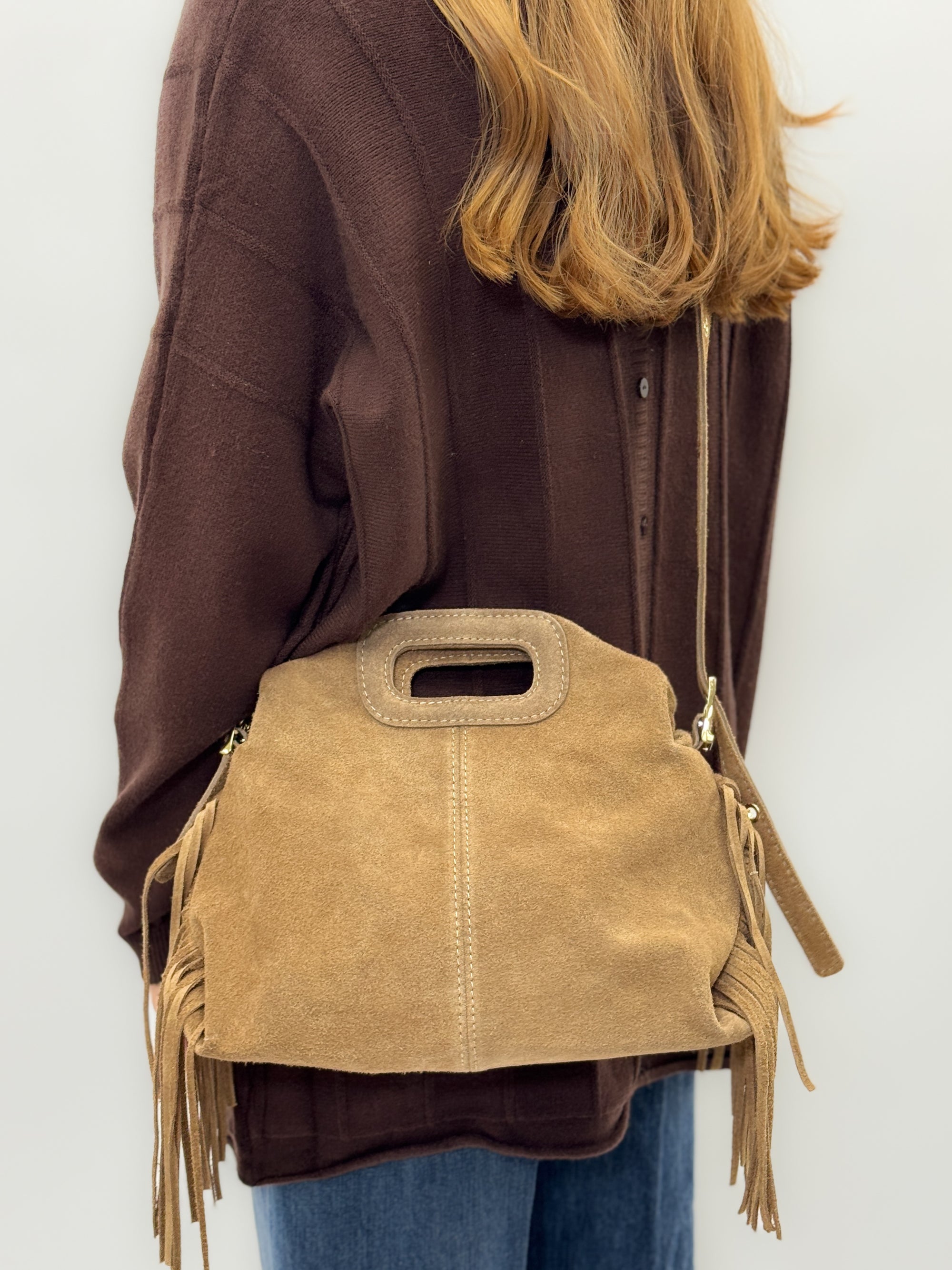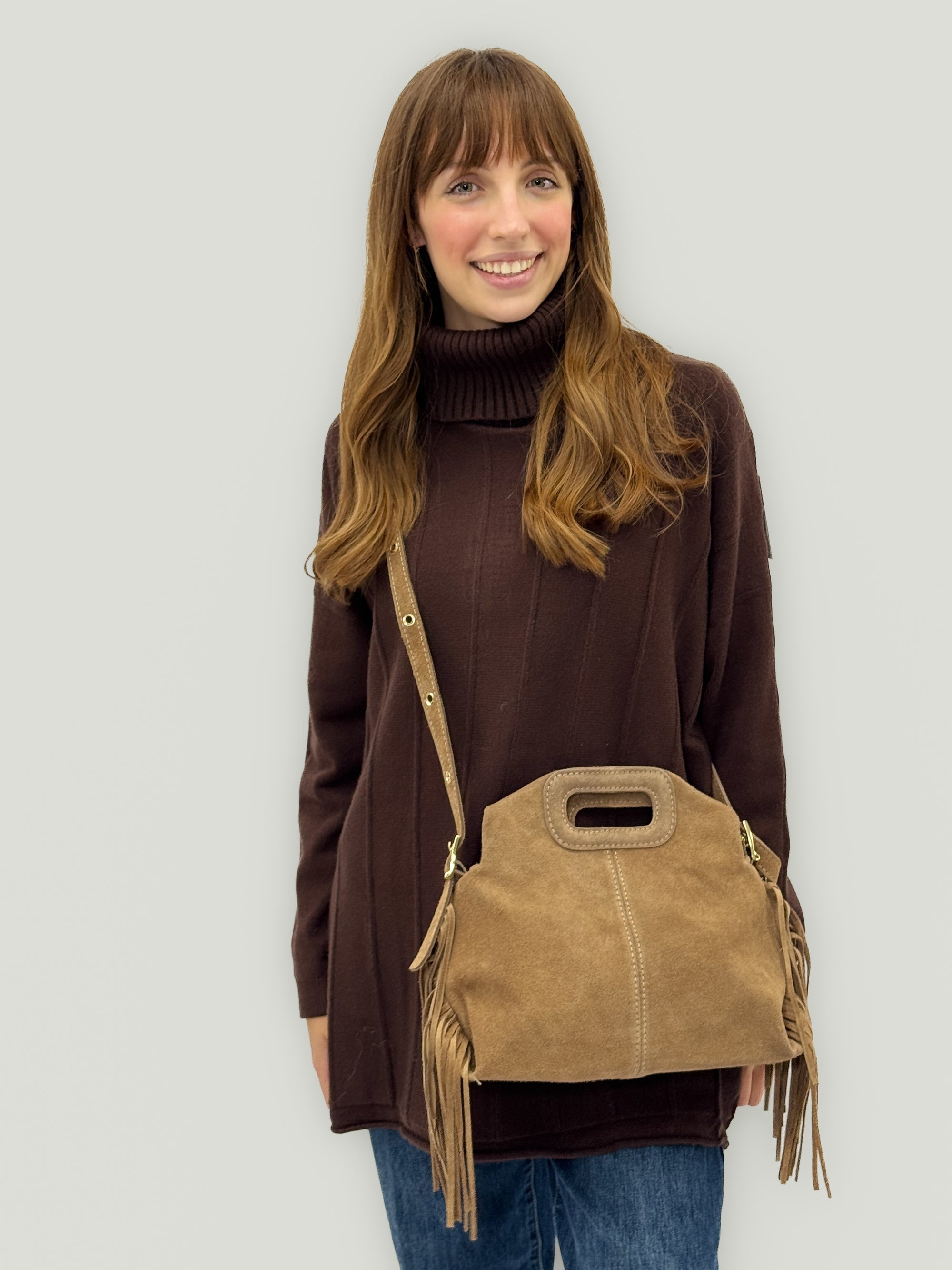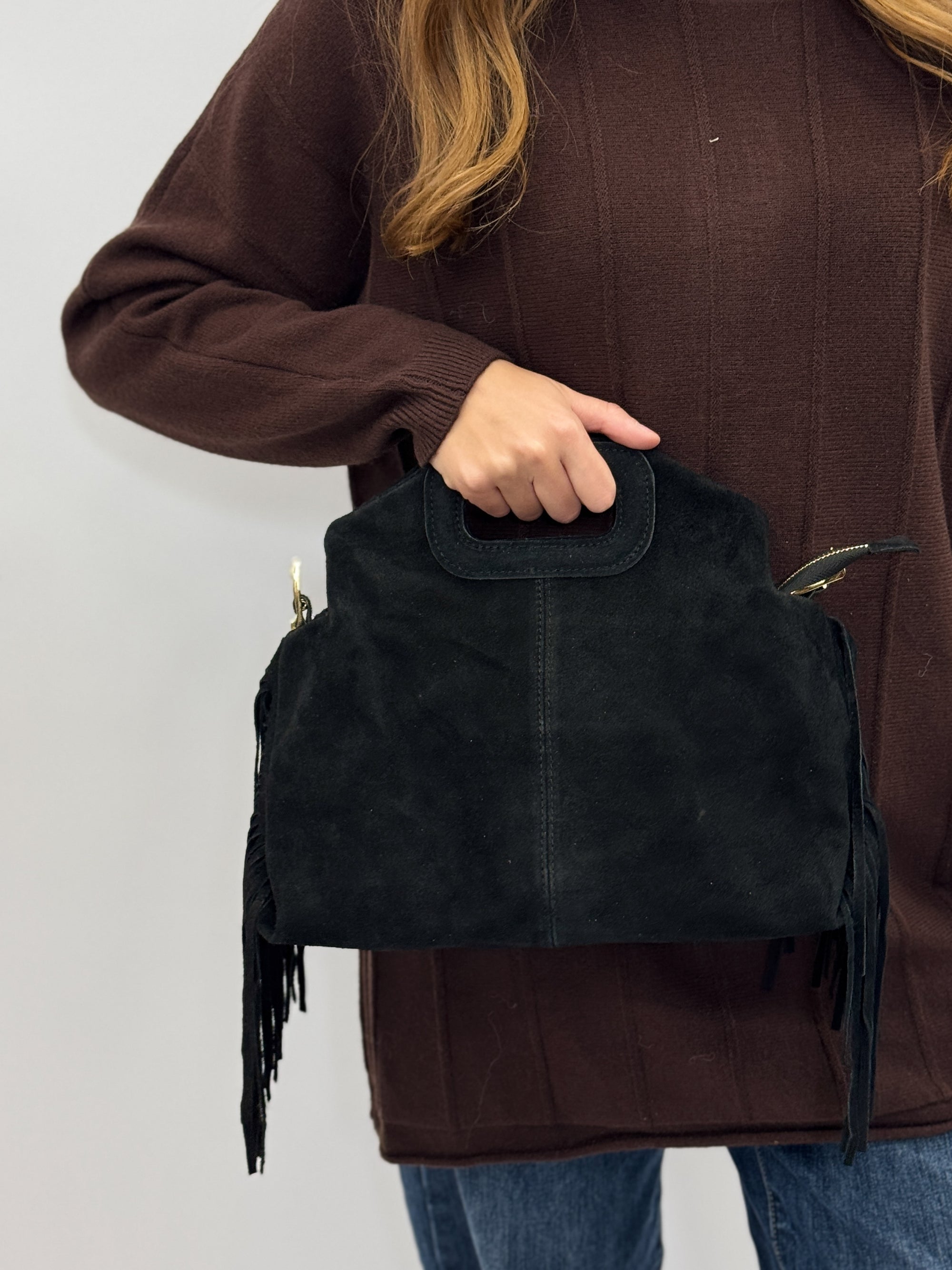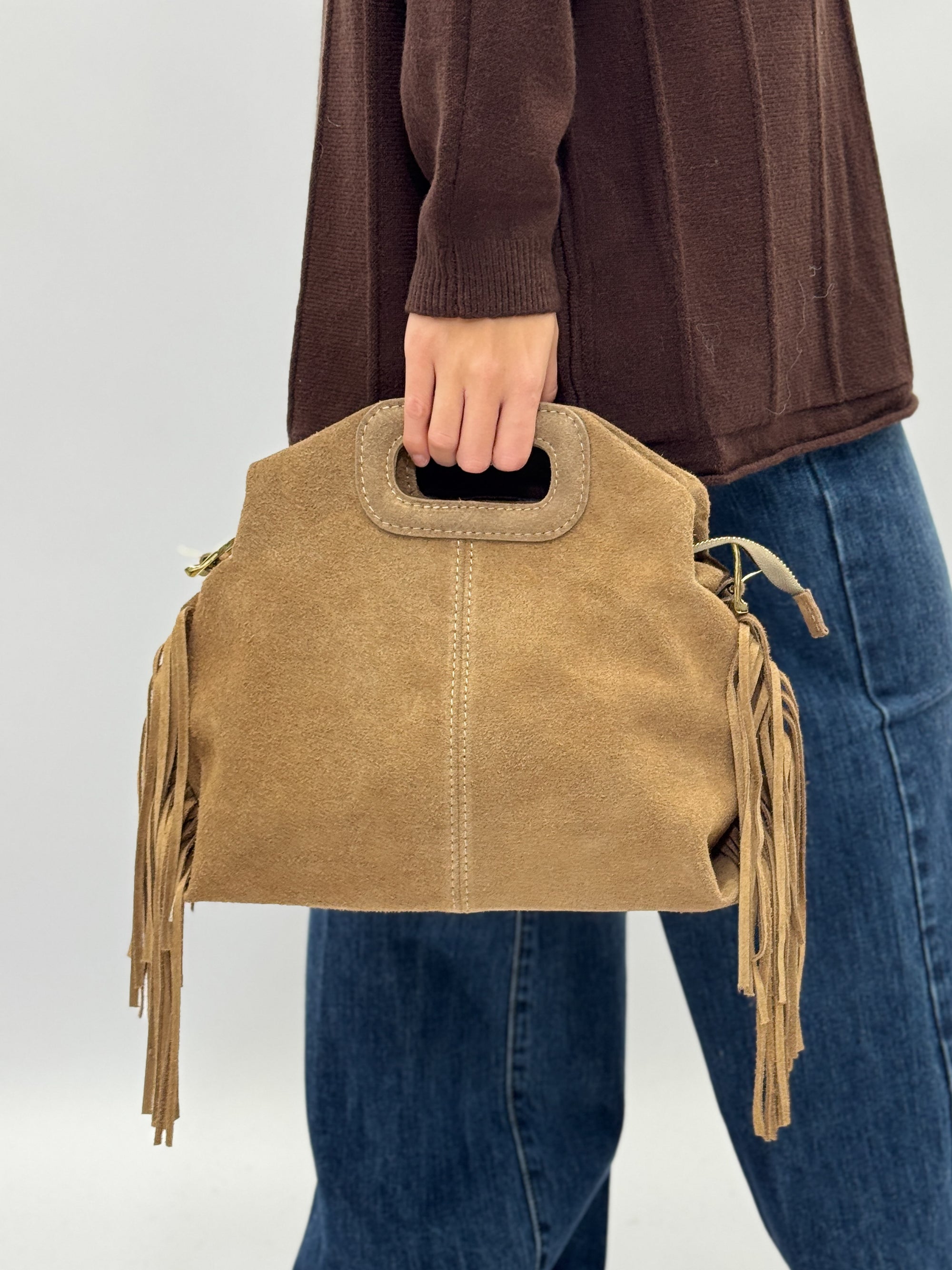Borsa in Vera Pelle Scamosciata con Frange – Made in Italy