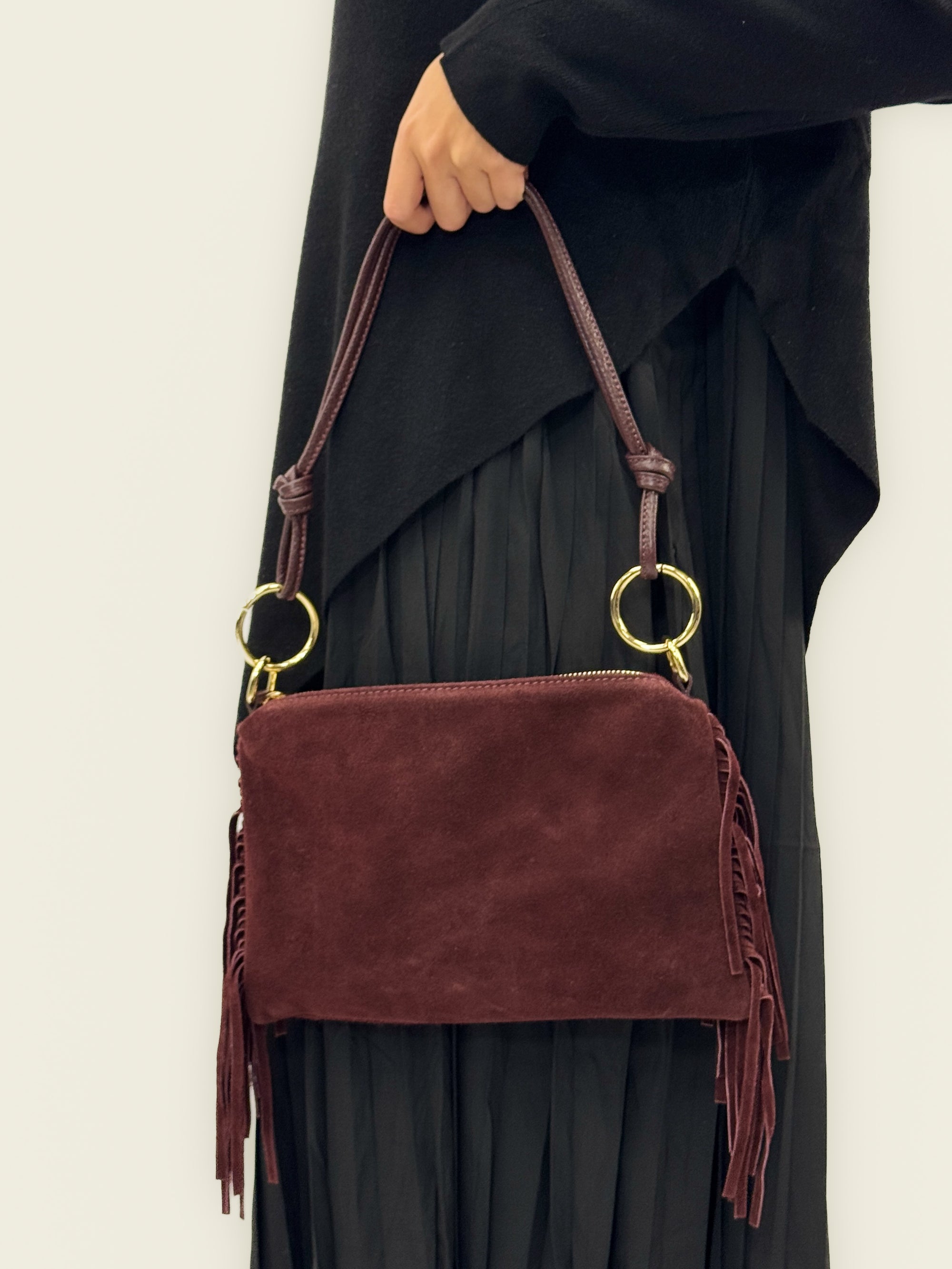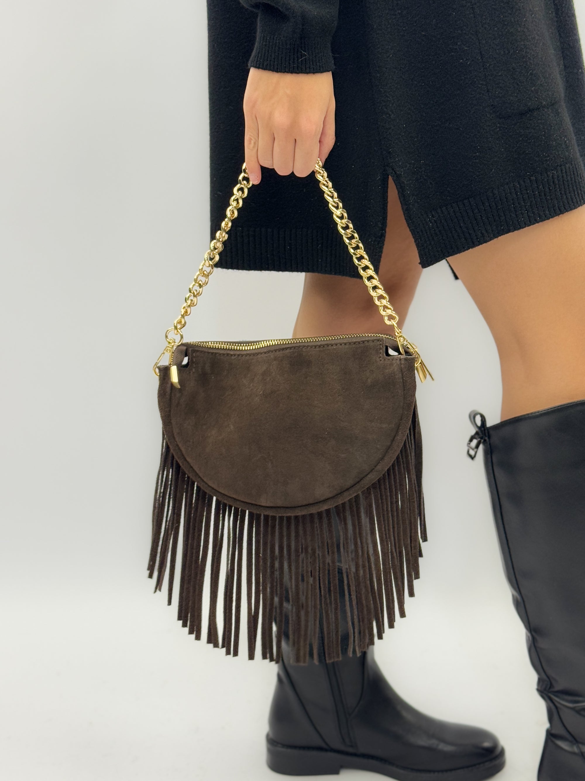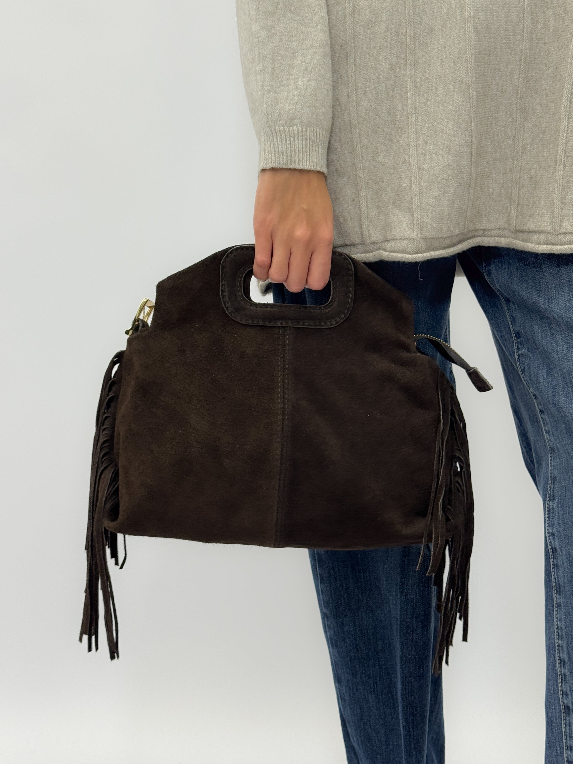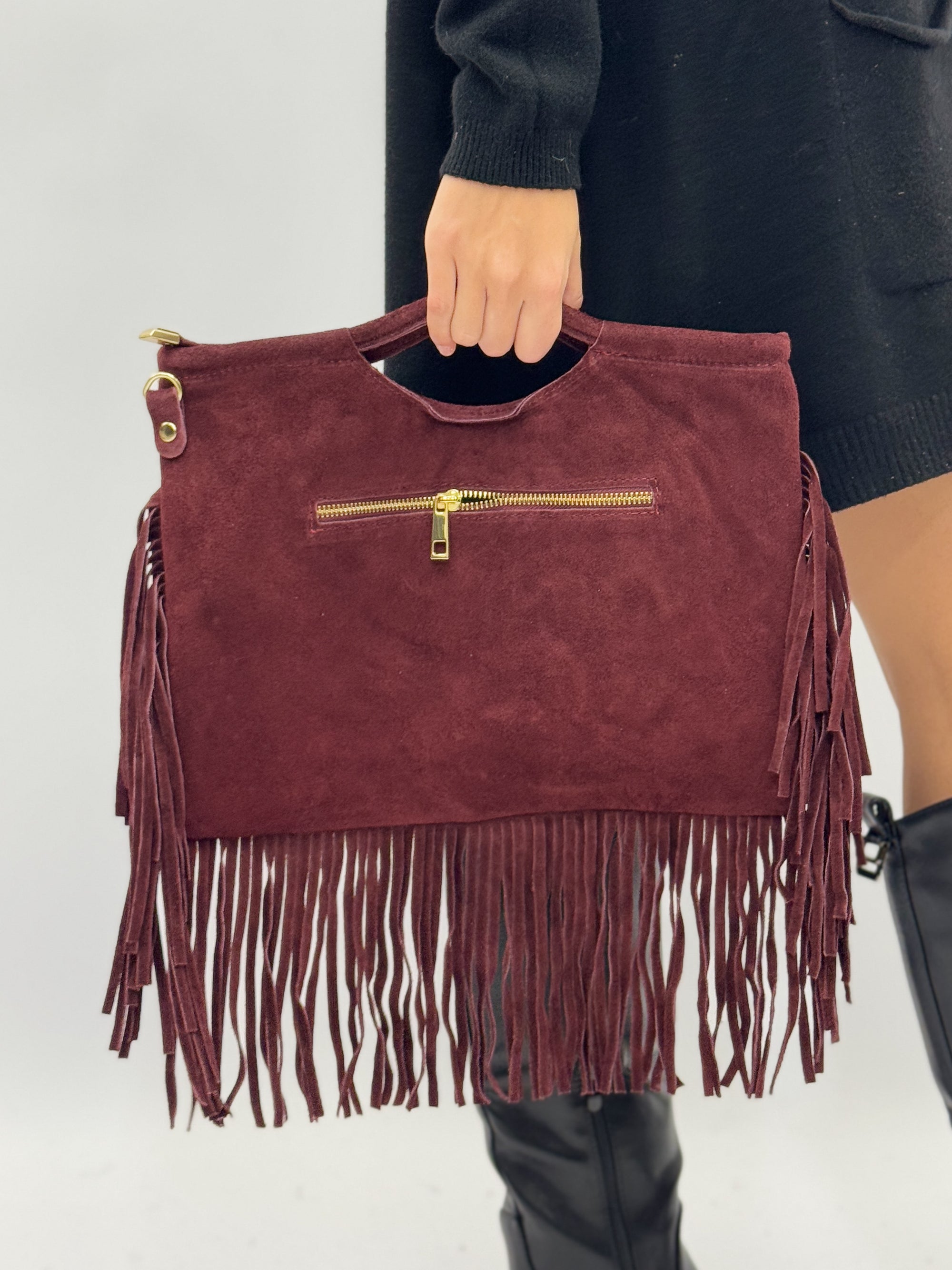 Borsa in vera pelle scamosciata con frange – Made in Italy