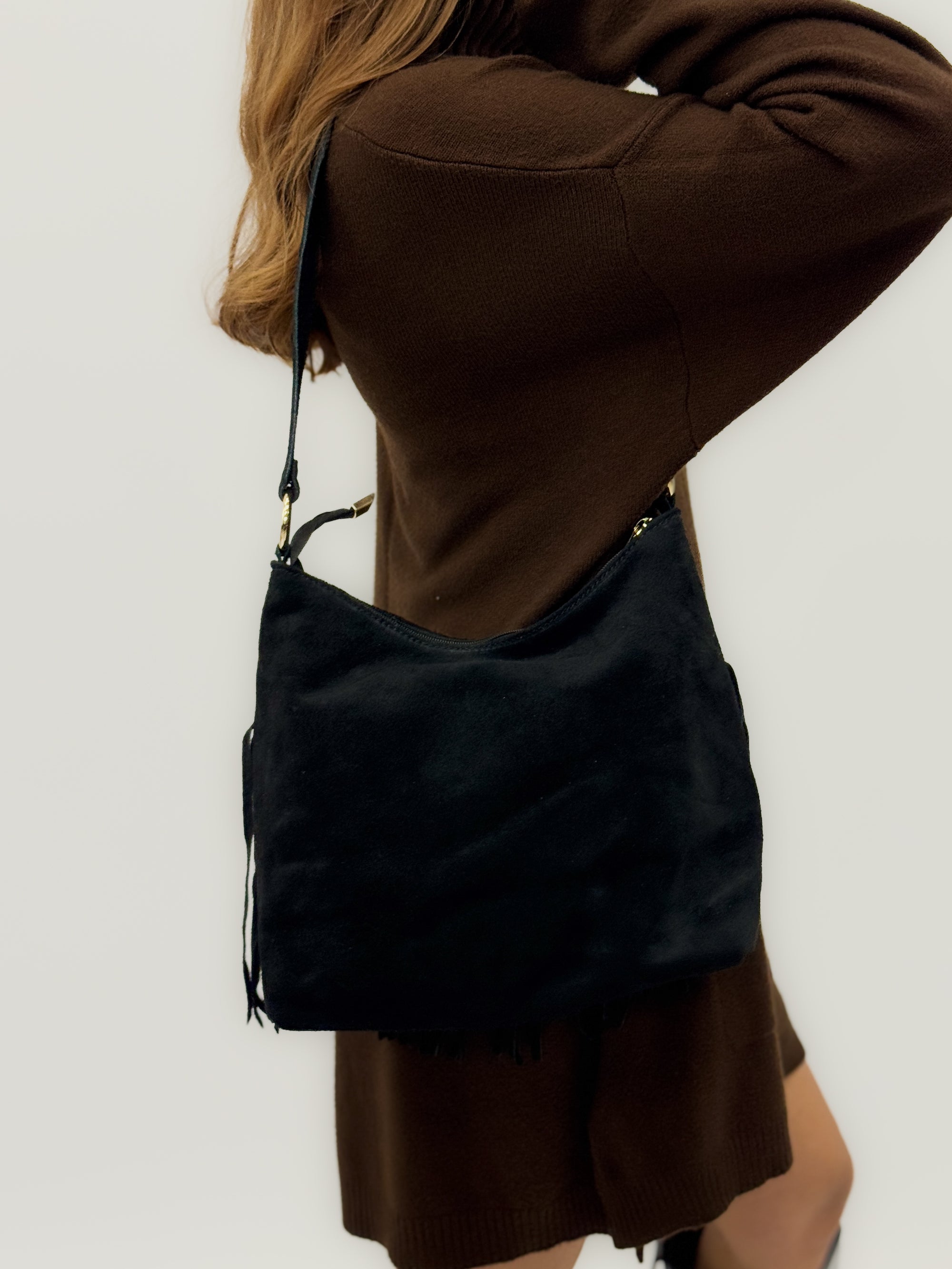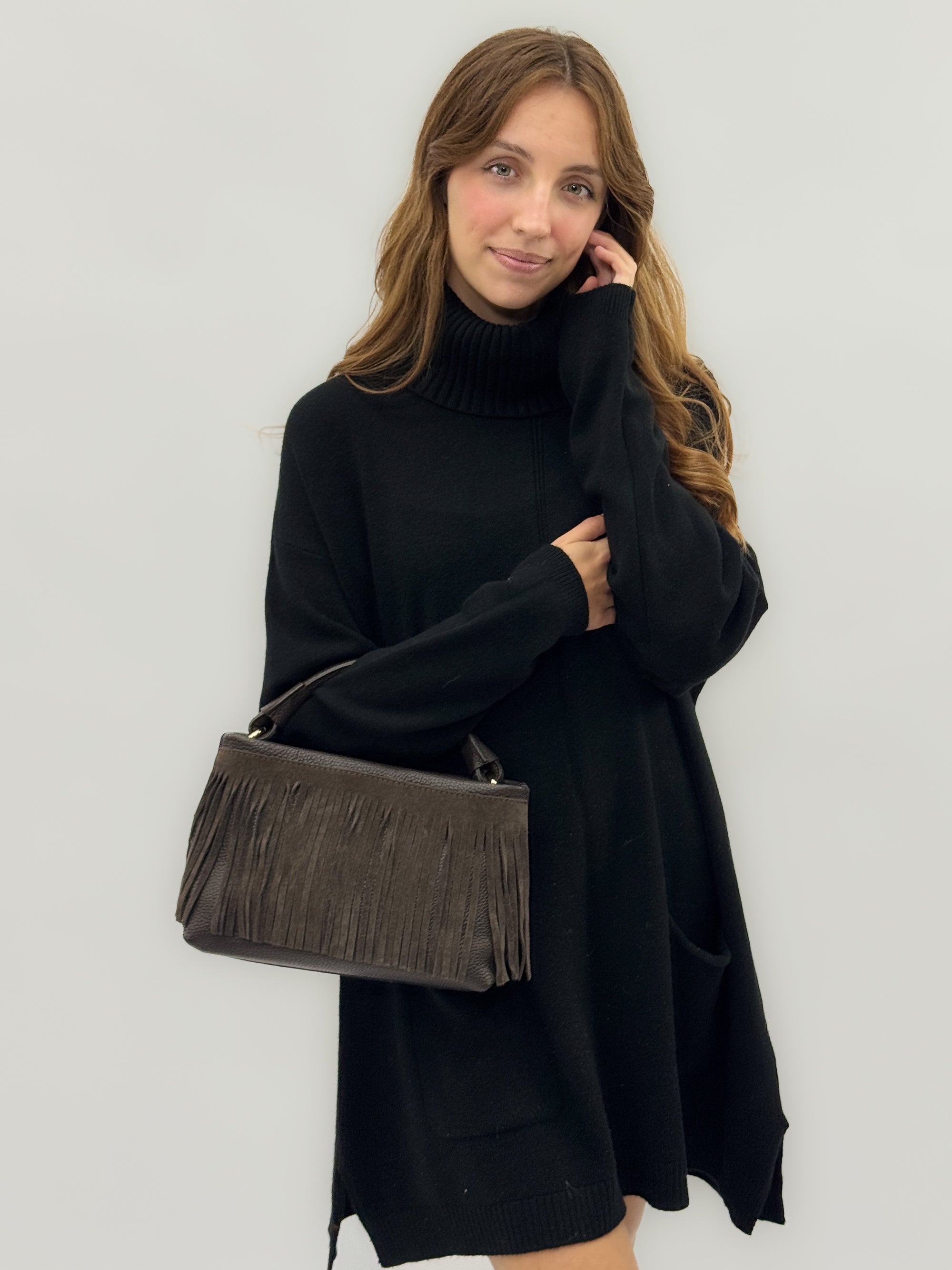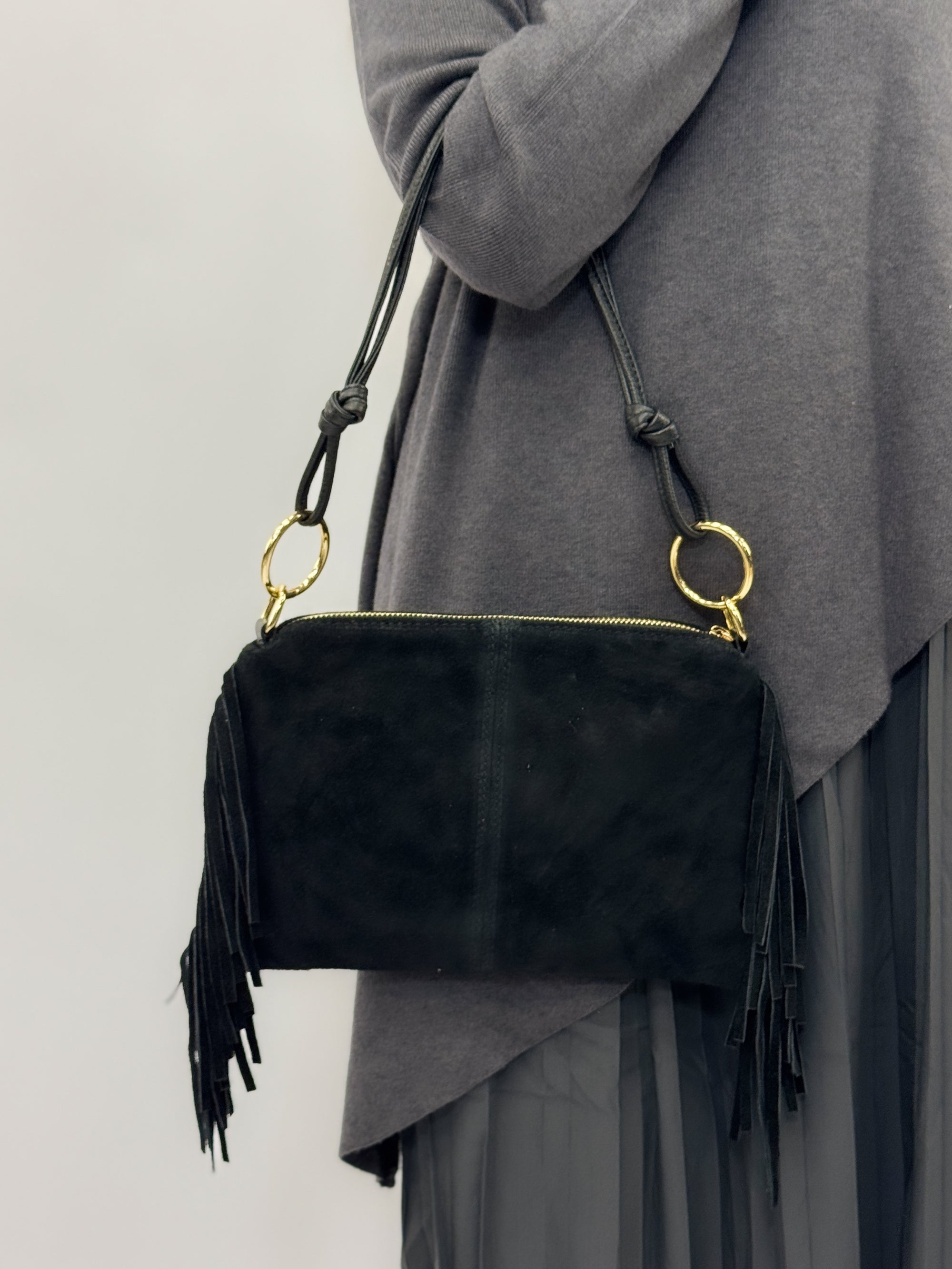Borsa a spalla in vera pelle scamosciata con frange – Made in Italy