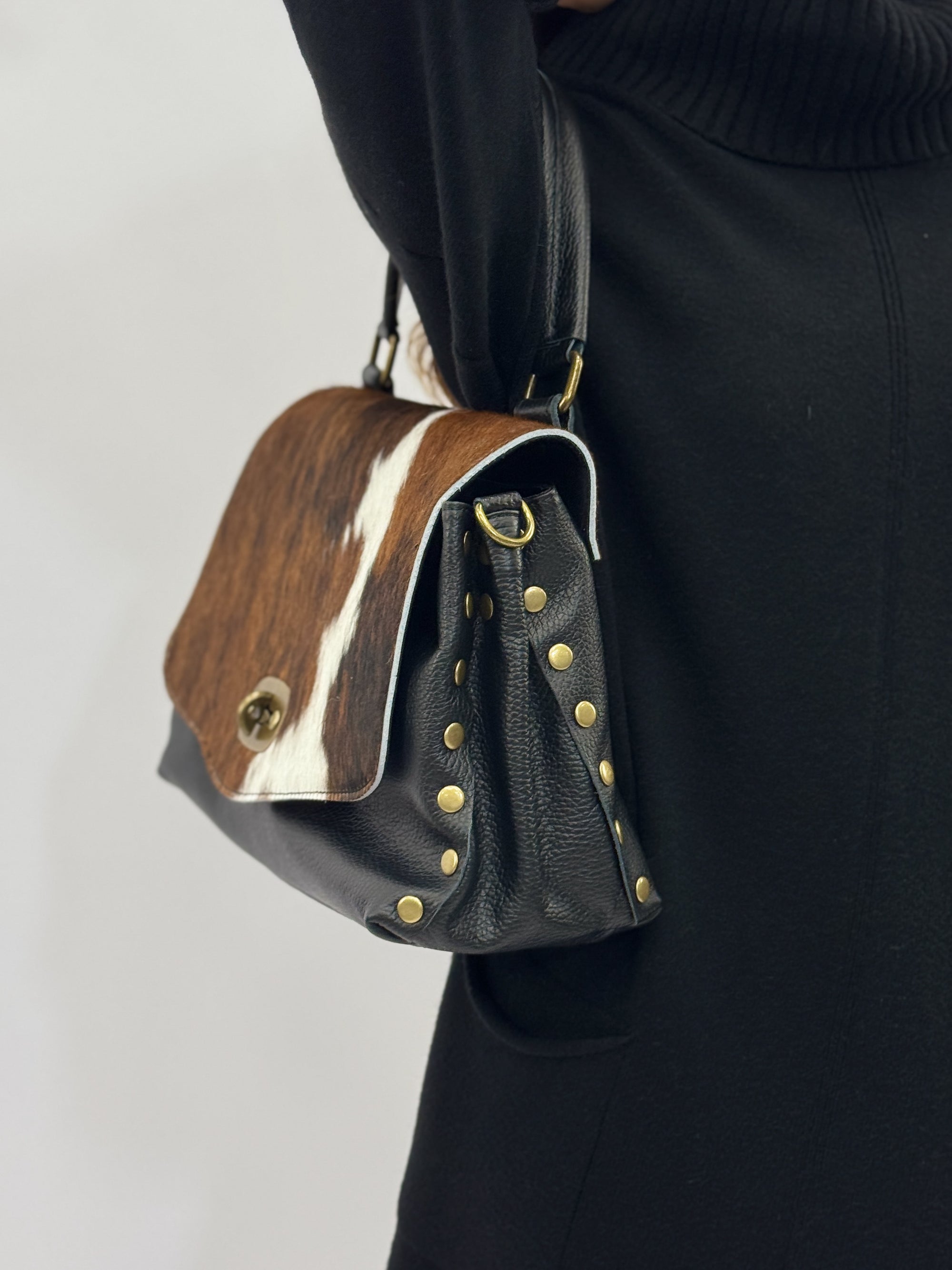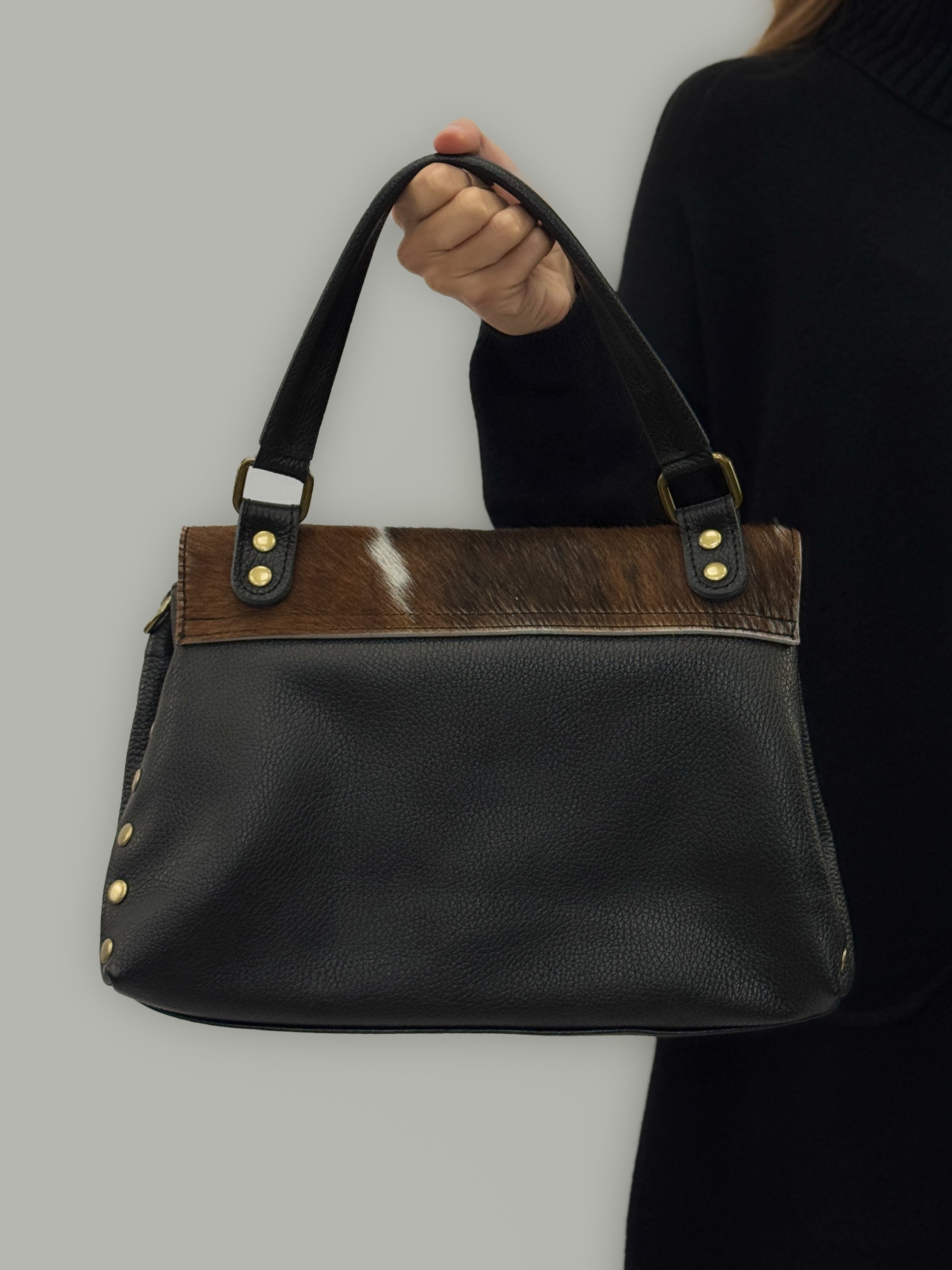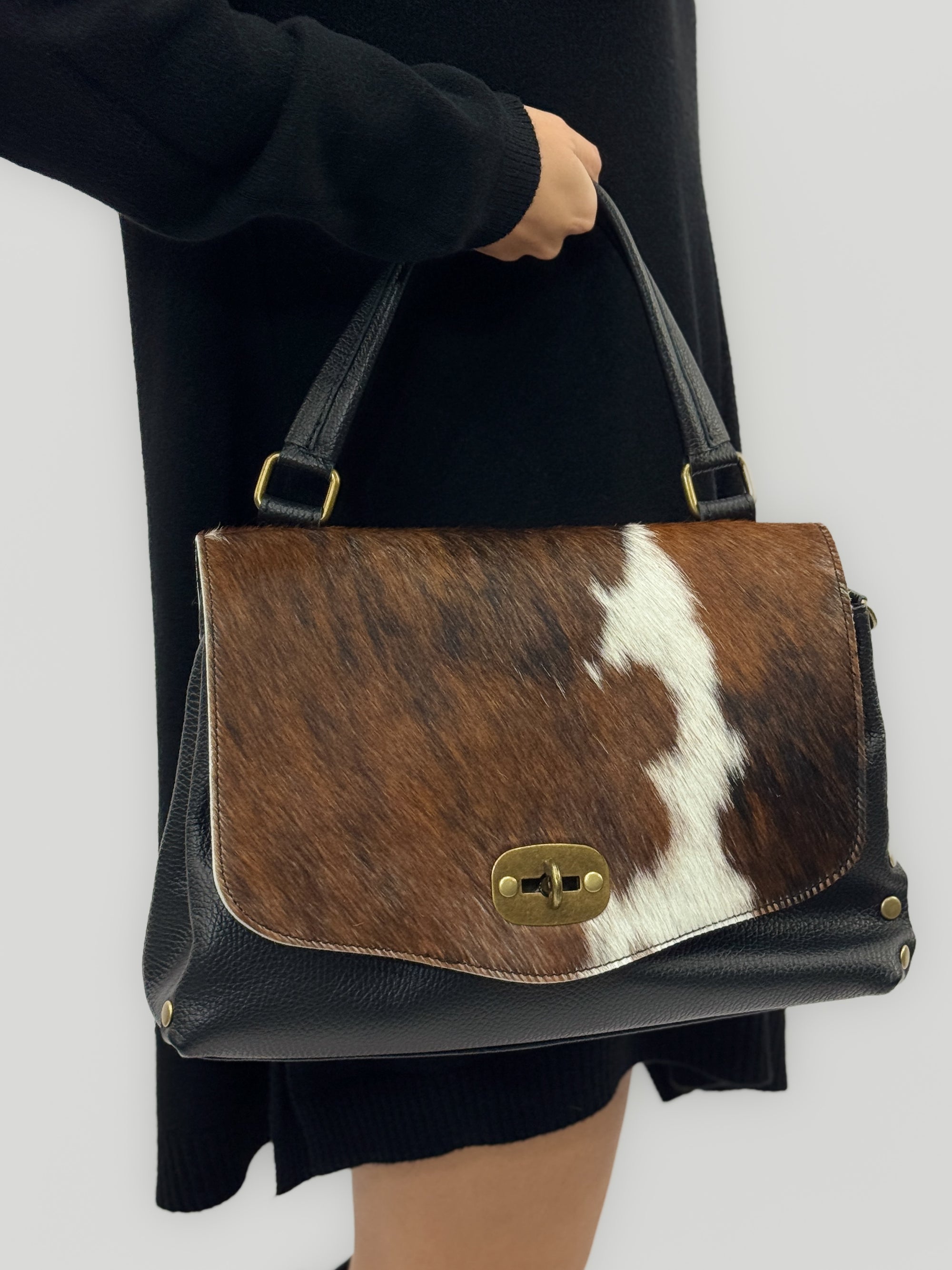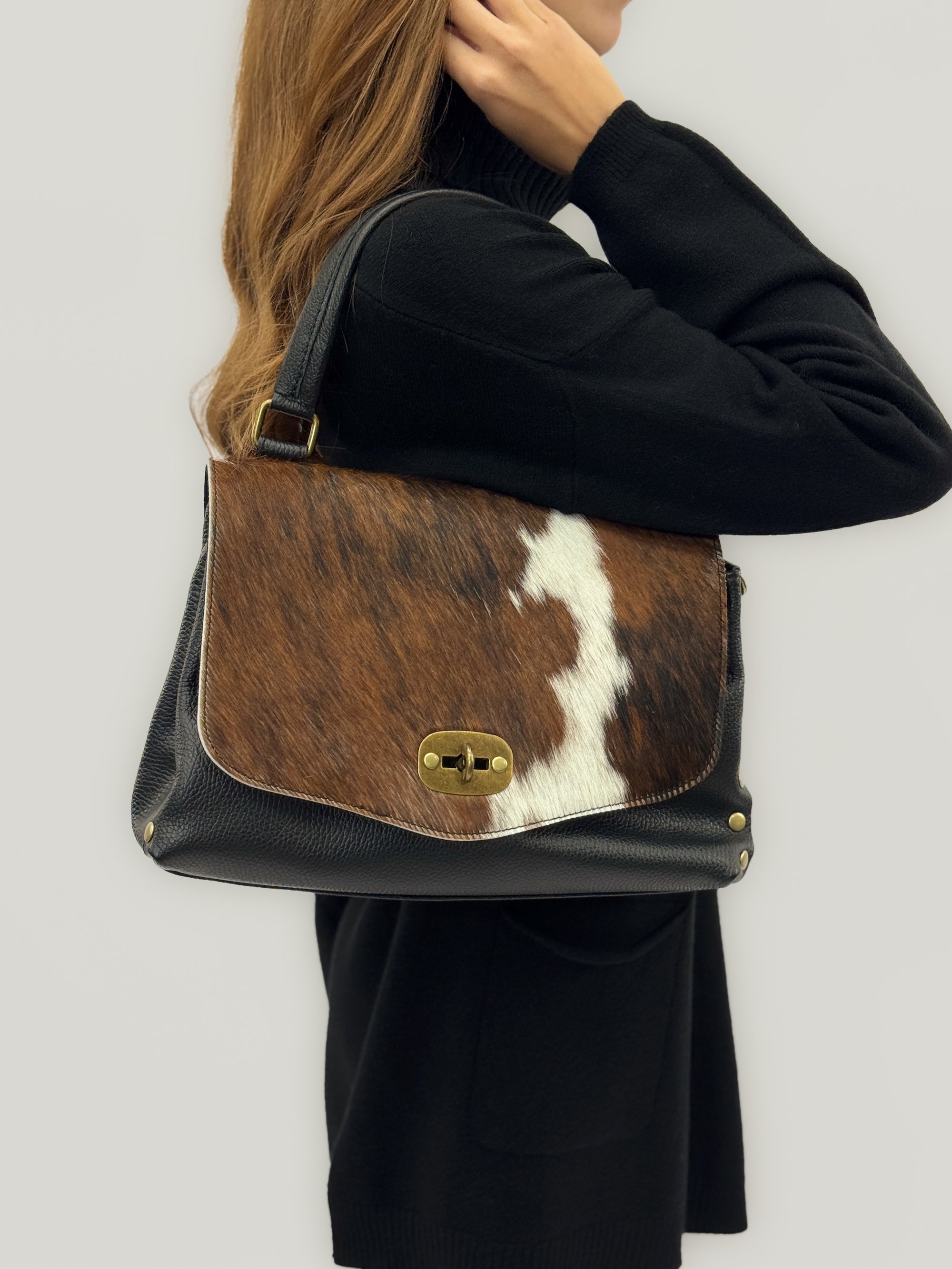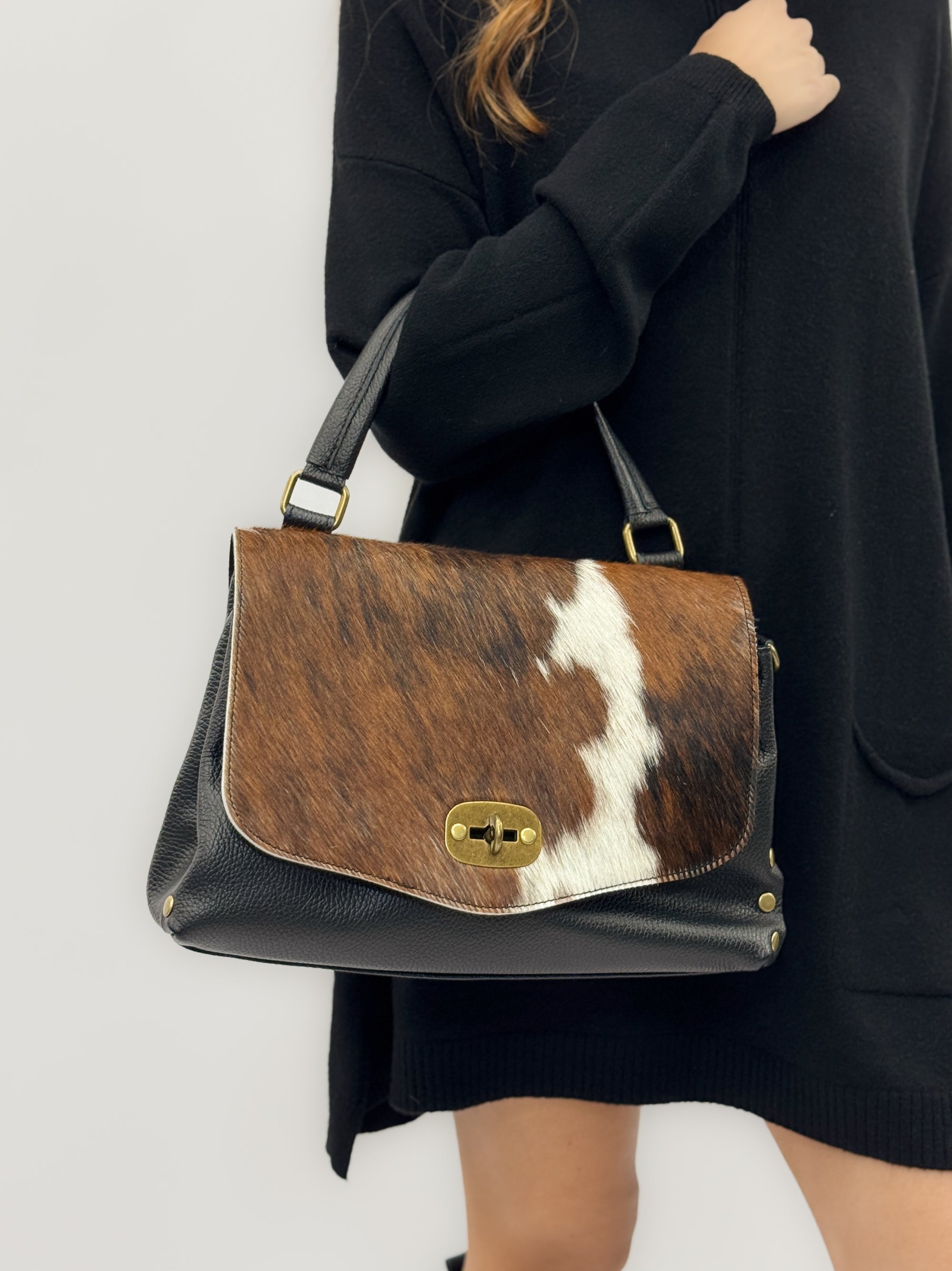 Borsa in vera pelle con patta in cavallino - Made in Italy