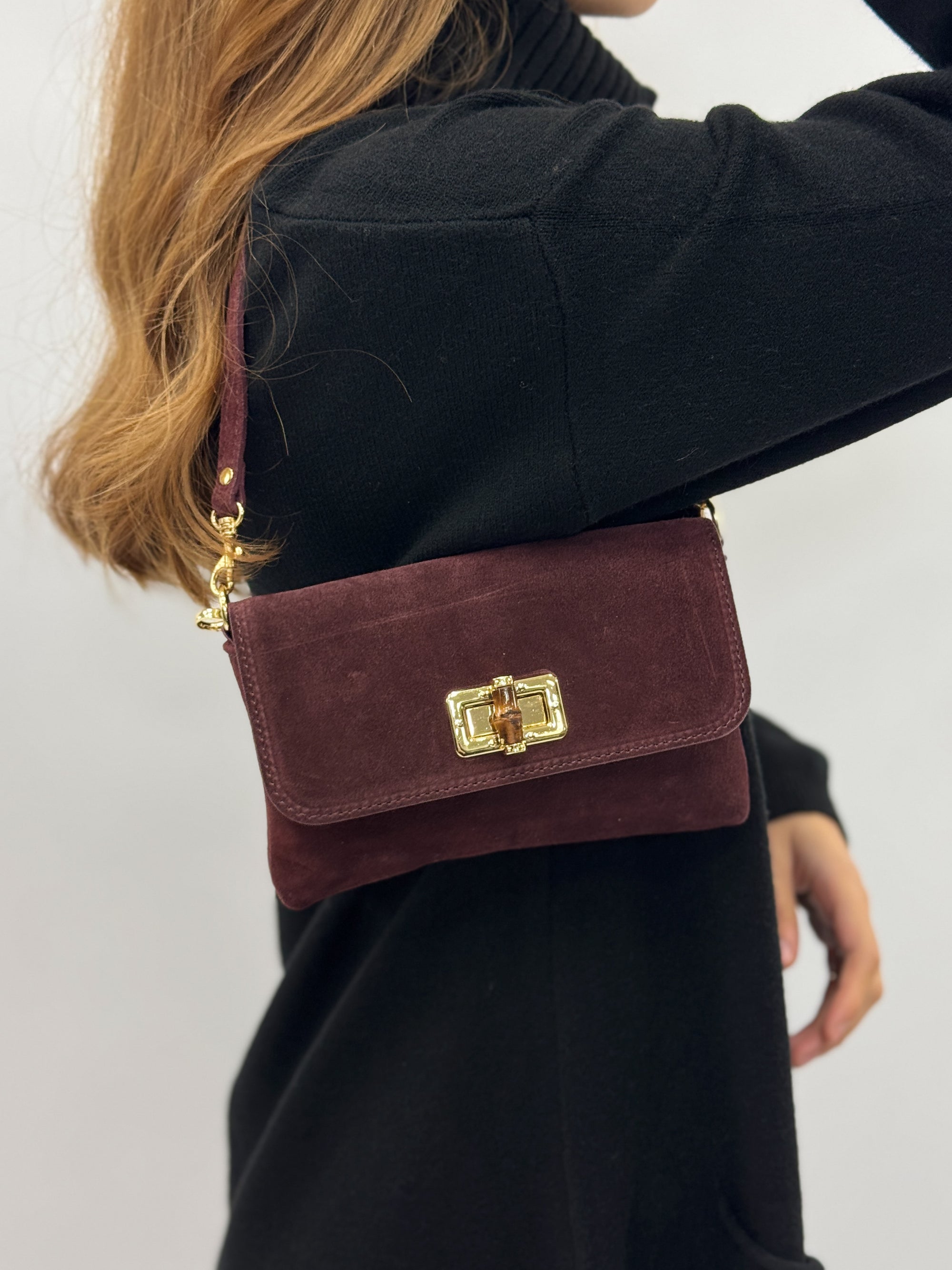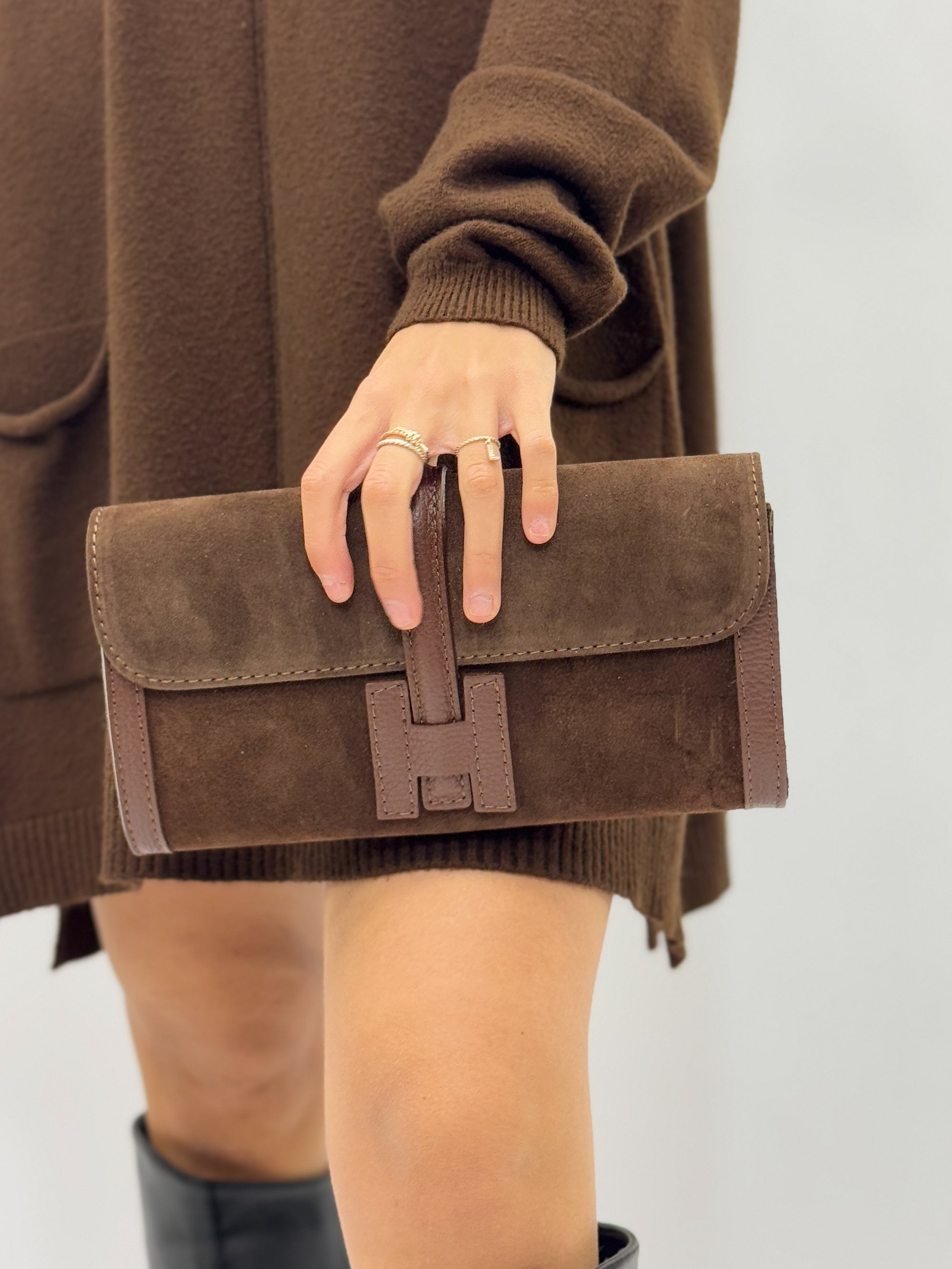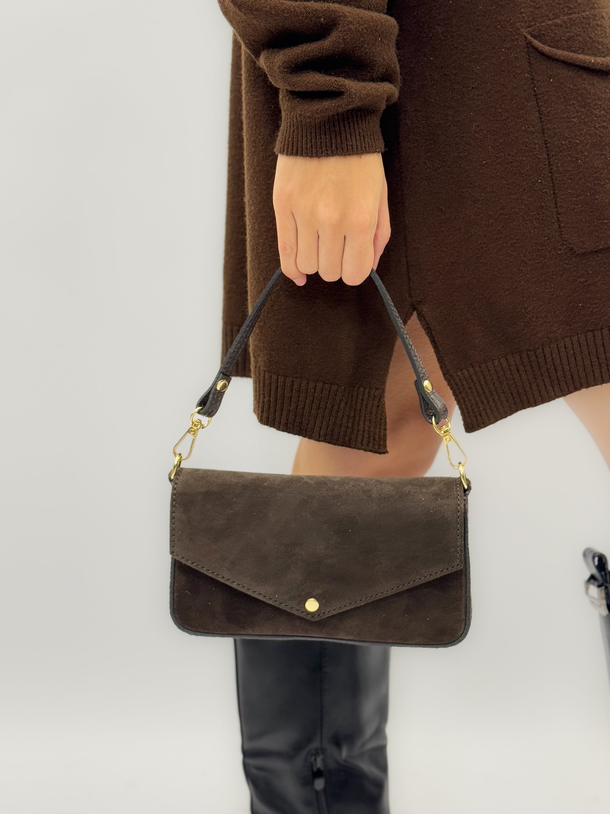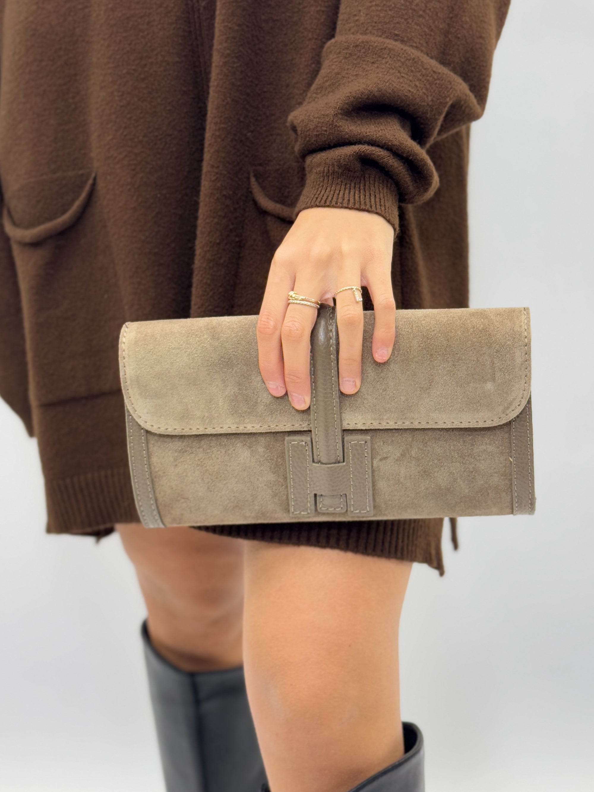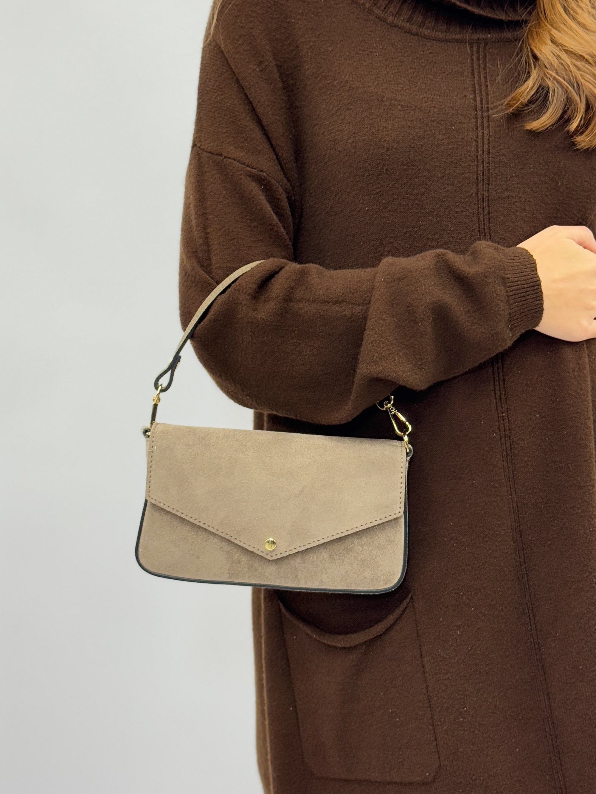 Borsa pochette in vera pelle scamosciata – Made in Italy