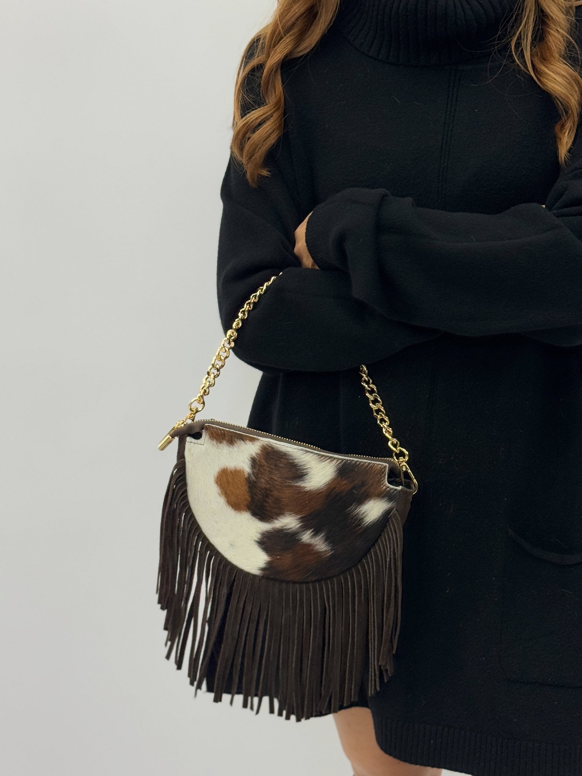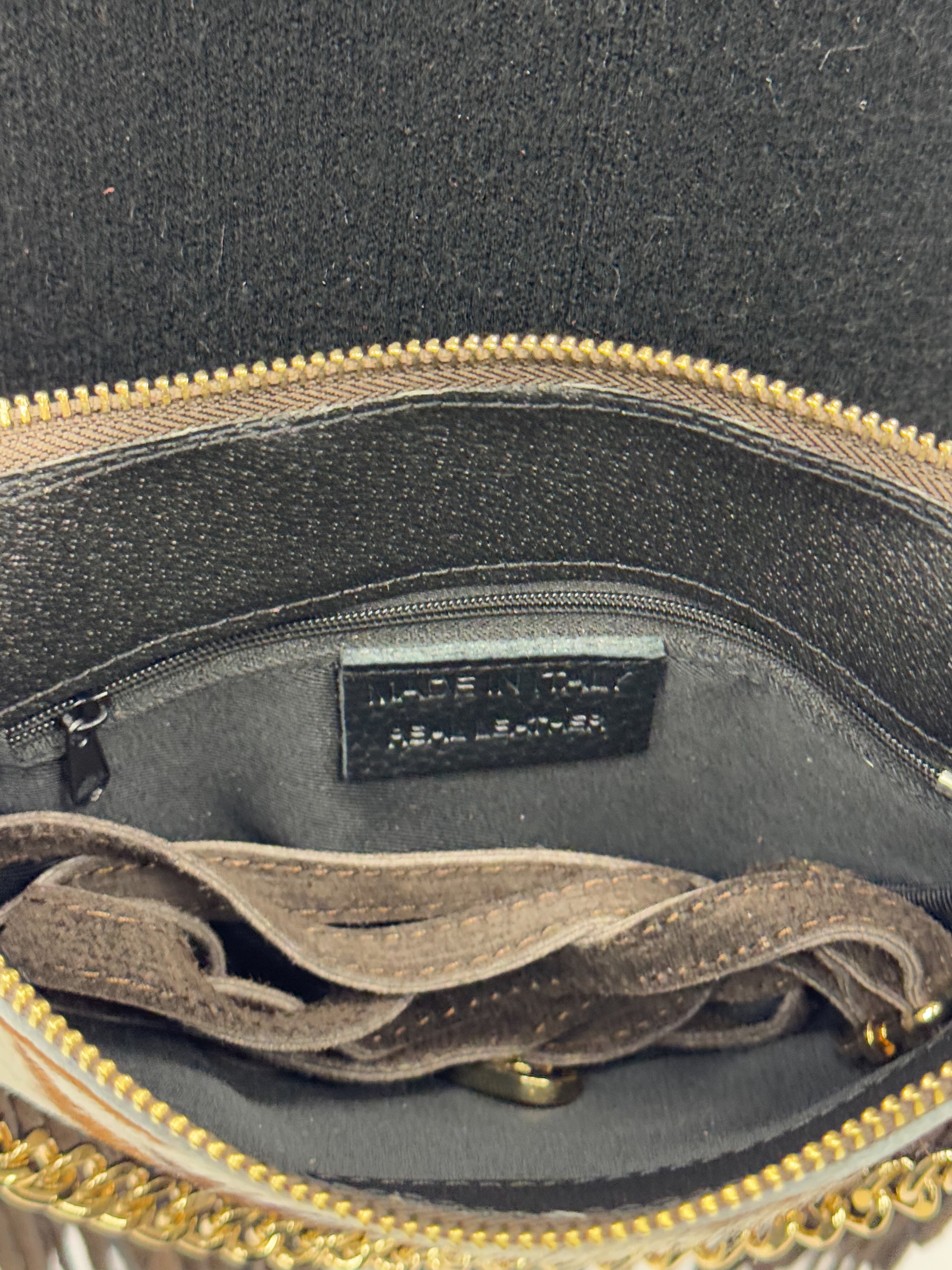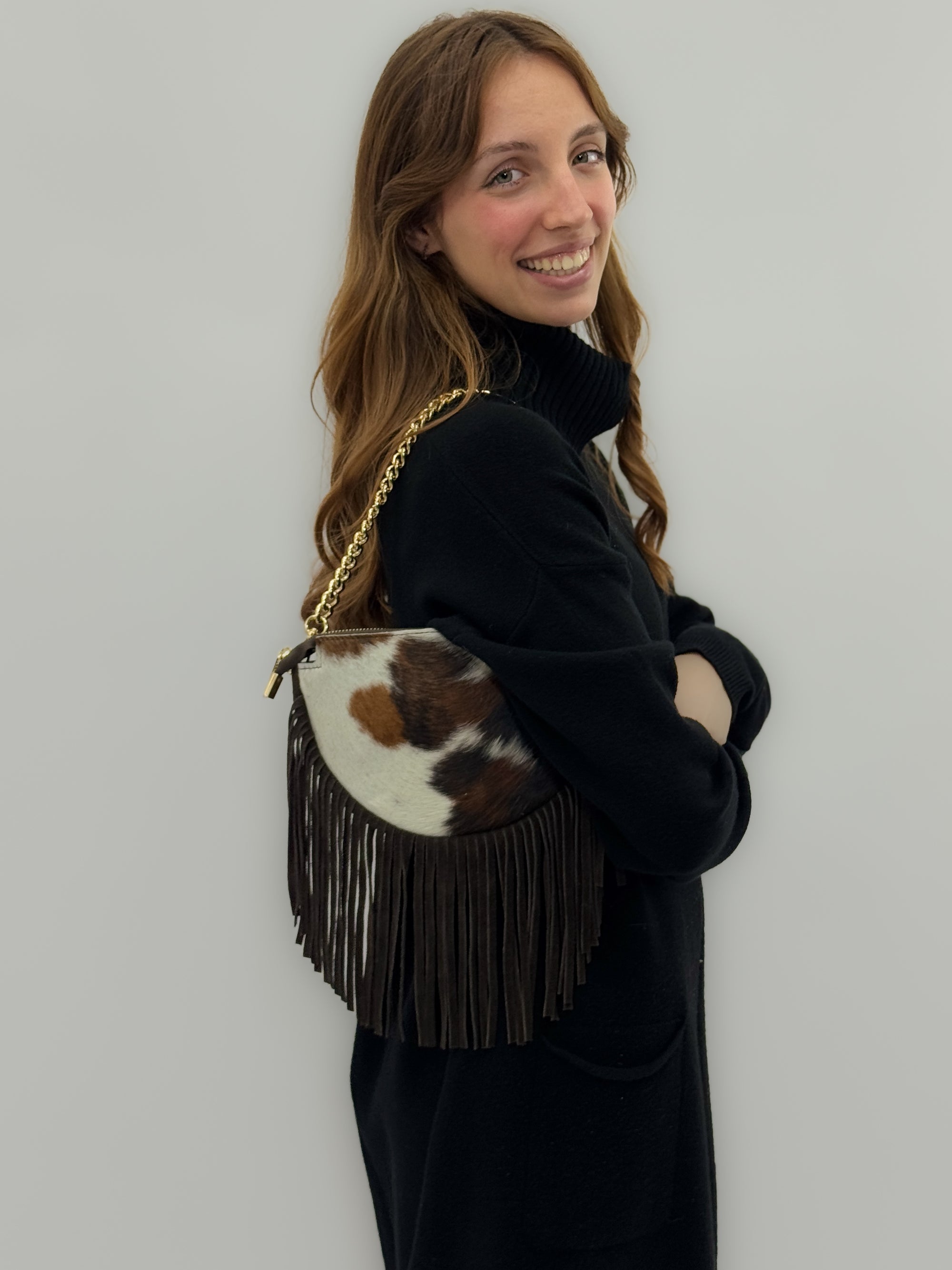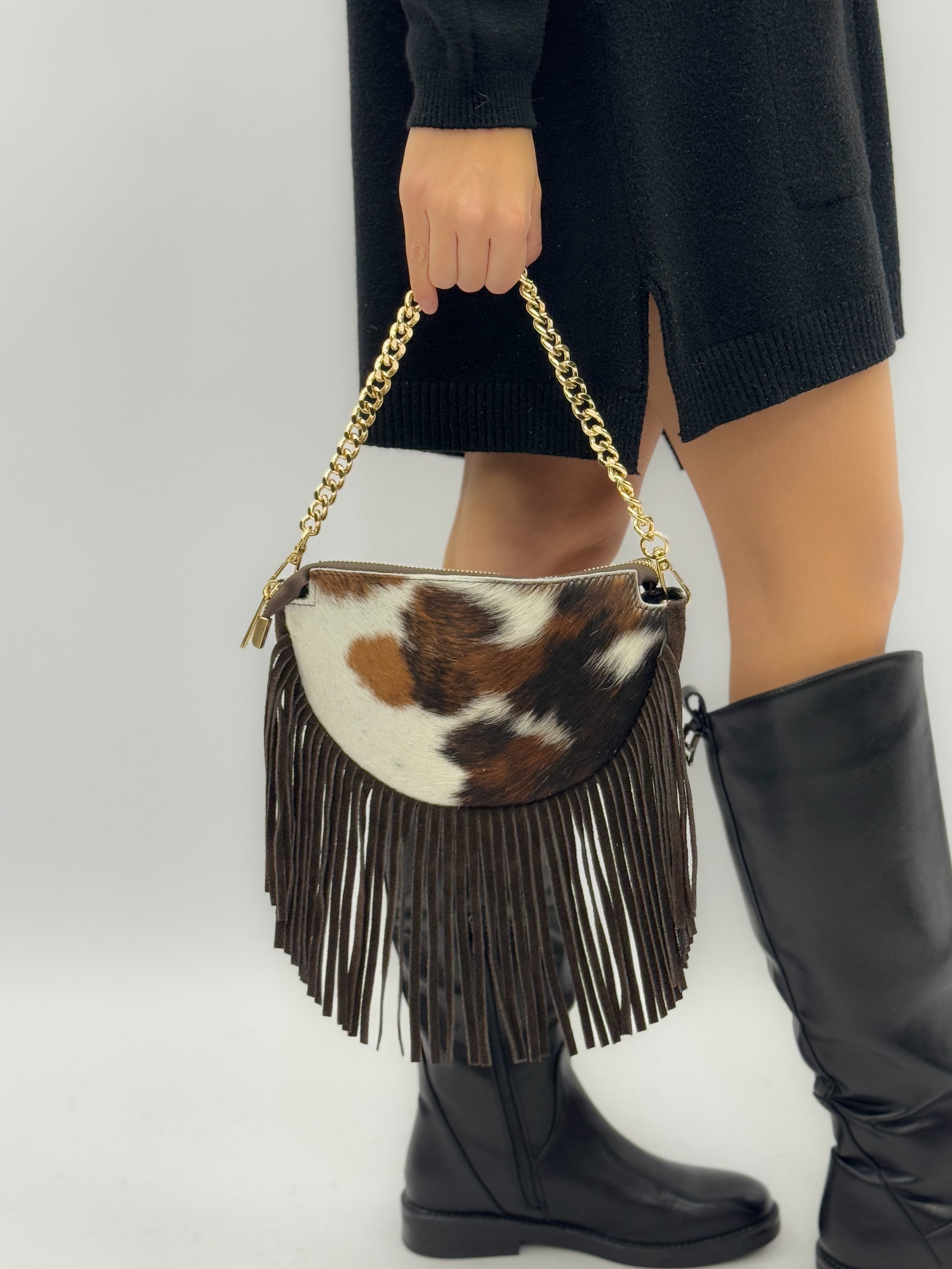 Borsa in vera pelle maculata con Frange – Made in Italy