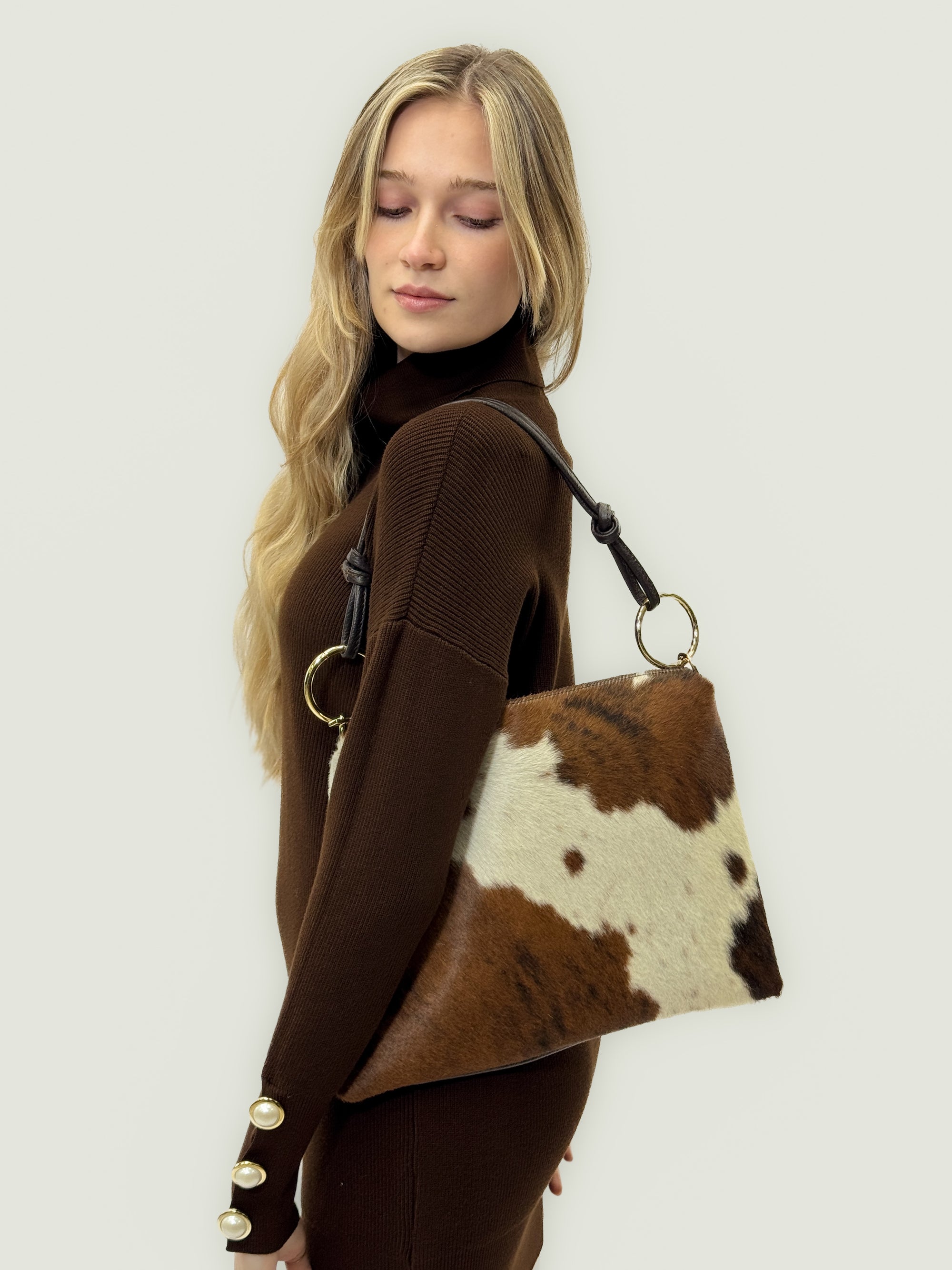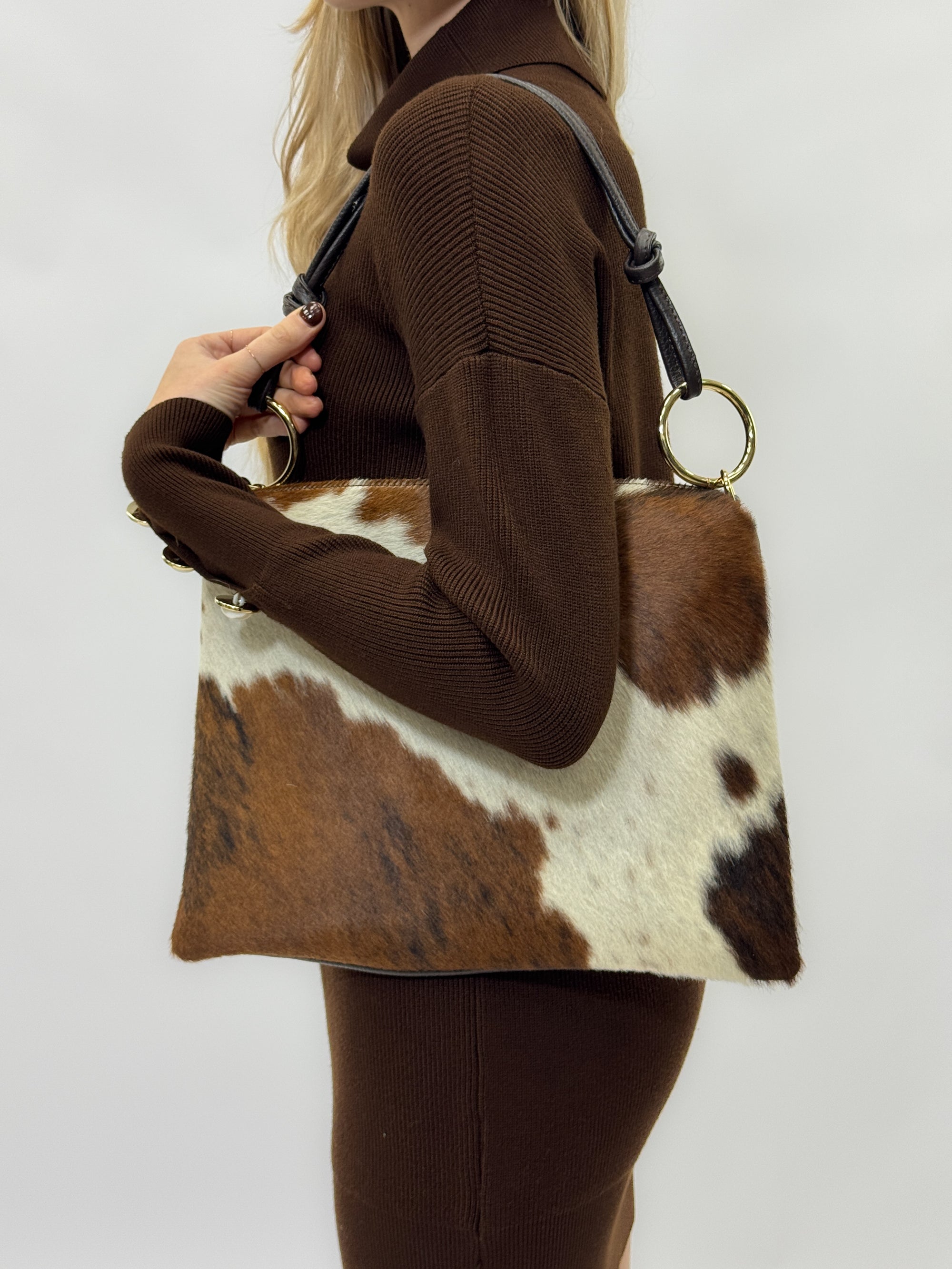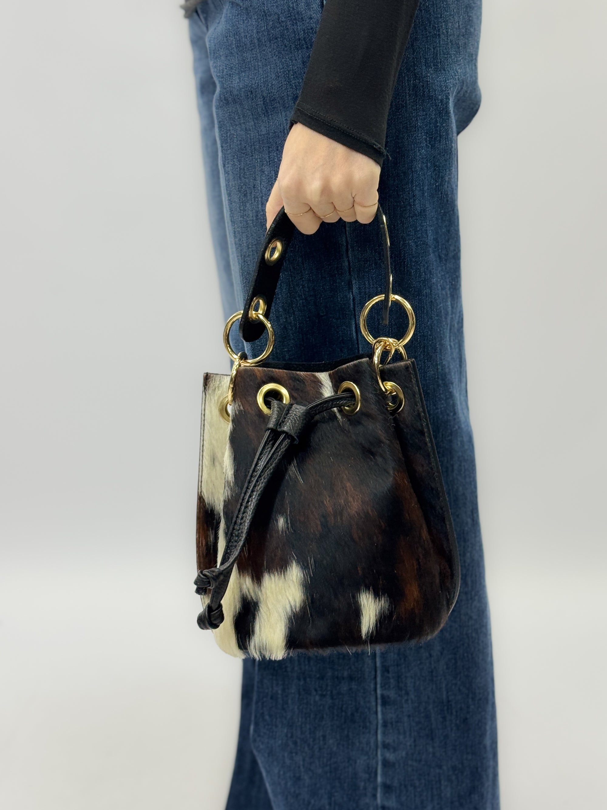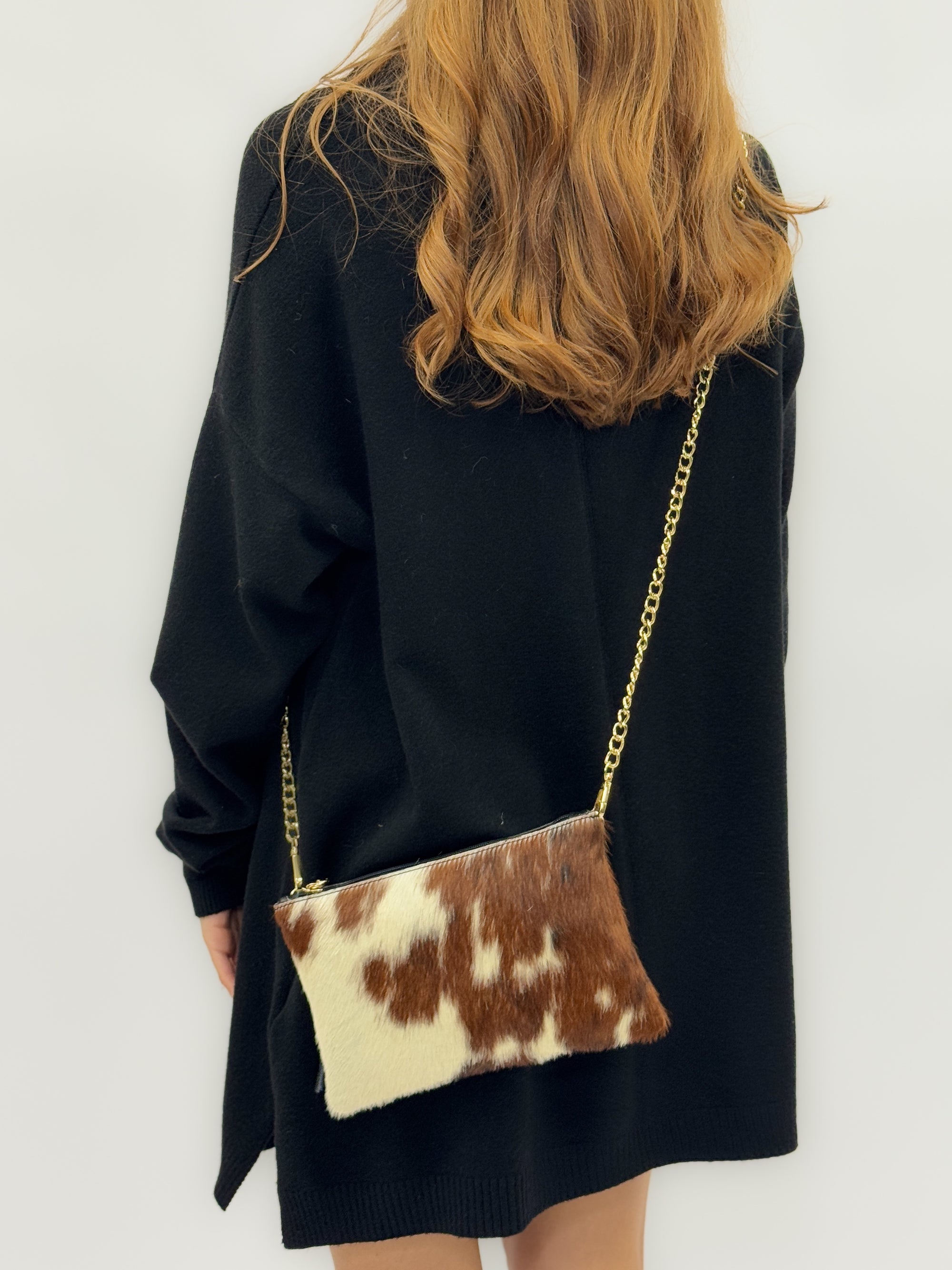 Borsa in vera pelle maculata con Frange – Made in Italy