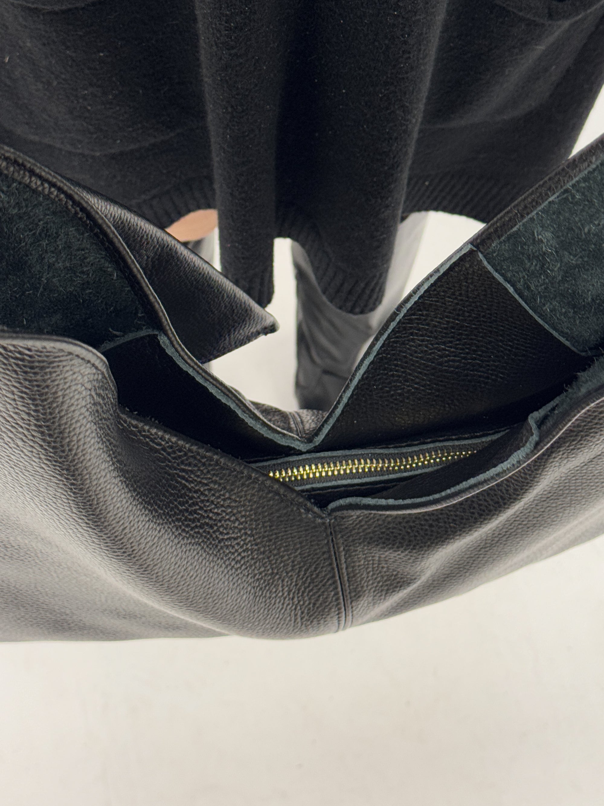 Borsa shopper in vera pelle con zip e manico intrecciato - Made in Italy