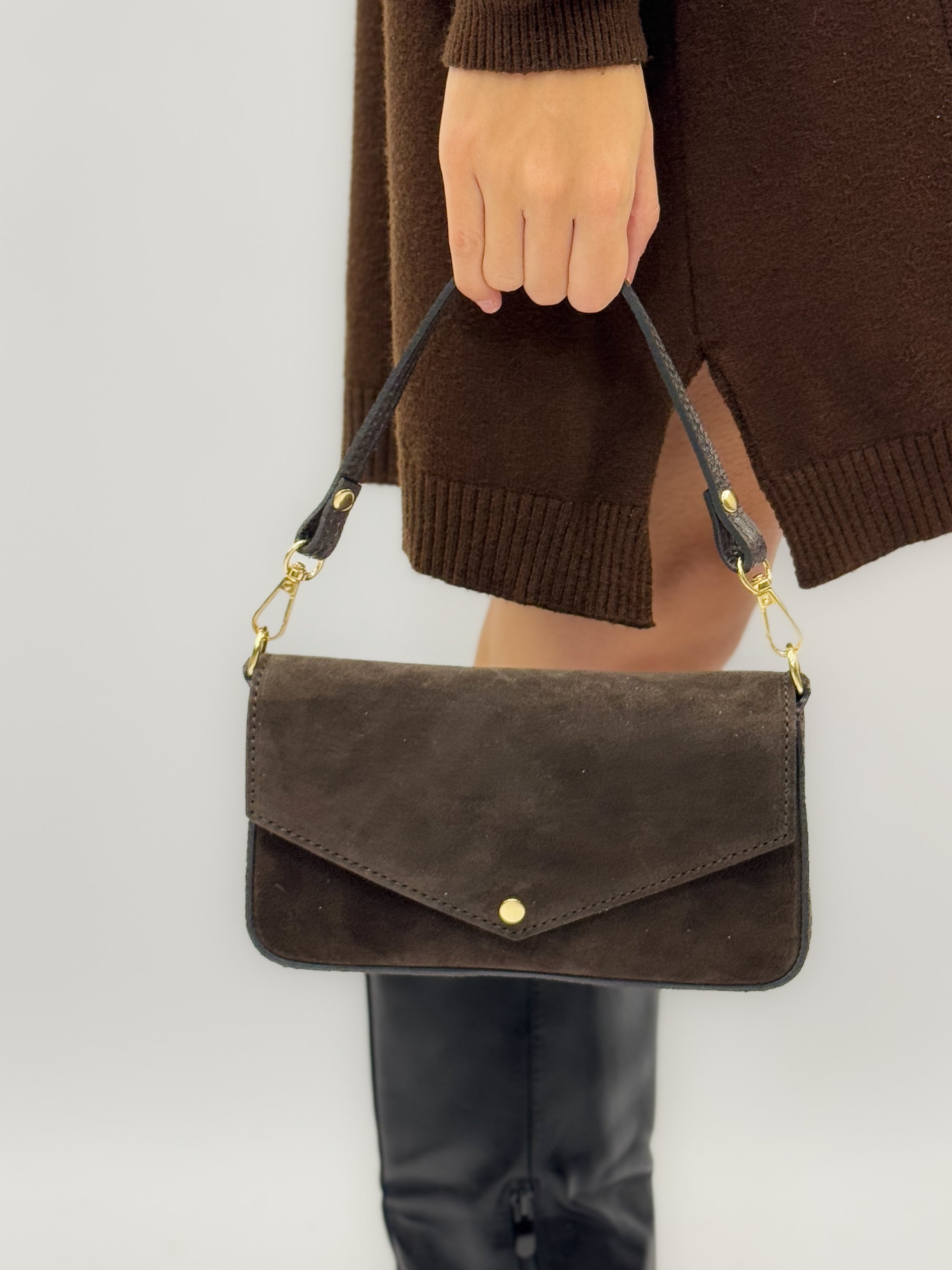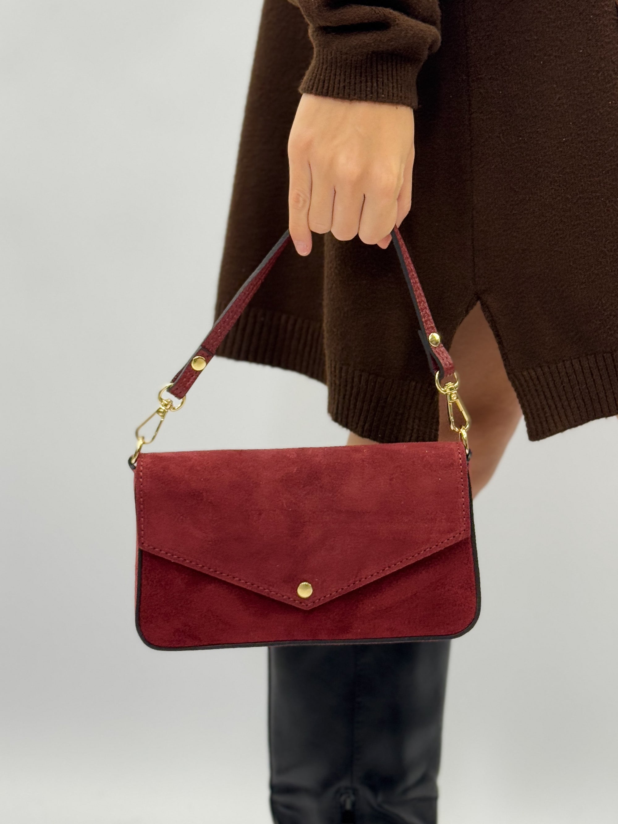 Borsa clutch in vera pelle scamosciata con tracolla - Made in Italy