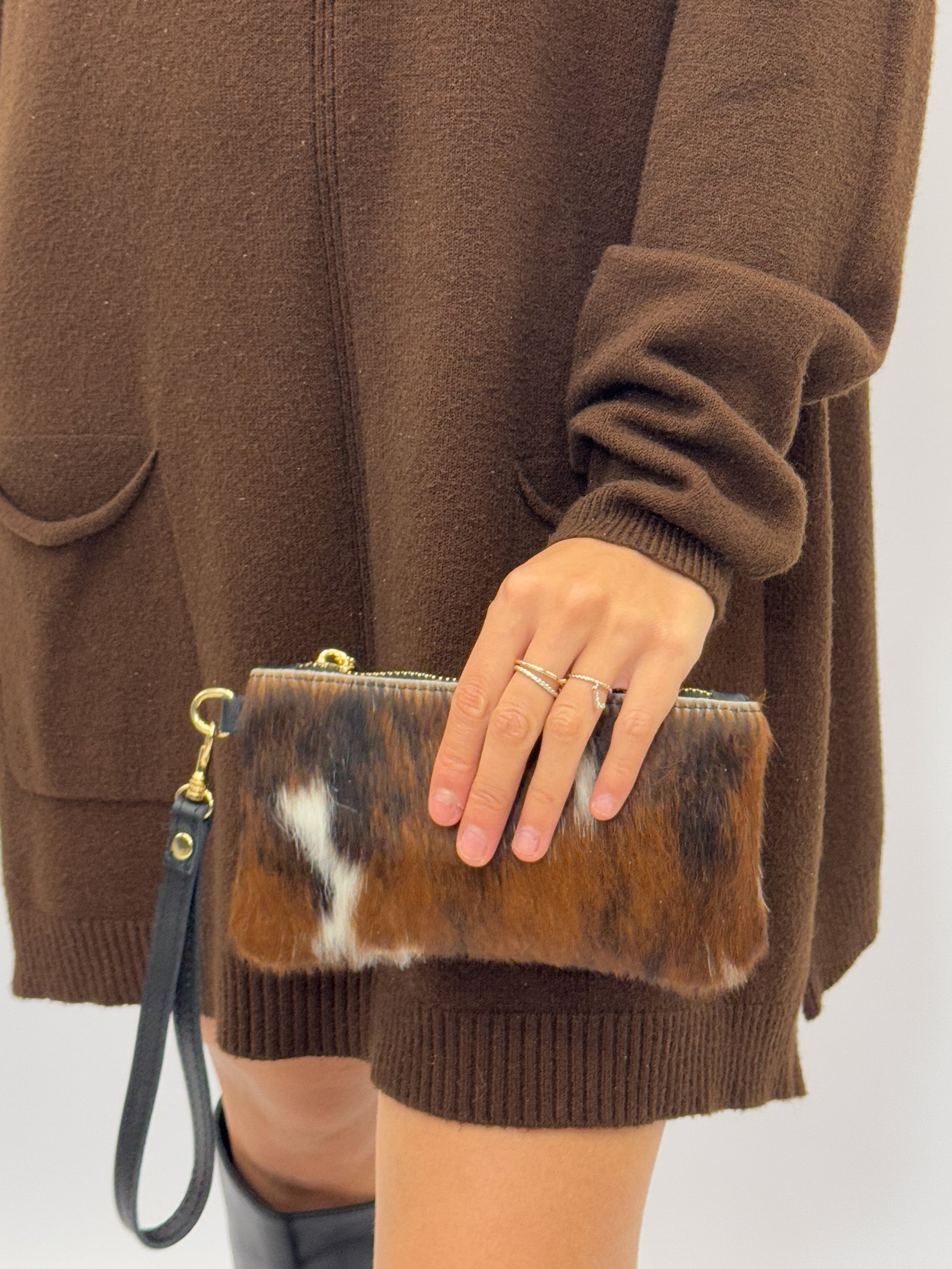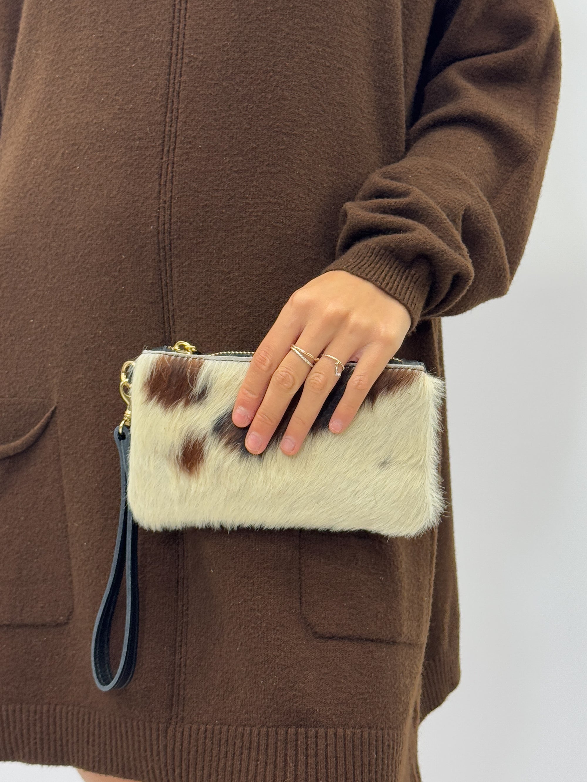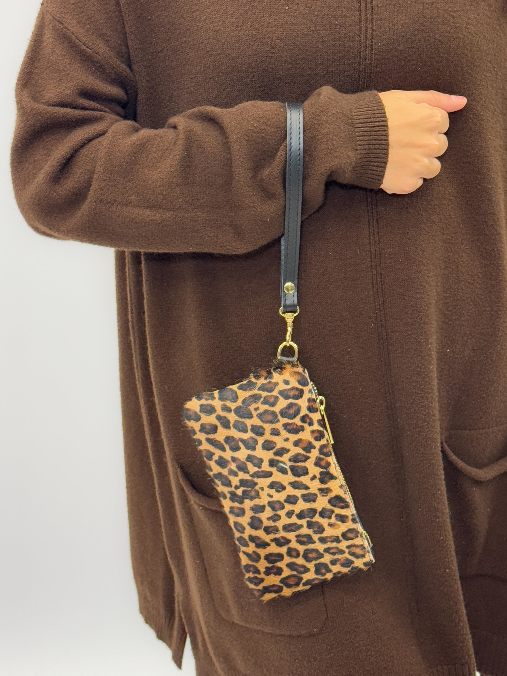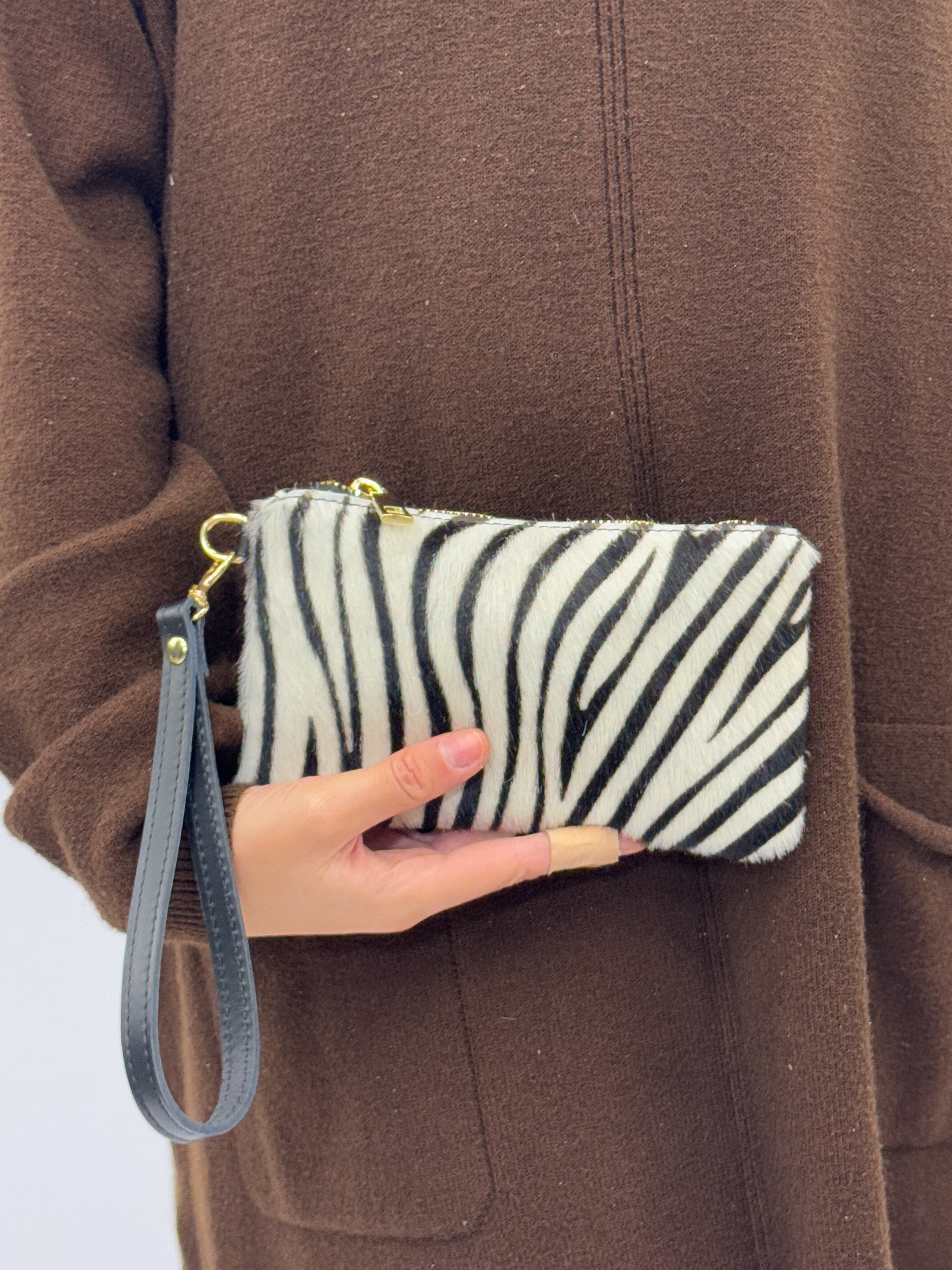 Pochette mini in vera pelle con polsiera - Made in Italy