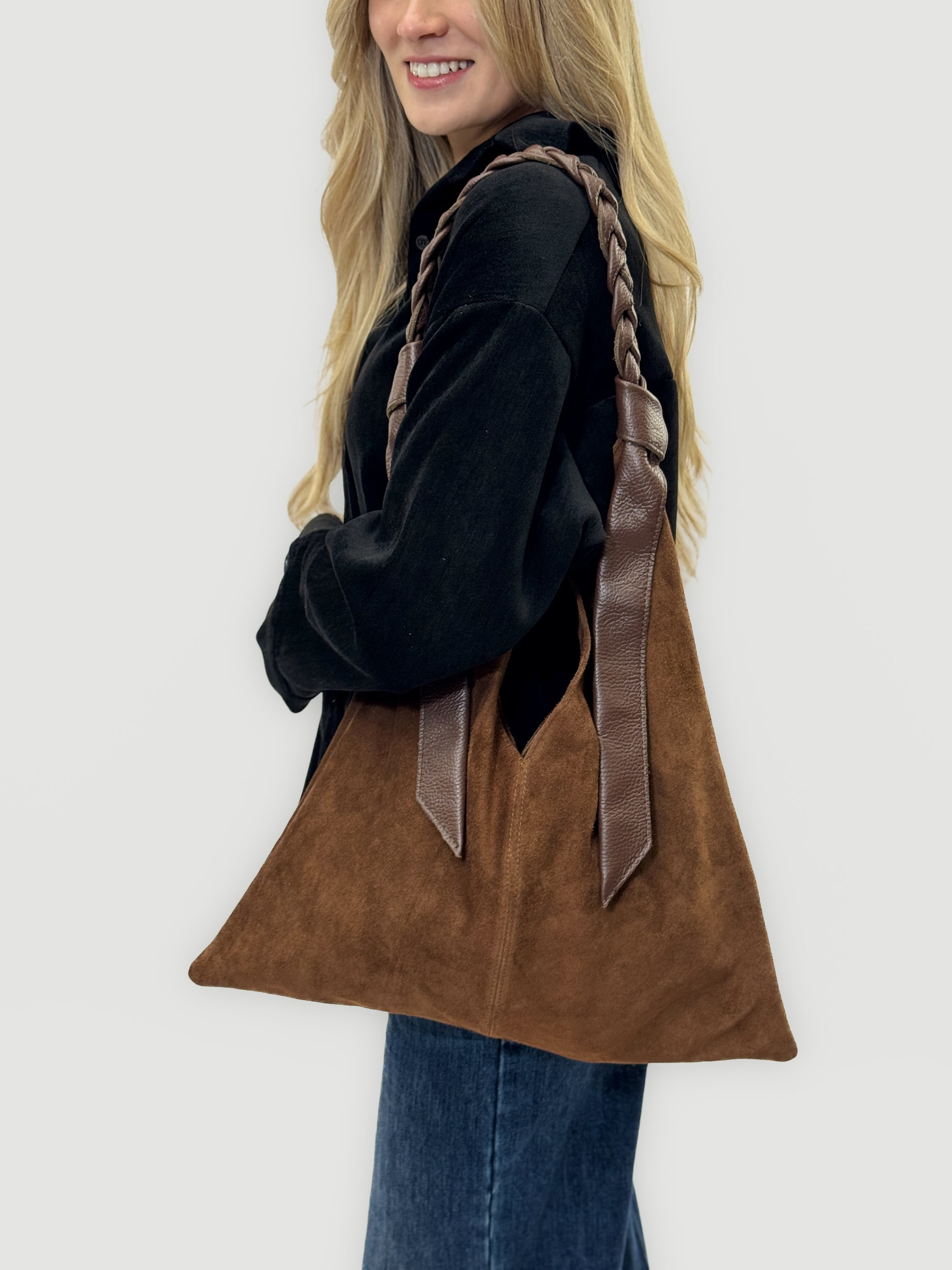 Borsa a Spalla in Vera Pelle Scamosciata Mia – Made in Italy