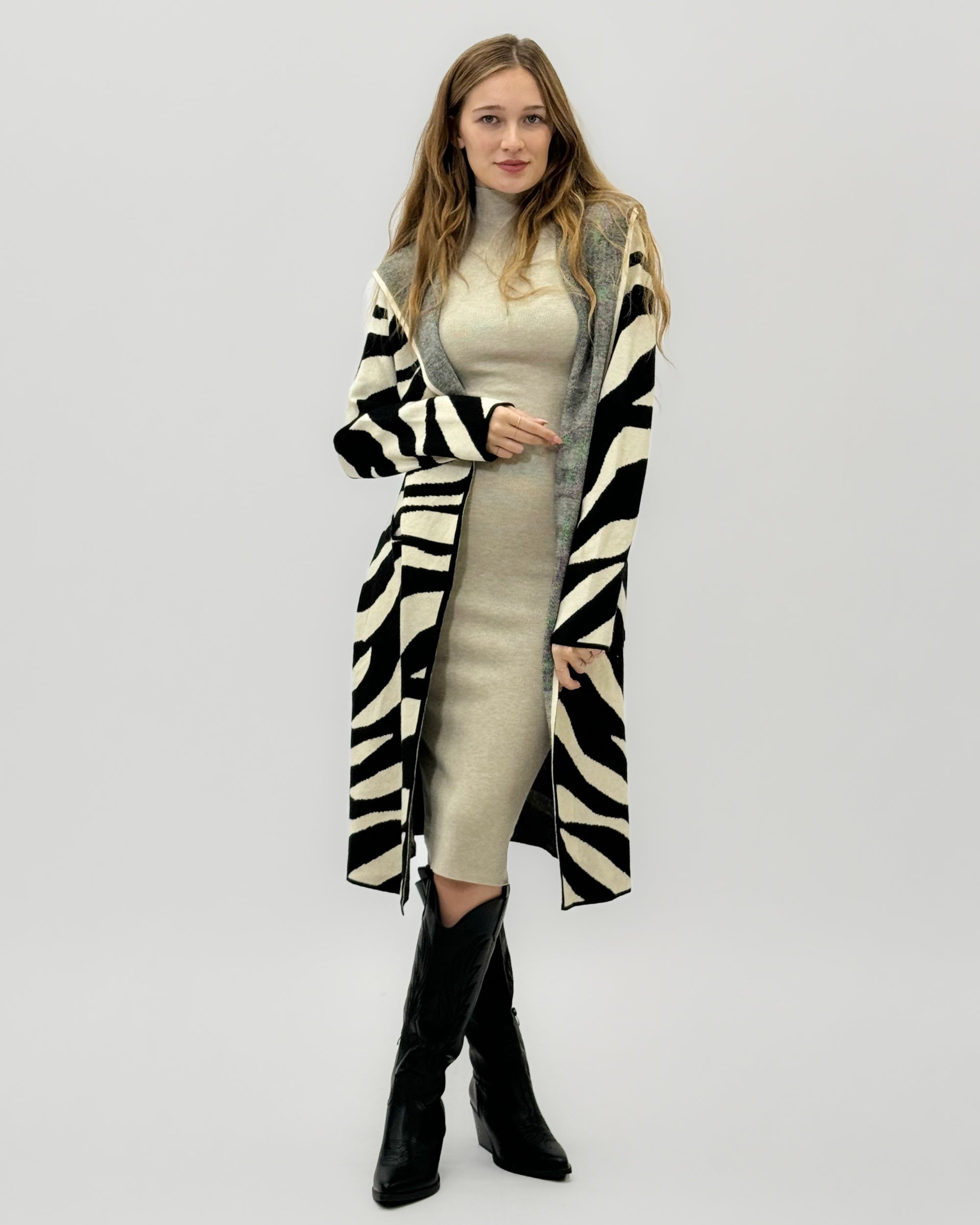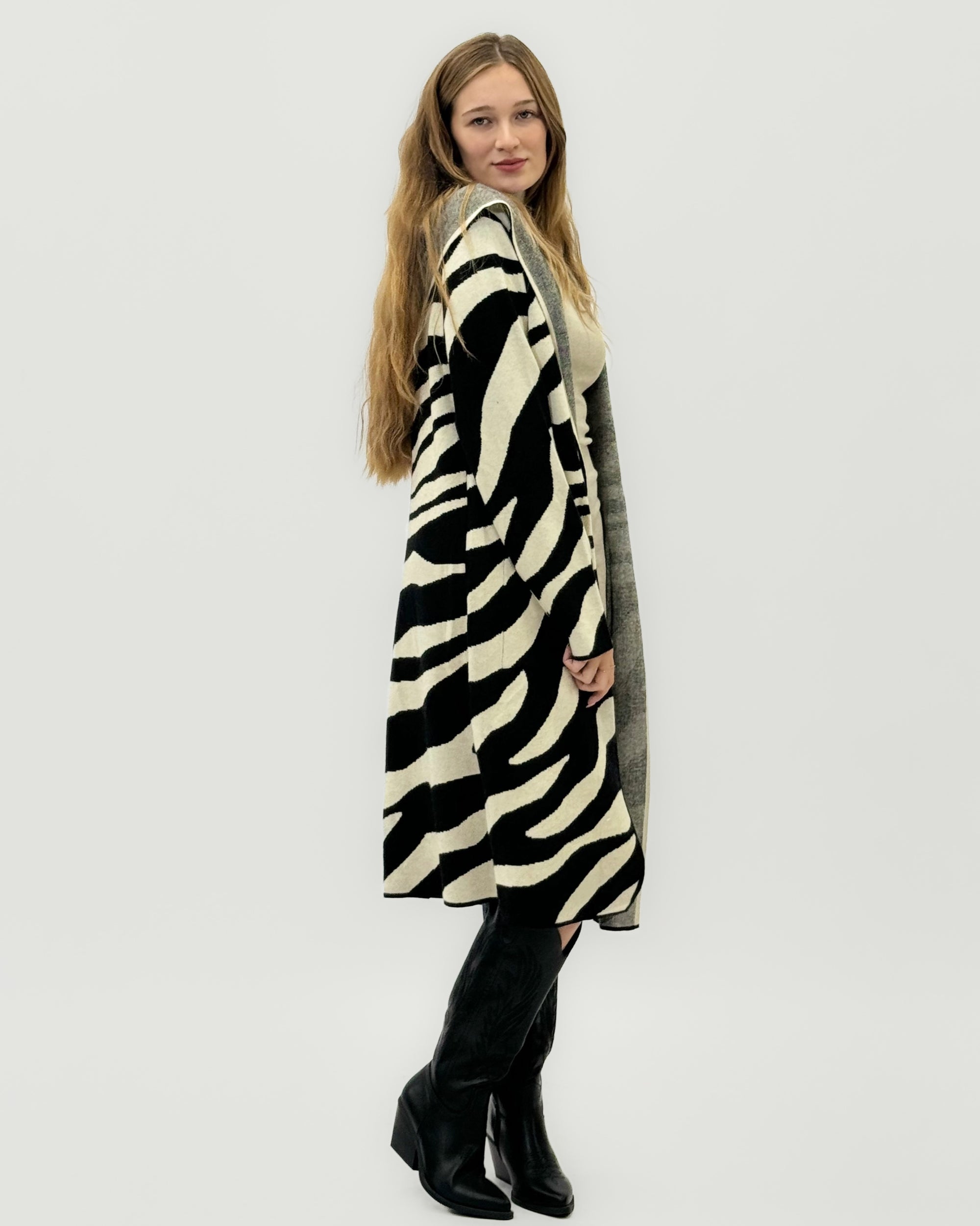 Cardigan lungo fantasia zebrata – Stile deciso e irresistibile