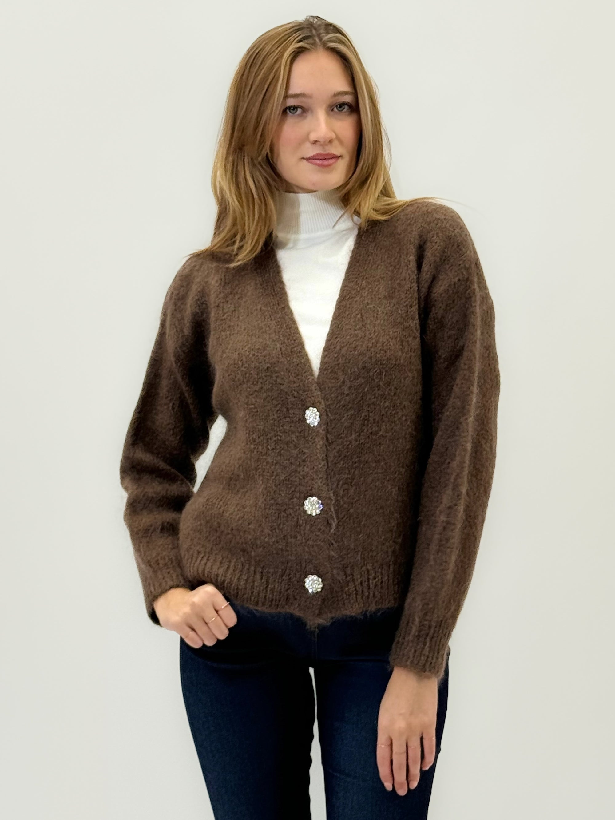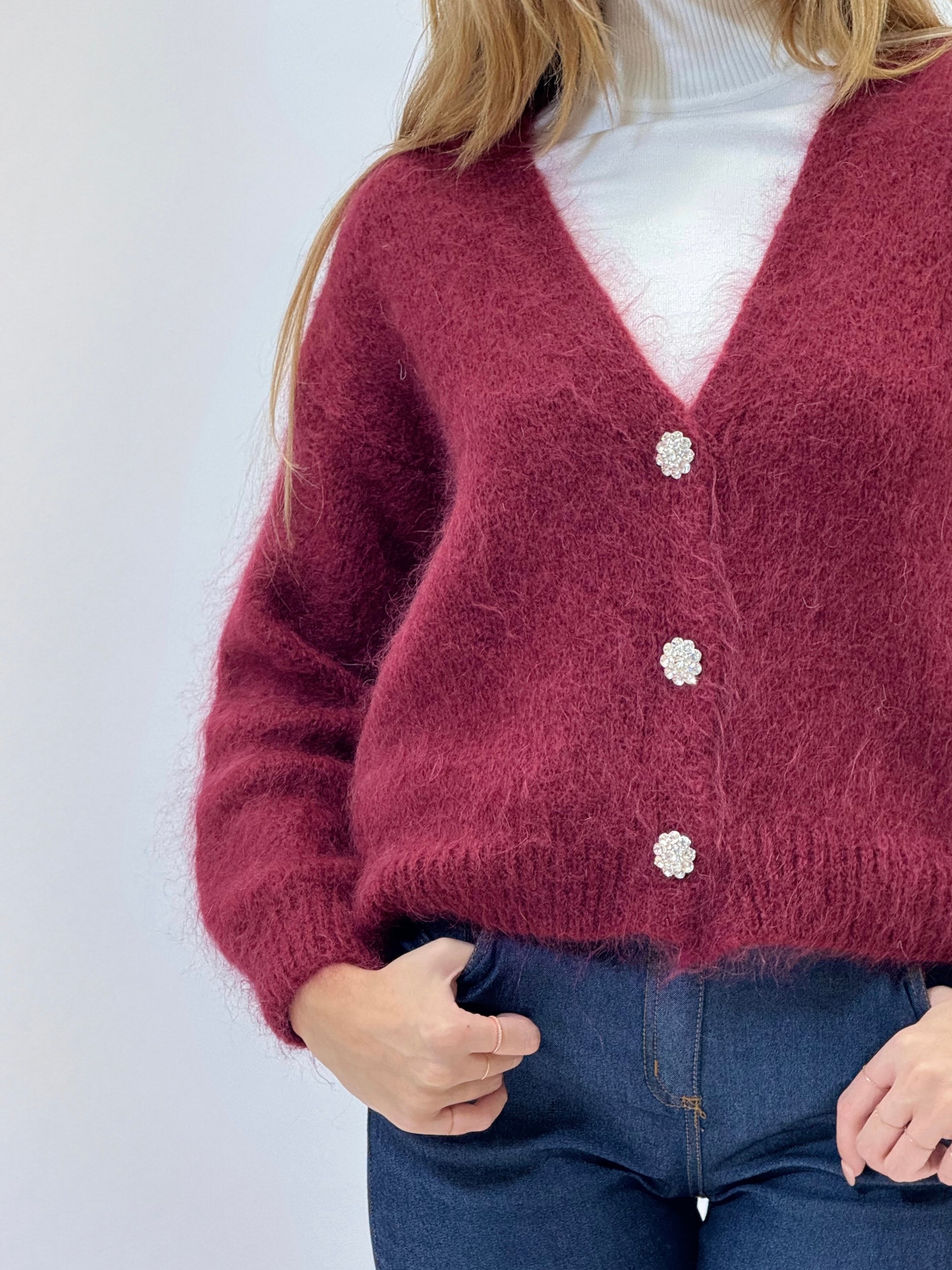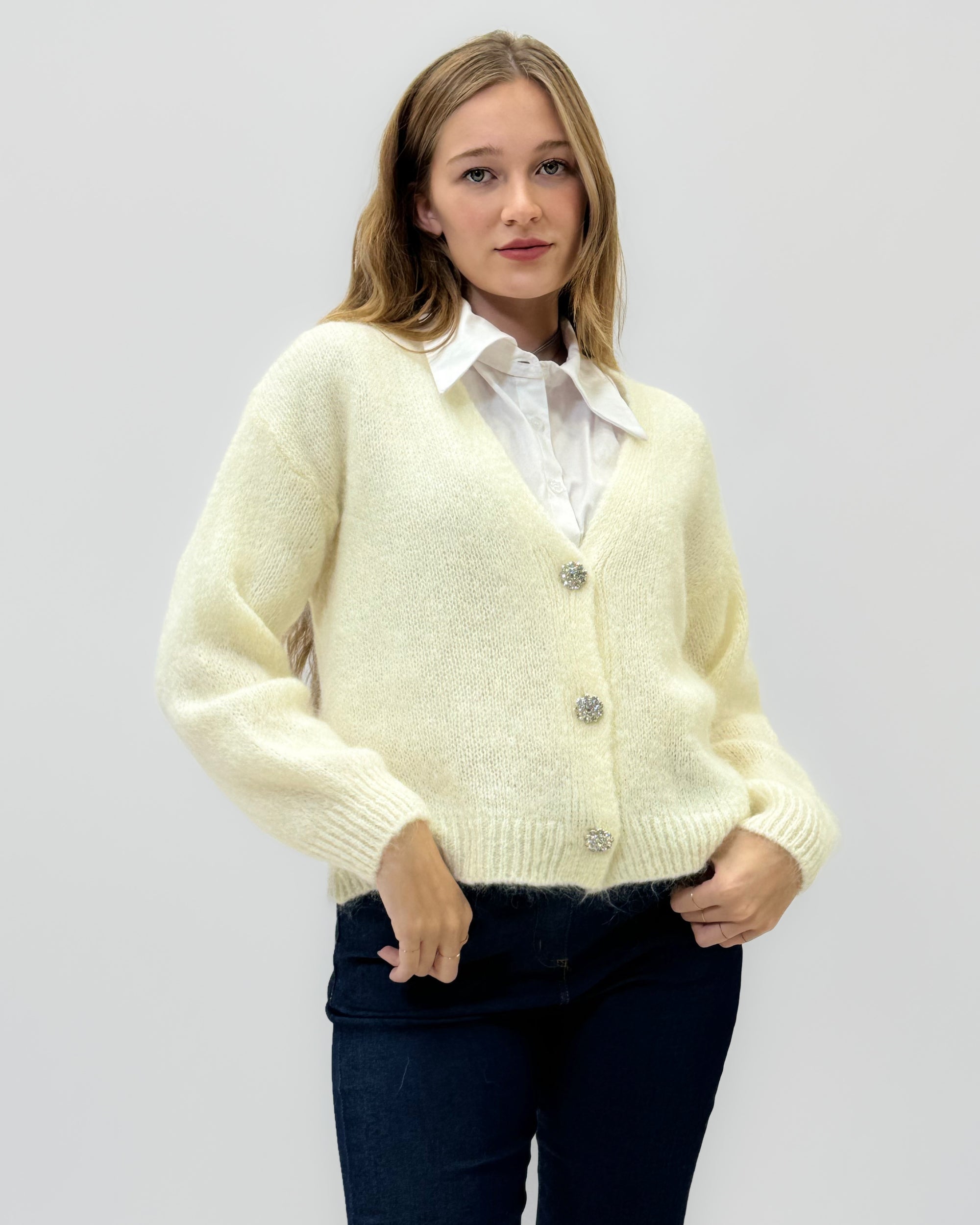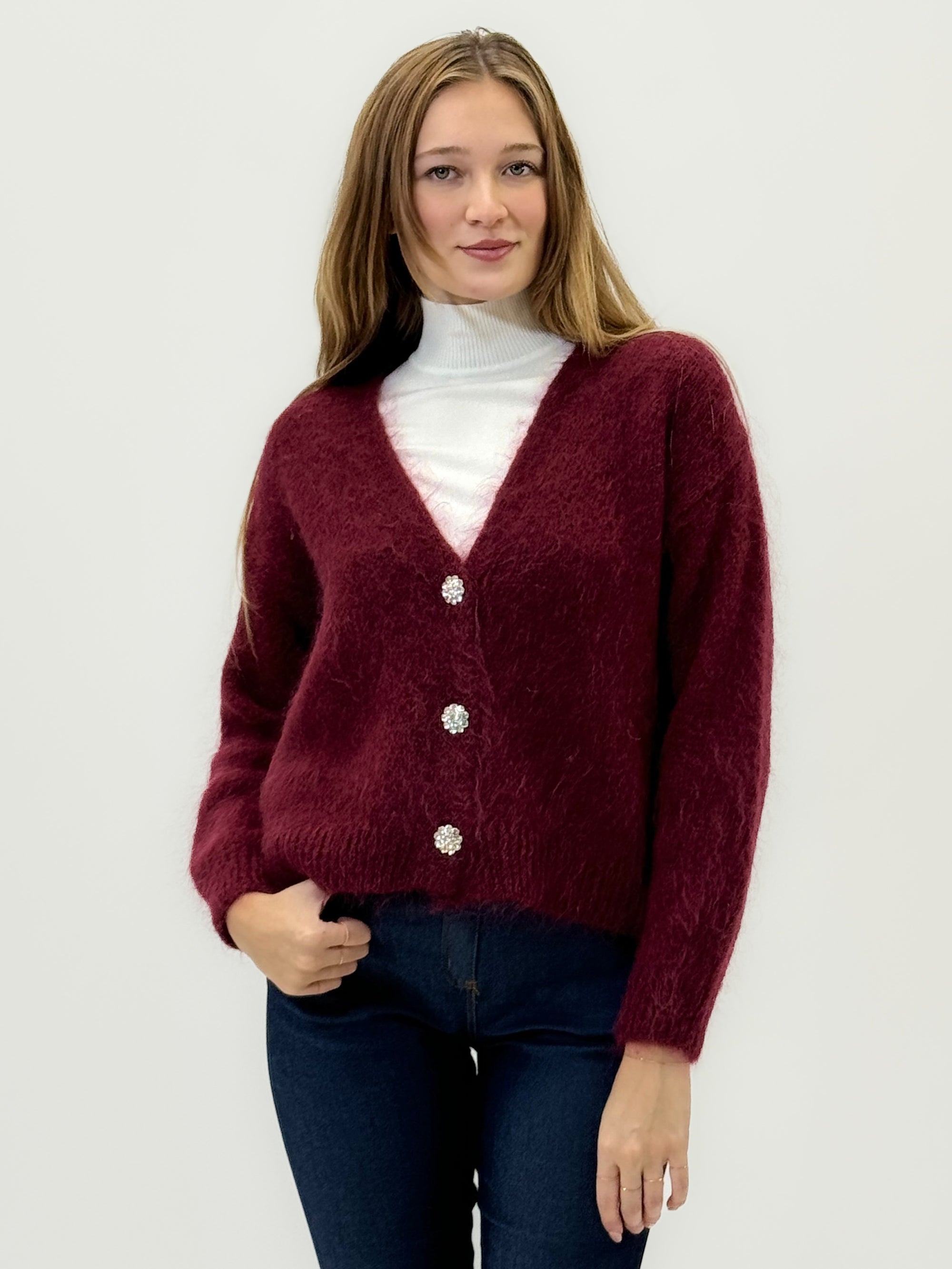 Cardigan in lana mohair con bottoni gioiello – Eleganza e morbidezza
