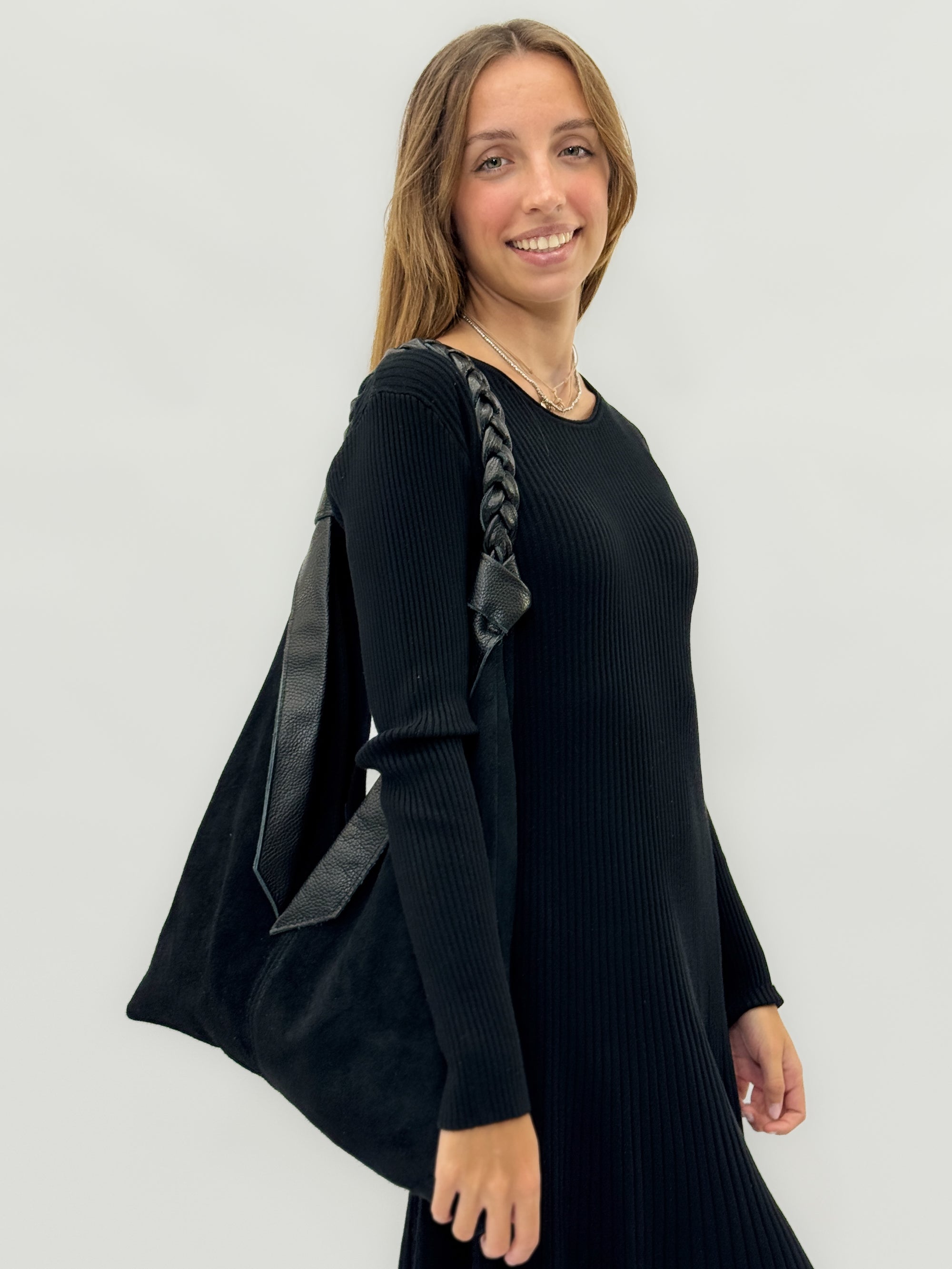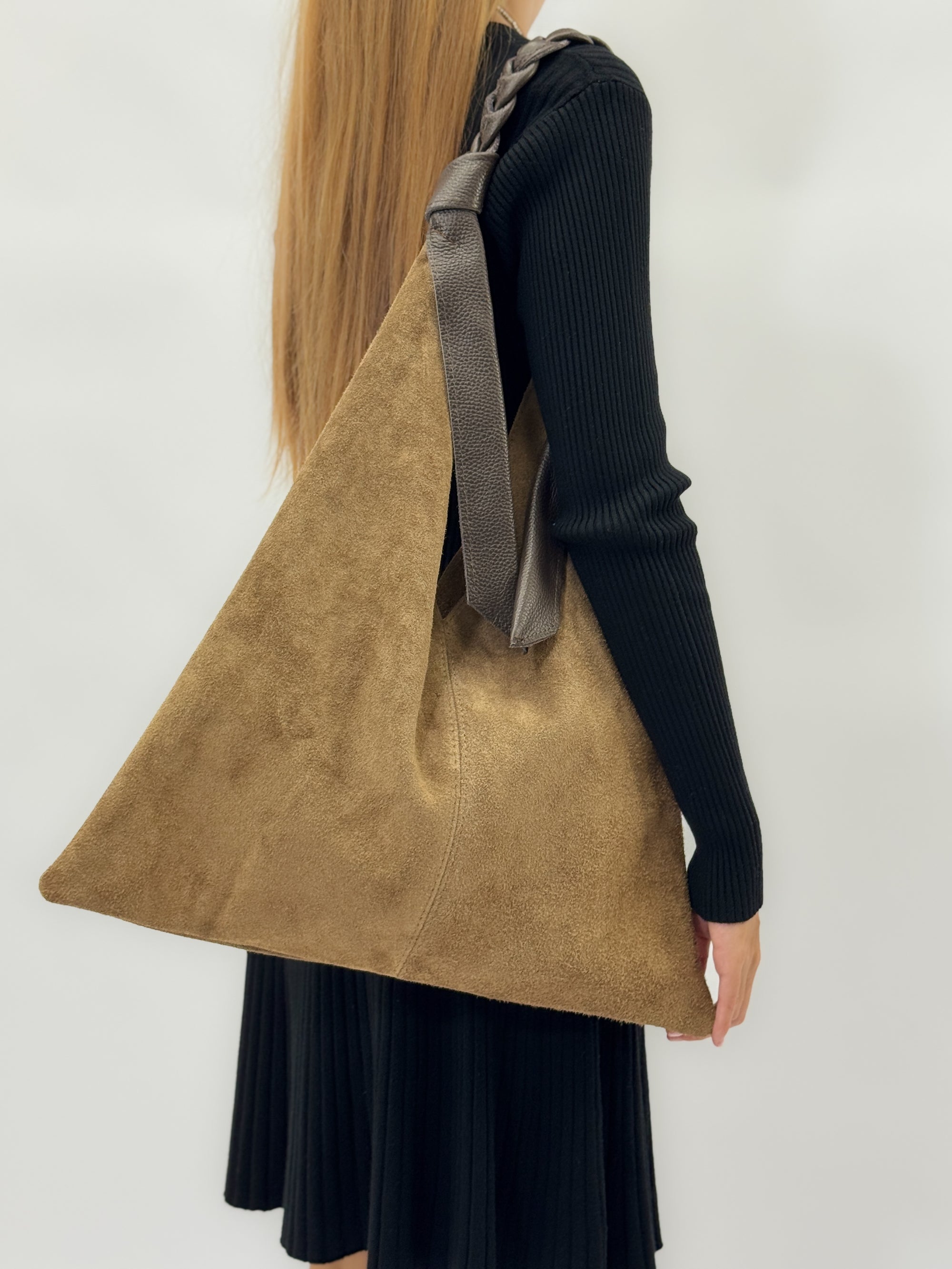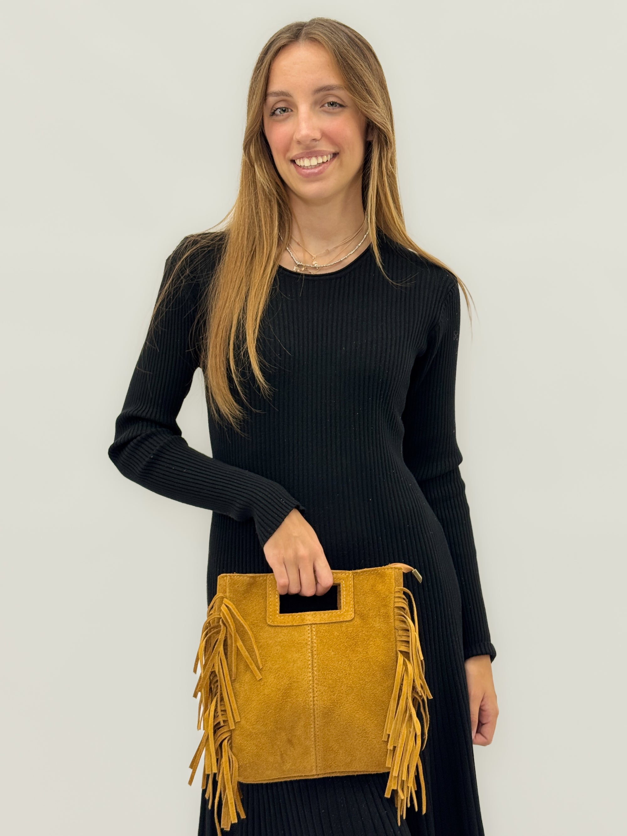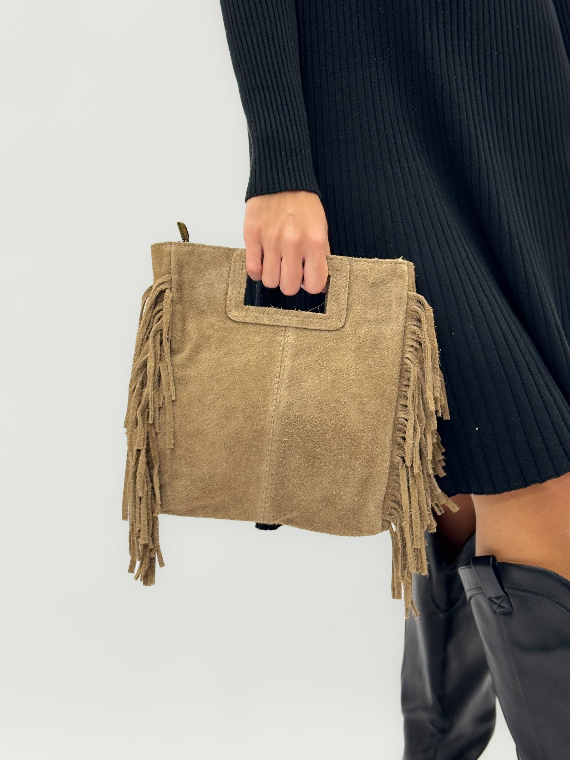 Borsa in vera pelle scamosciata con frange – Made in Italy