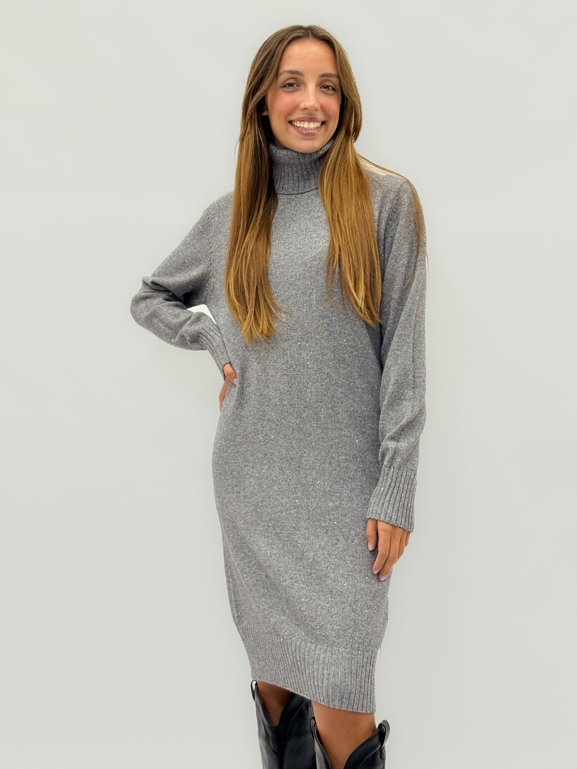 Abito in maglia con collo alto e filo lurex – Caldo, elegante e brillante