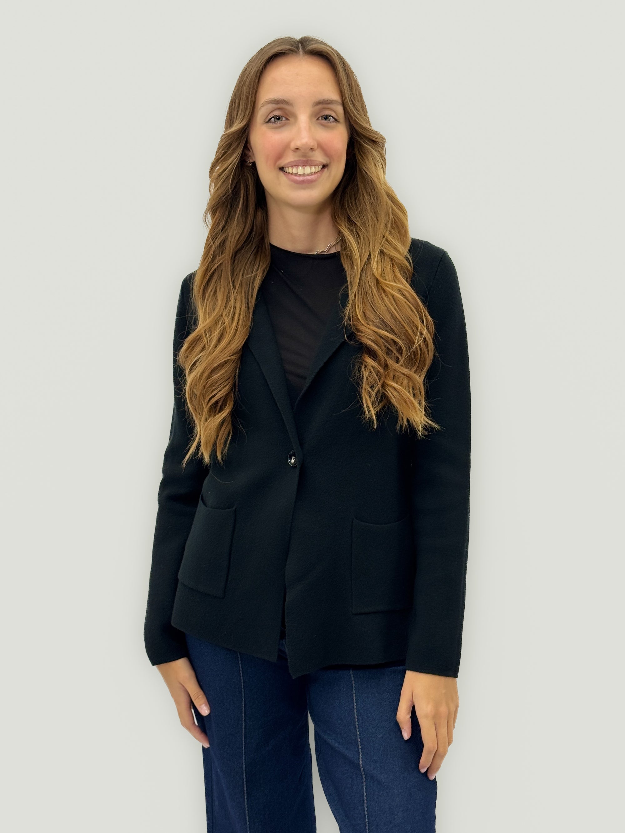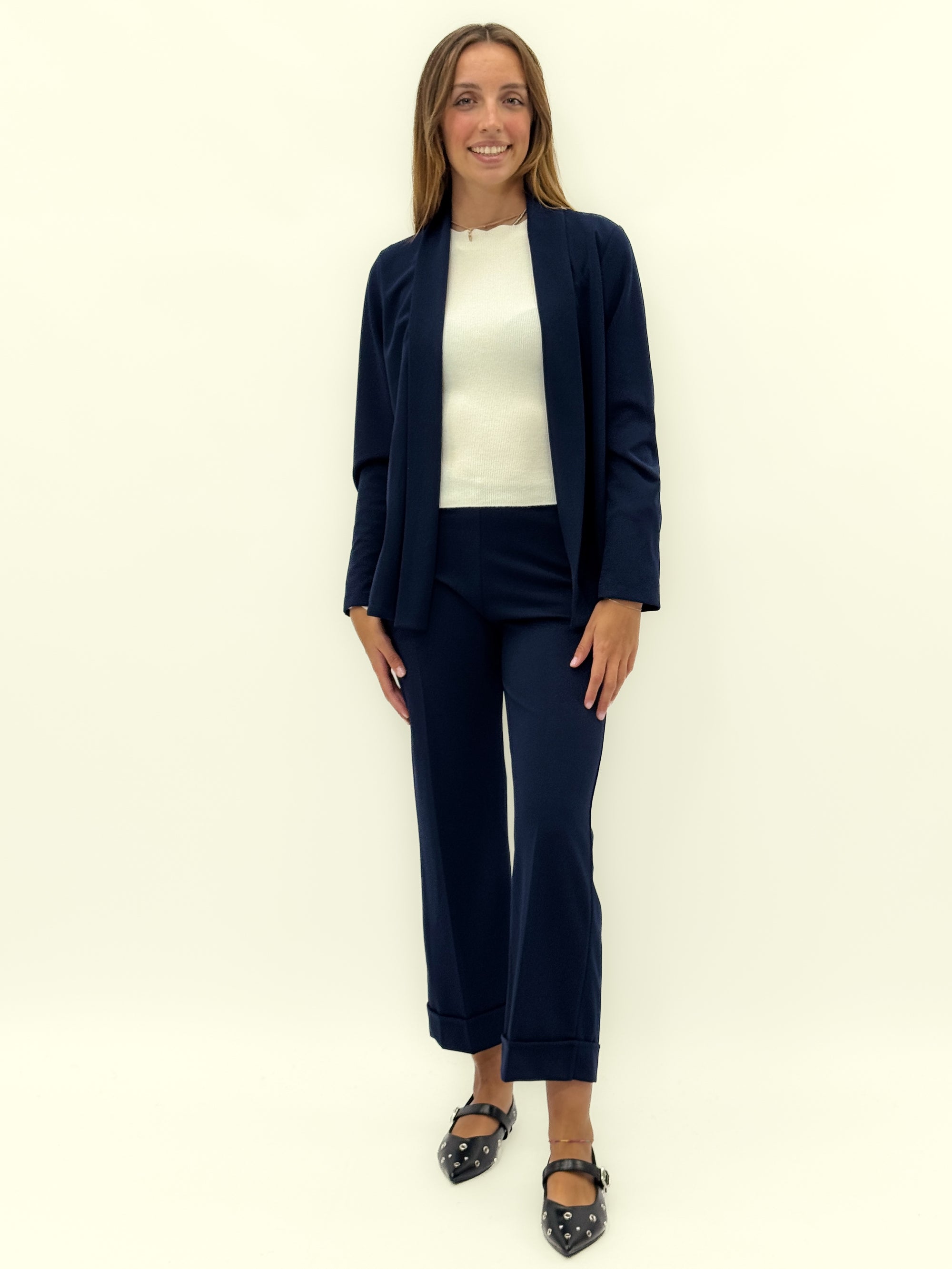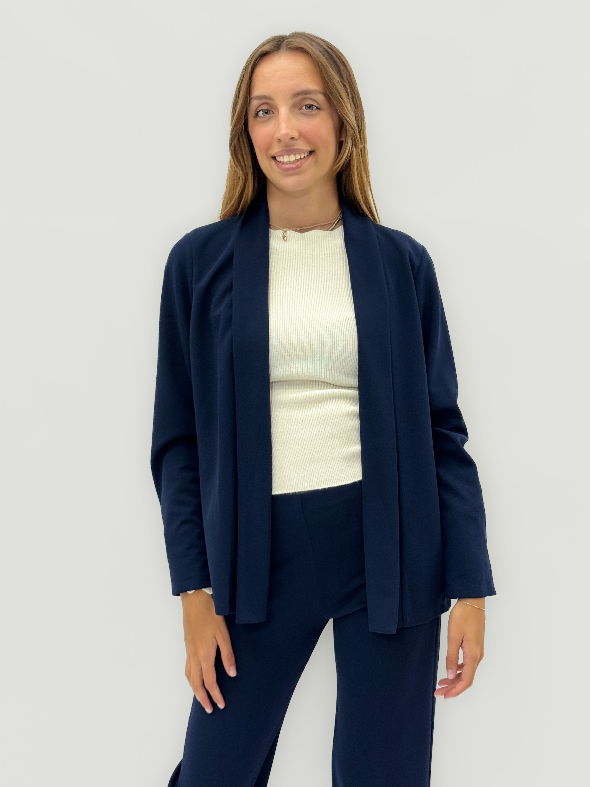 Giacca blu senza bottoni – Eleganza minimal e comfort assoluto