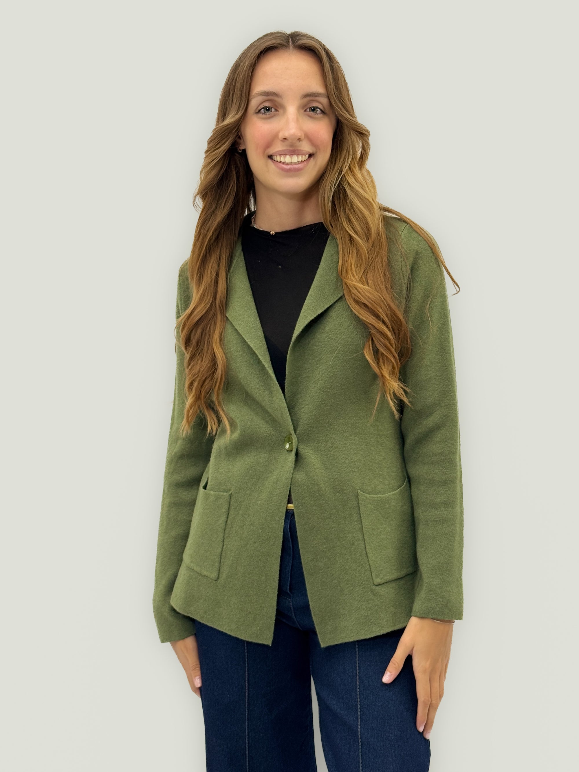 Giacca in maglia con bottone – Comfort e classe senza tempo