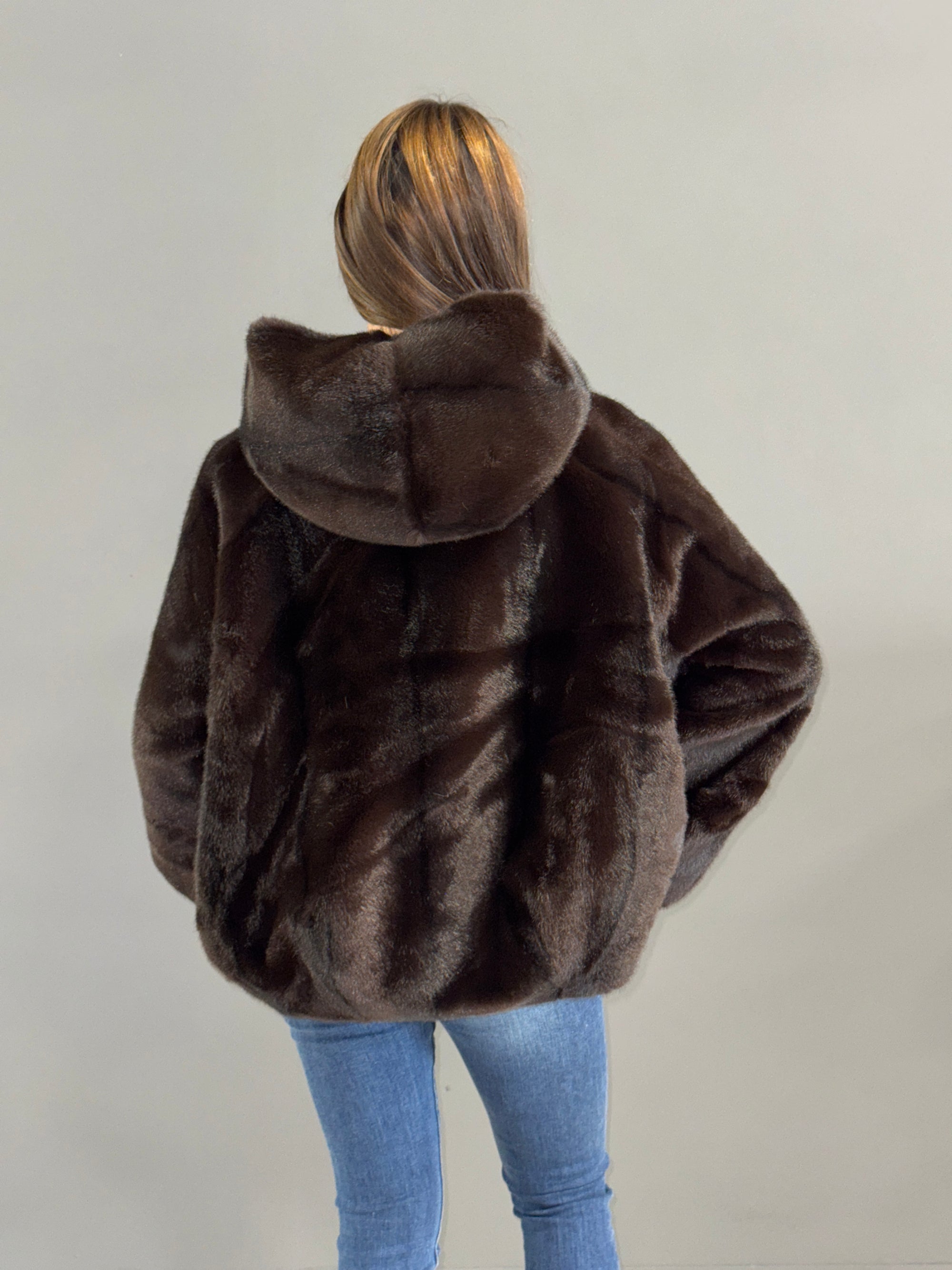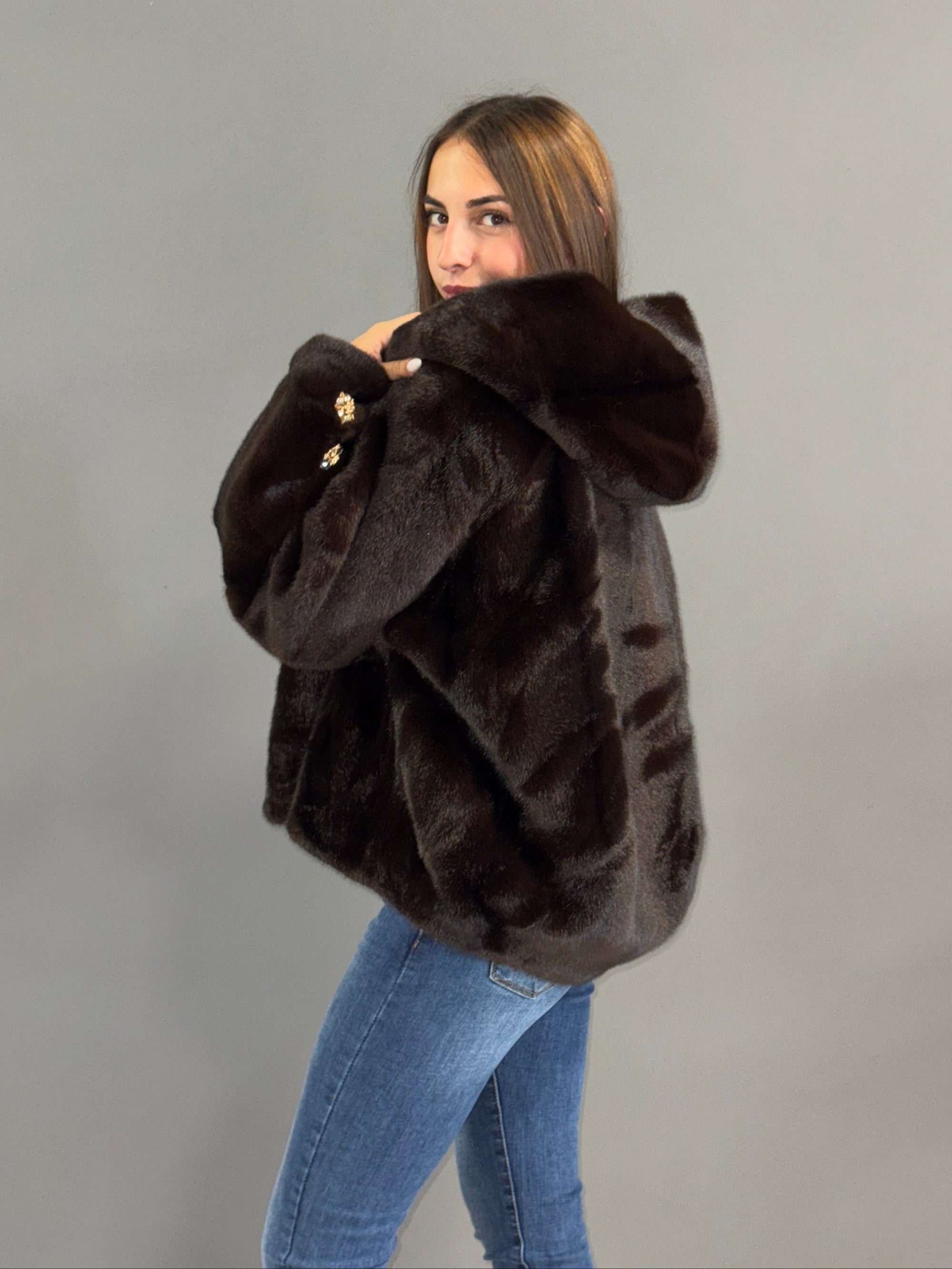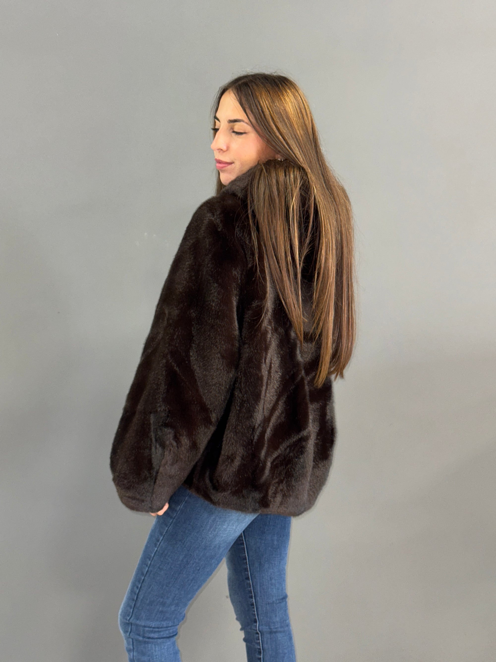 Giacca in ecopelliccia marrone con dettagli gioiello - Cortina