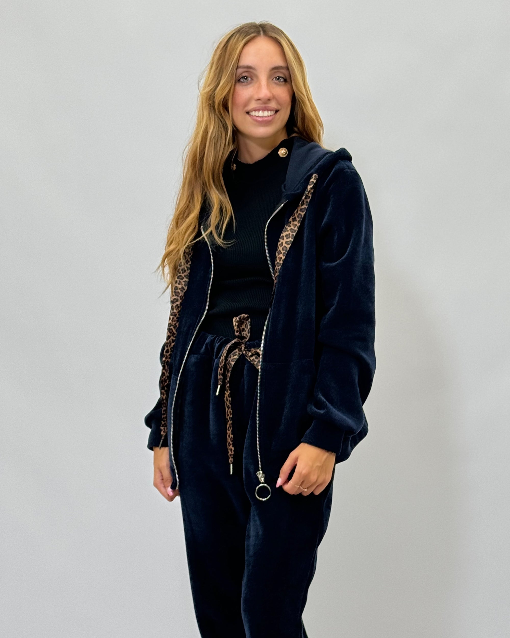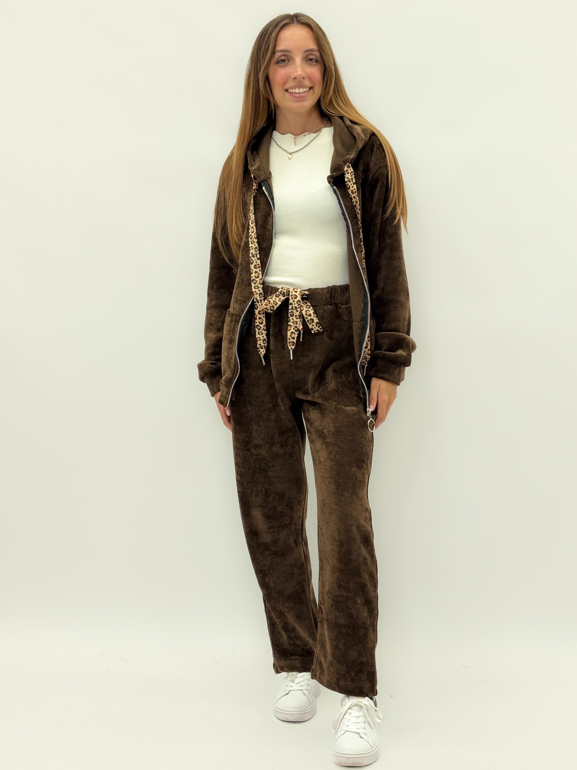 Tuta in velluto con dettagli animalier – Comoda e alla moda