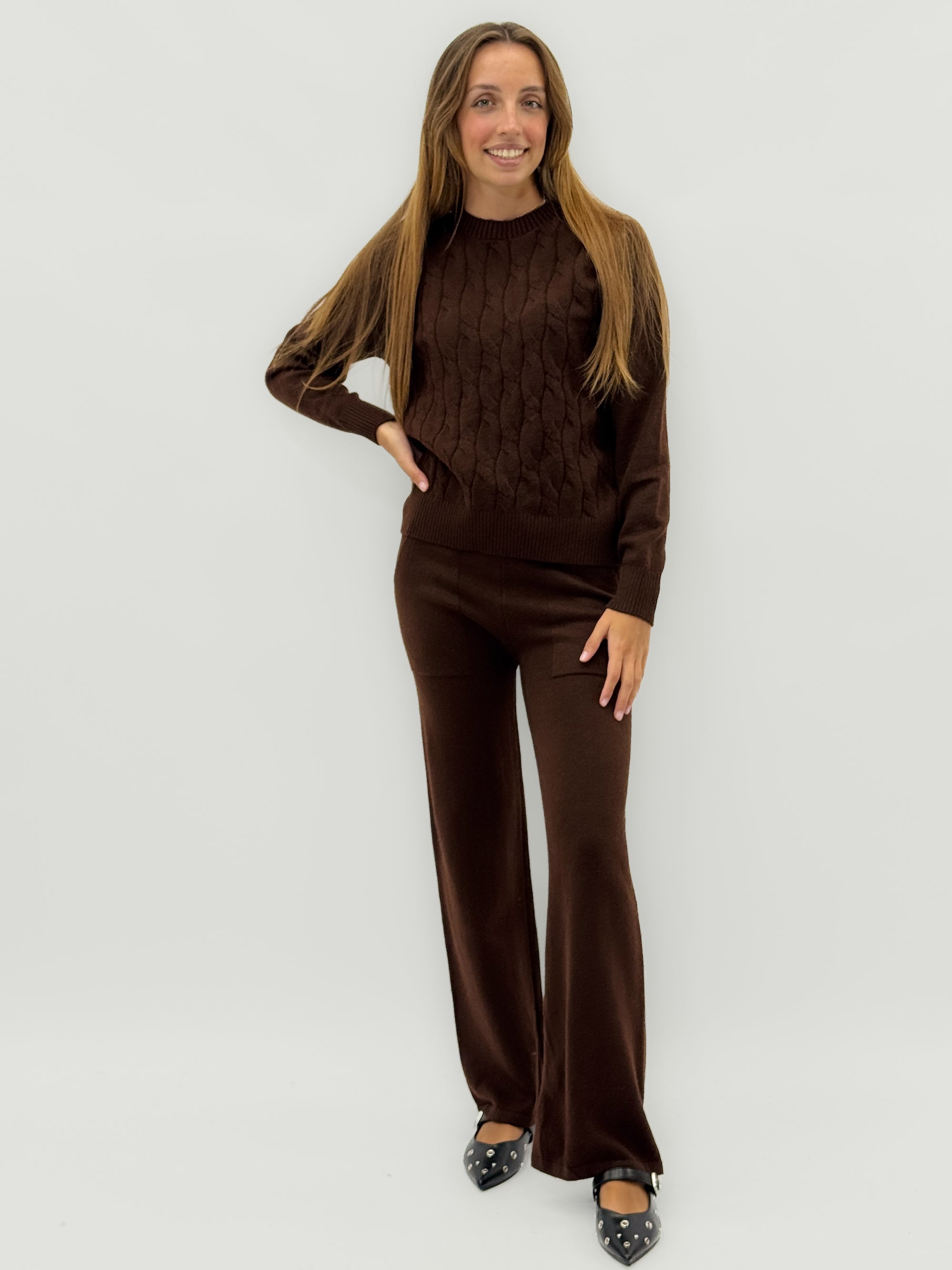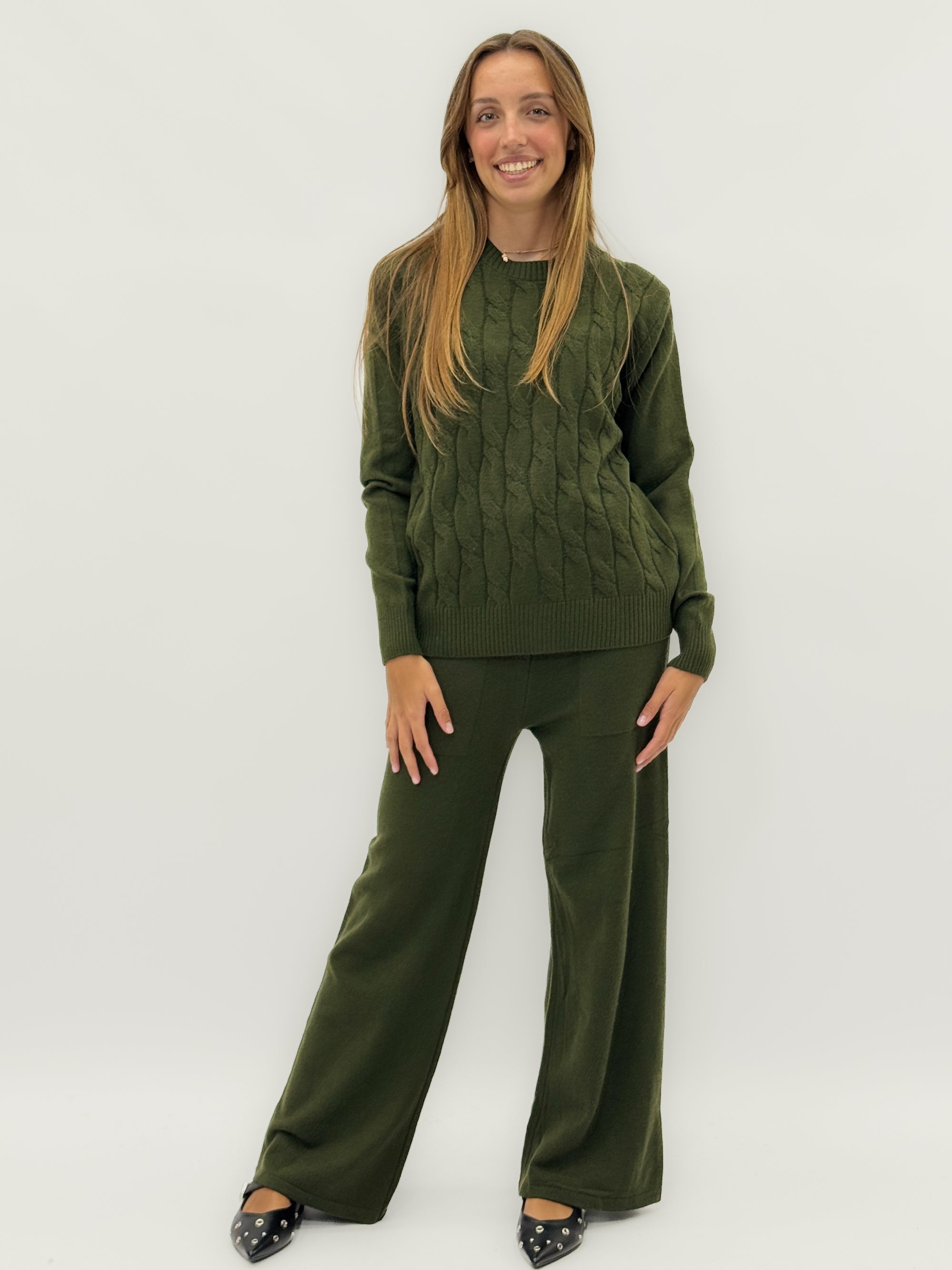 Completo maglia treccia e pantalone – Stile e comfort invernale