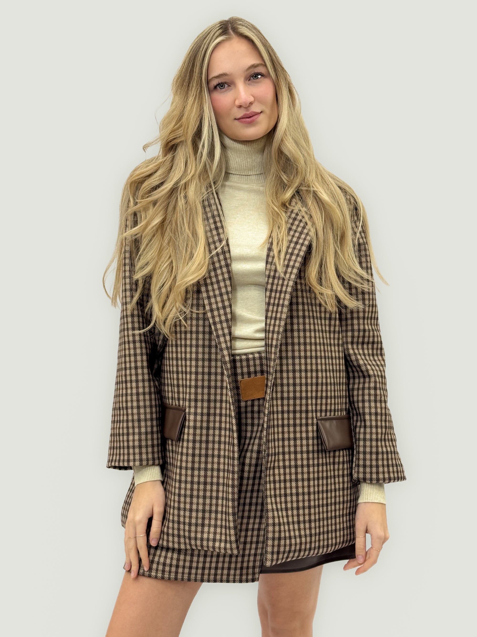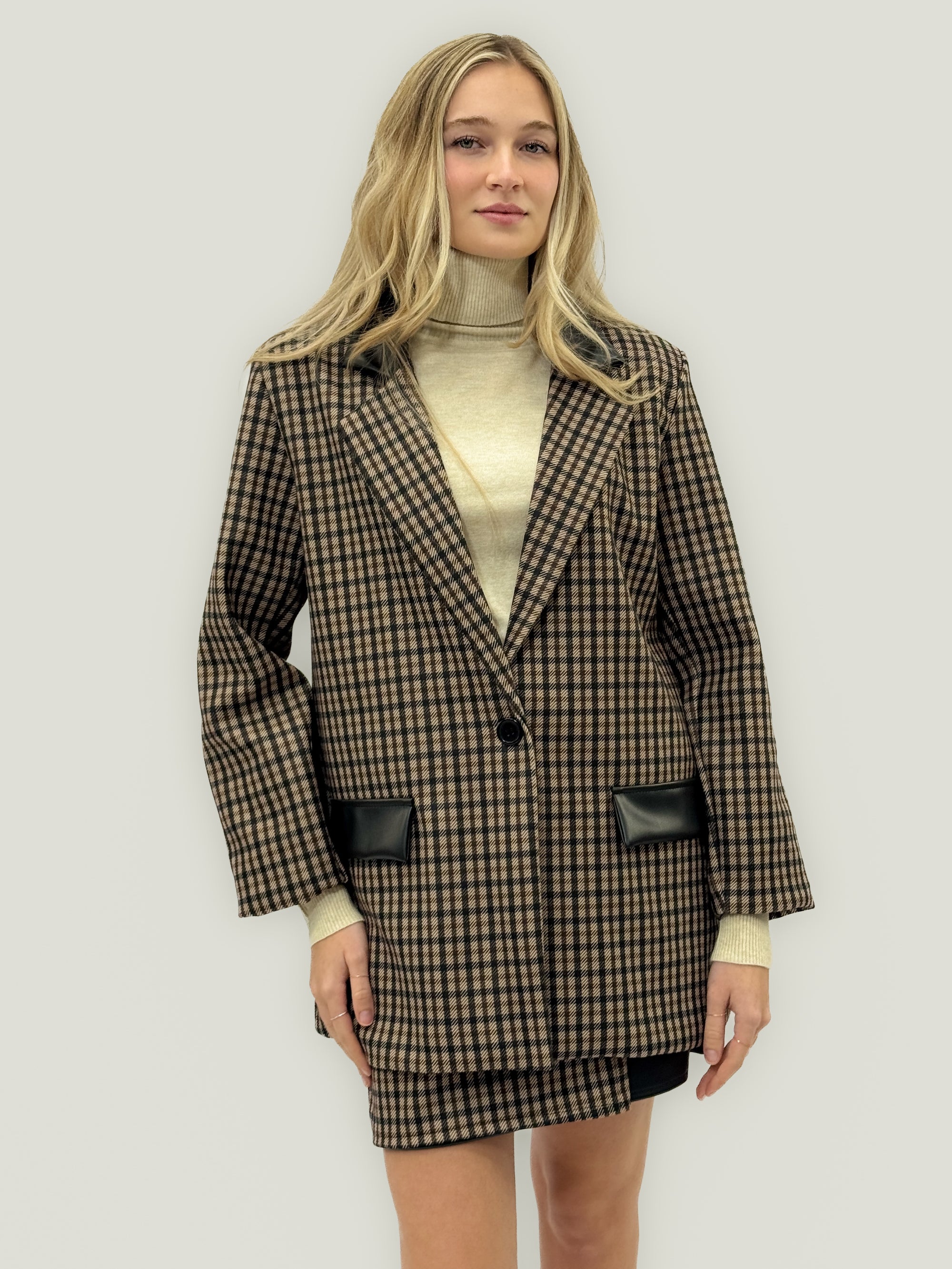 Giacca Principe di Galles con Dettagli Ecopelle
