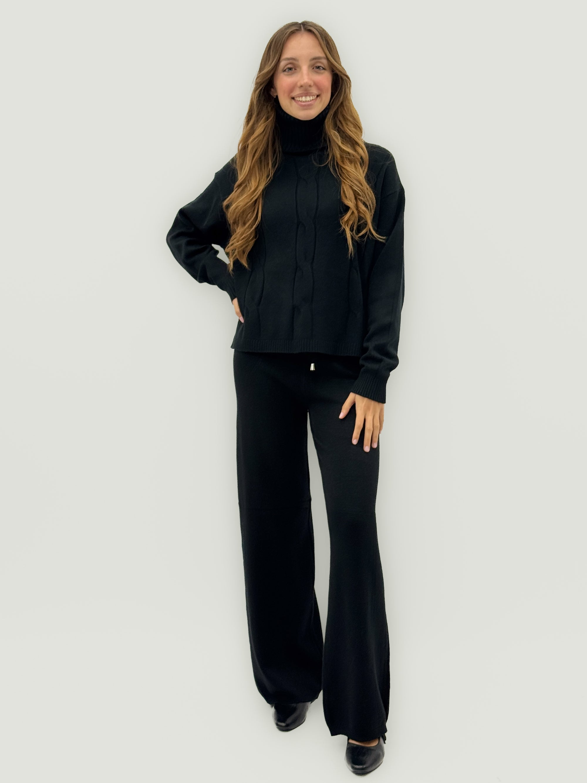 Completo maglia e pantalone con dettagli intrecciati – Comfort e raffinatezza quotidiana