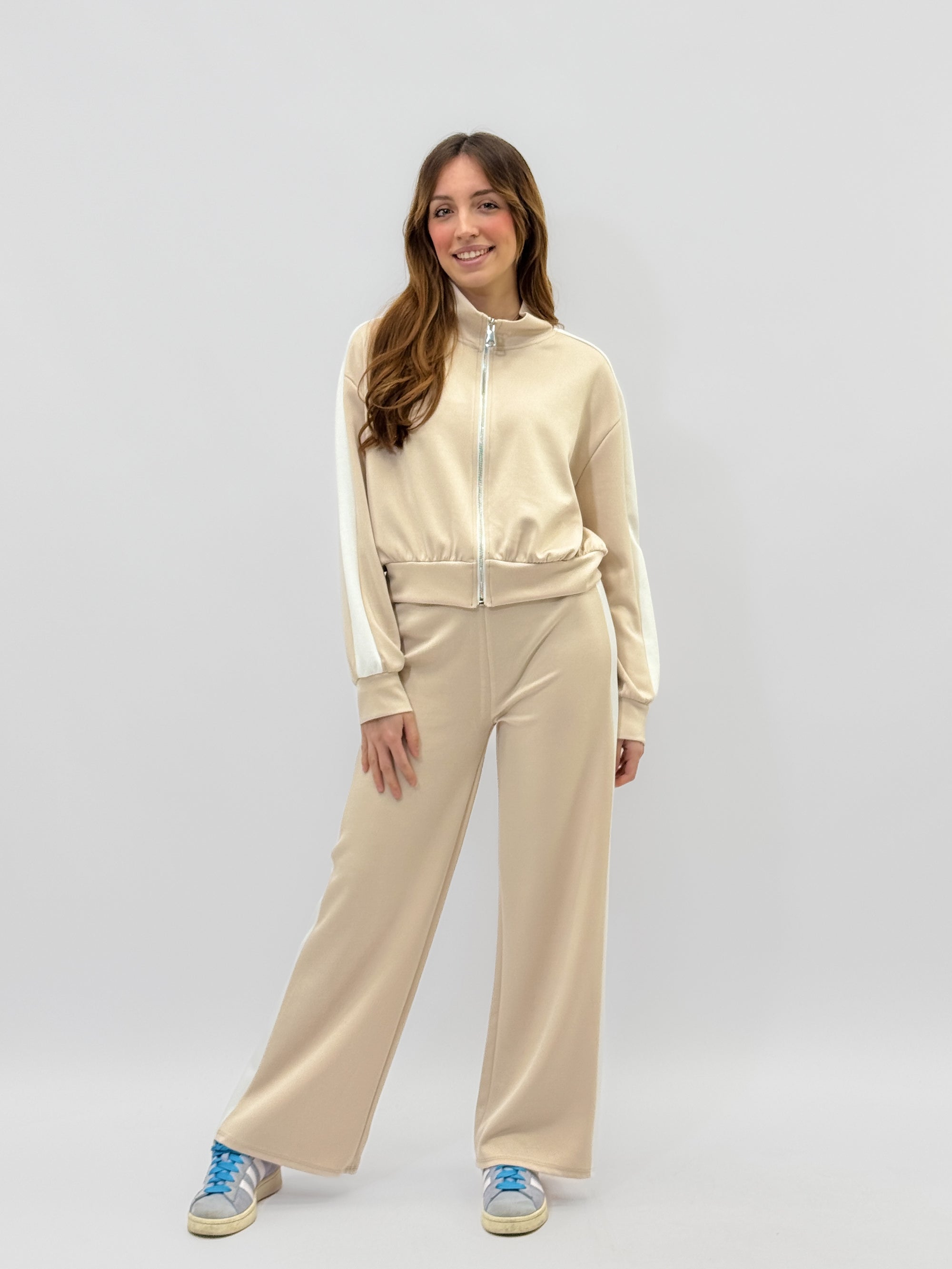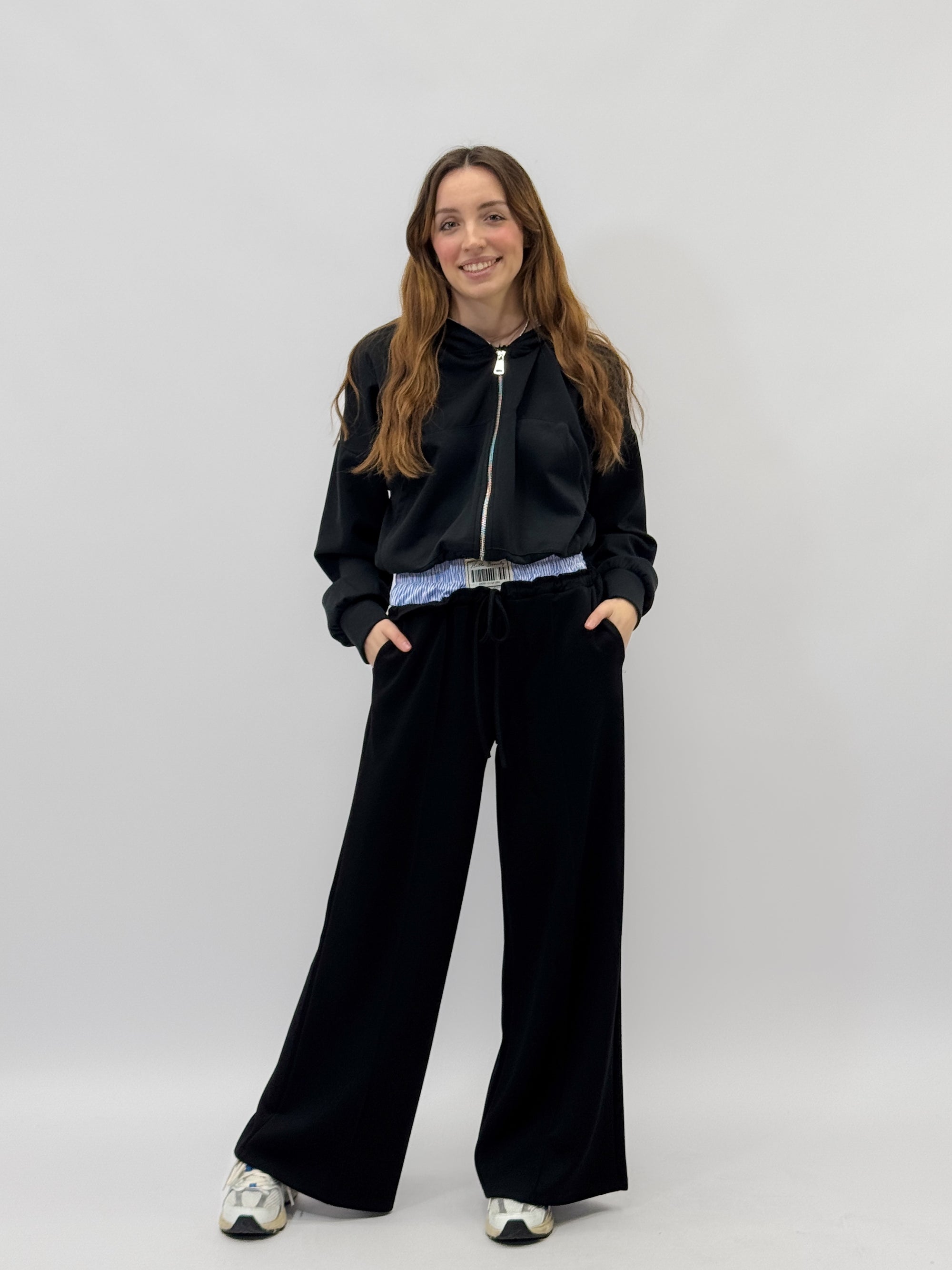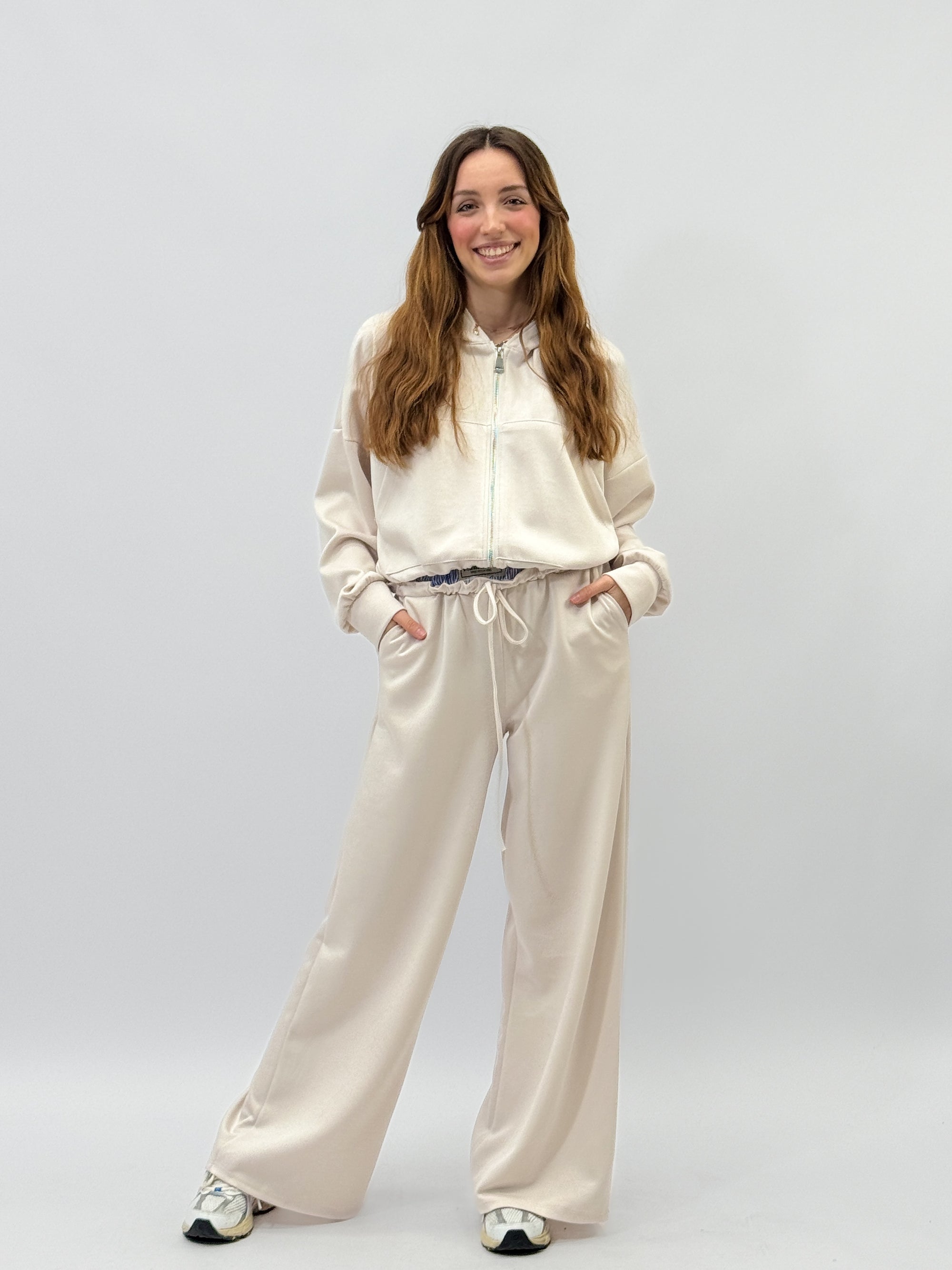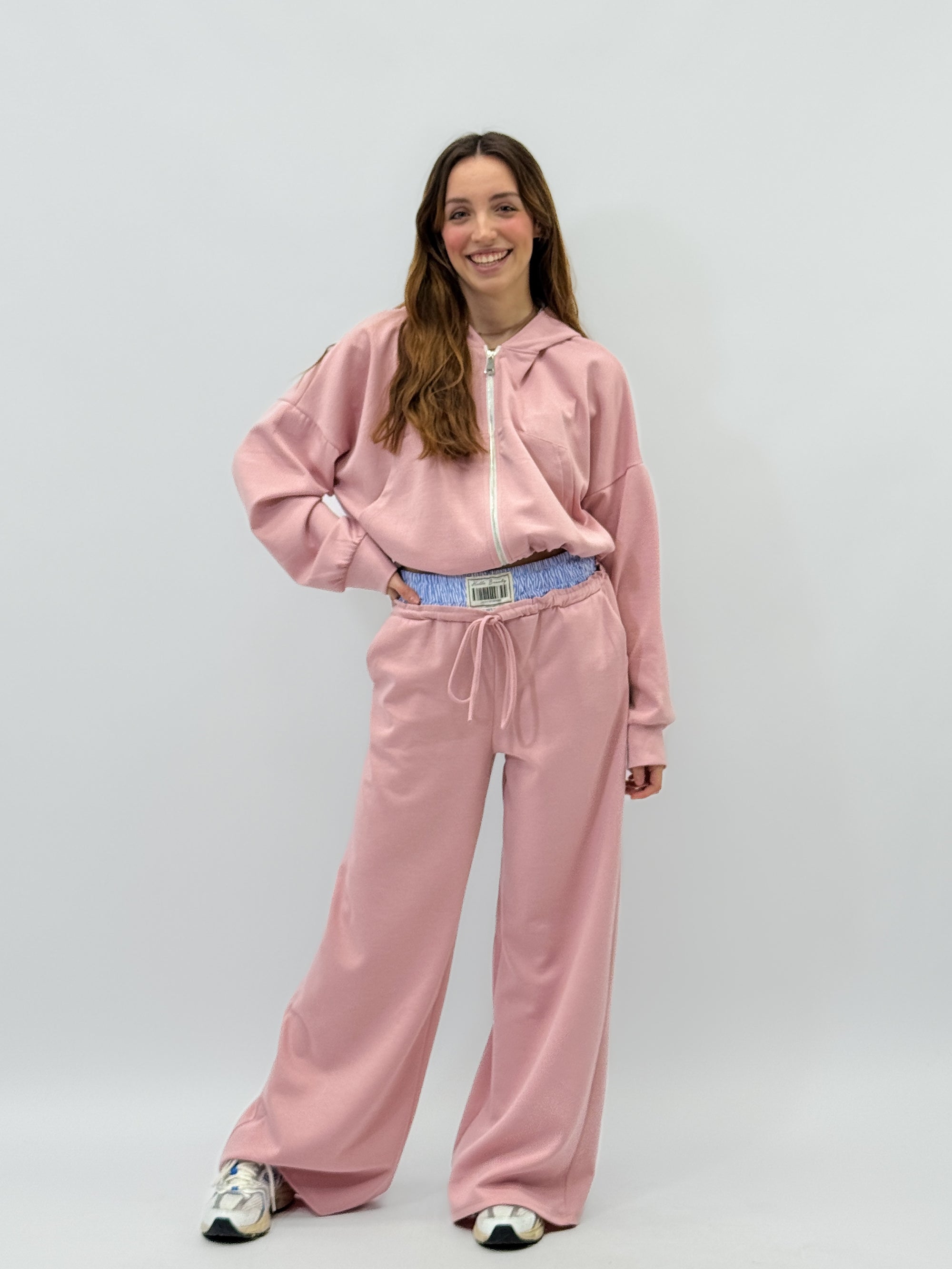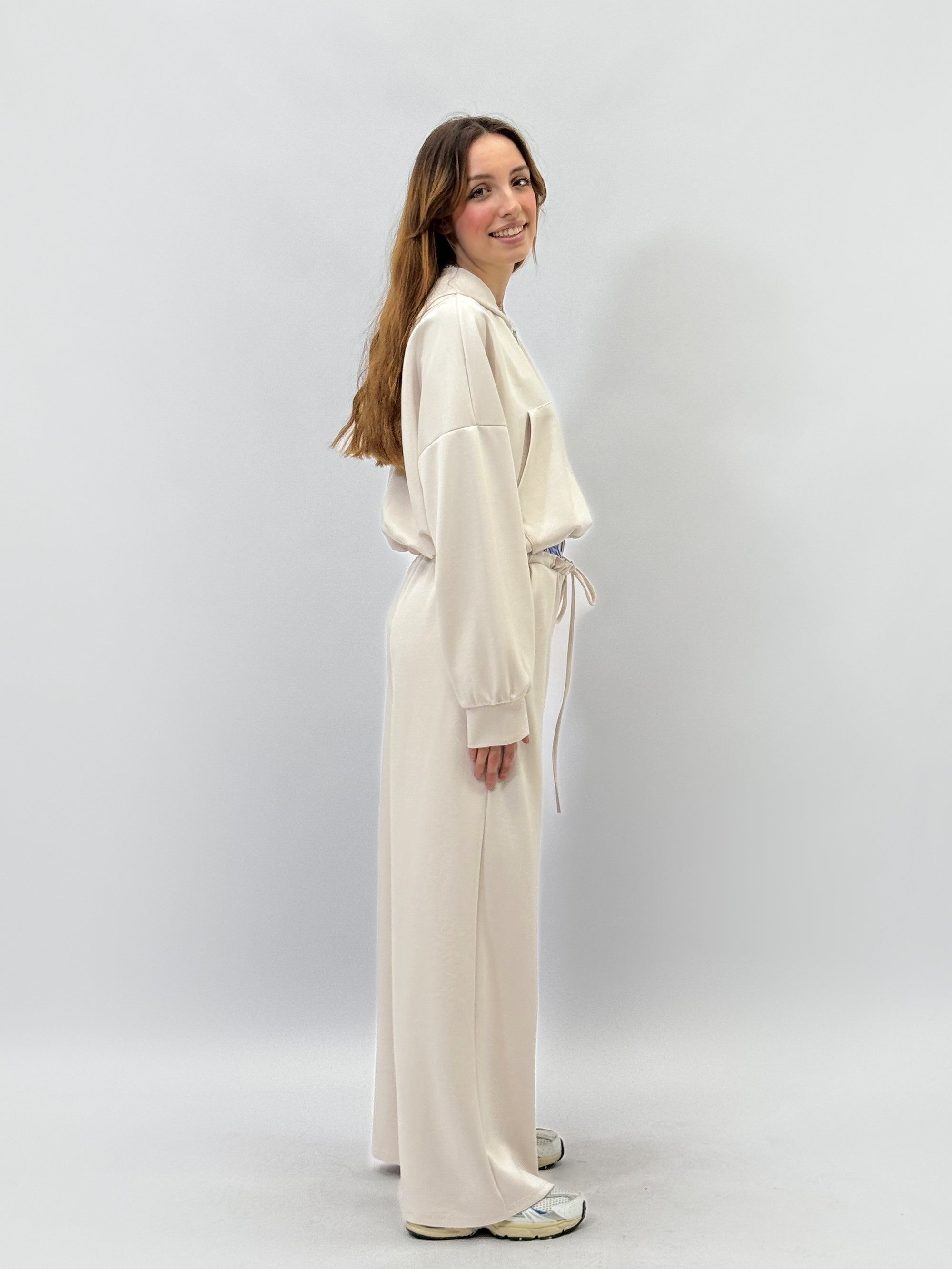 Completo in tessuto tecnico con felpa oversize e pantalone palazzo