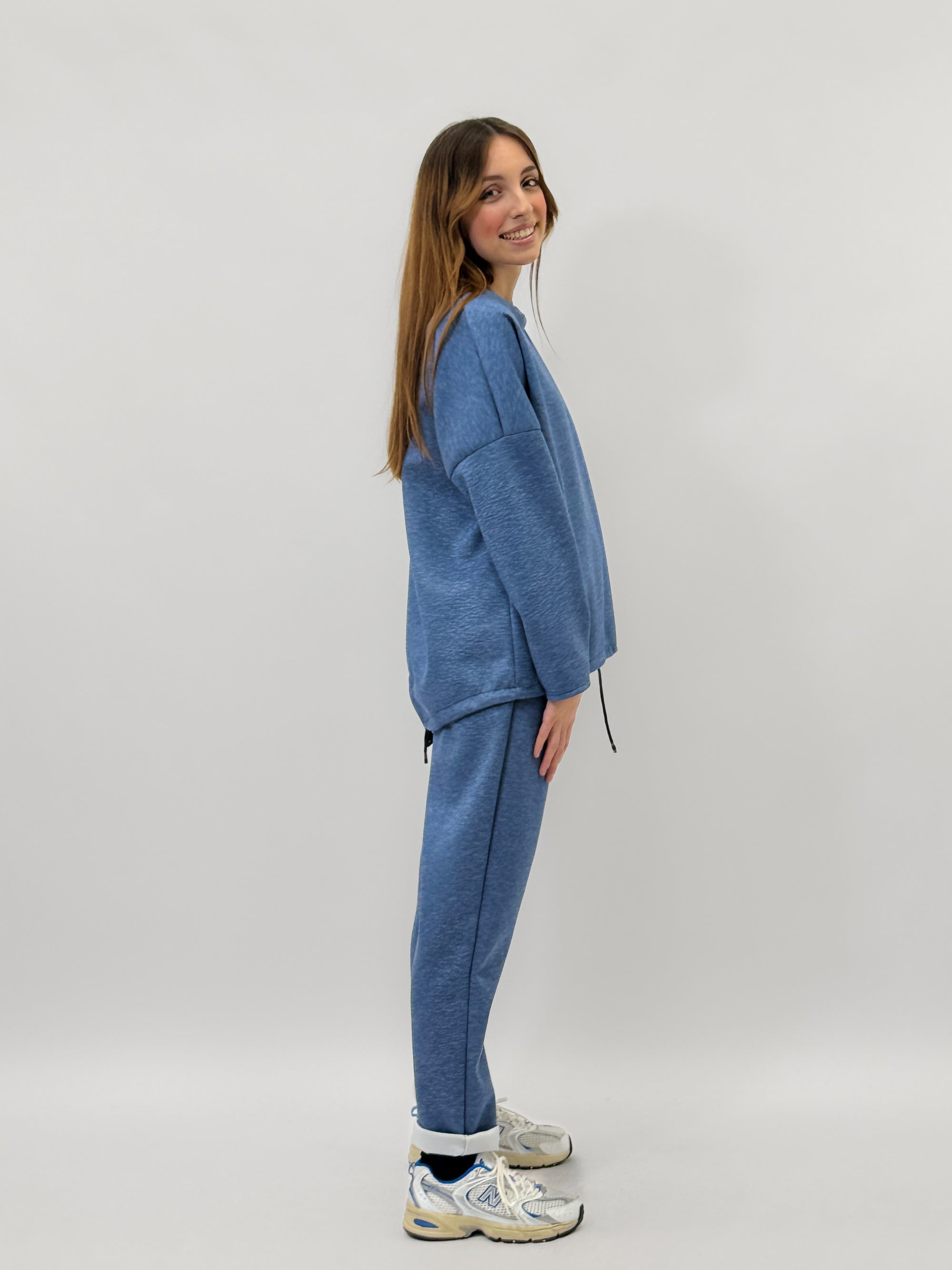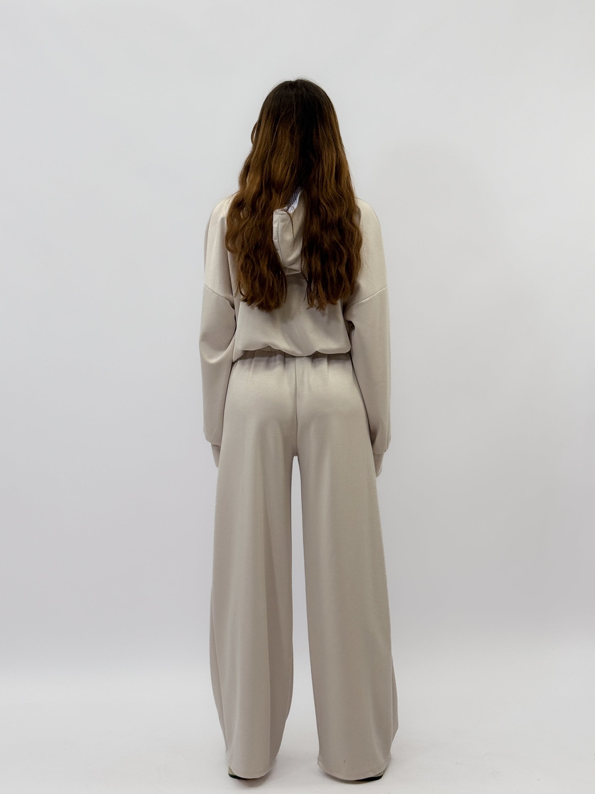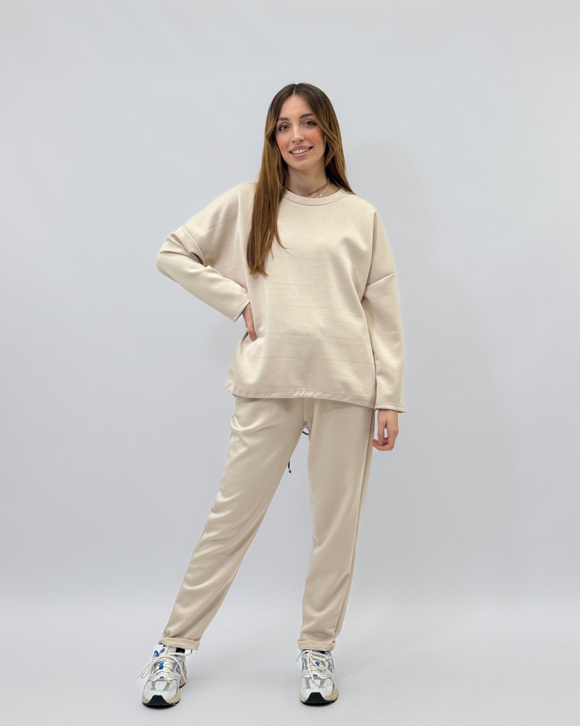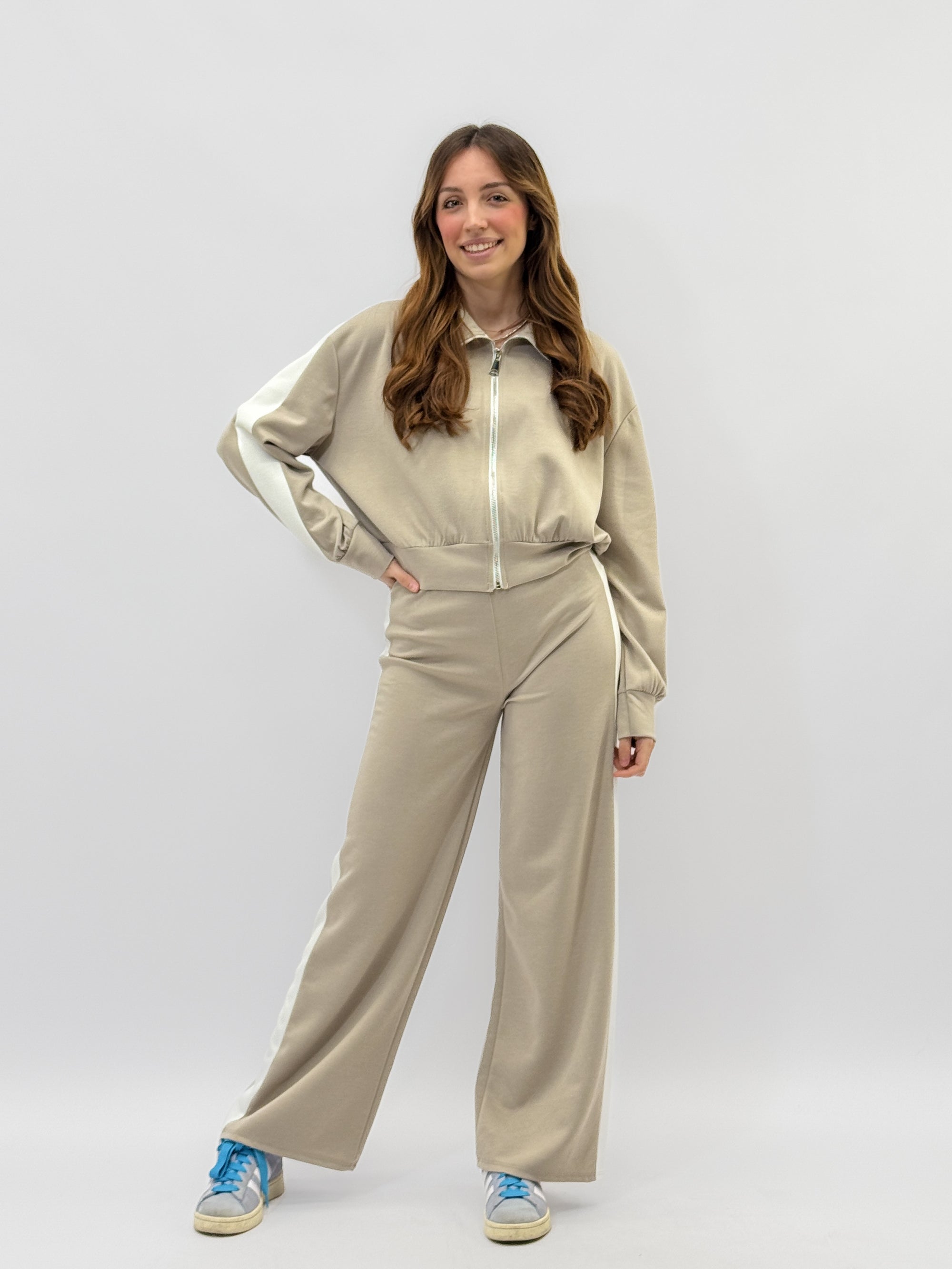 Completo in tessuto tecnico con felpa oversize e pantalone palazzo