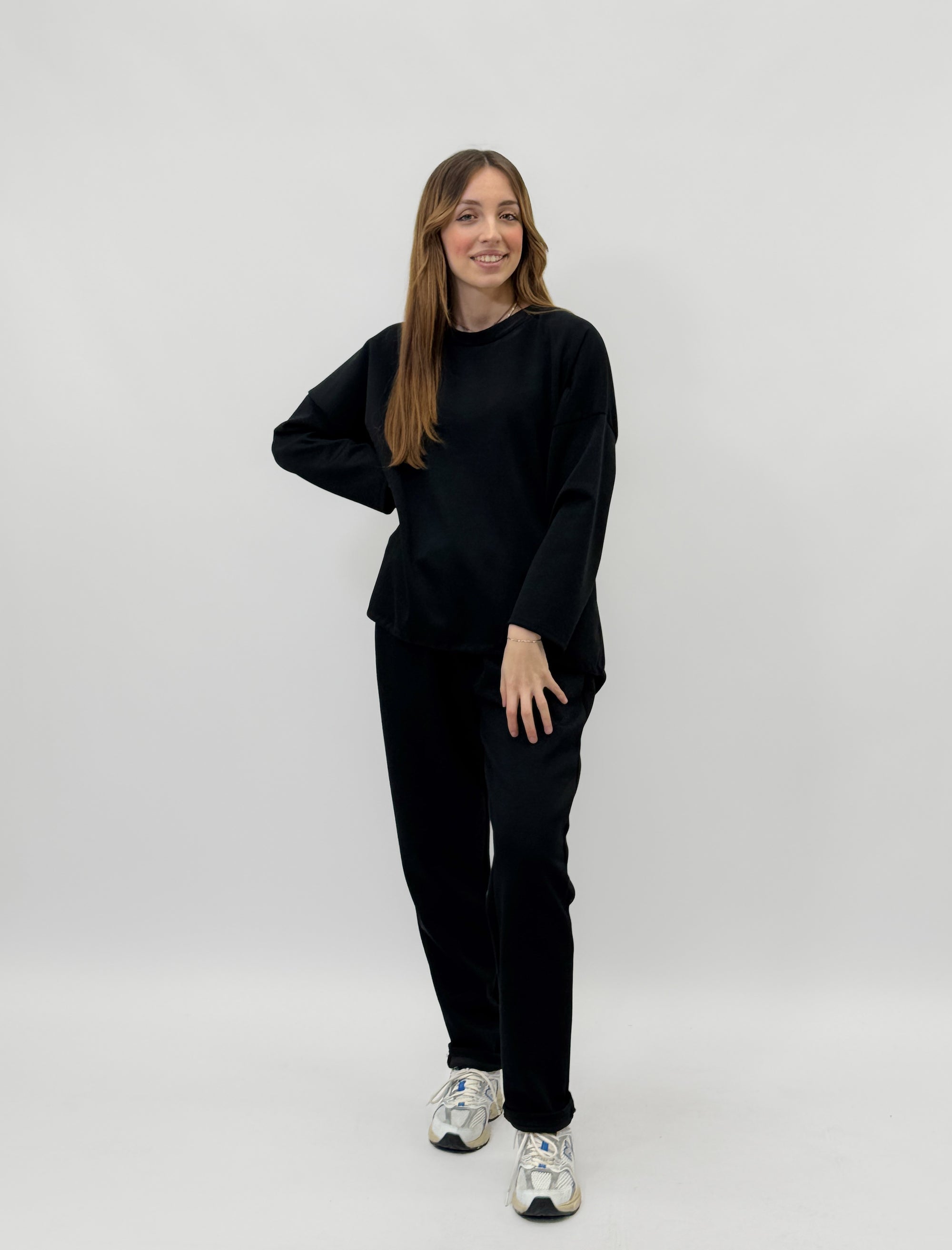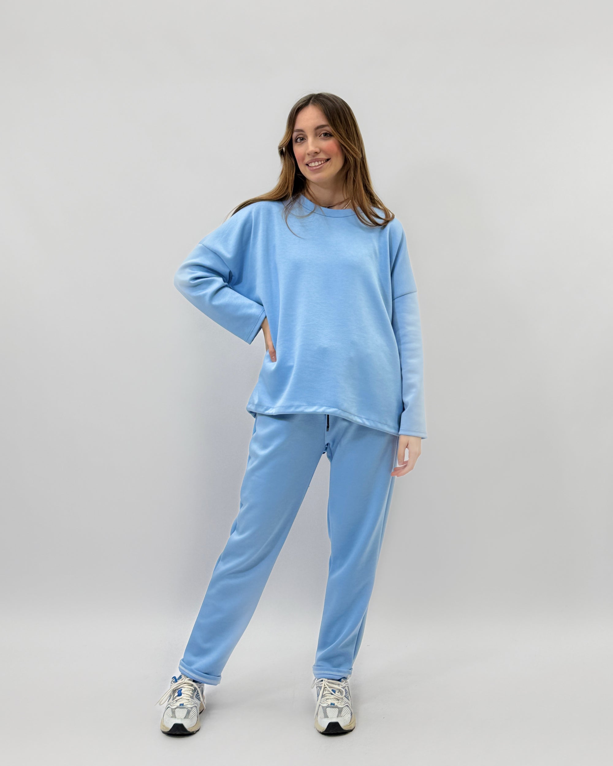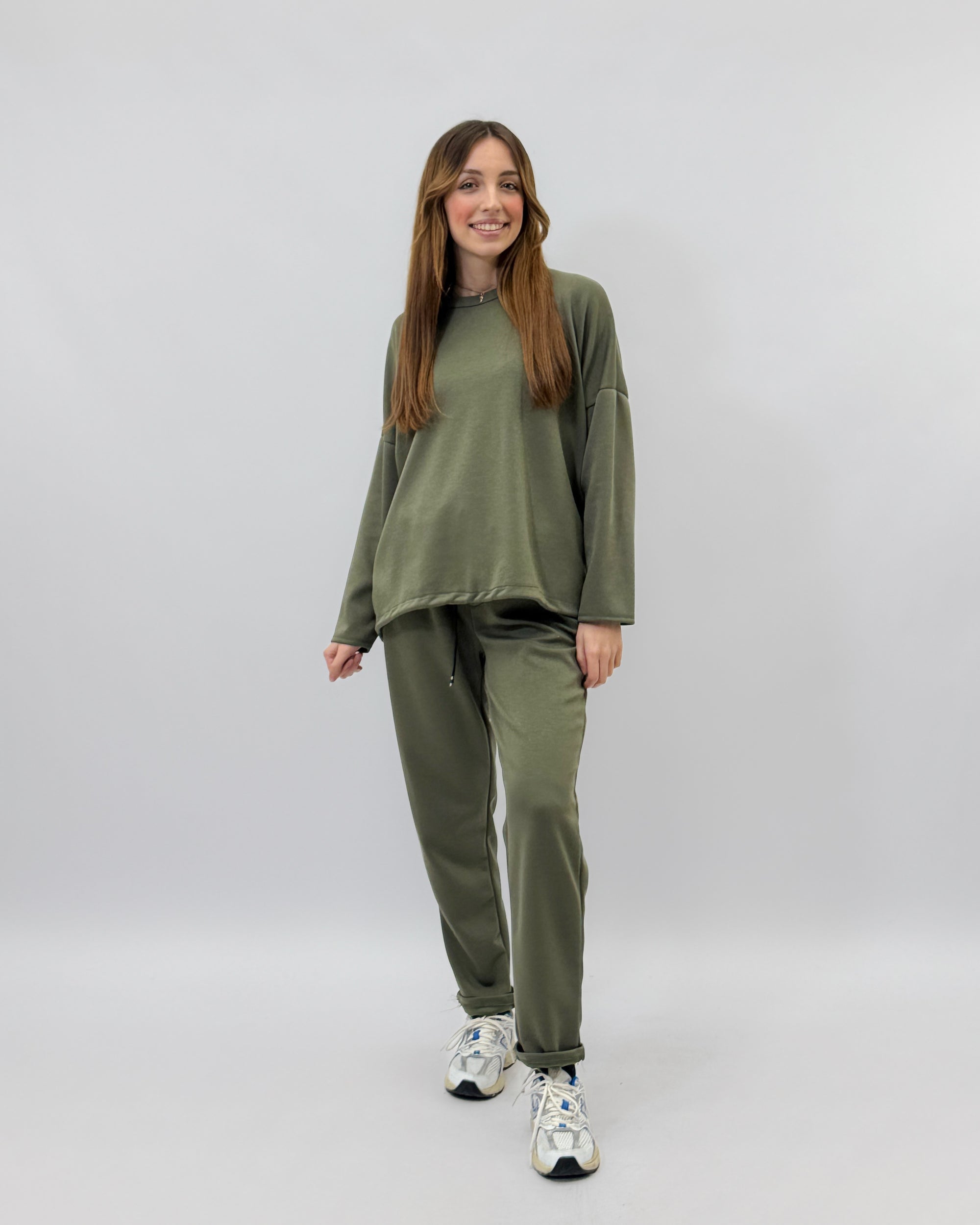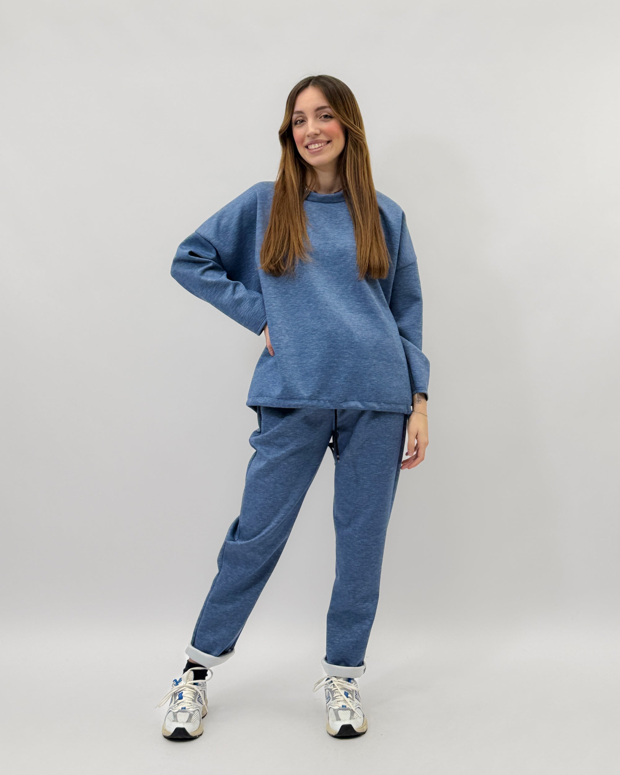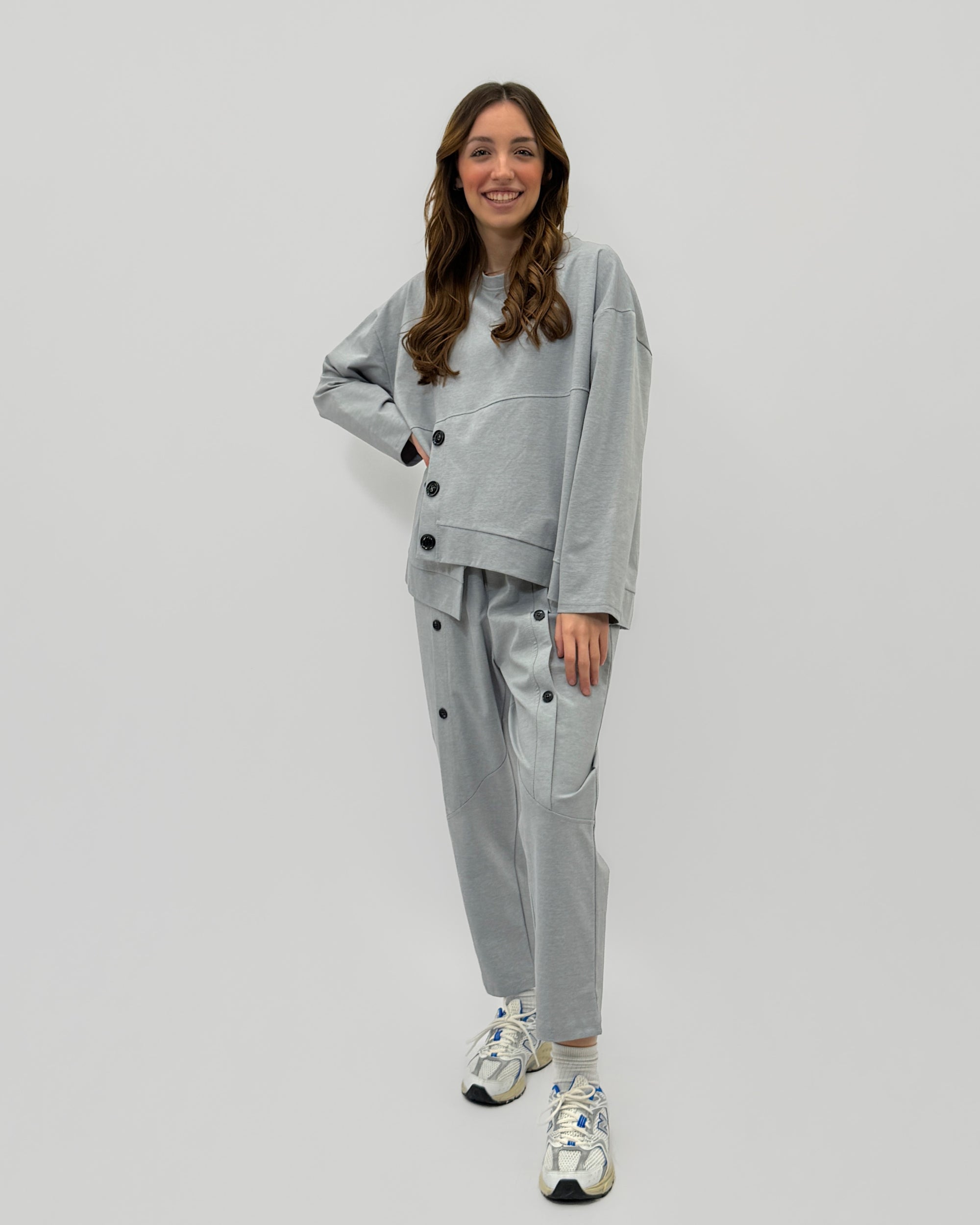 Completo in tessuto tecnico con felpa oversize e pantalone palazzo