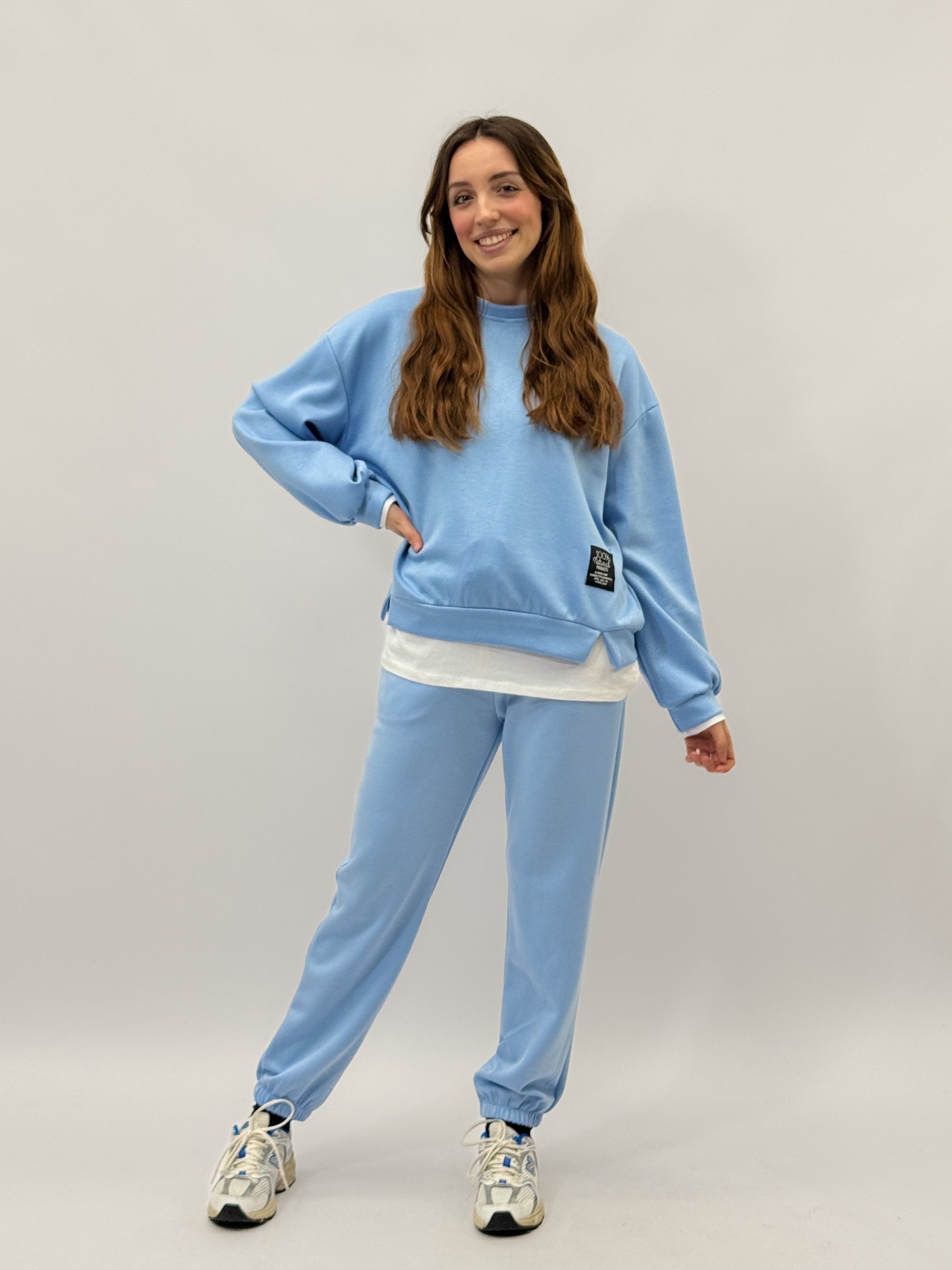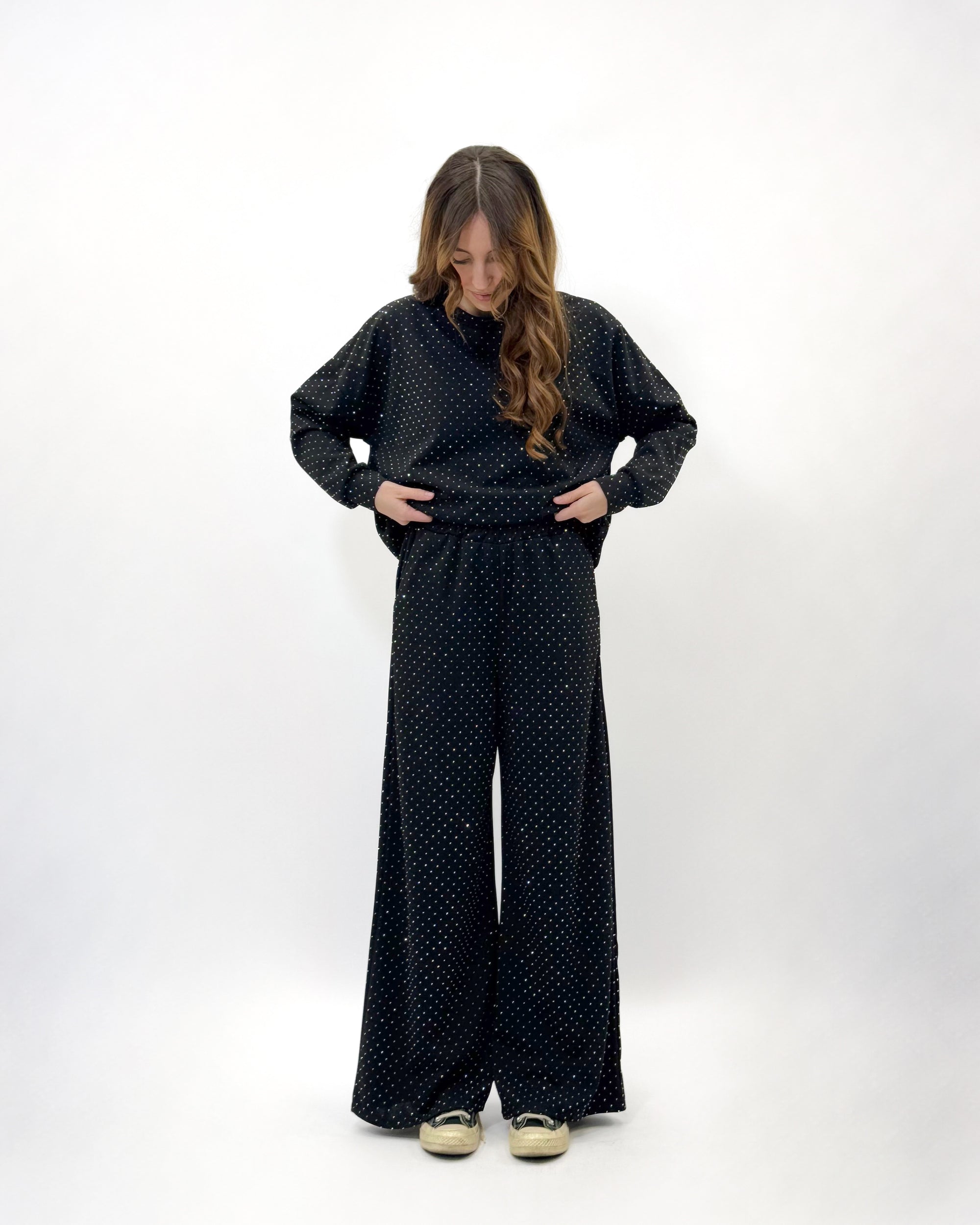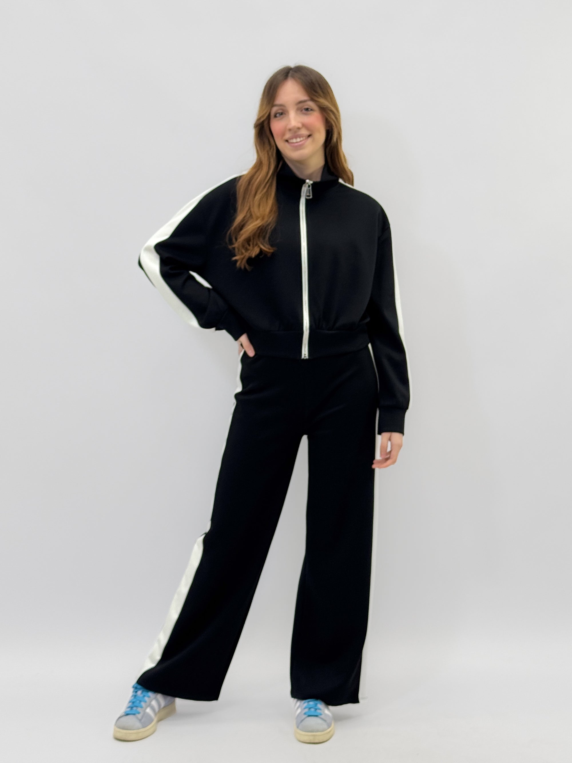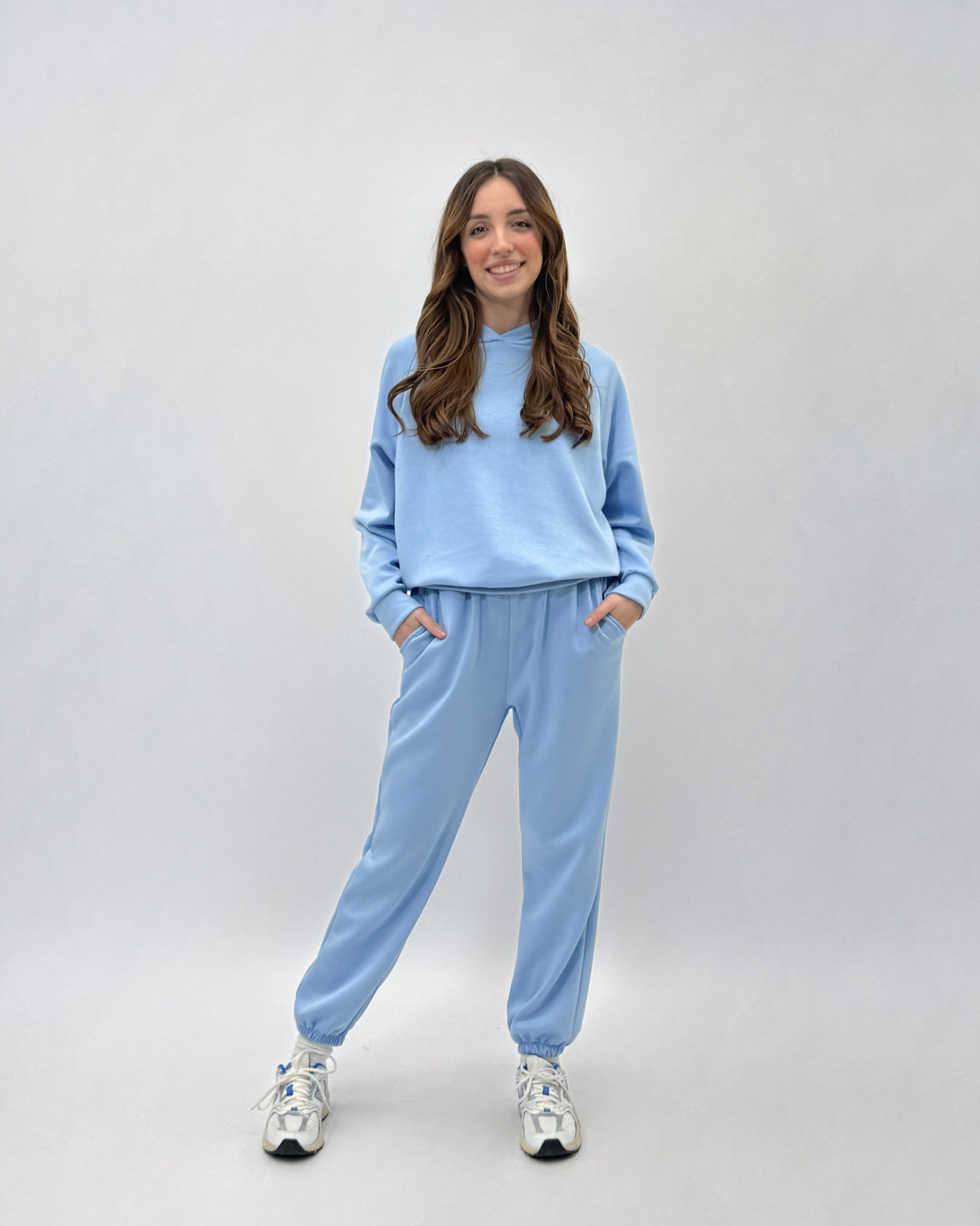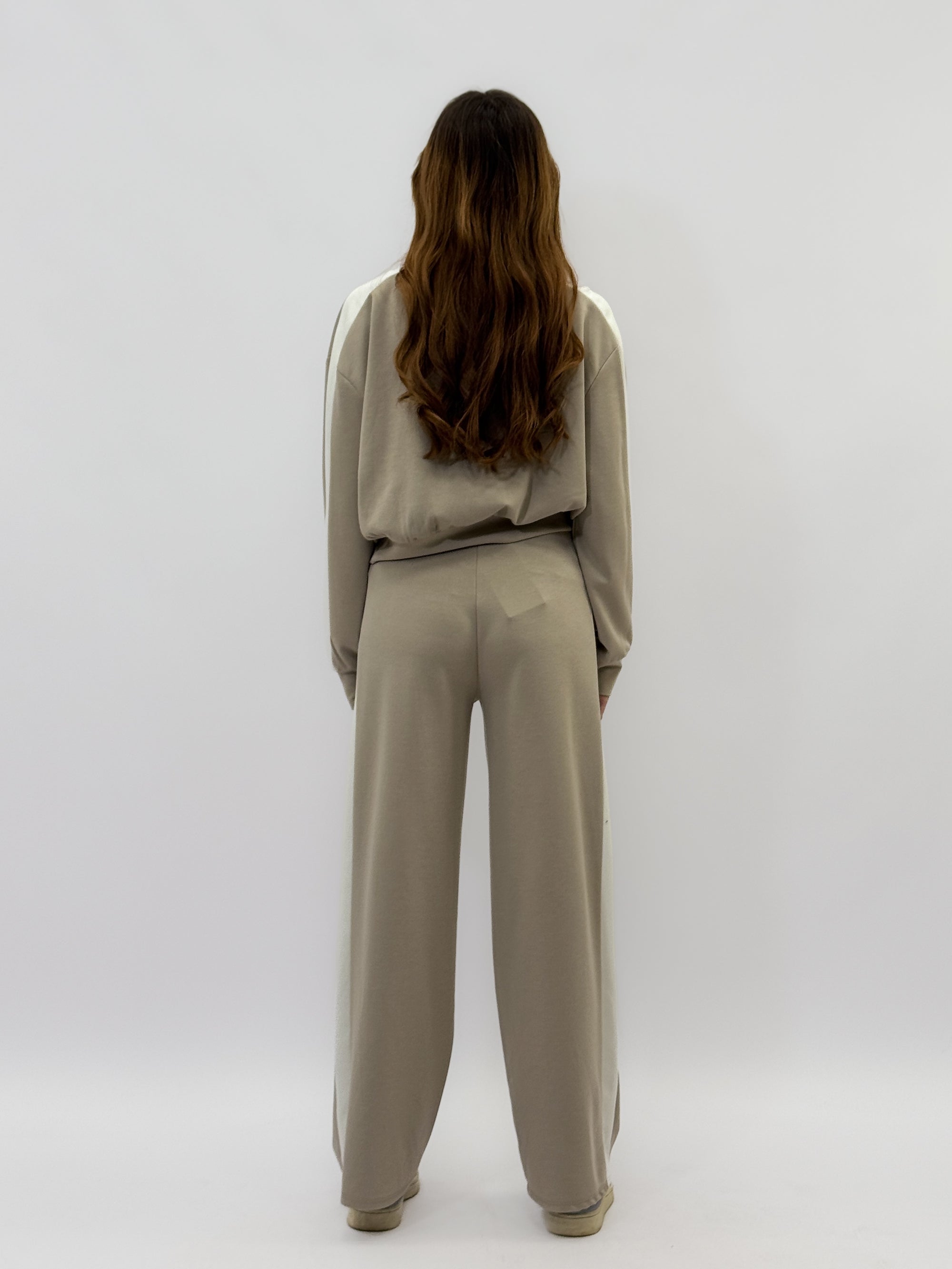 Completo in tessuto tecnico con felpa oversize e pantalone palazzo