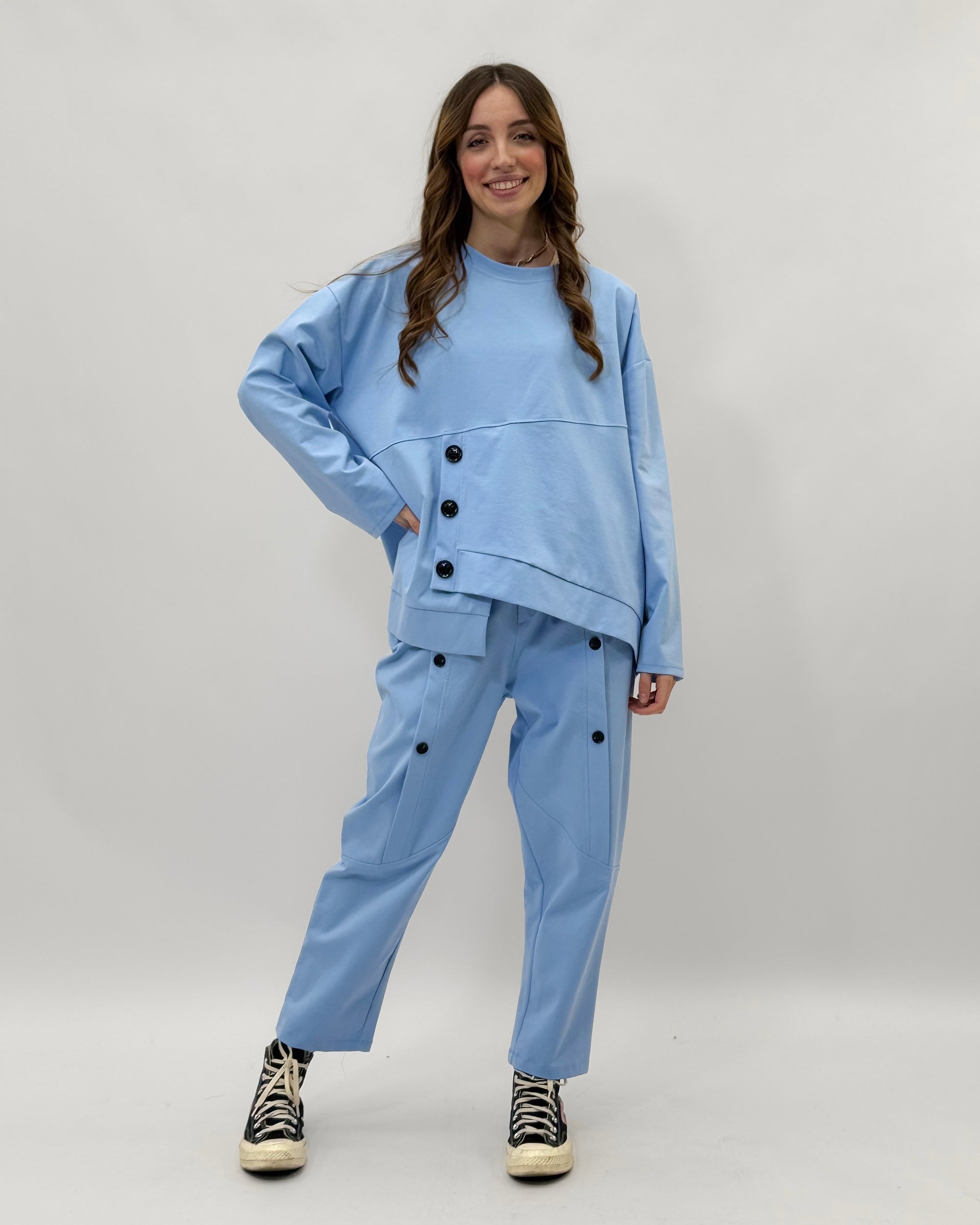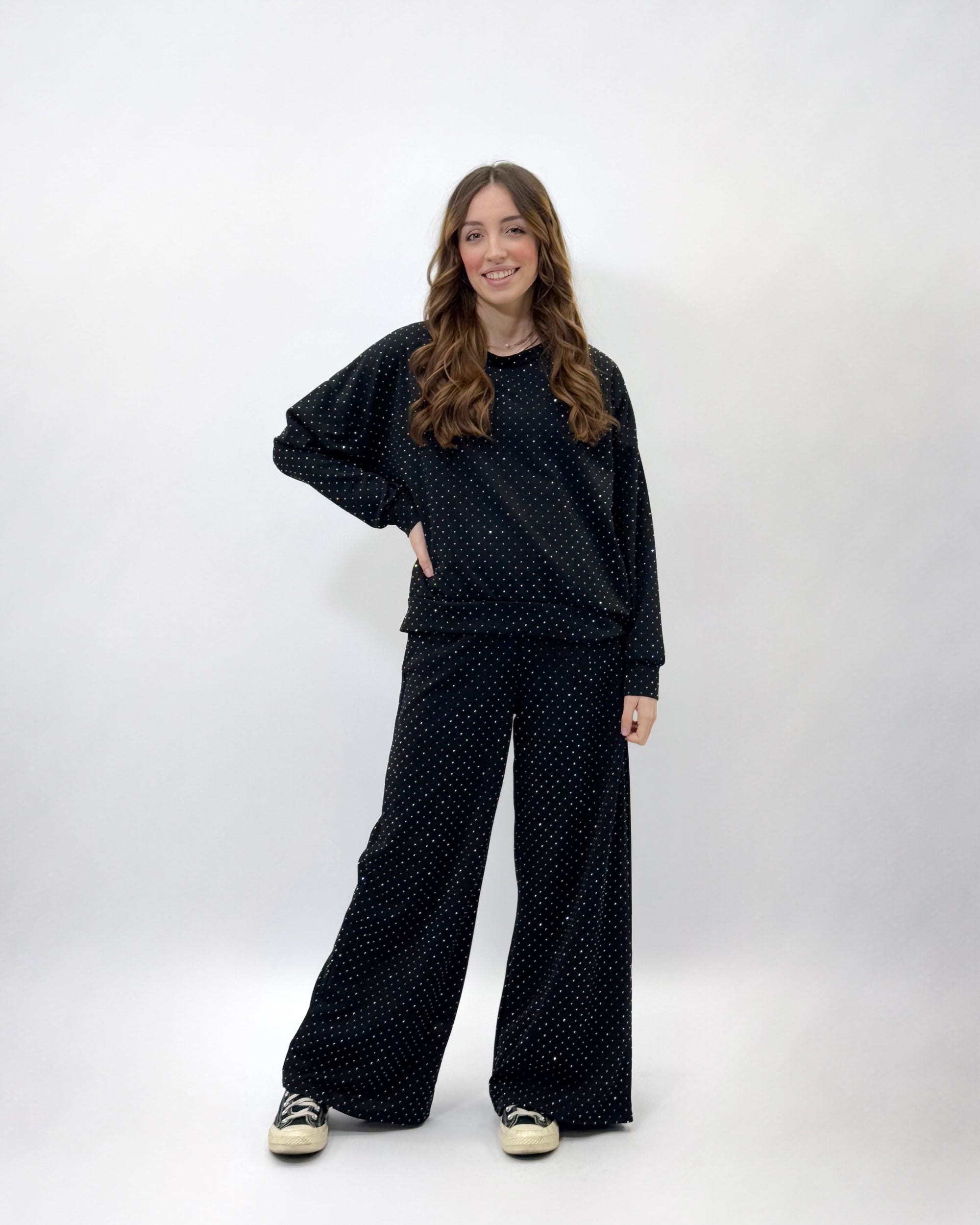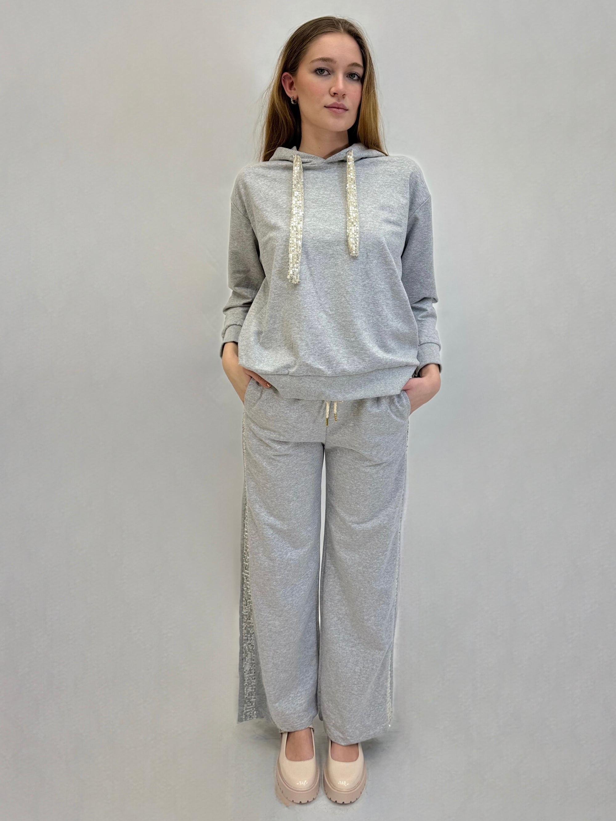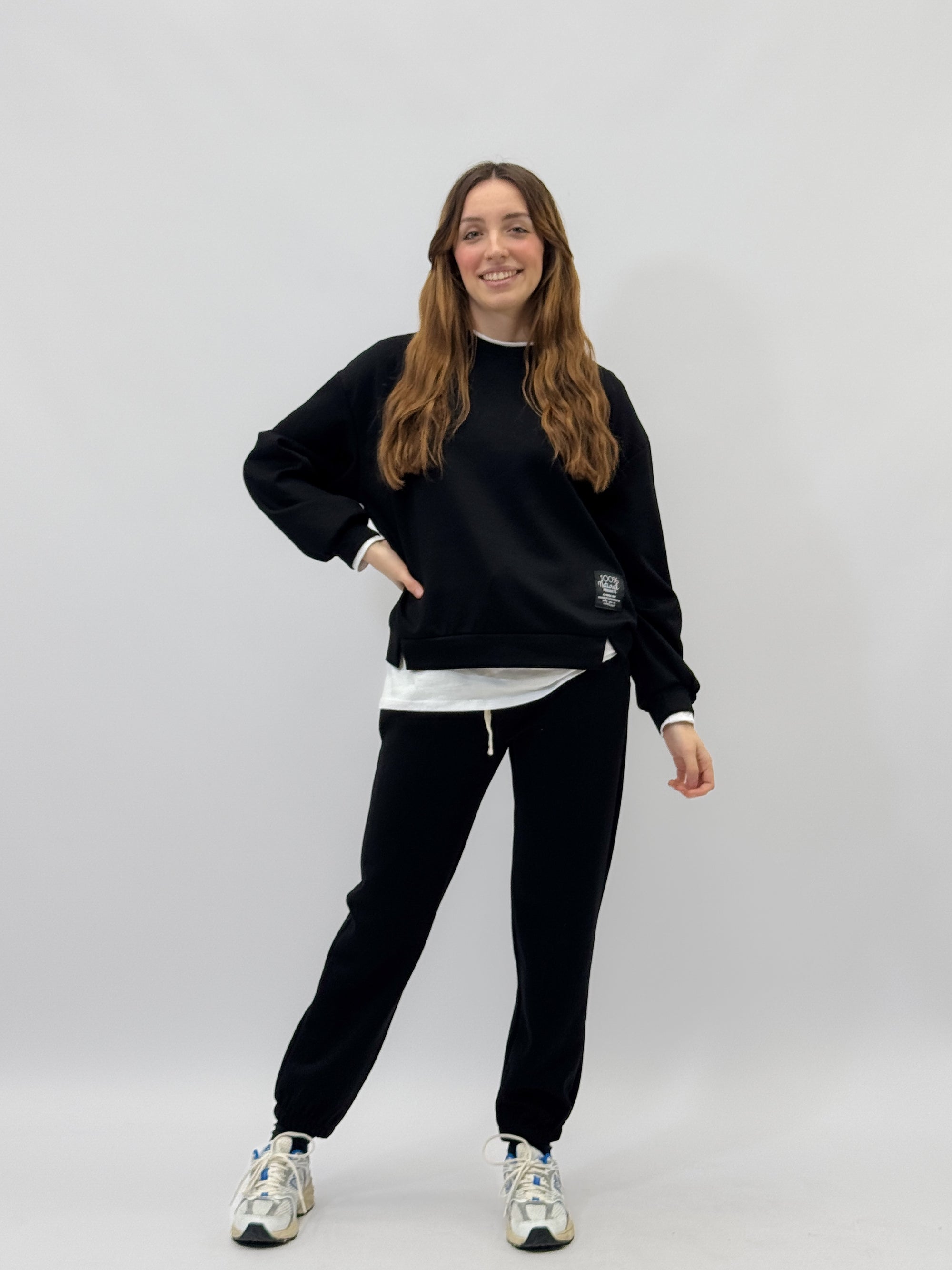 Completo in tessuto tecnico con felpa oversize e pantalone palazzo