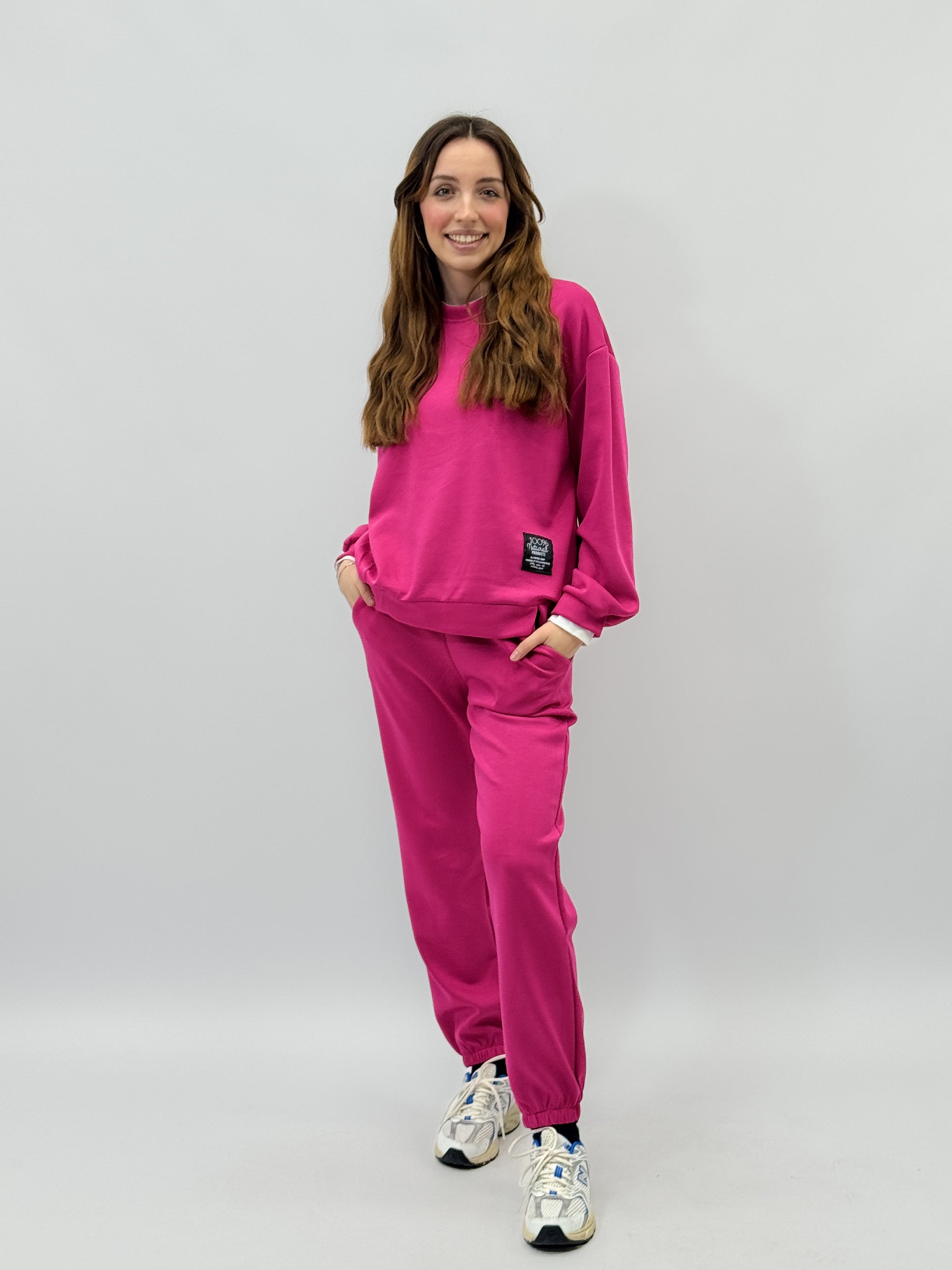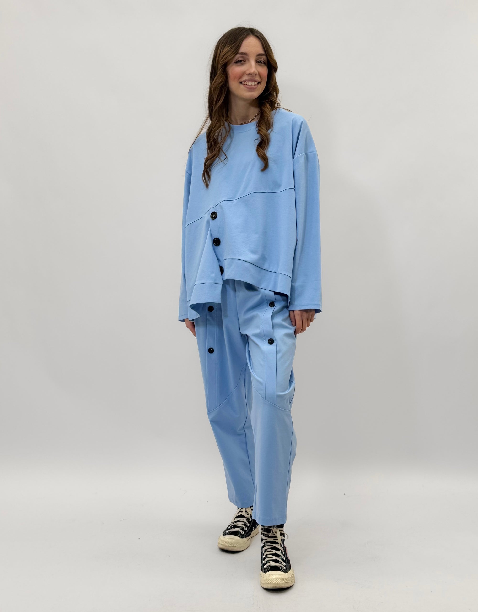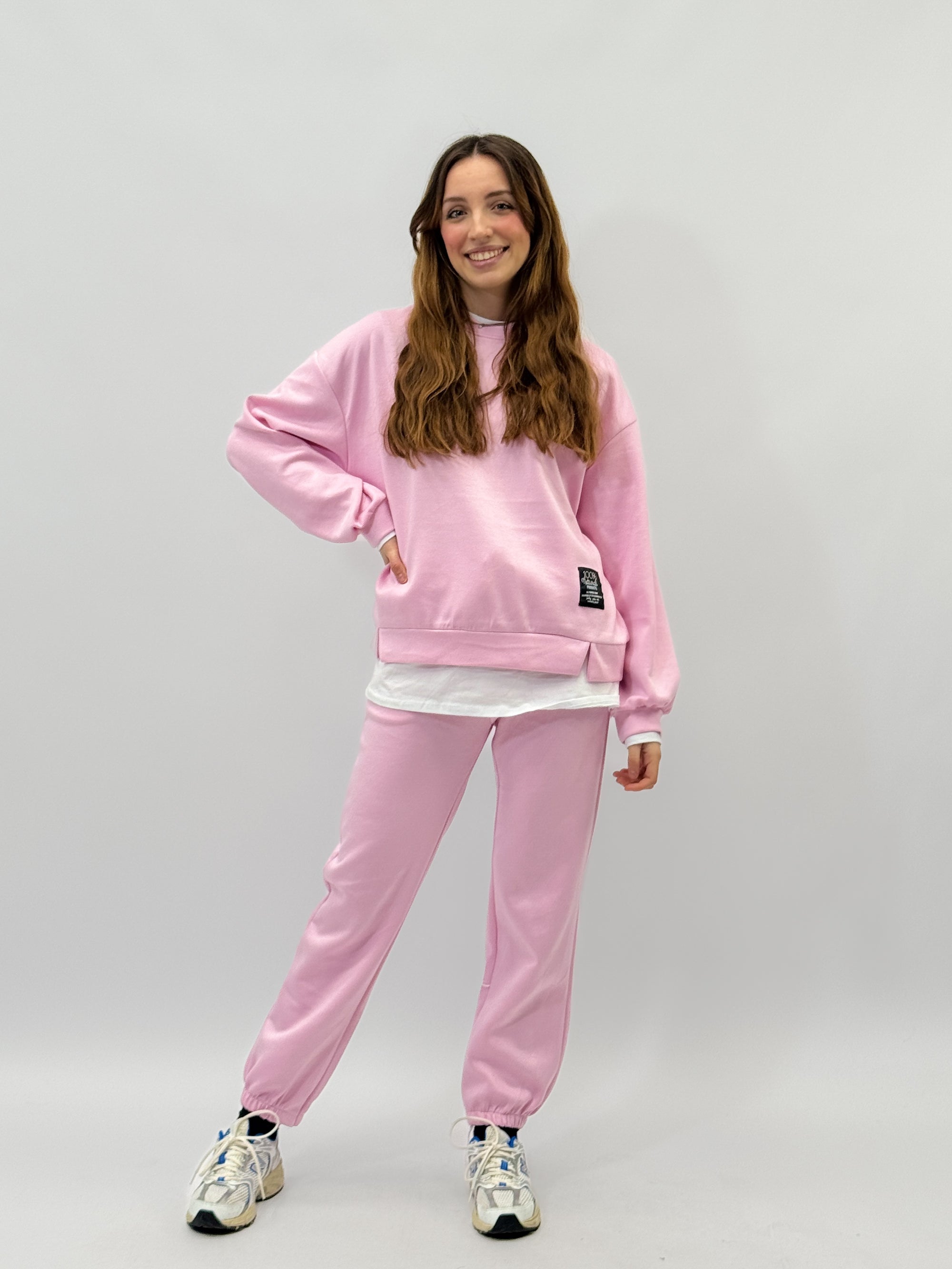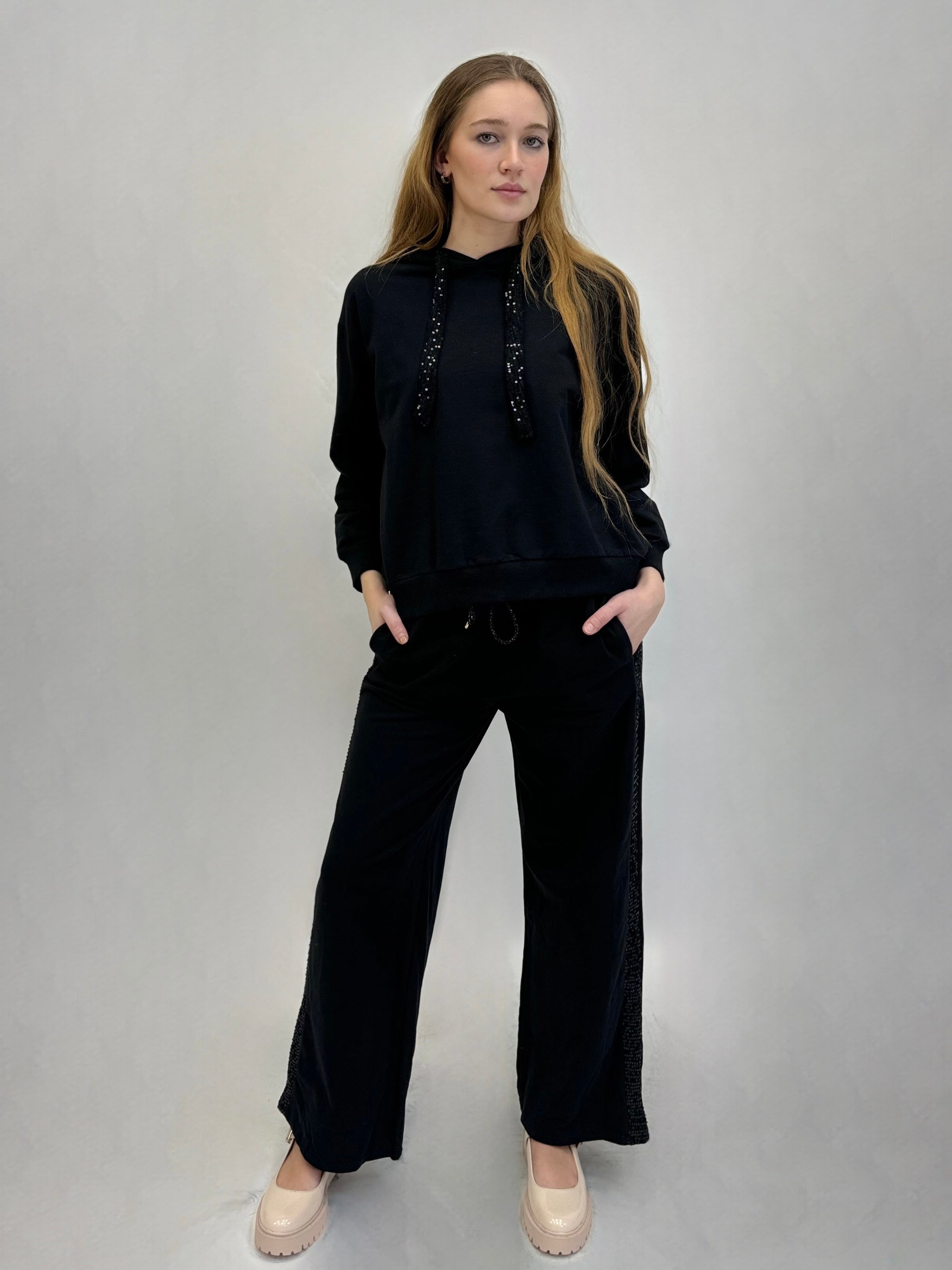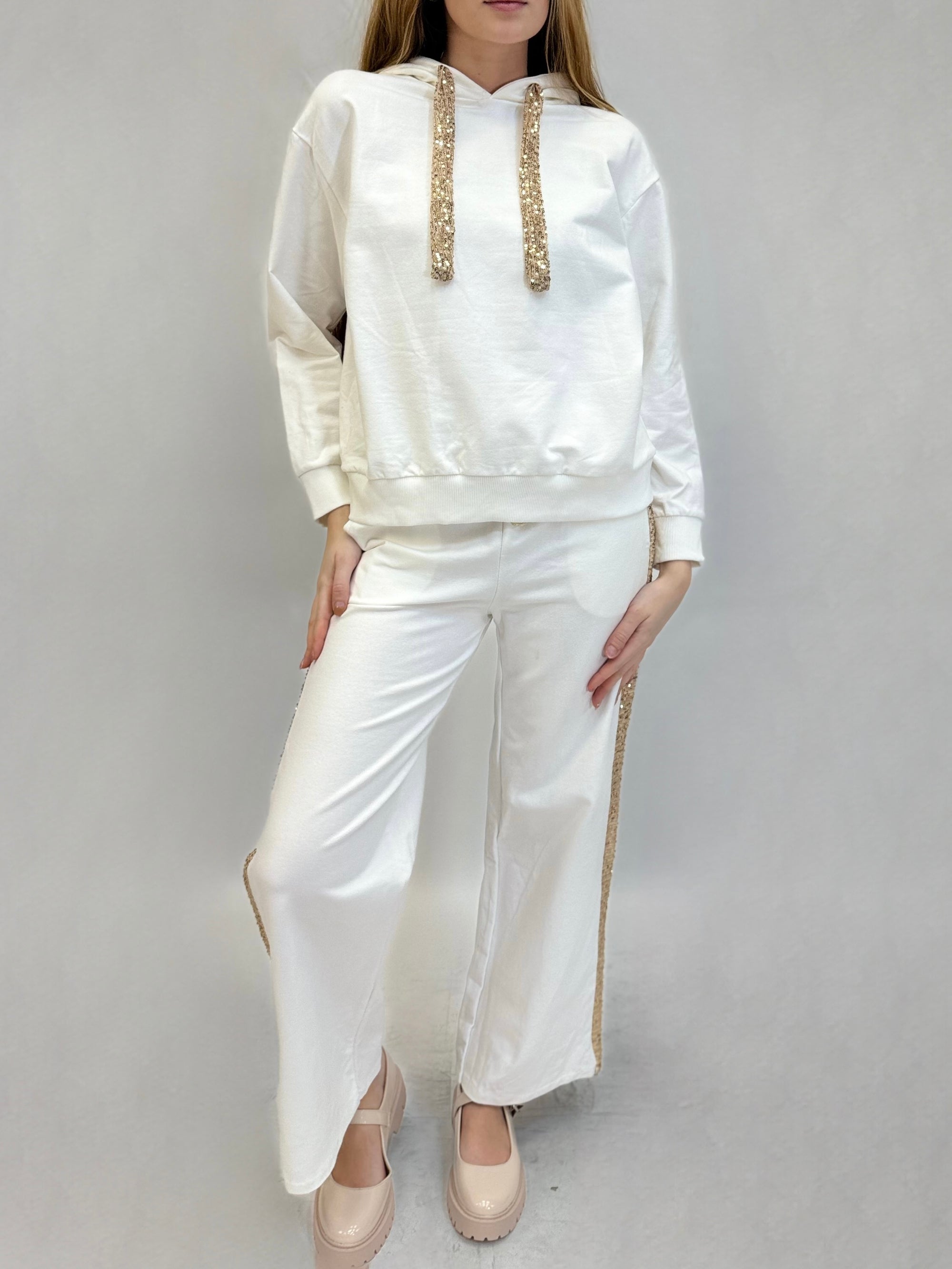 Completo in tessuto tecnico con felpa oversize e pantalone palazzo