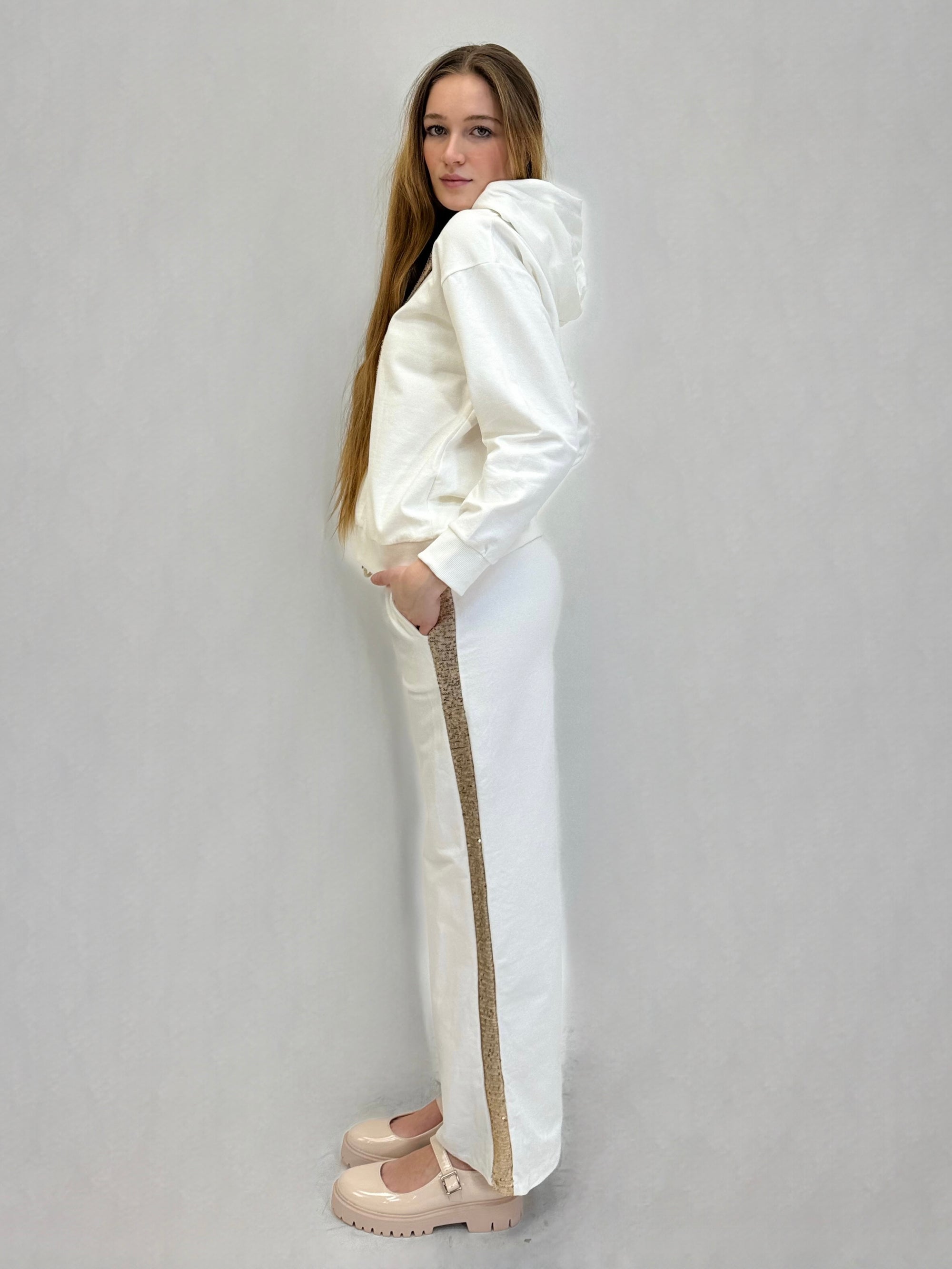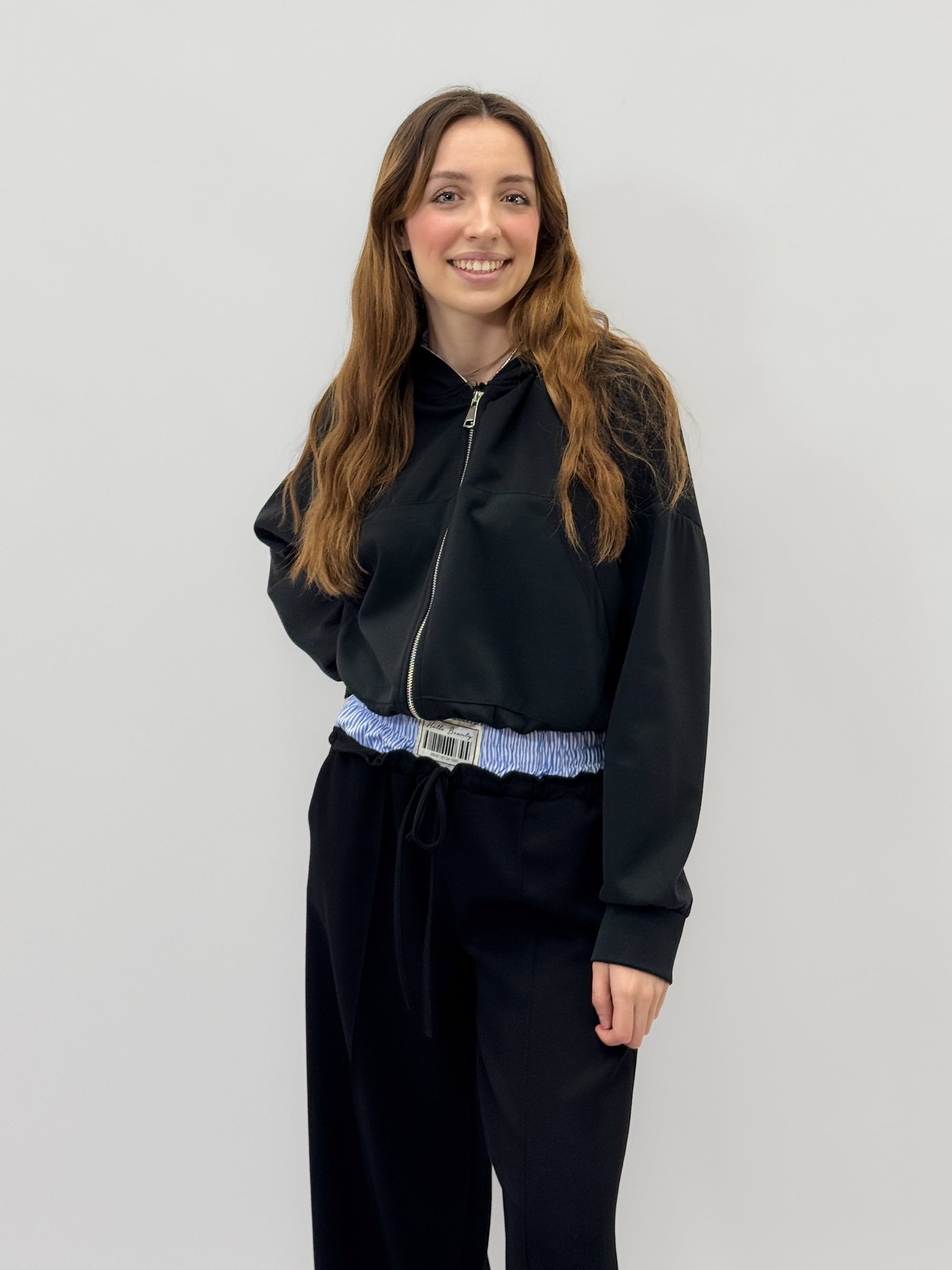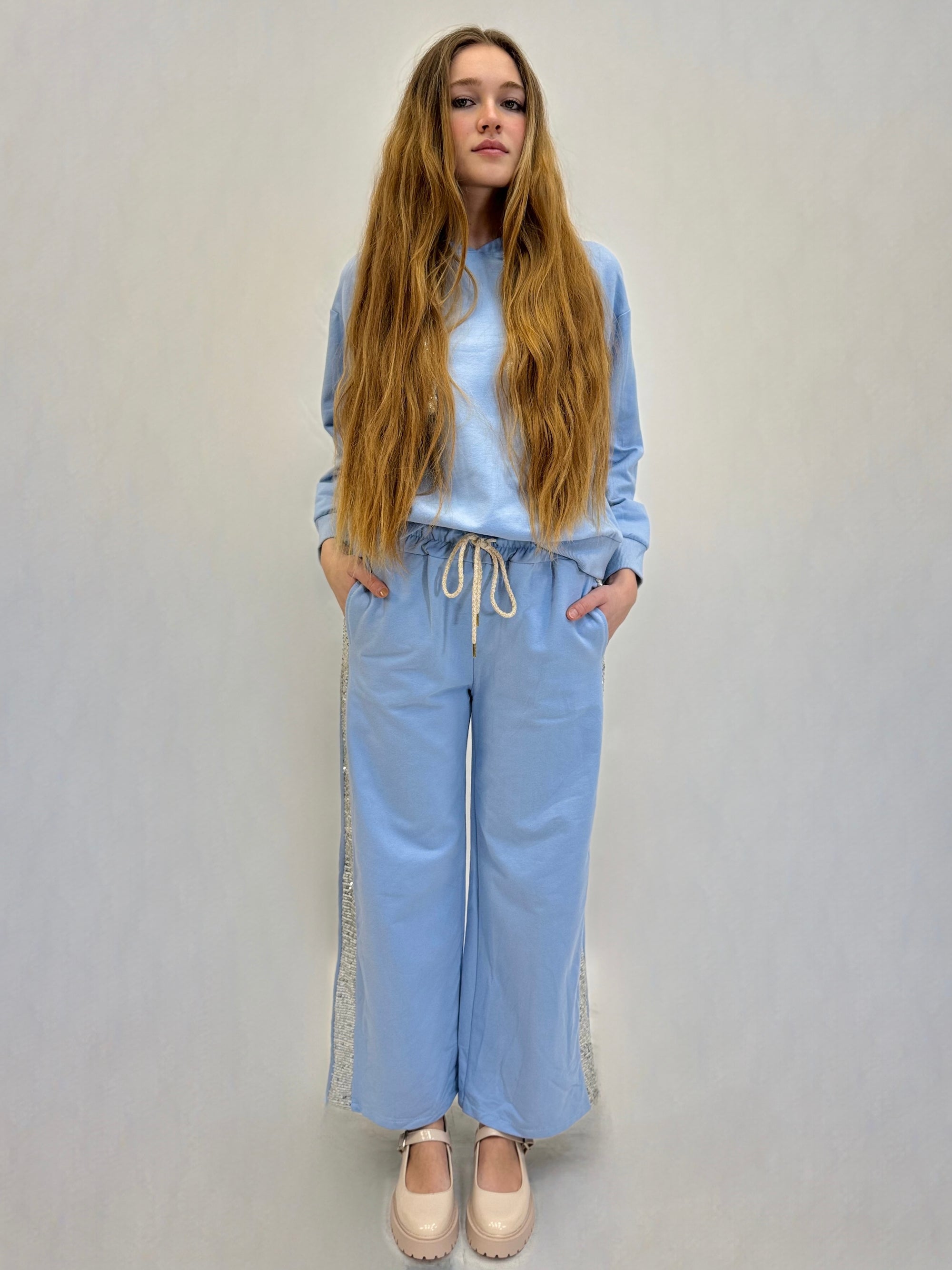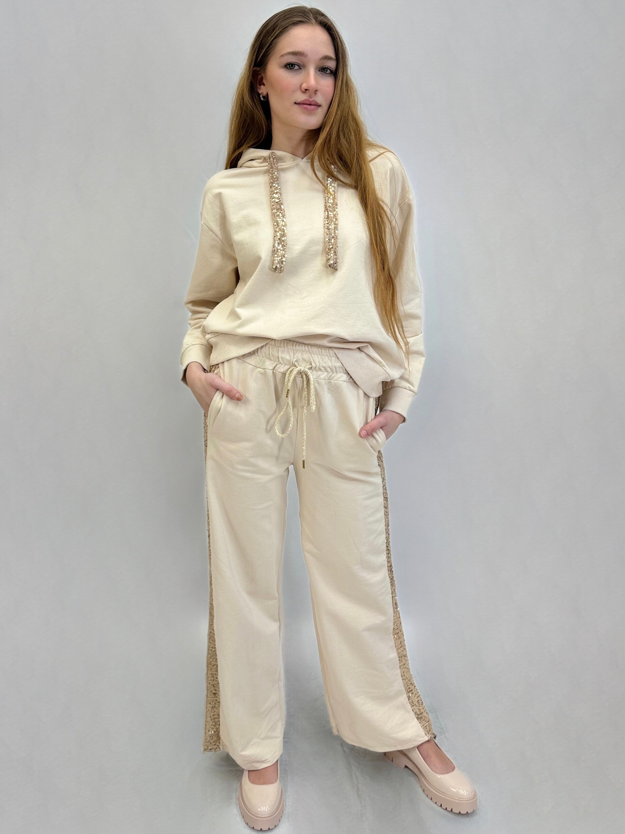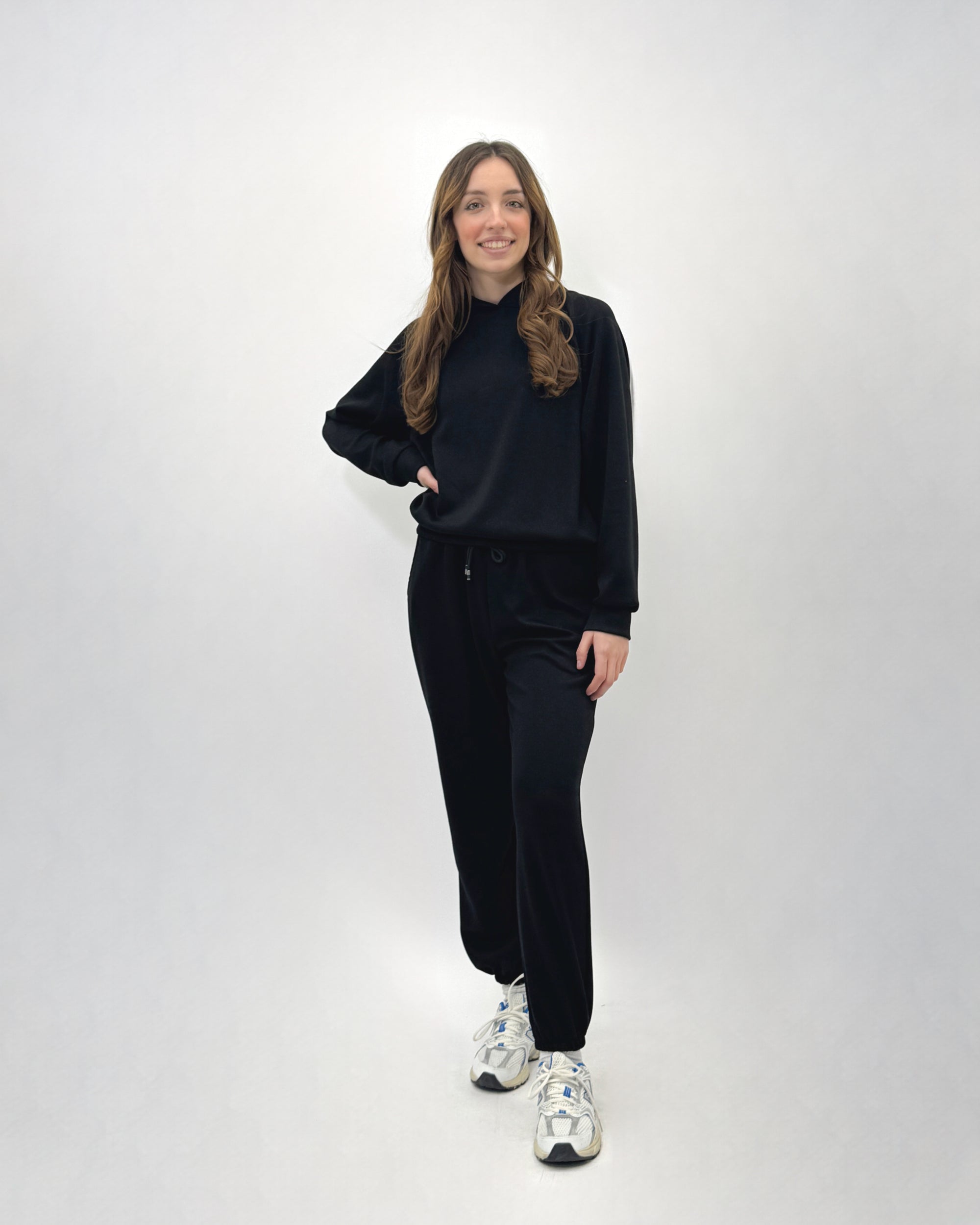 Completo in tessuto tecnico con felpa oversize e pantalone palazzo