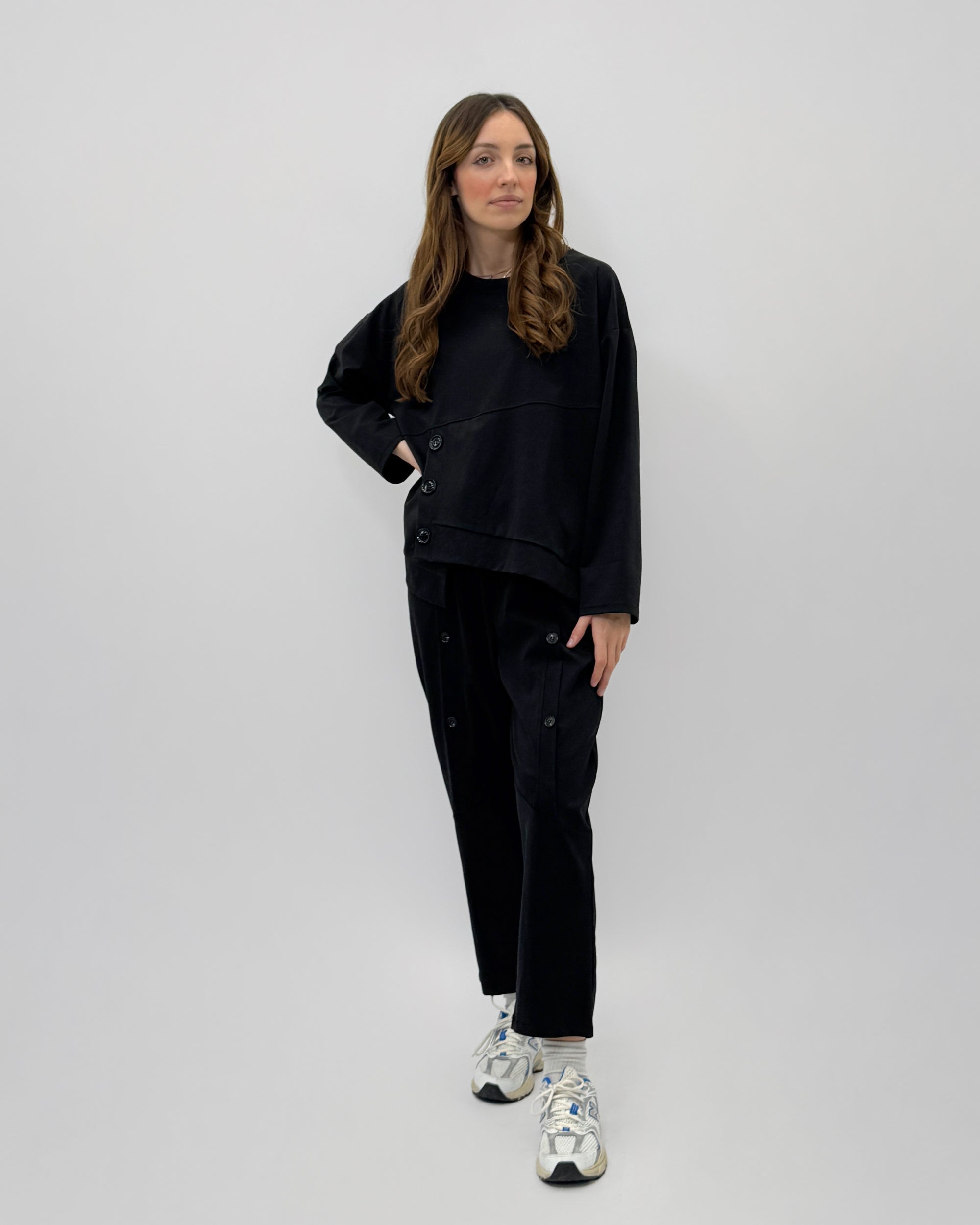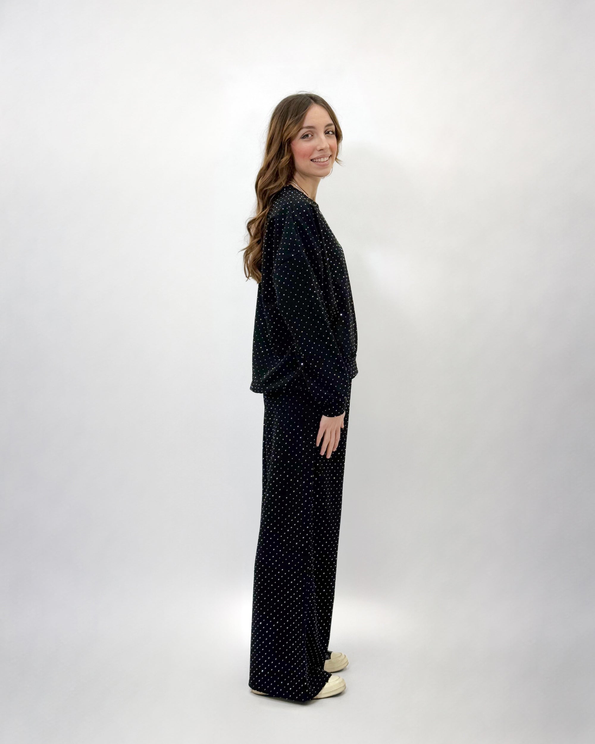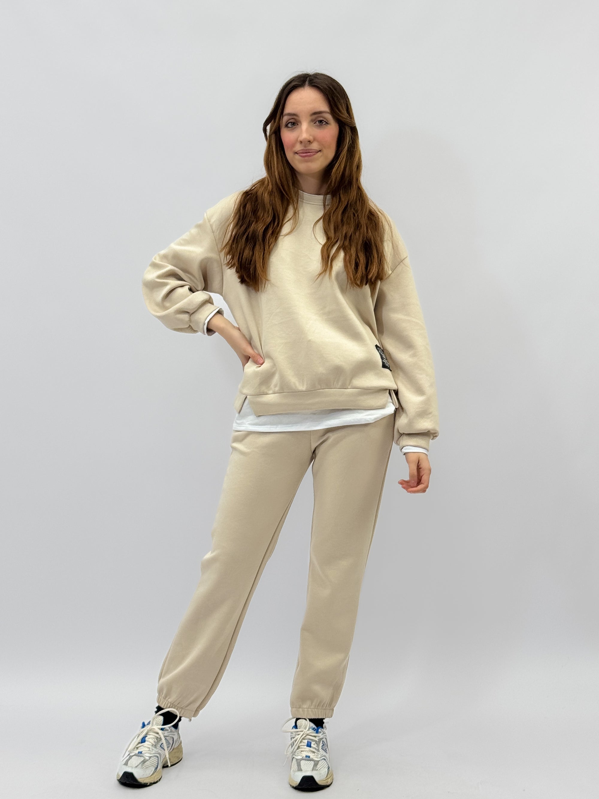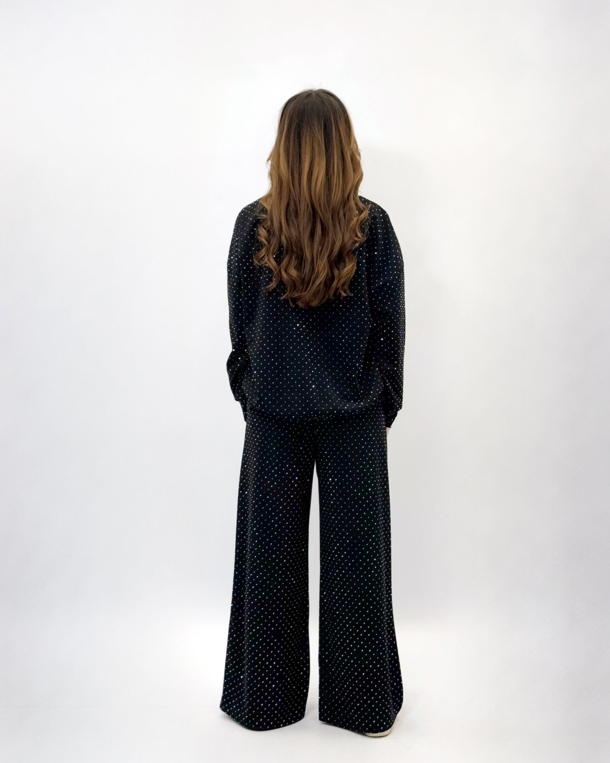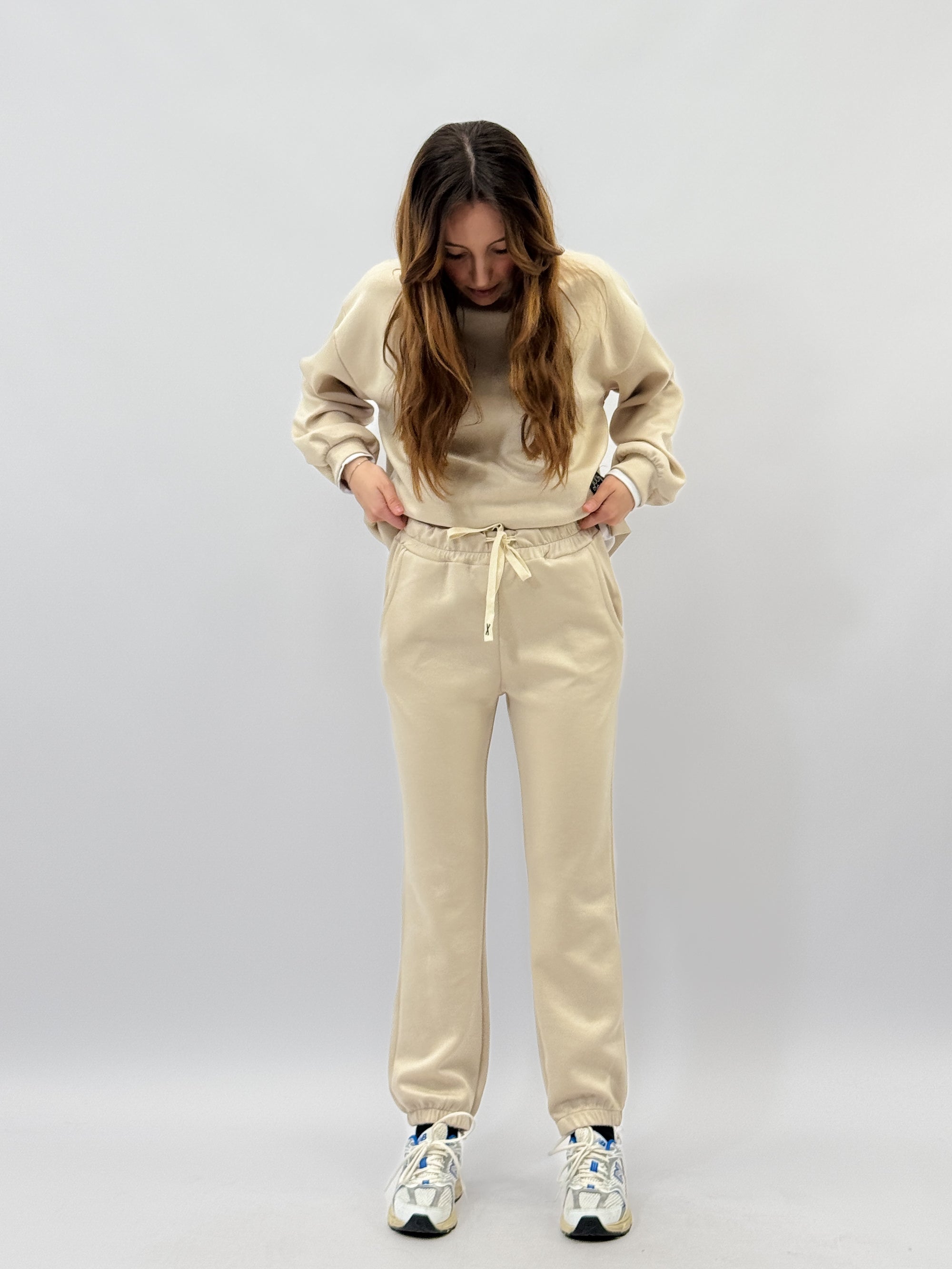 Completo in tessuto tecnico con felpa oversize e pantalone palazzo