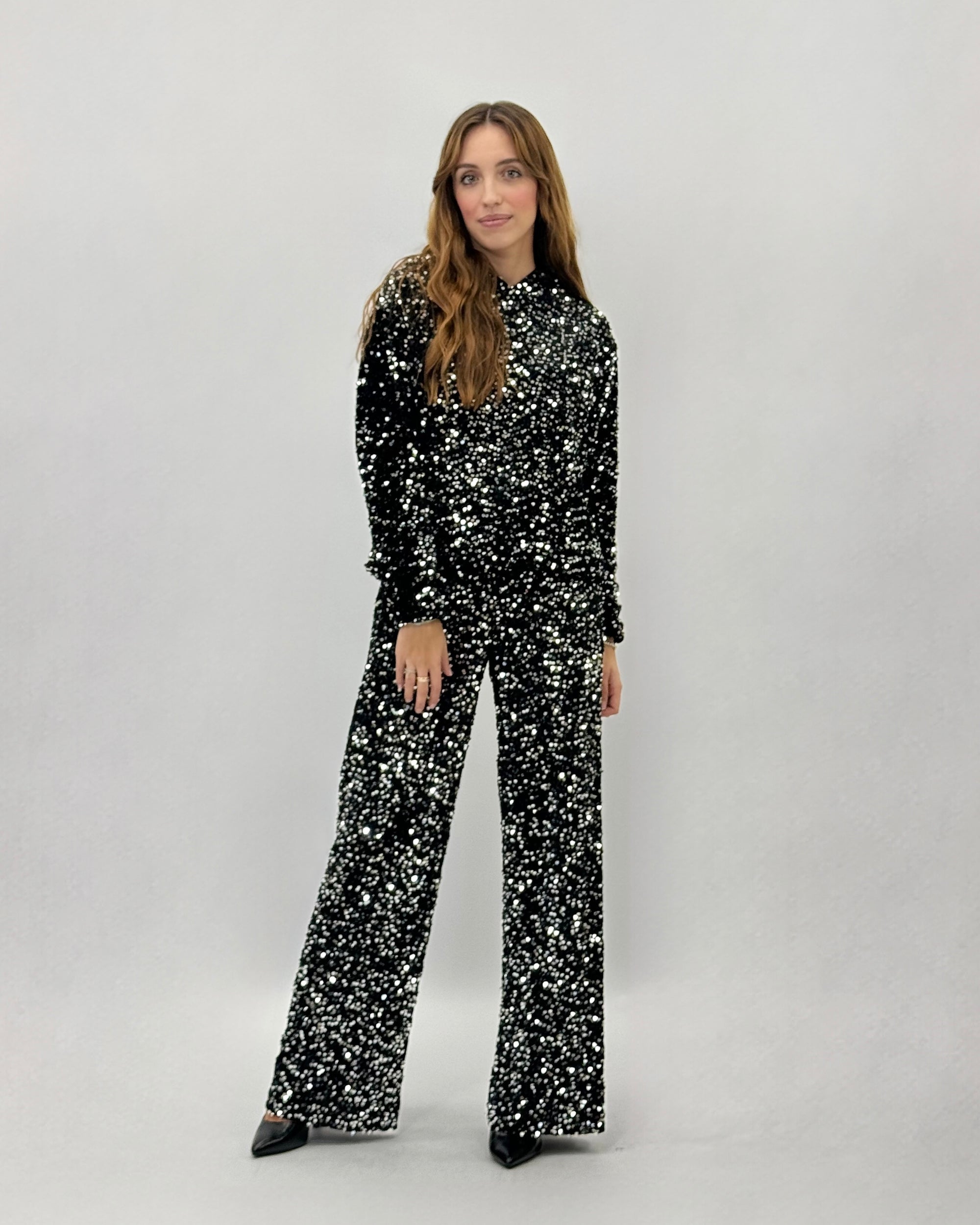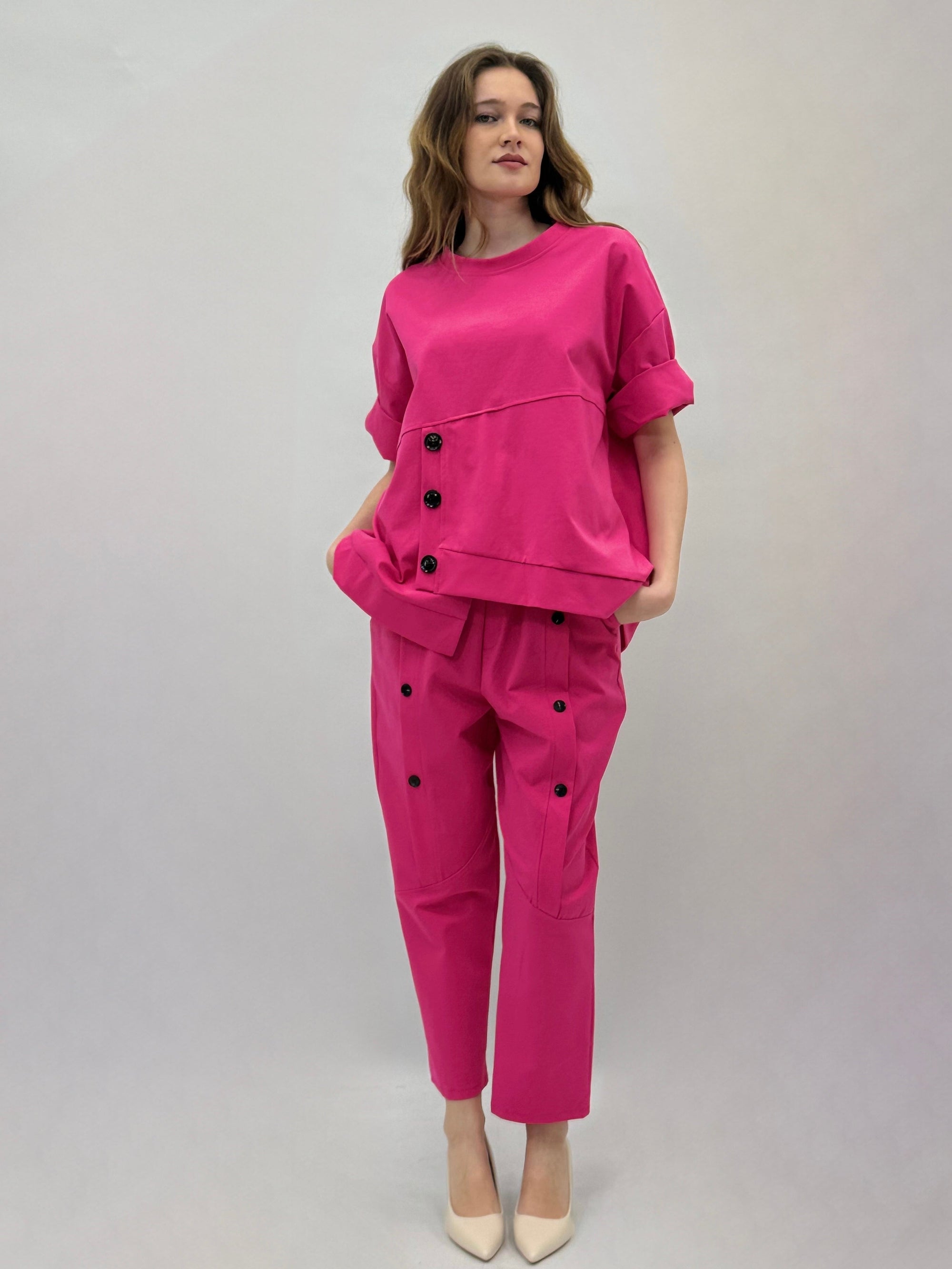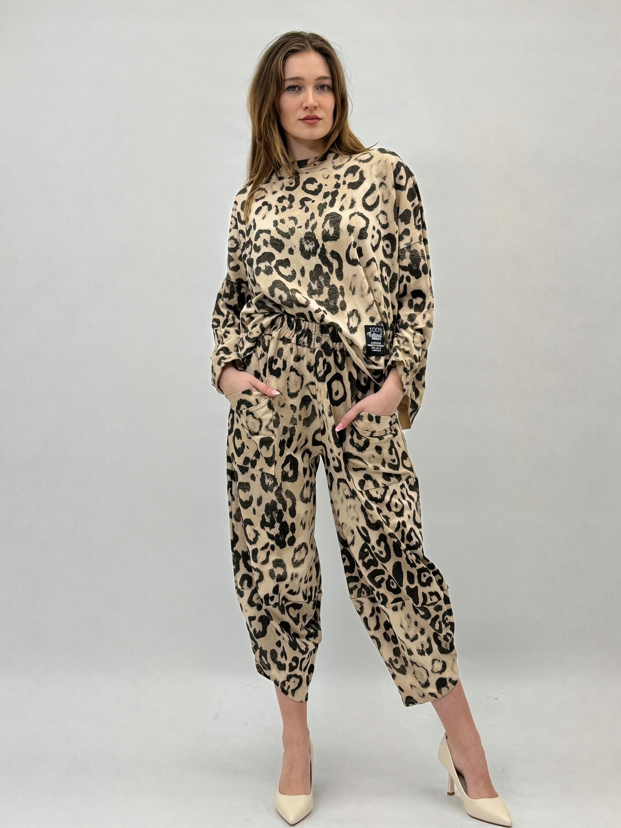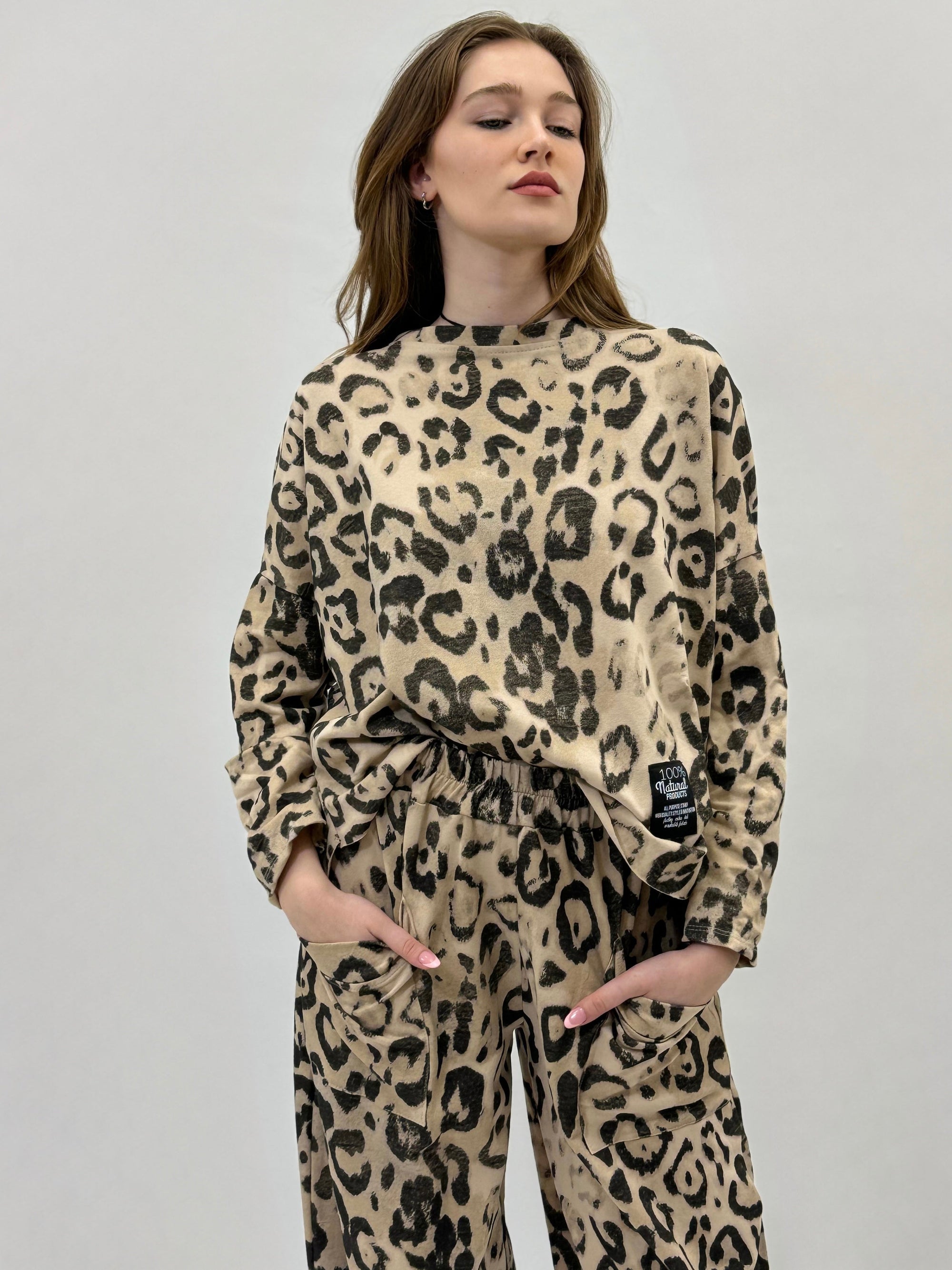 Completo in tessuto tecnico con felpa oversize e pantalone palazzo