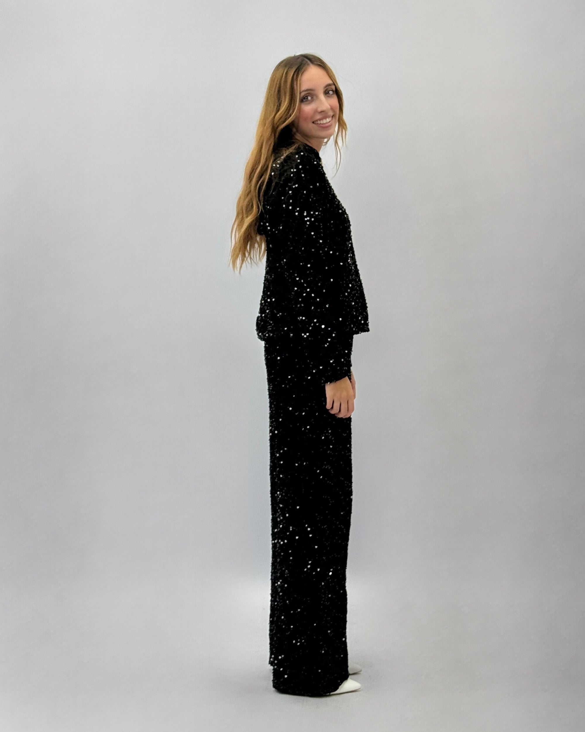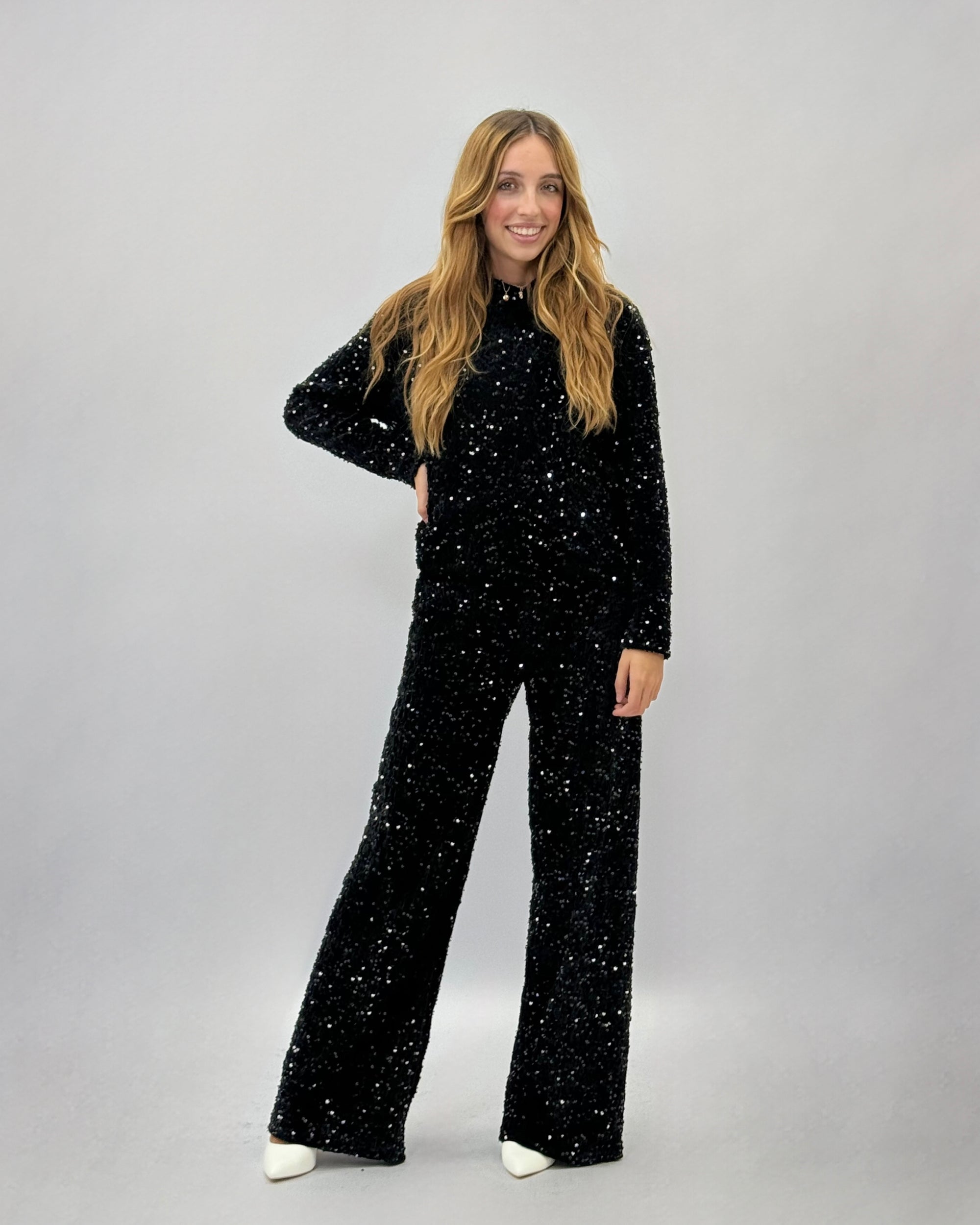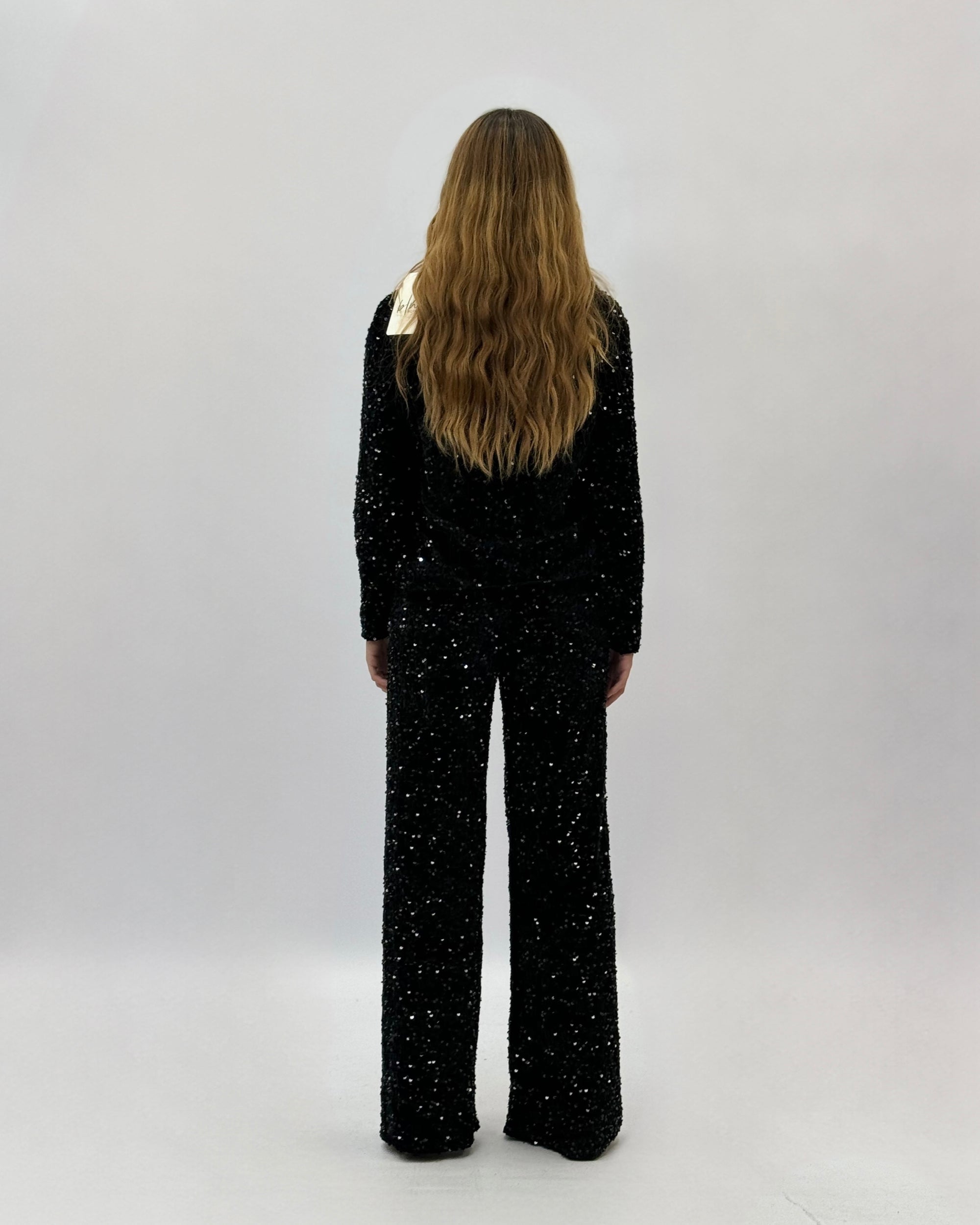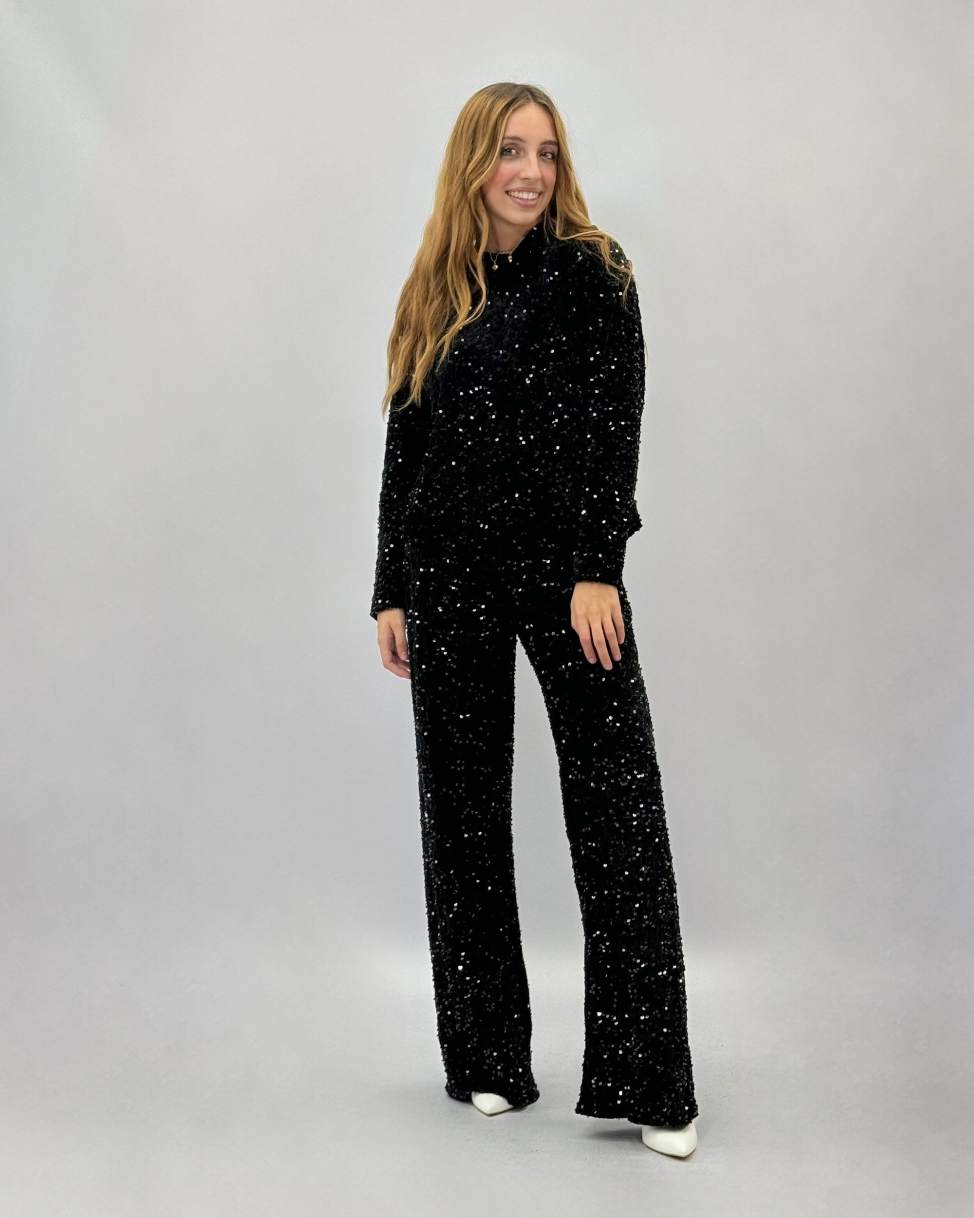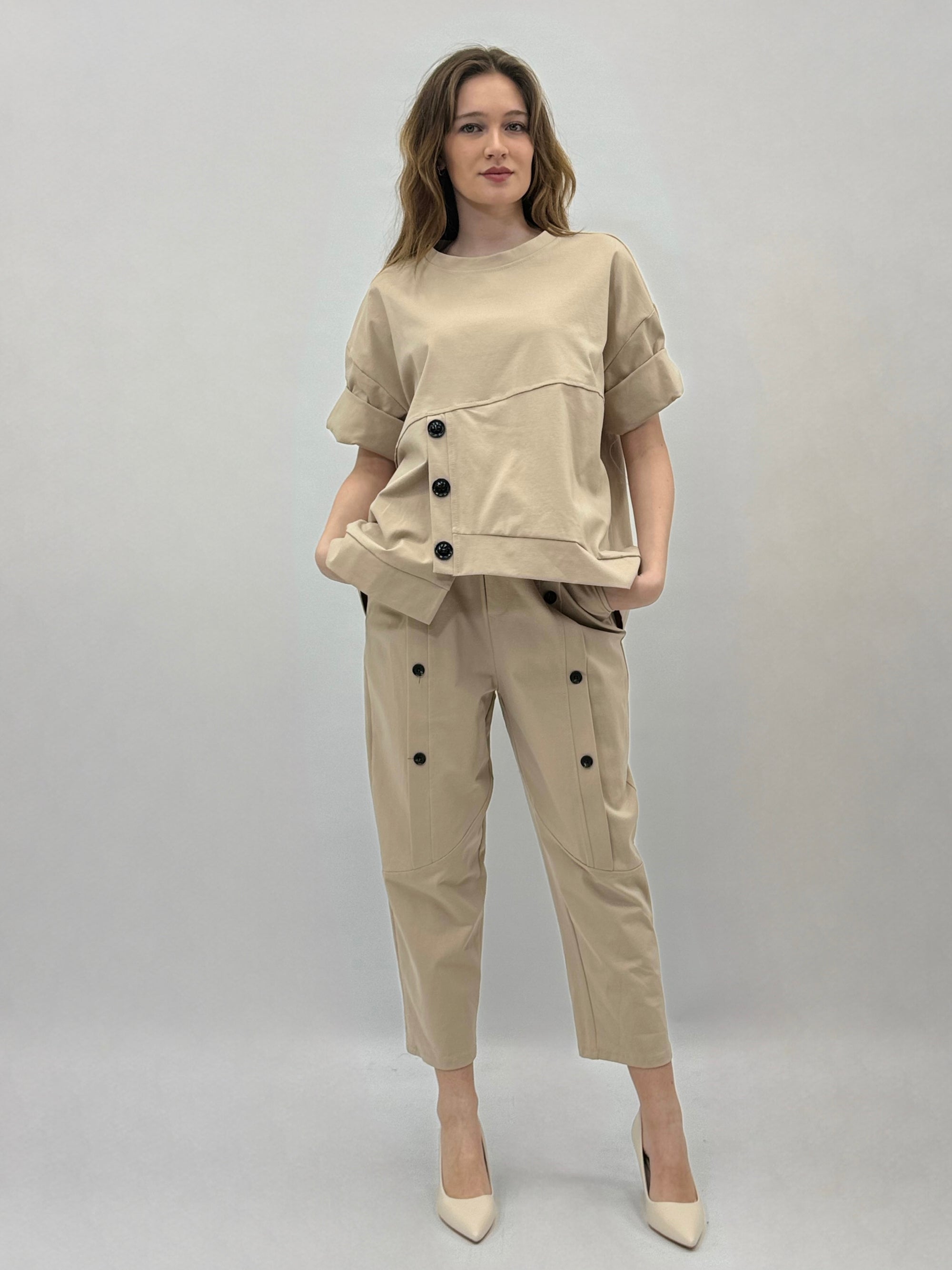 Completo in tessuto tecnico con felpa oversize e pantalone palazzo