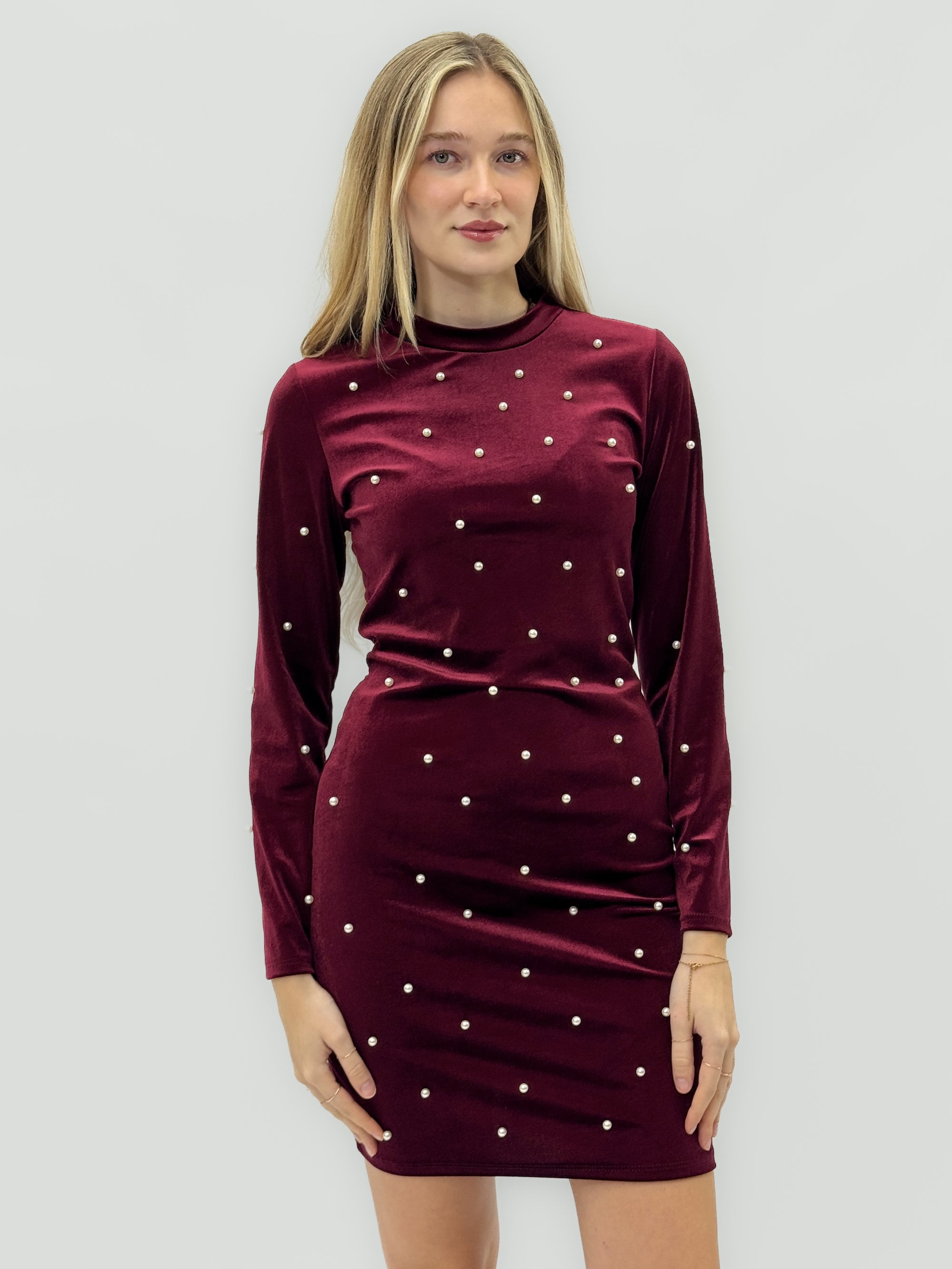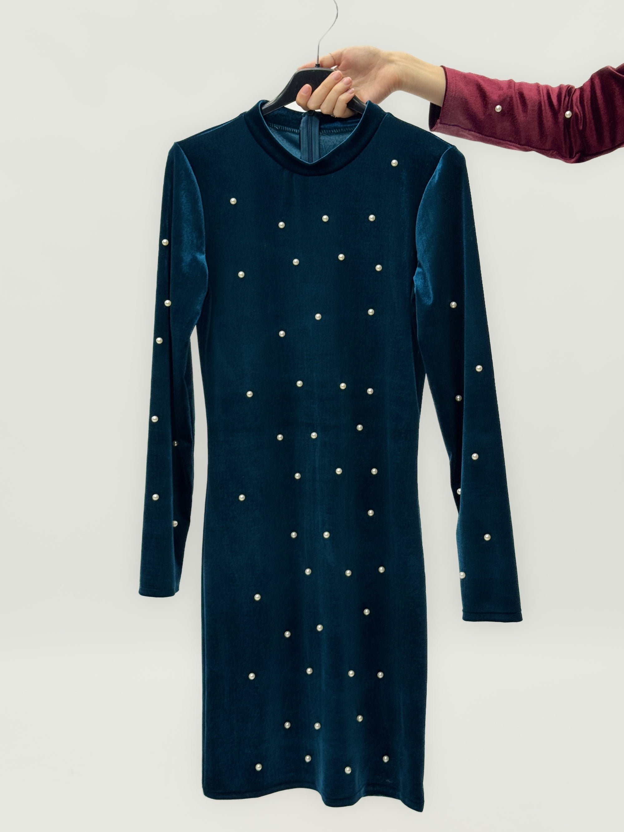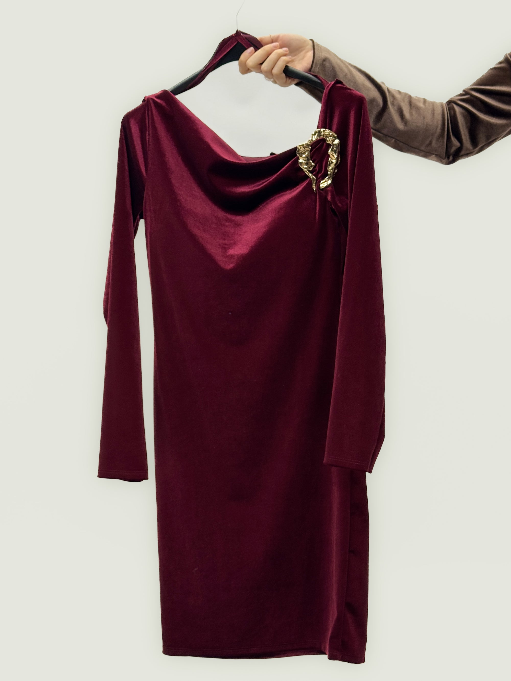 Abito corto in velluto con scollo monospalla e dettaglio gioiello