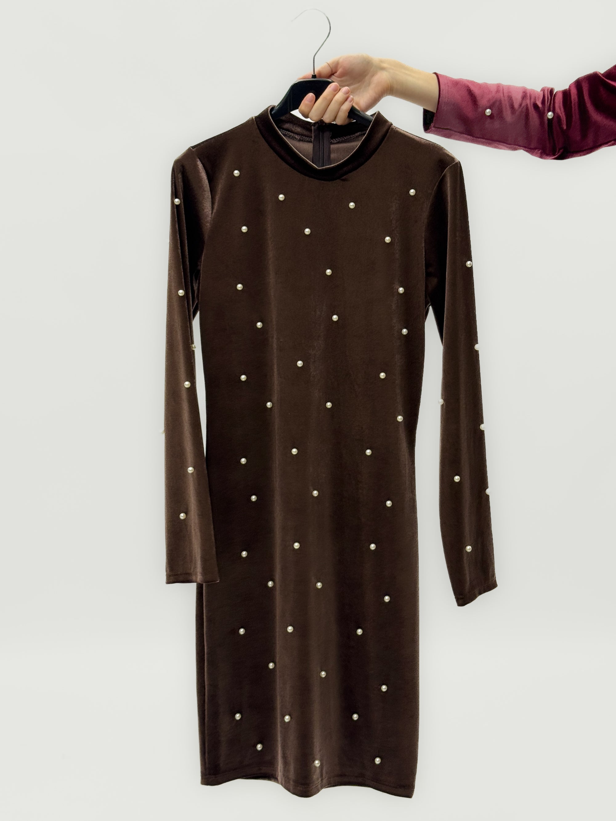 Abito Elegante con Scollo Morbido e Dettaglio Gioiello