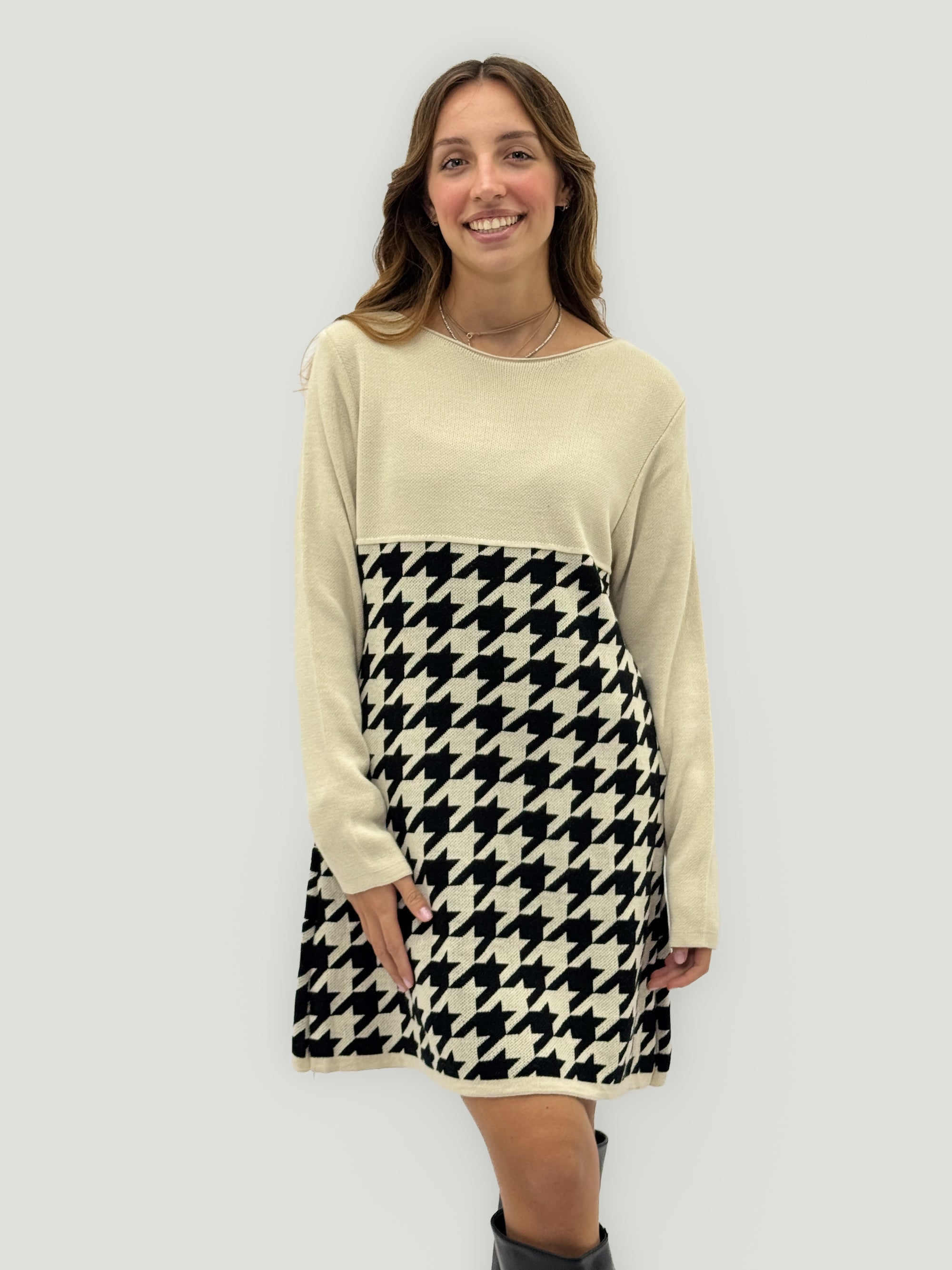 Abito in maglia bicolore pied de poule – Chic e confortevole