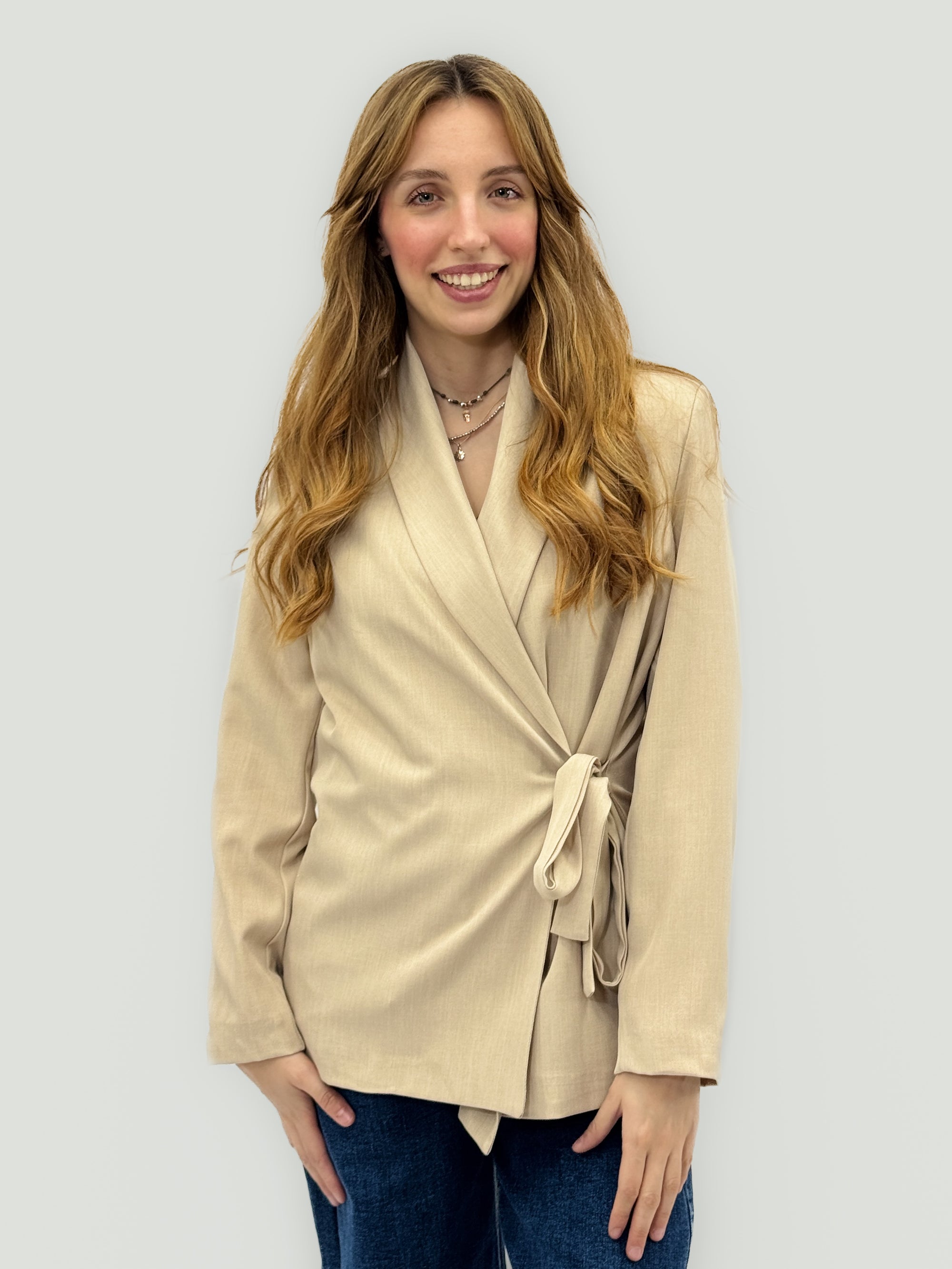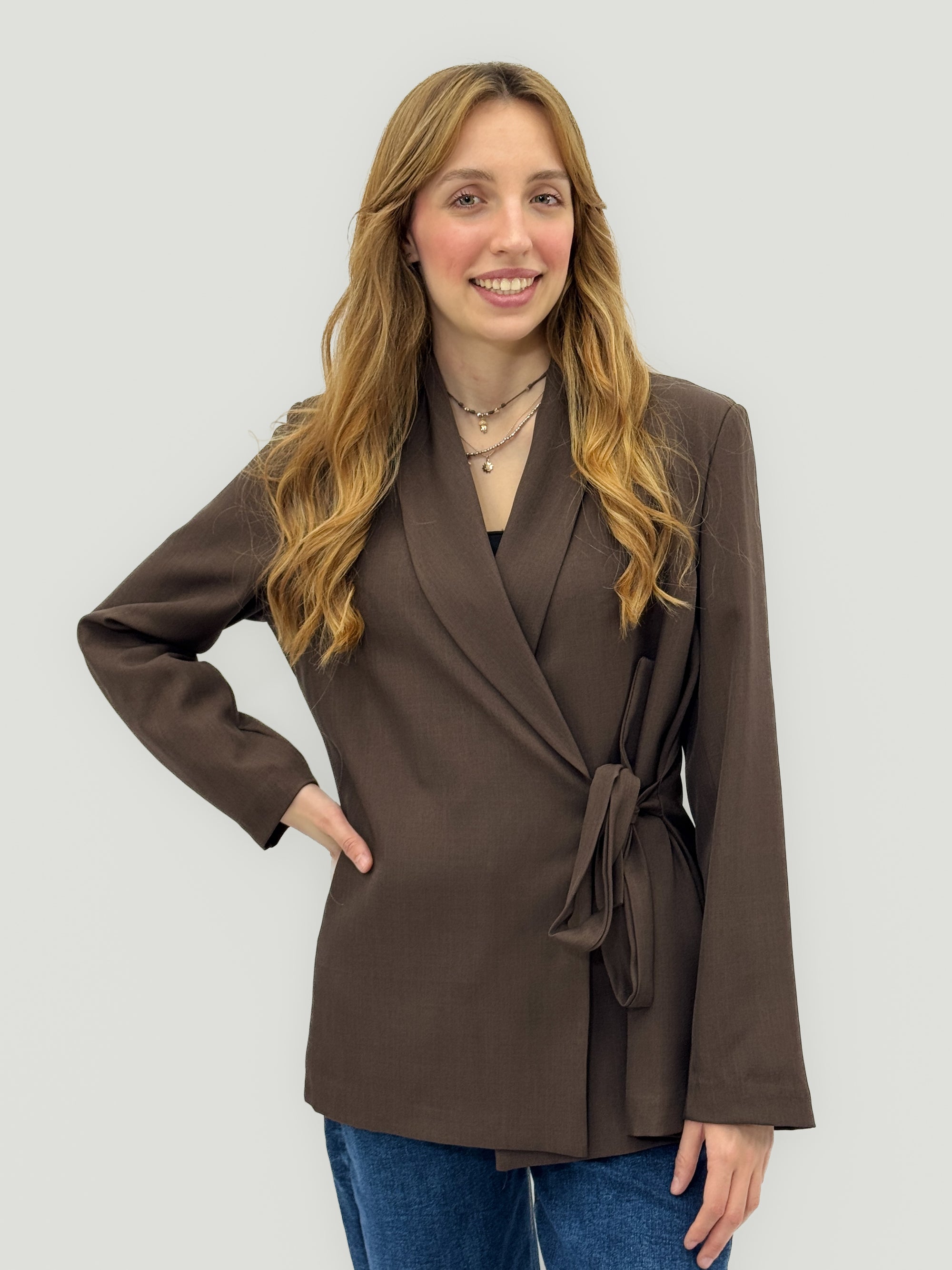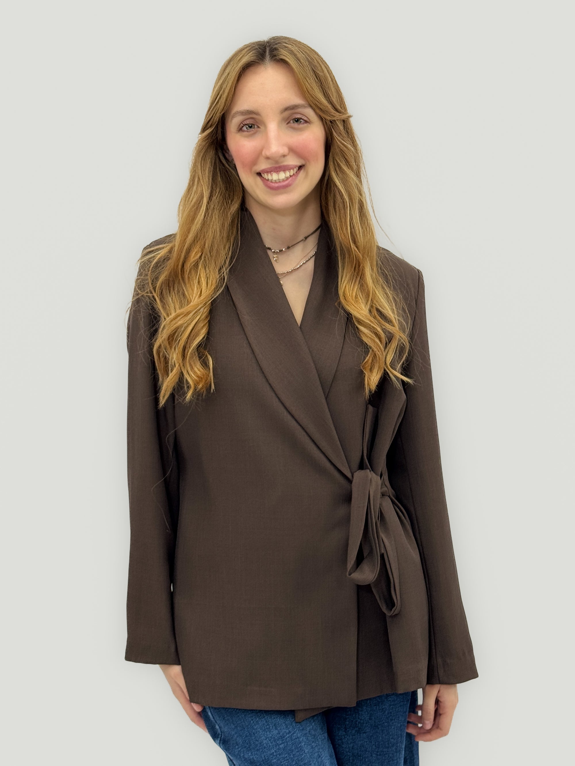 Giacca blazer con cintura incrociata