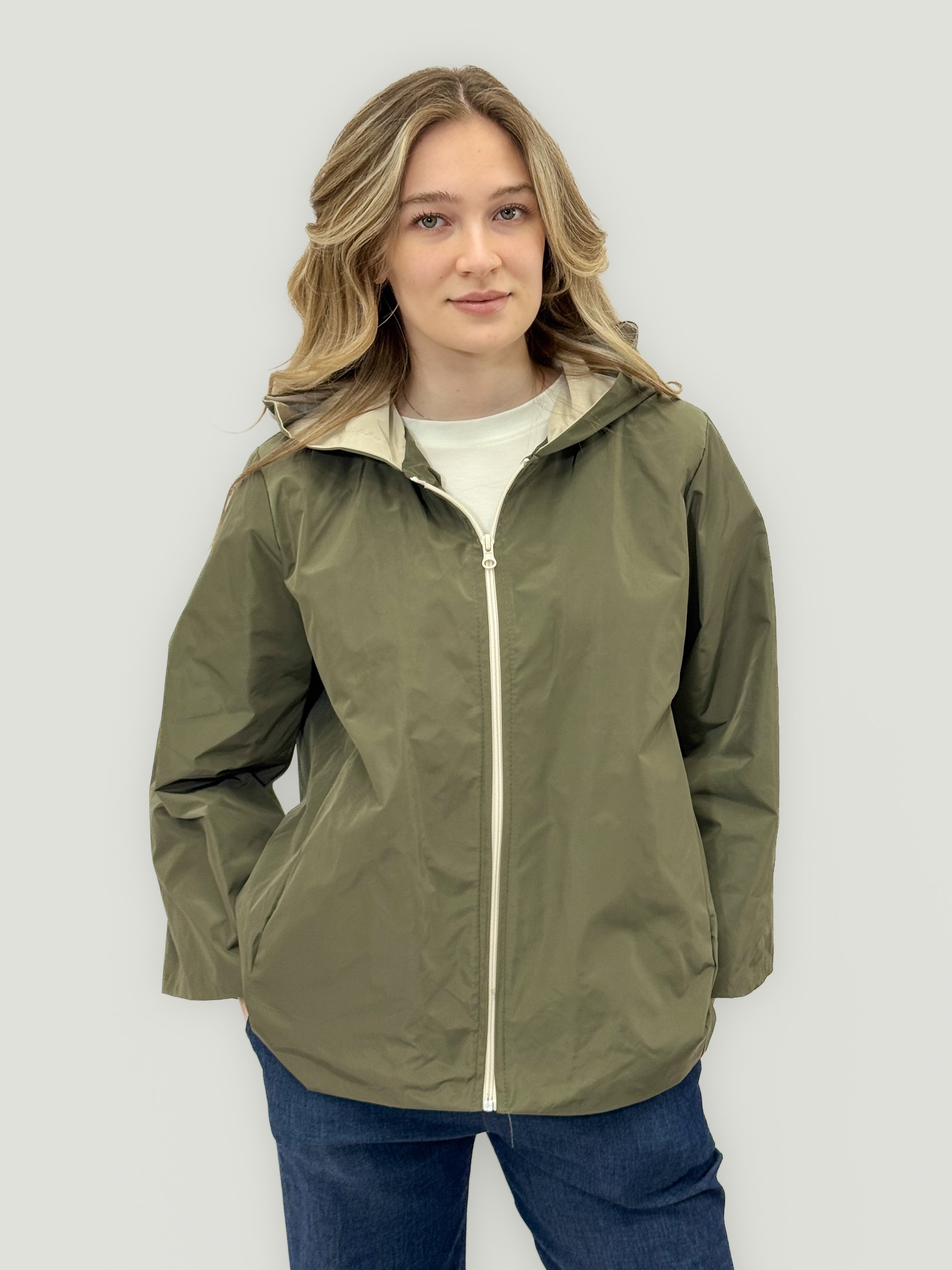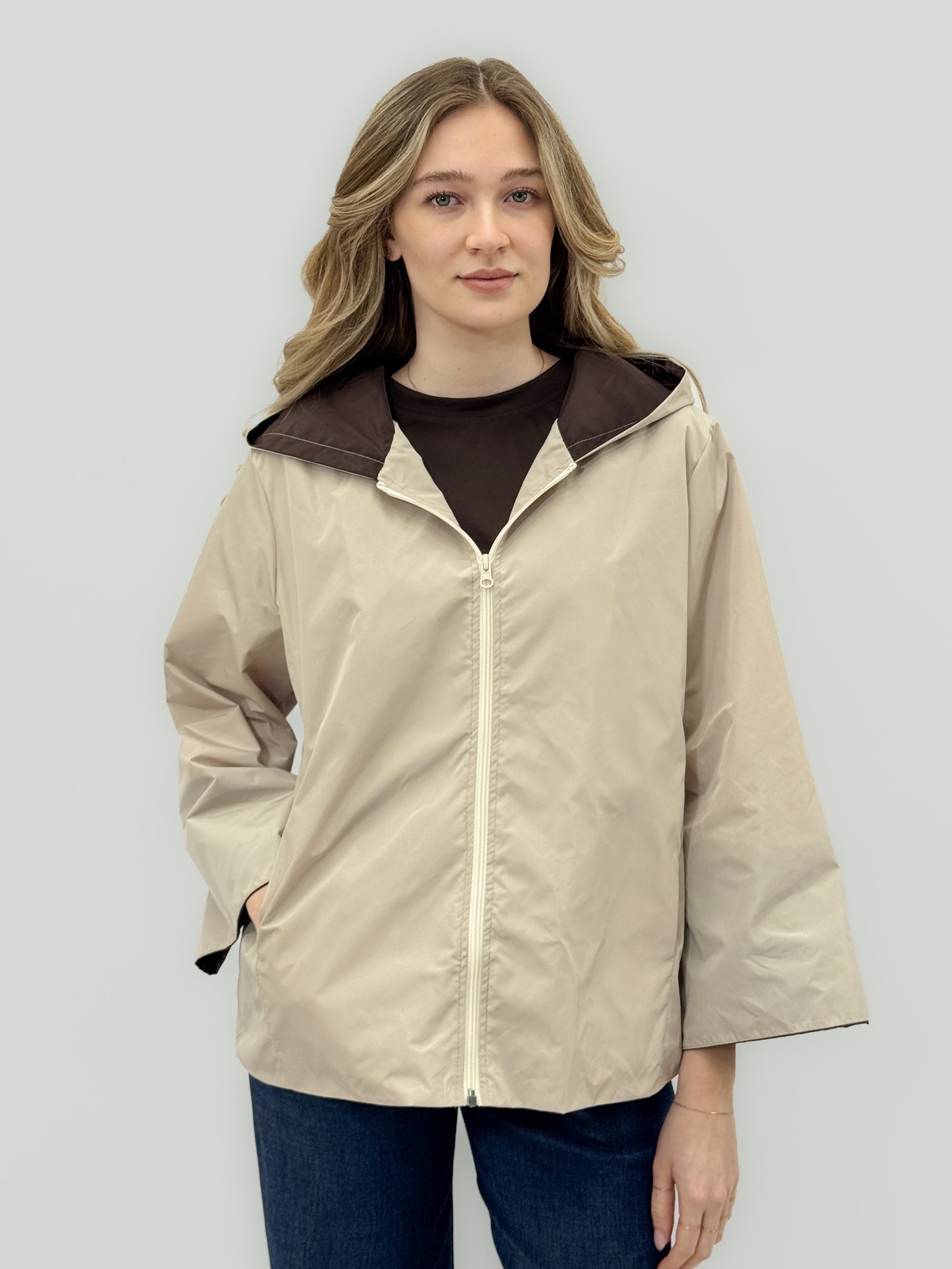 Giacca leggera impermeabile con cappuccio