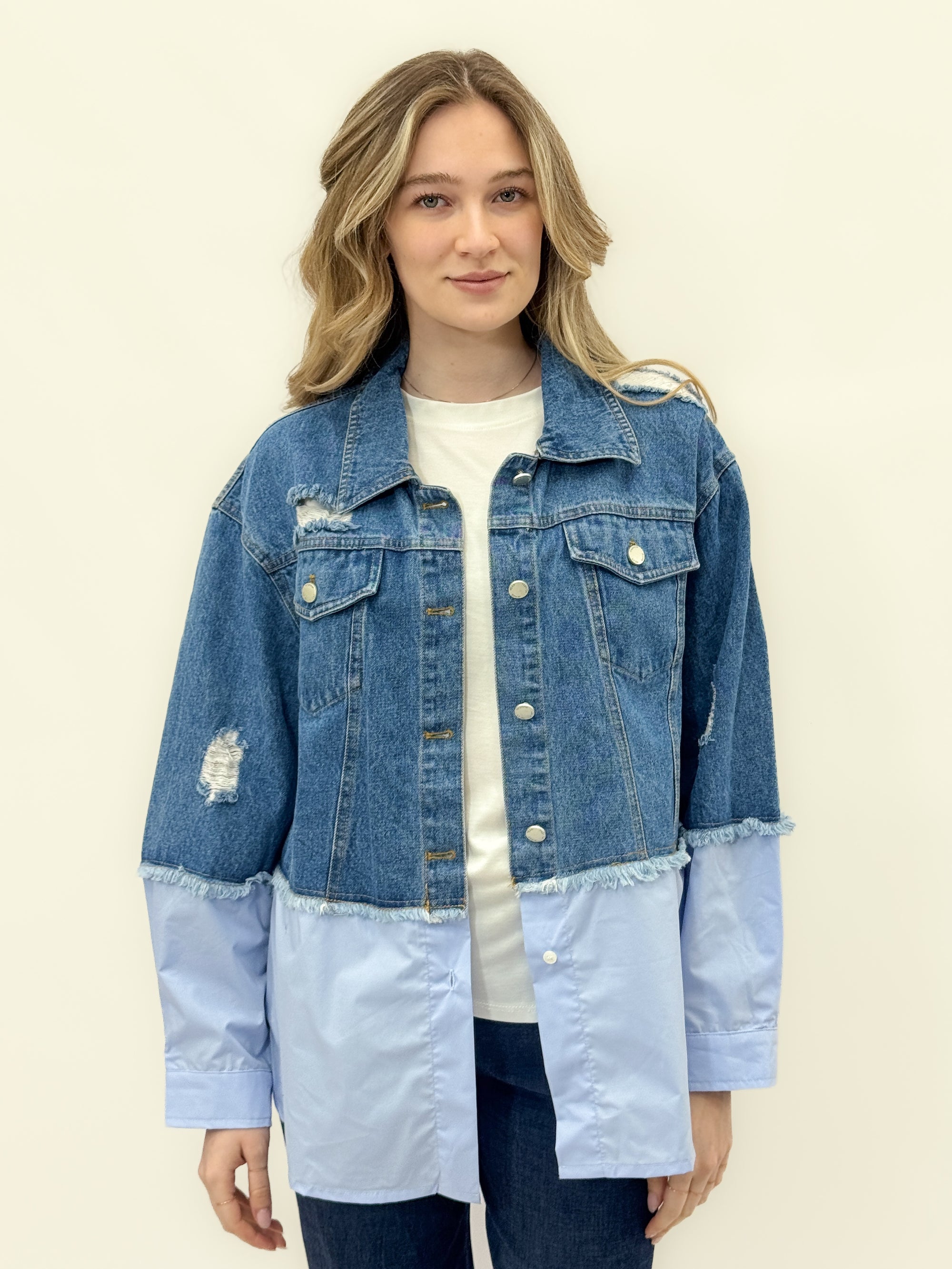Giacca denim combinata con inserti tecnici