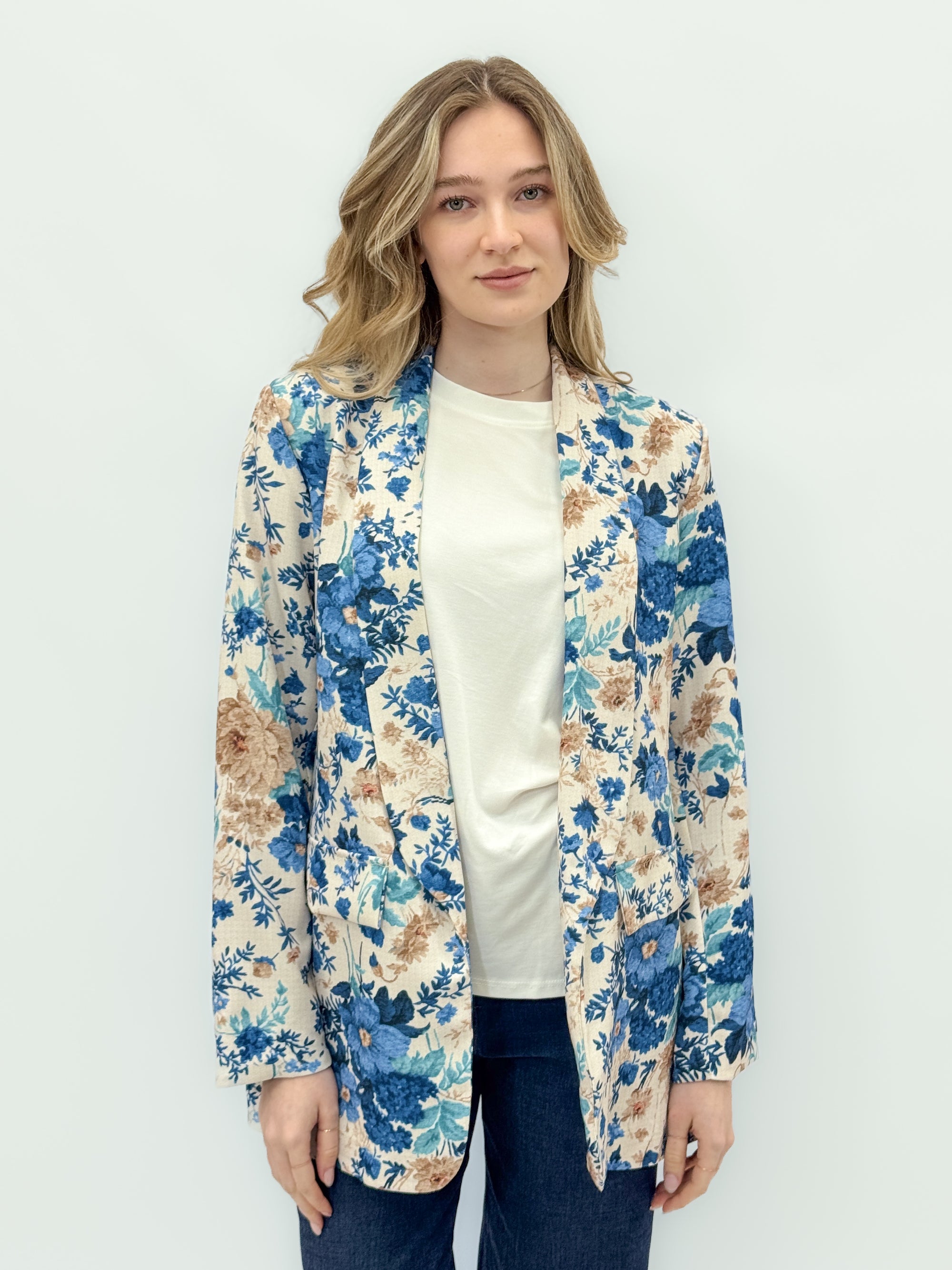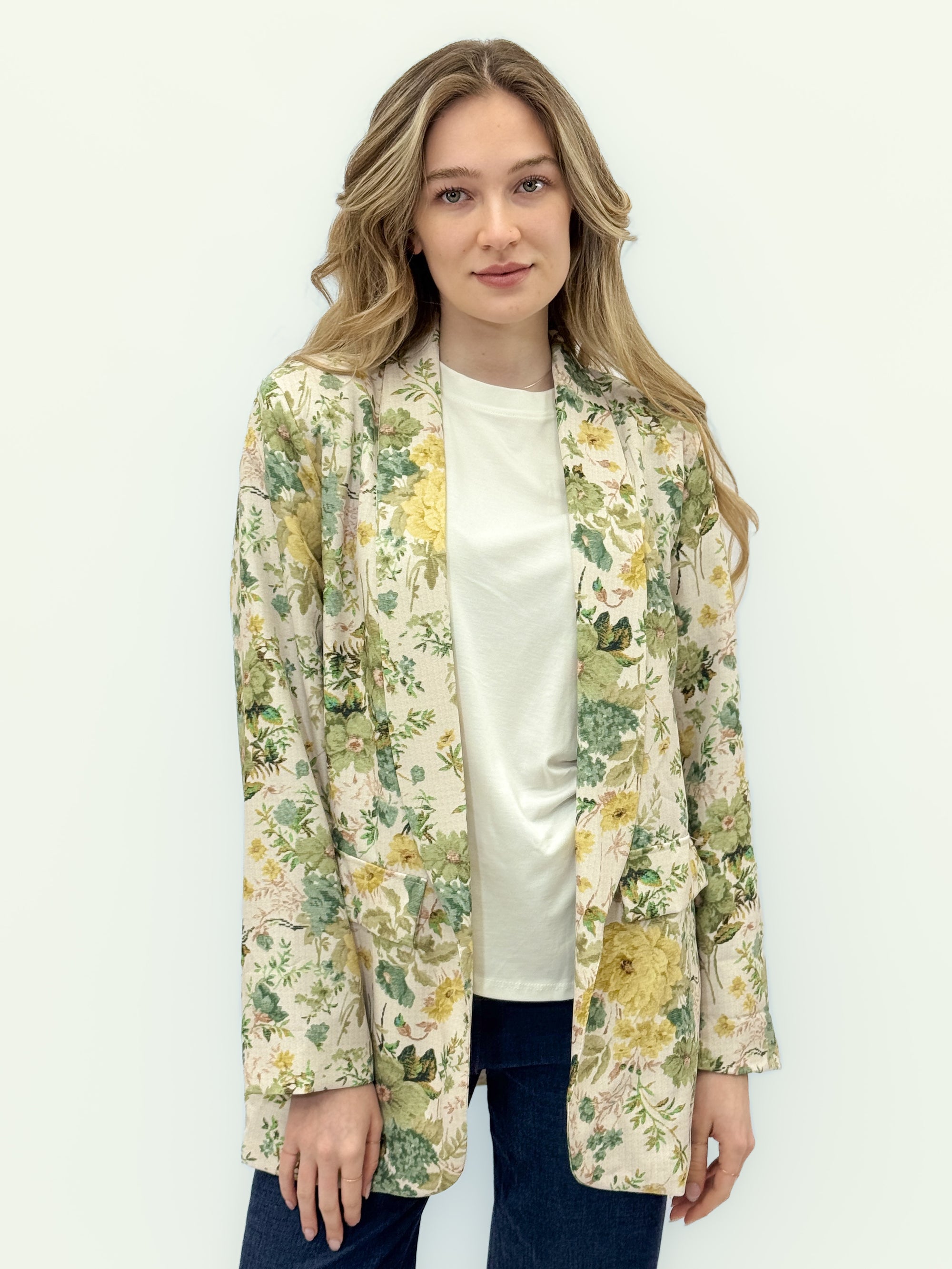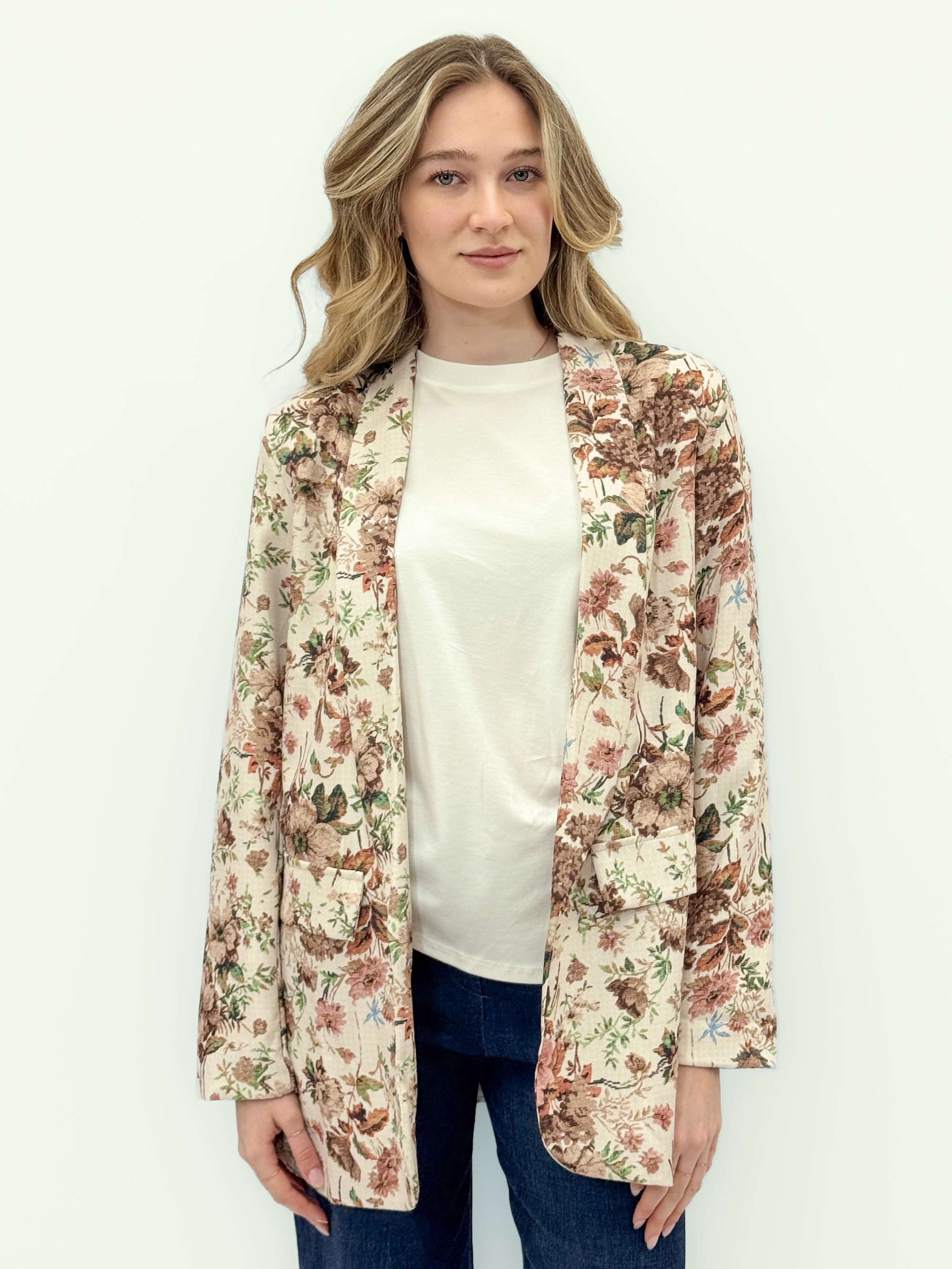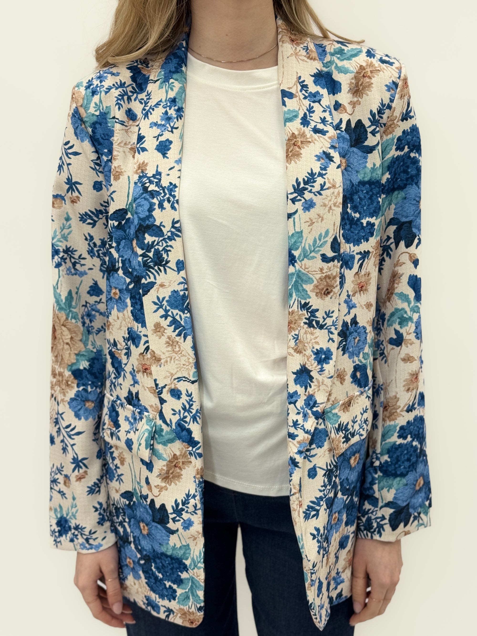 Blazer floreale leggero con rever morbido