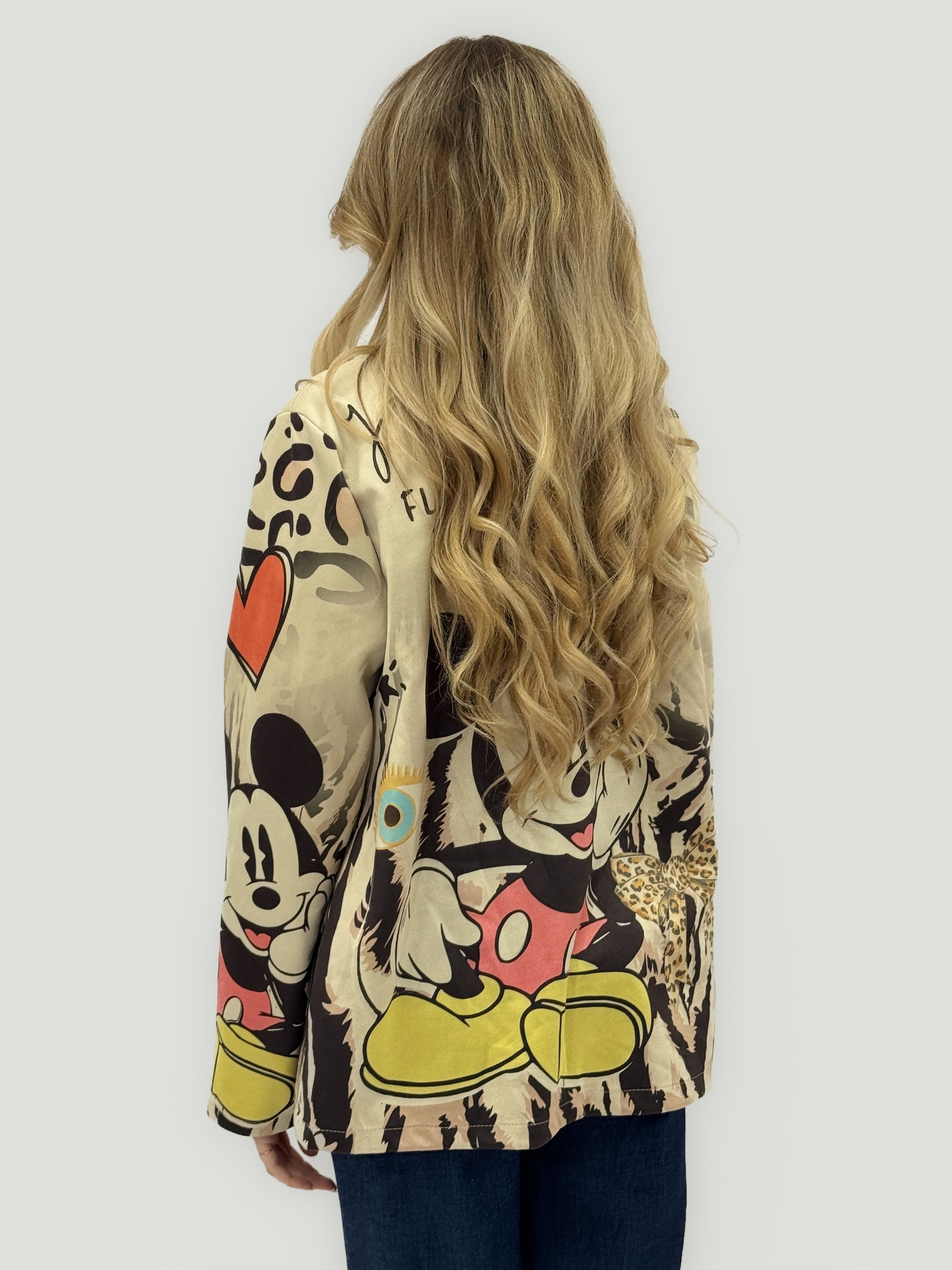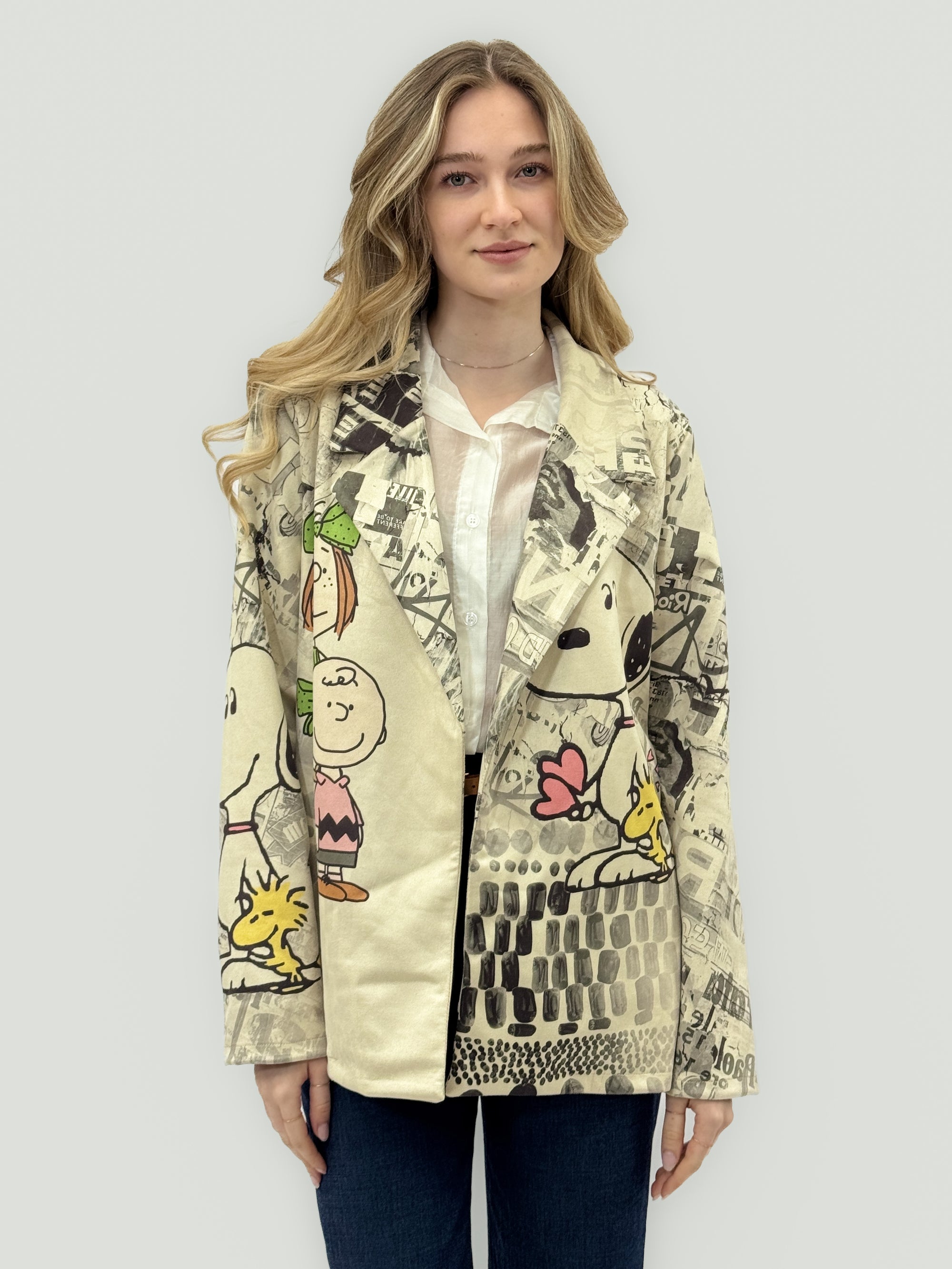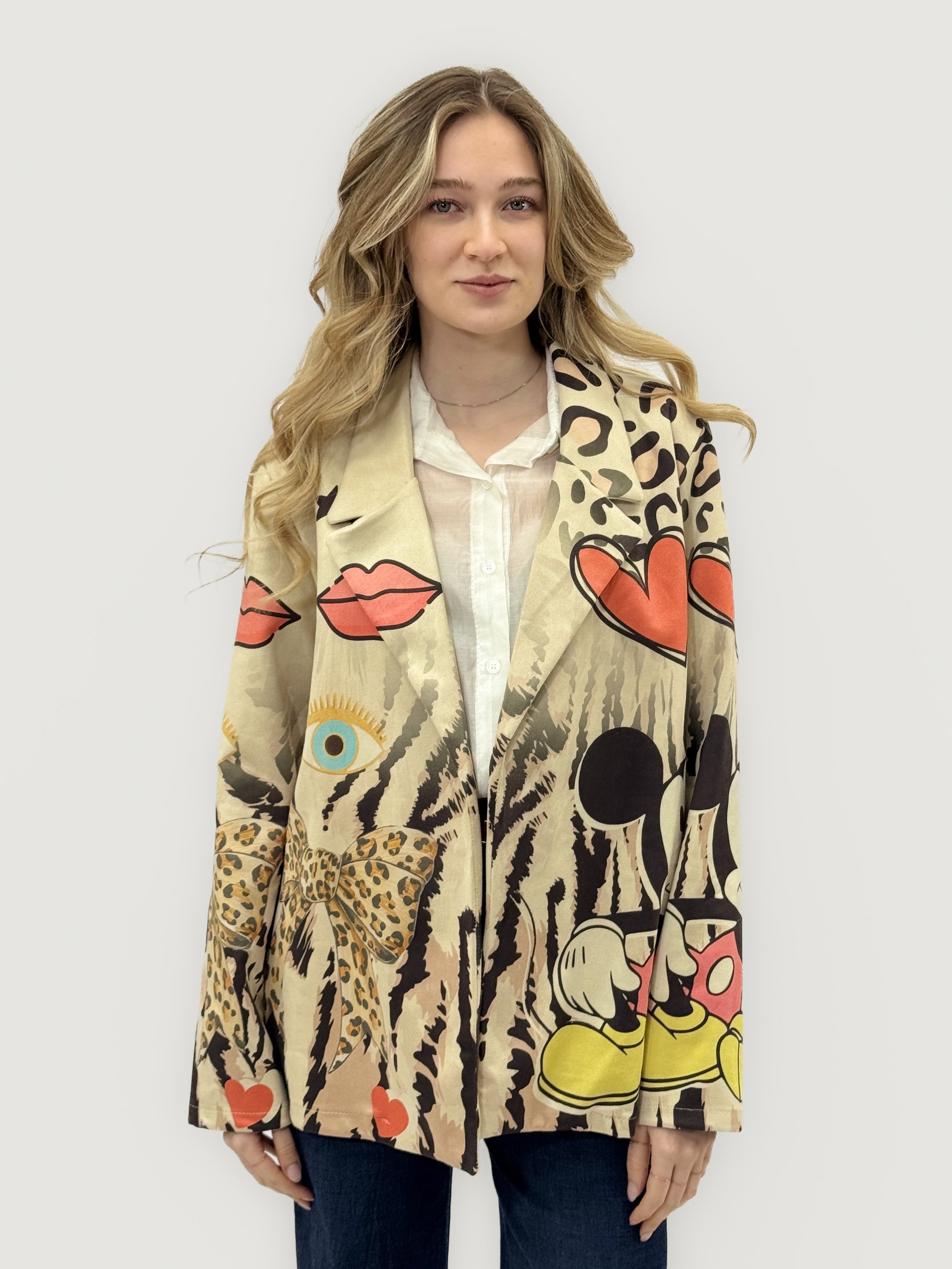 Blazer Beige con Stampa Cartoon Artistica