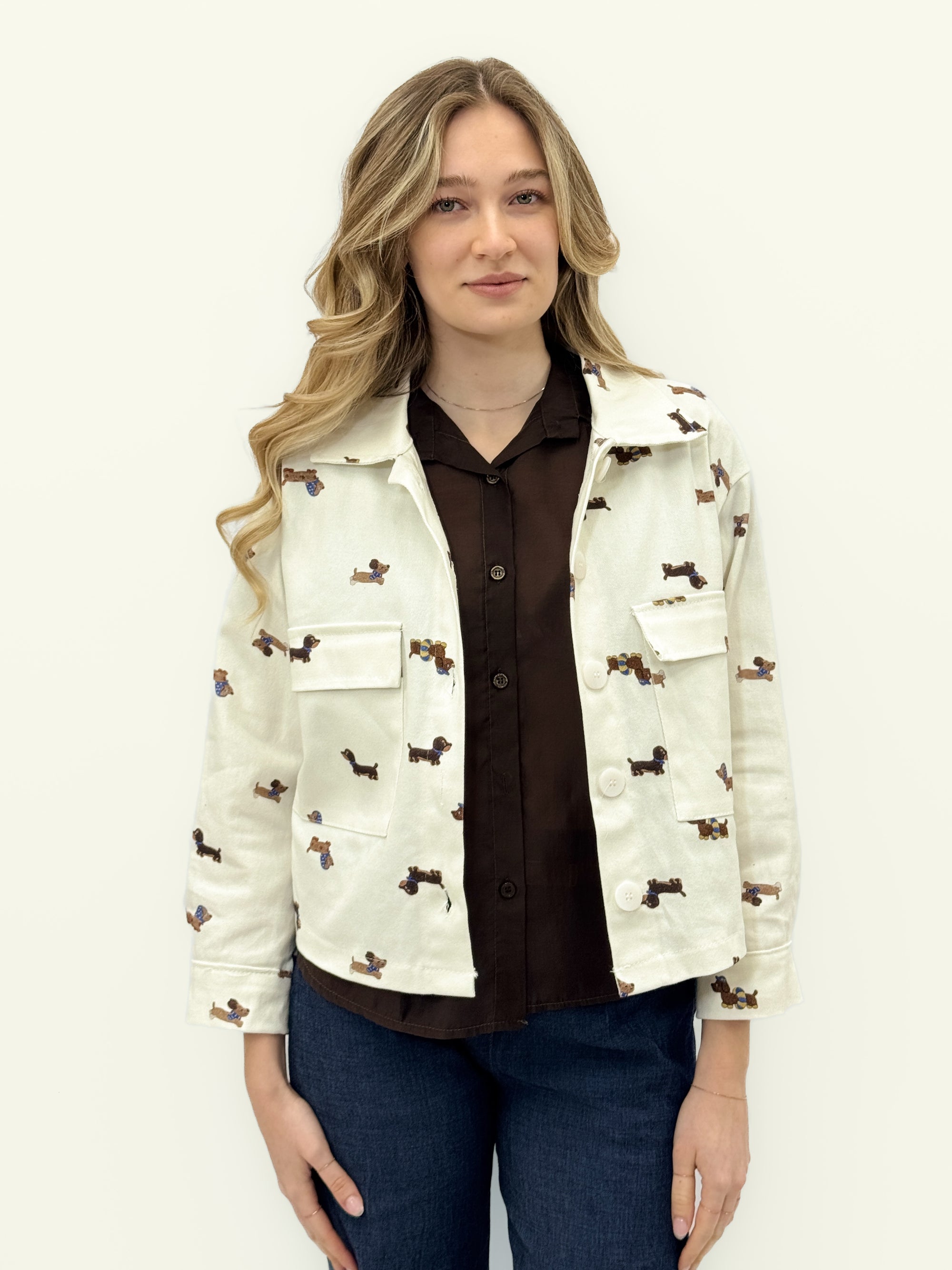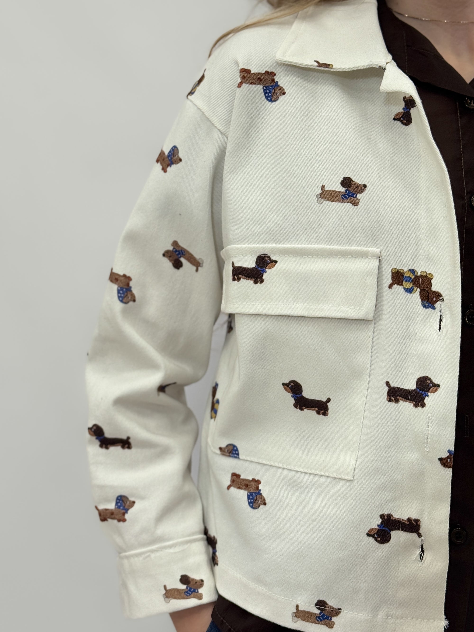 Giacca 100% cotone con stampa fantasia e tasche frontali